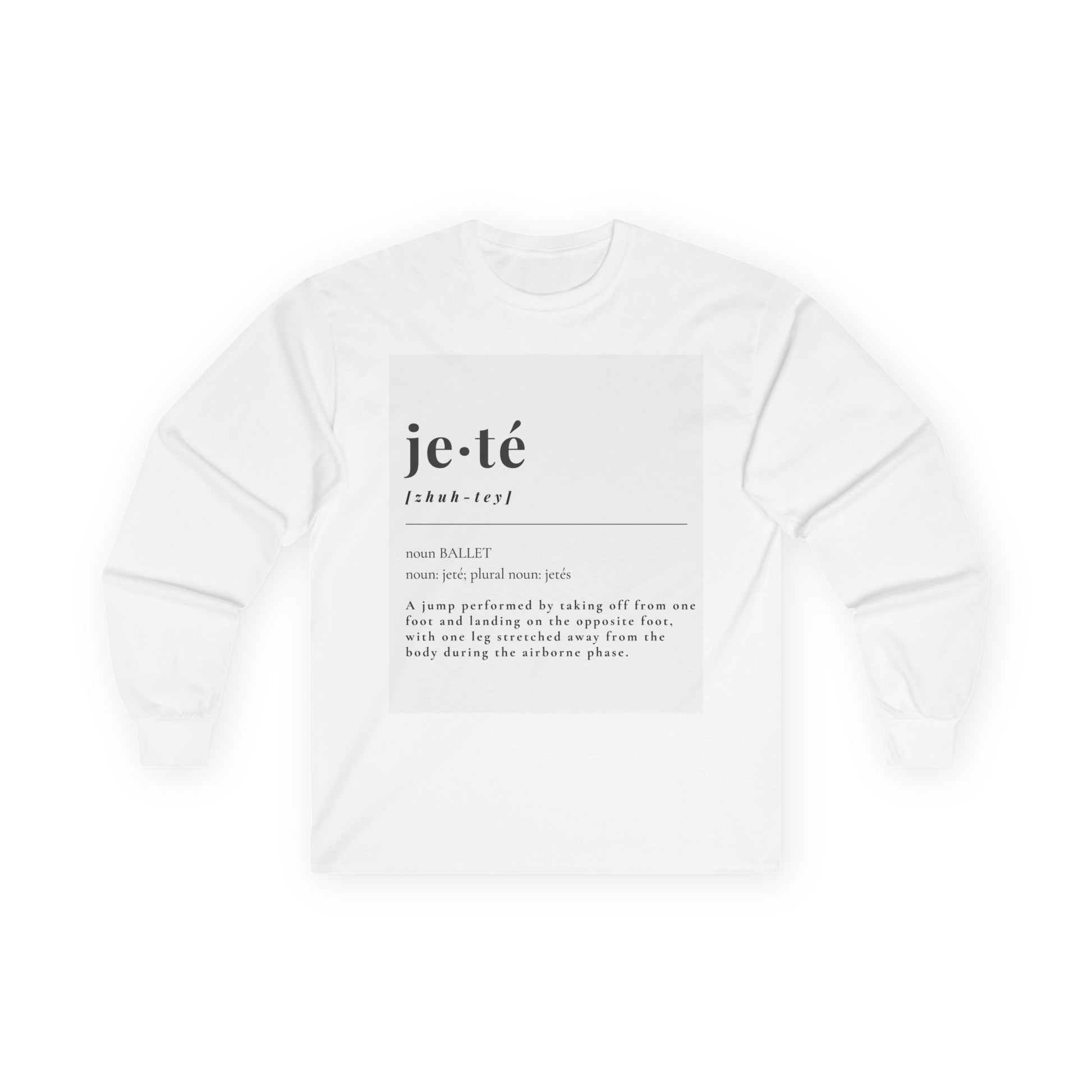 “Jeté Definition” Unisex Long Sleeve Tee – Ballet Terminology Dance Shirt Featuring the Official Definition of Jeté + Optional Name or Studio Personalization
