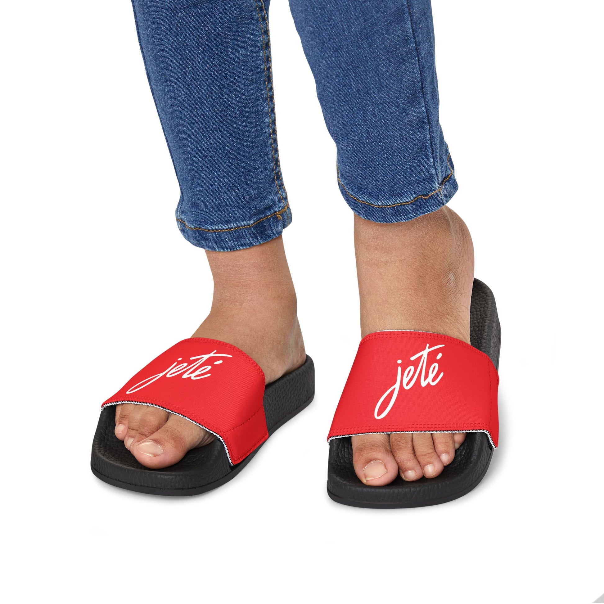 YOUTH SIZES - “Jeté” Official Logo Dance -Inspired Custom Footwear | Youth Sandal Slides with Removable Straps