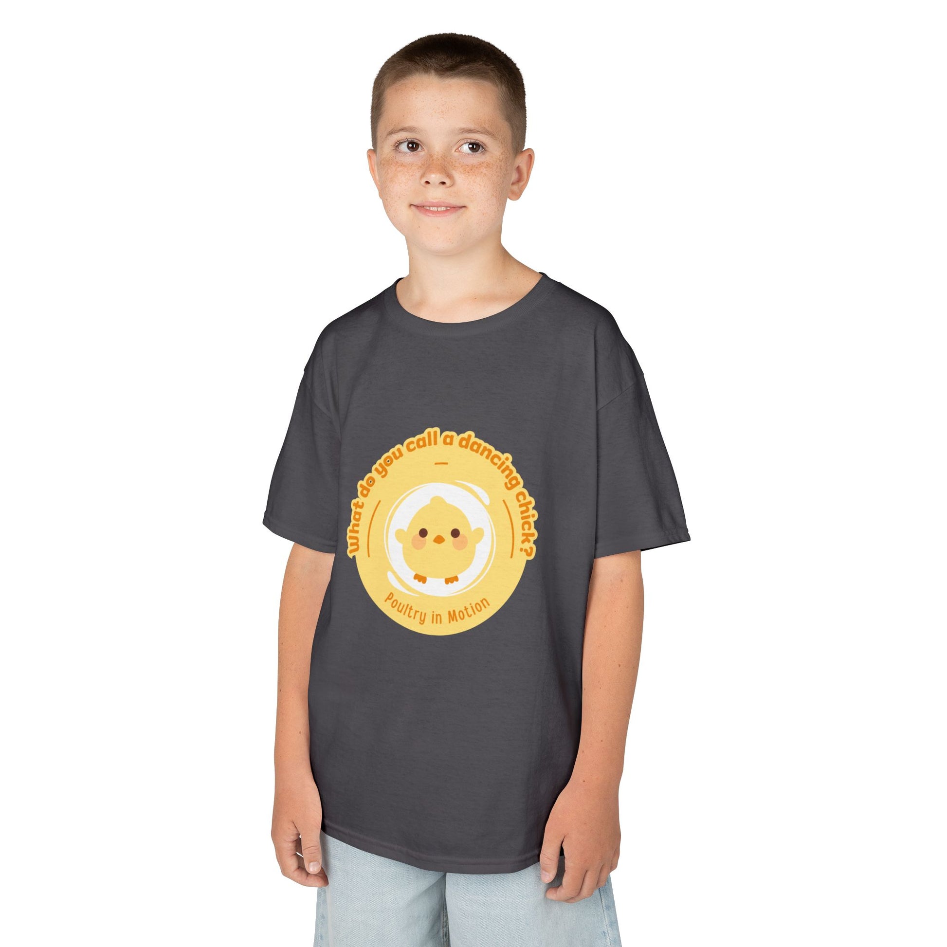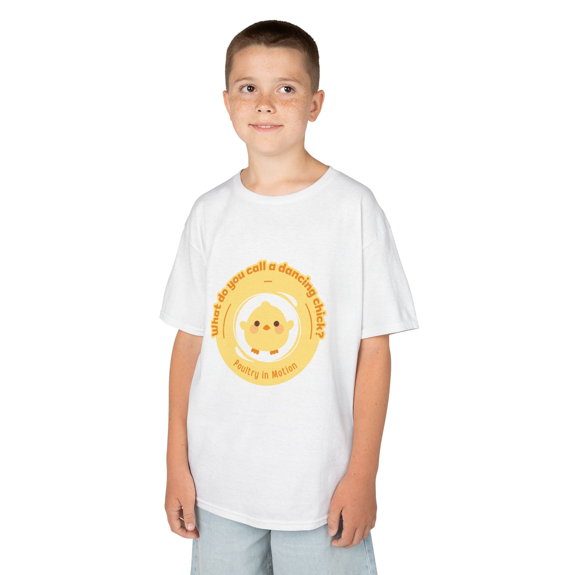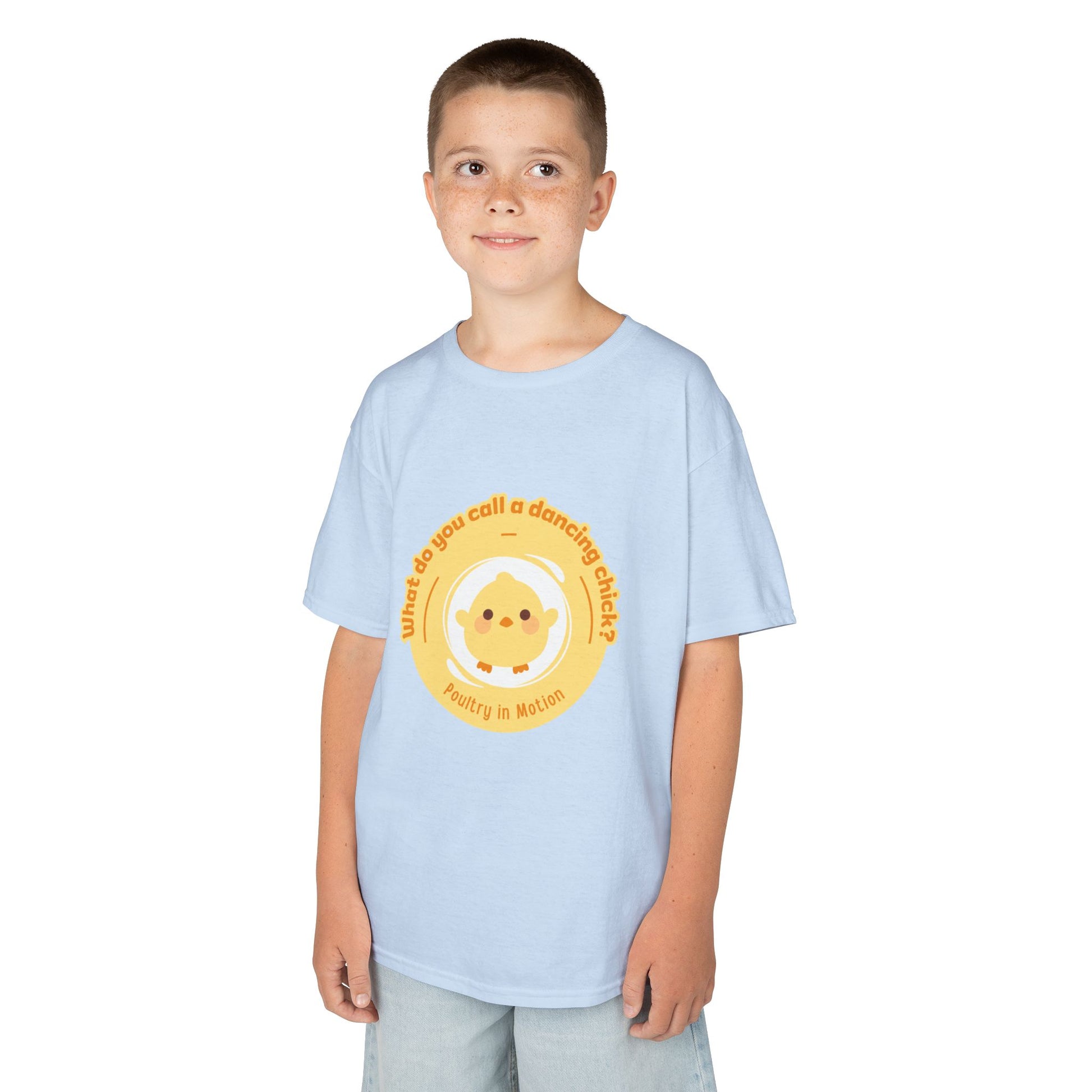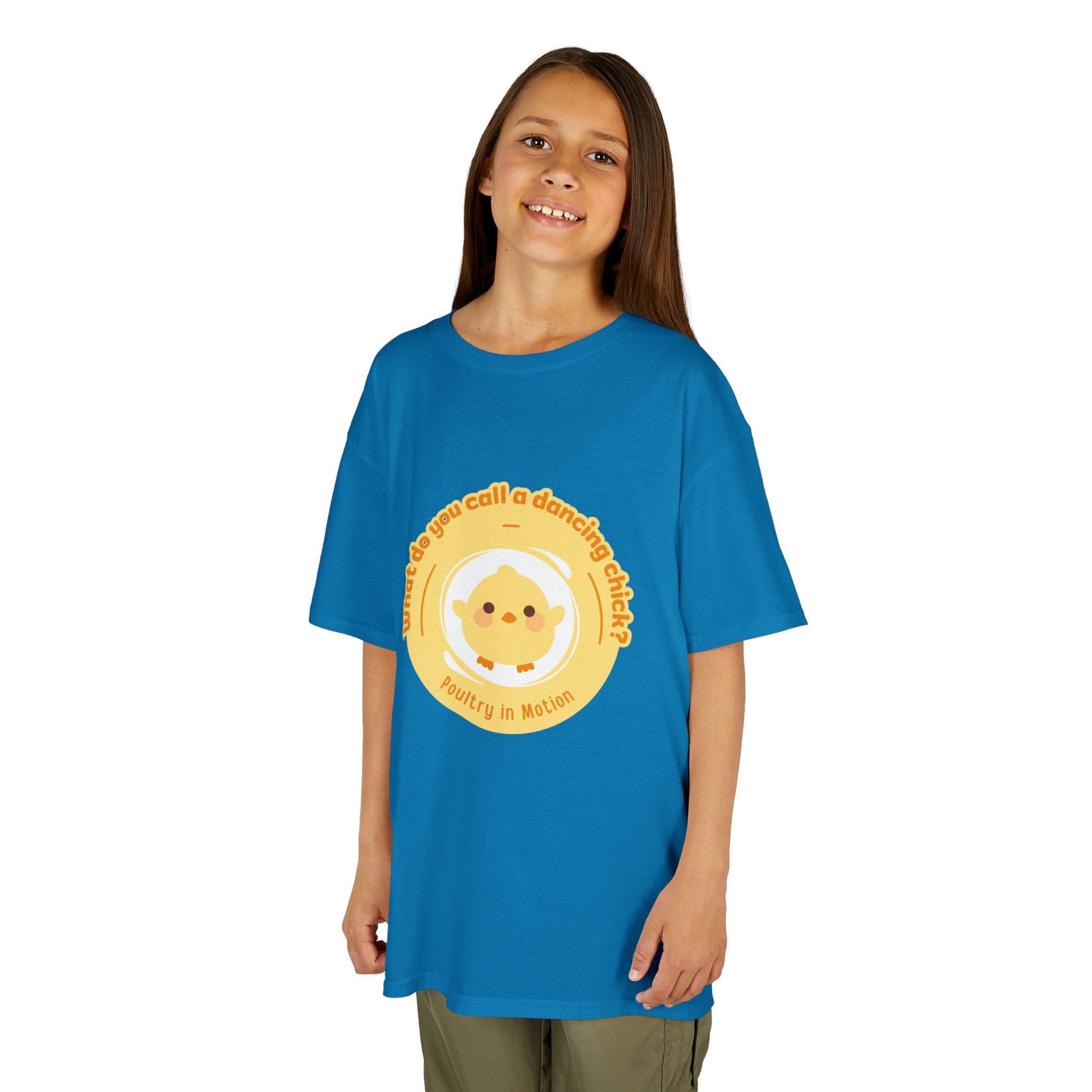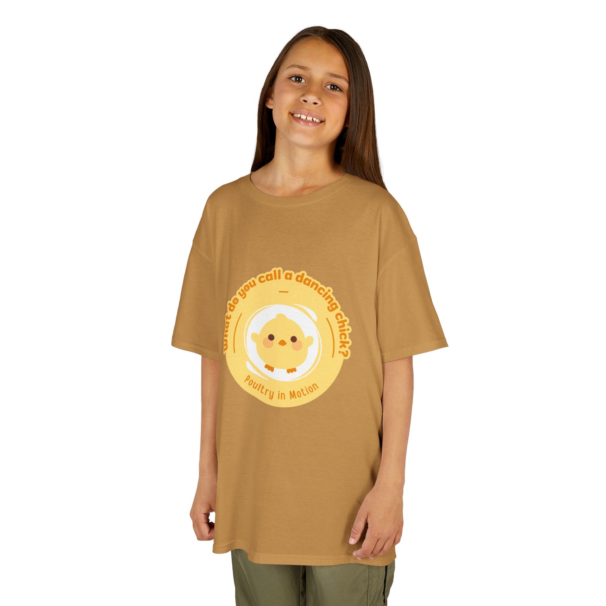 “What do you call a dancing chick? Poultry in Motion” Funny Chick Dance Tee for Kids – Cute Chicken Graphic - Youth Dance Pun T-Shirt