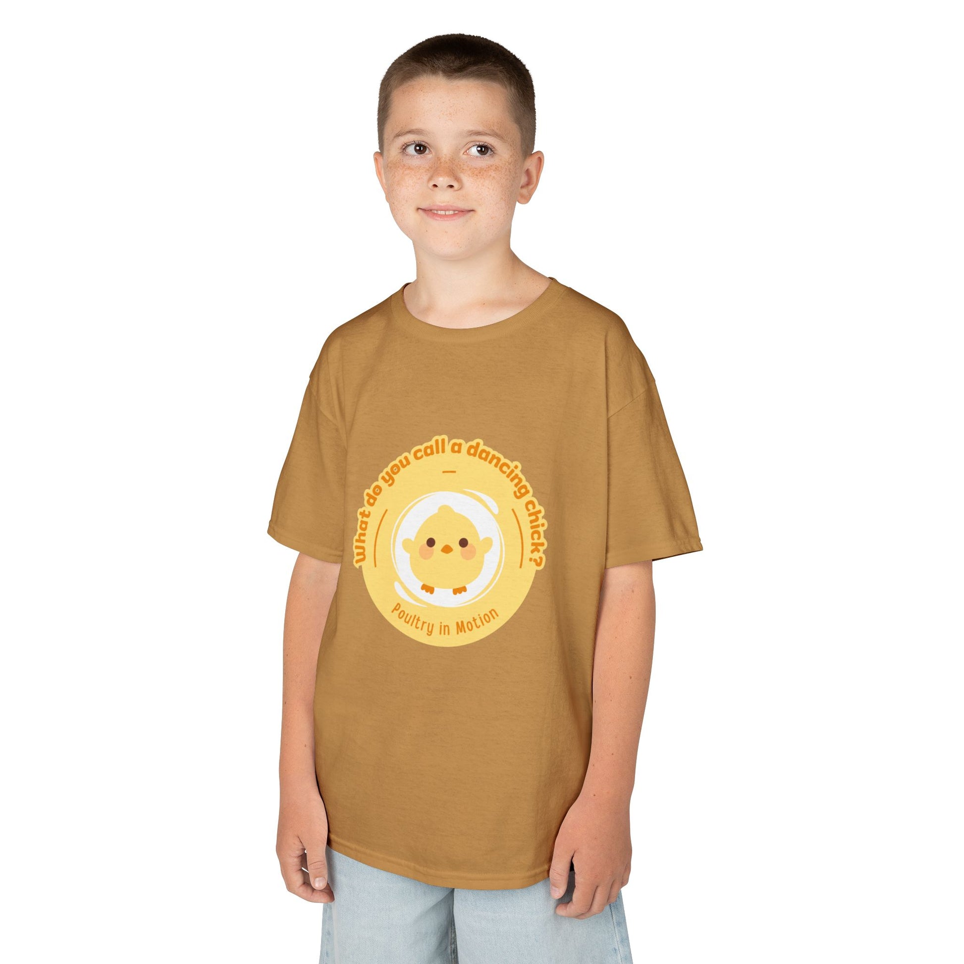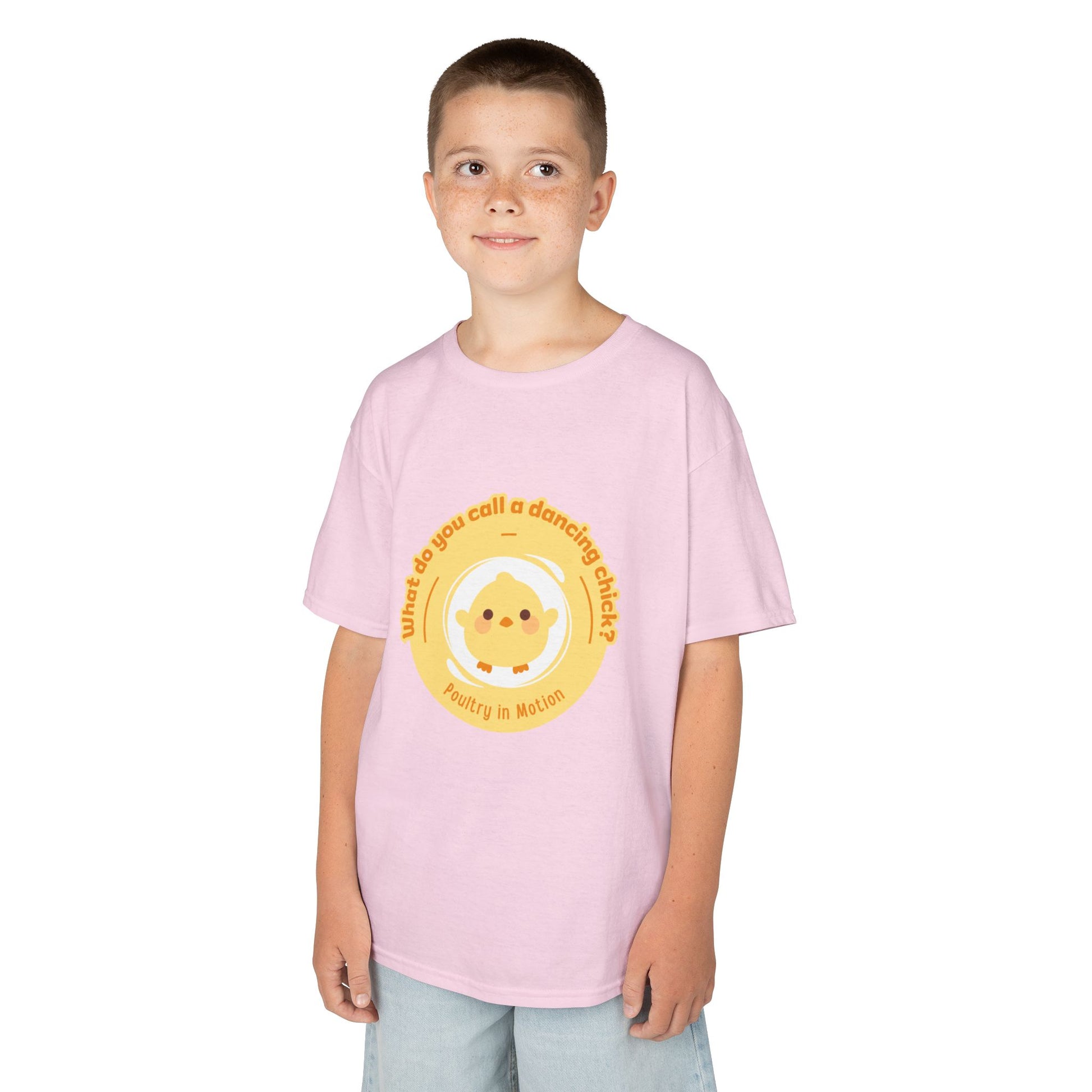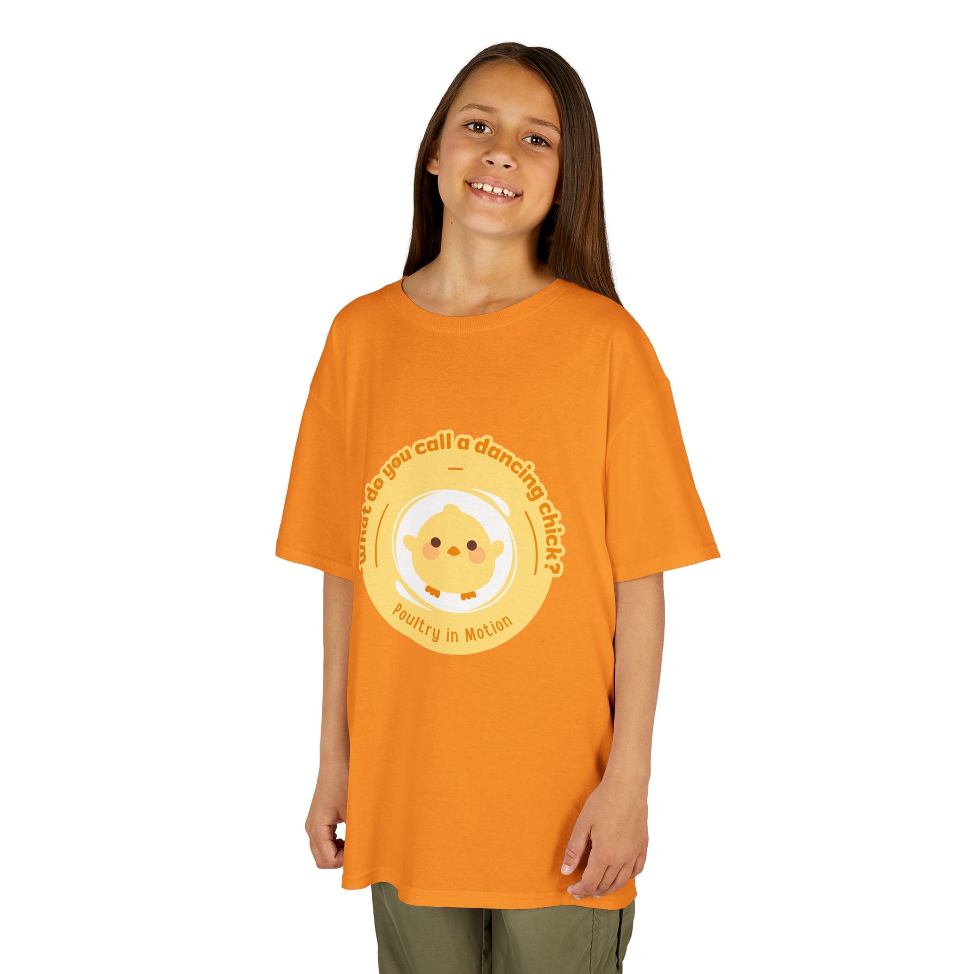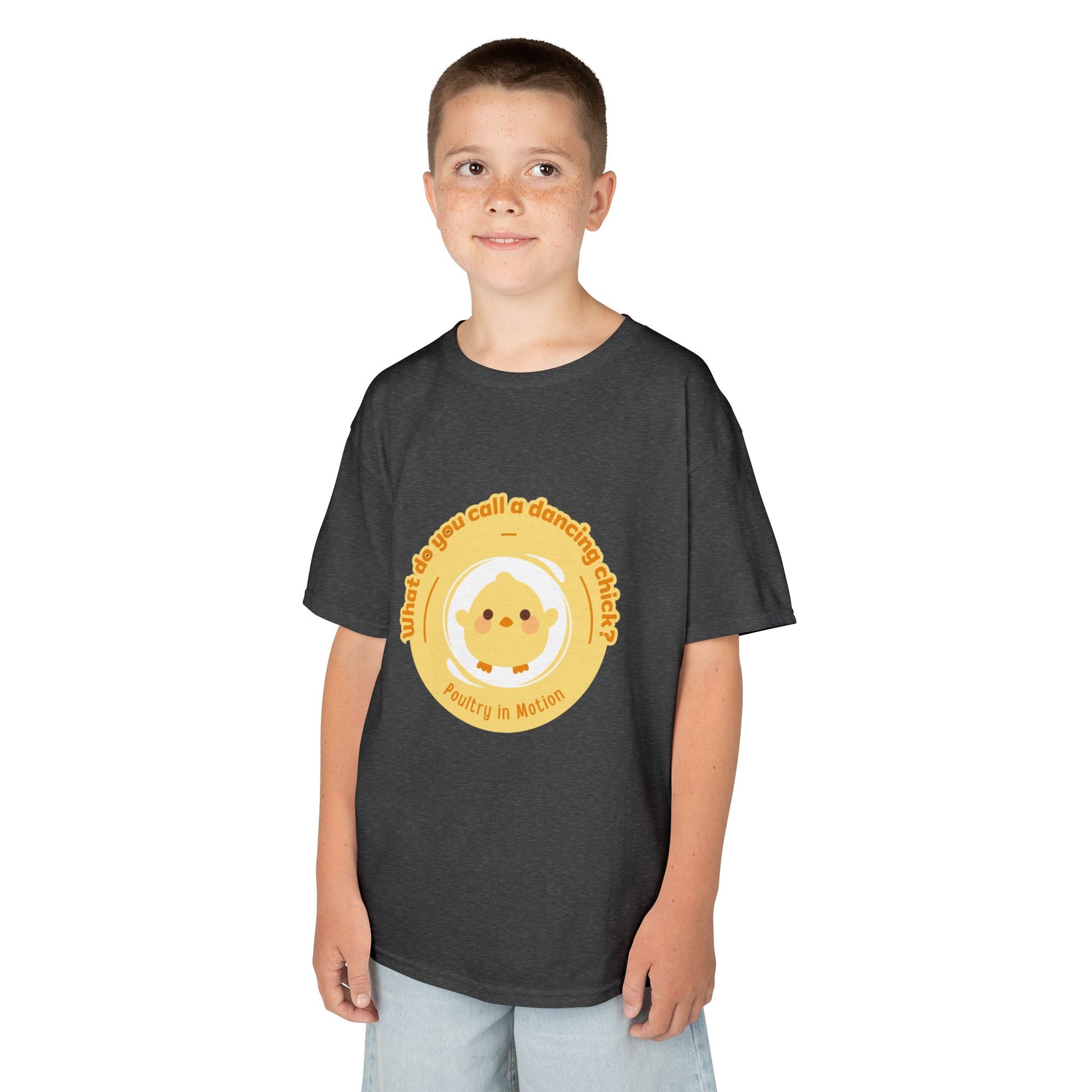“What do you call a dancing chick? Poultry in Motion” Funny Chick Dance Tee for Kids – Cute Chicken Graphic - Youth Dance Pun T-Shirt