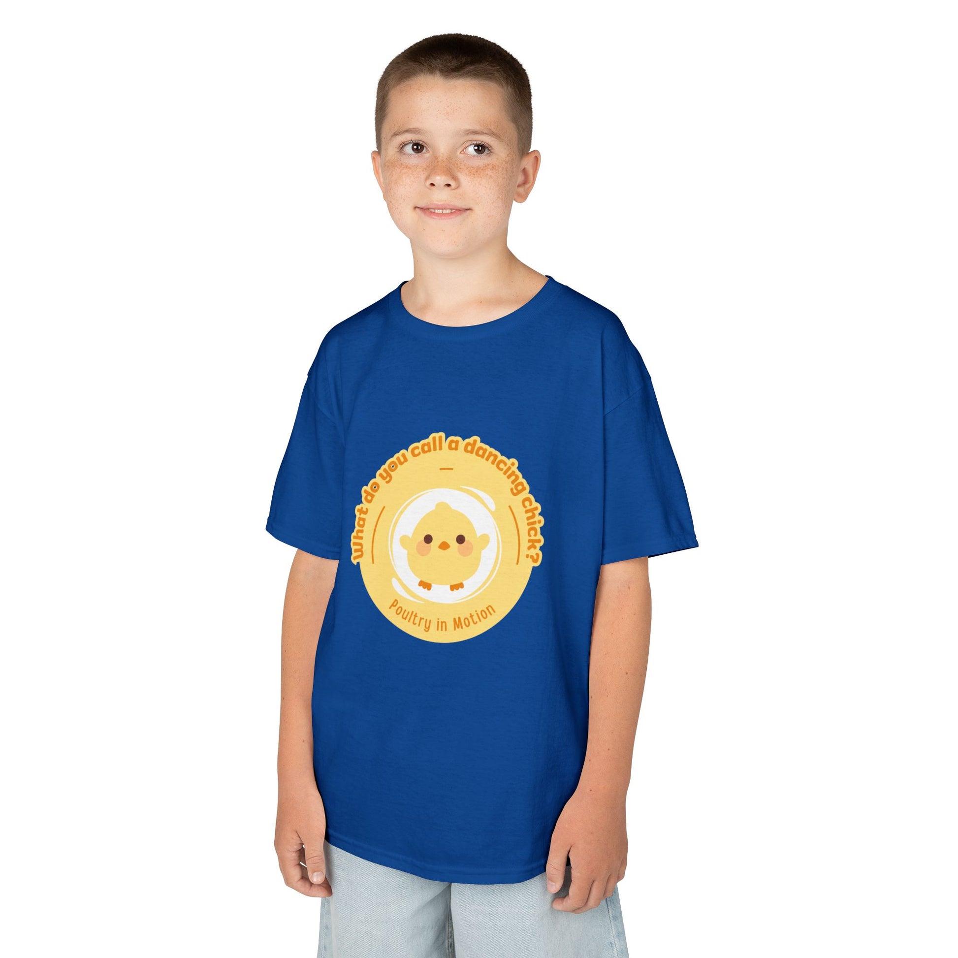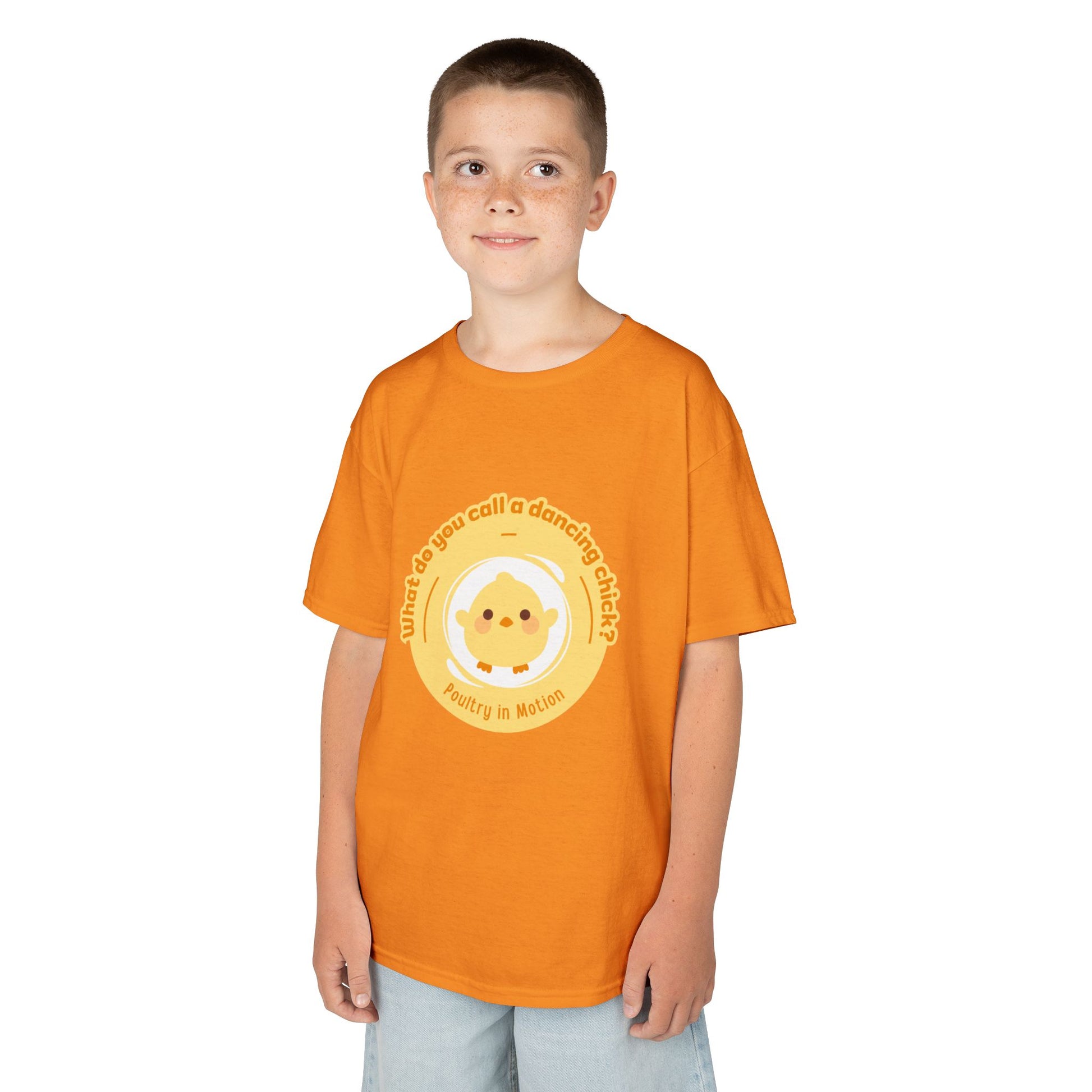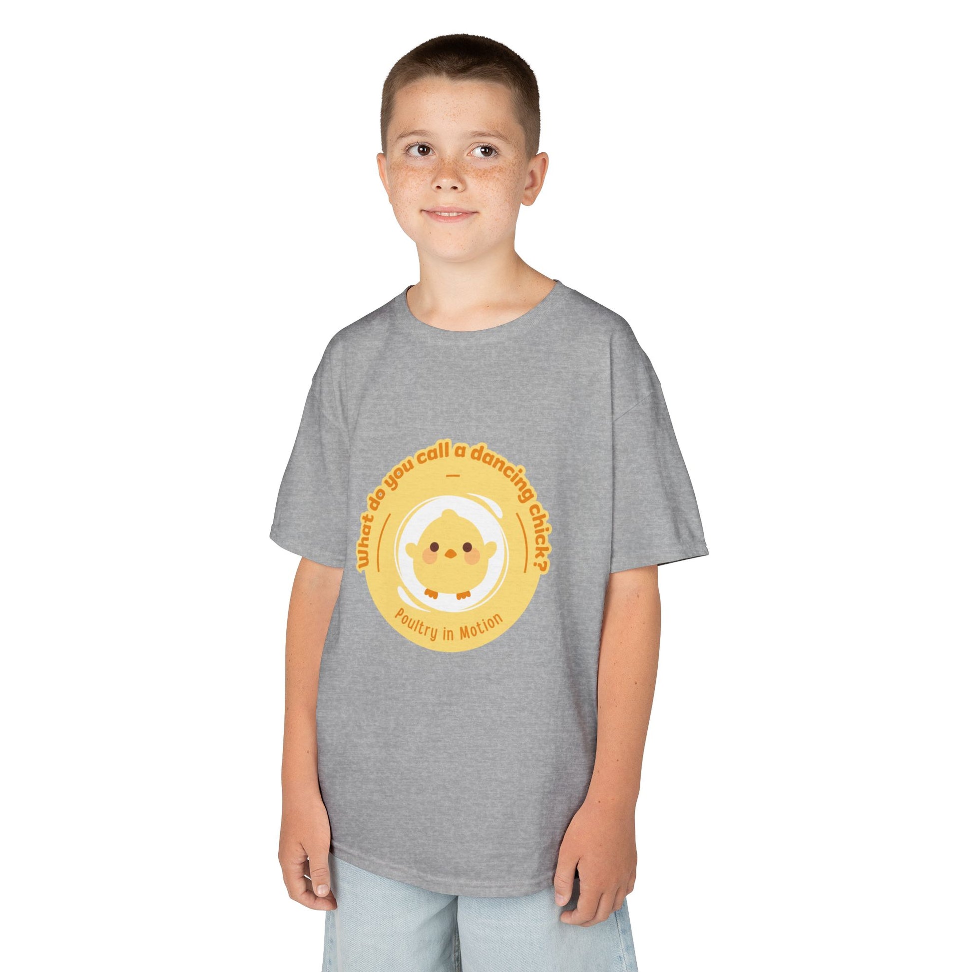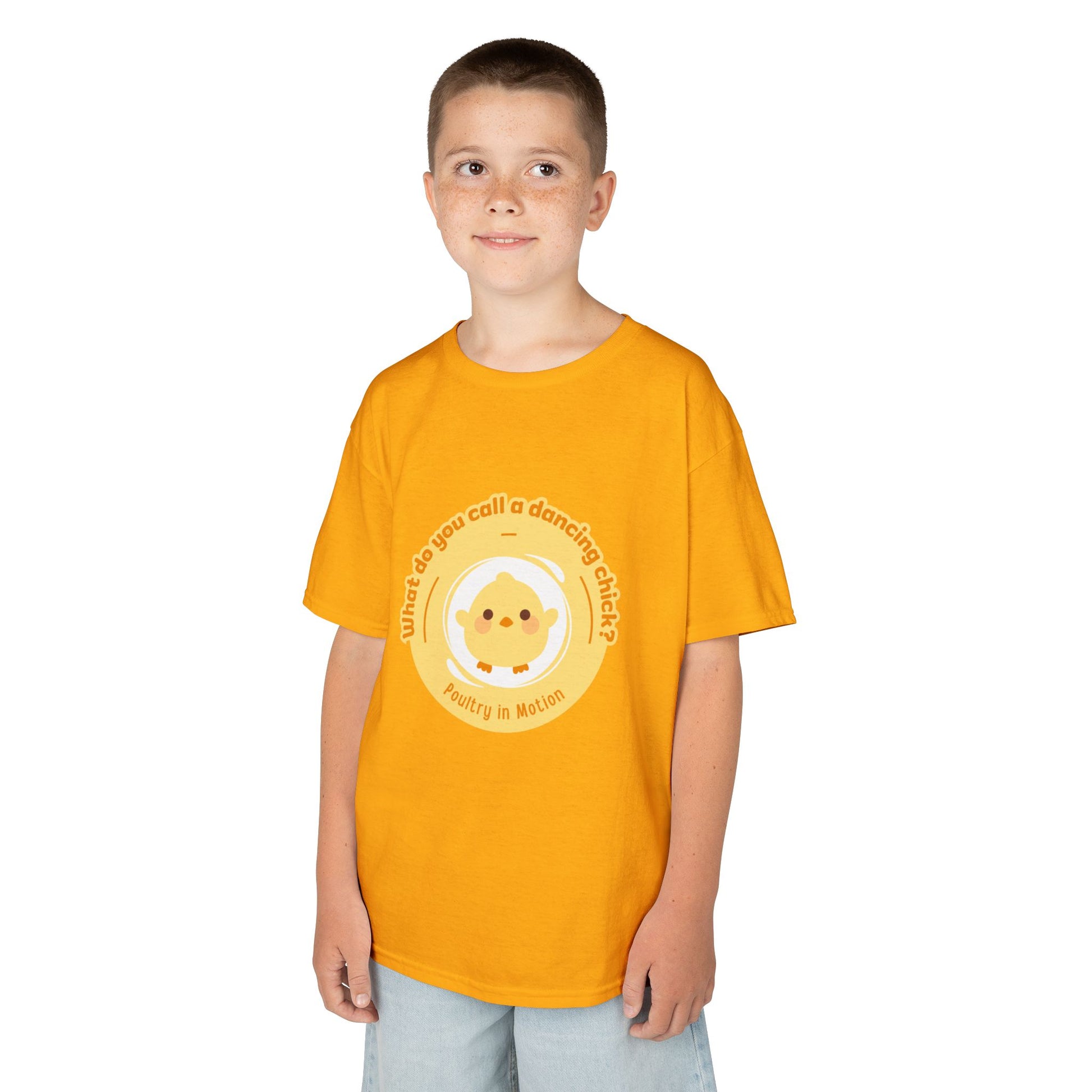 “What do you call a dancing chick? Poultry in Motion” Funny Chick Dance Tee for Kids – Cute Chicken Graphic - Youth Dance Pun T-Shirt