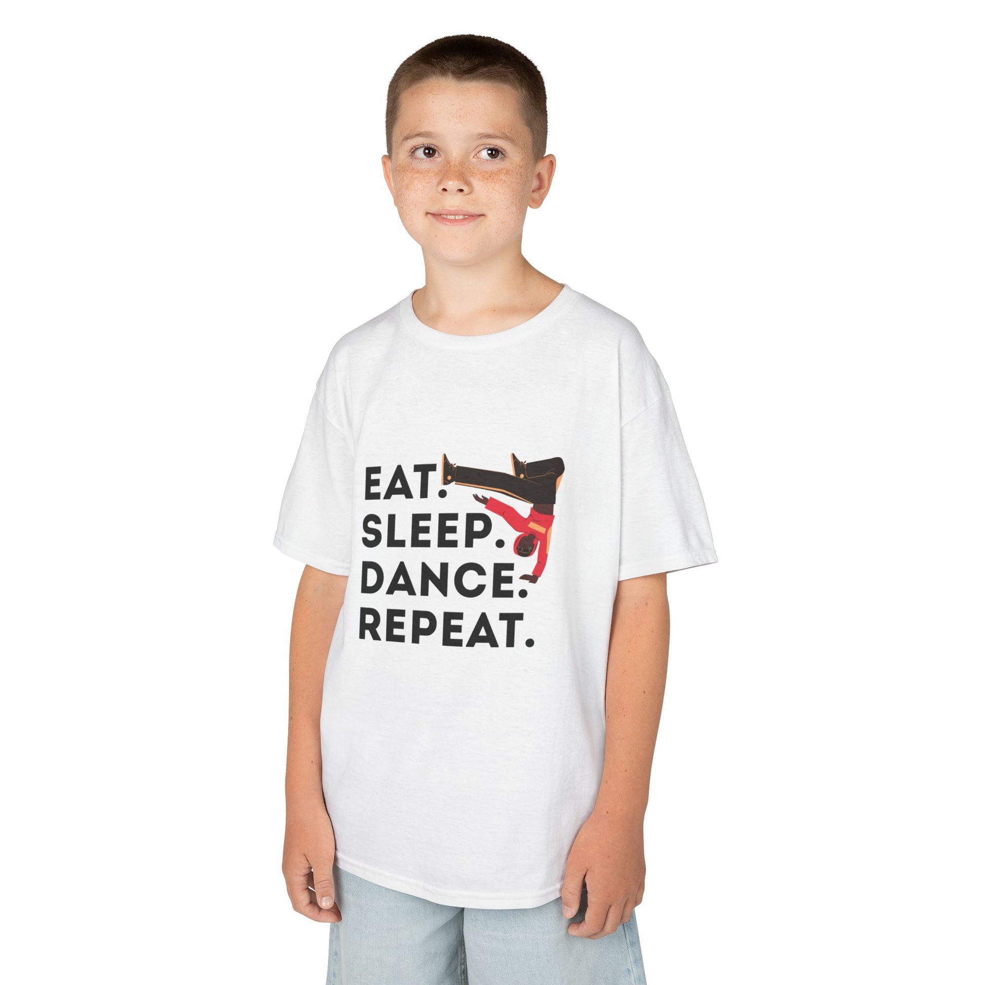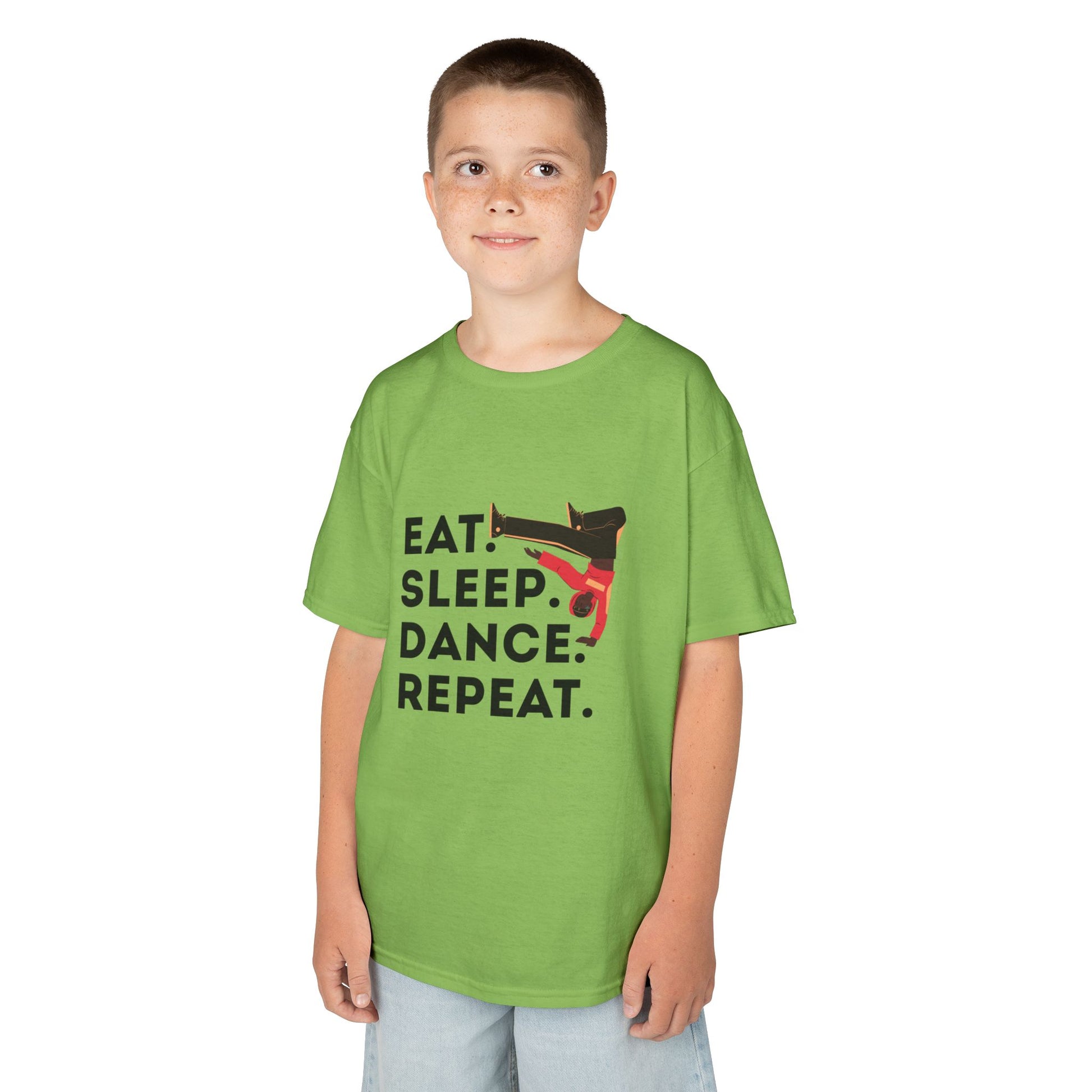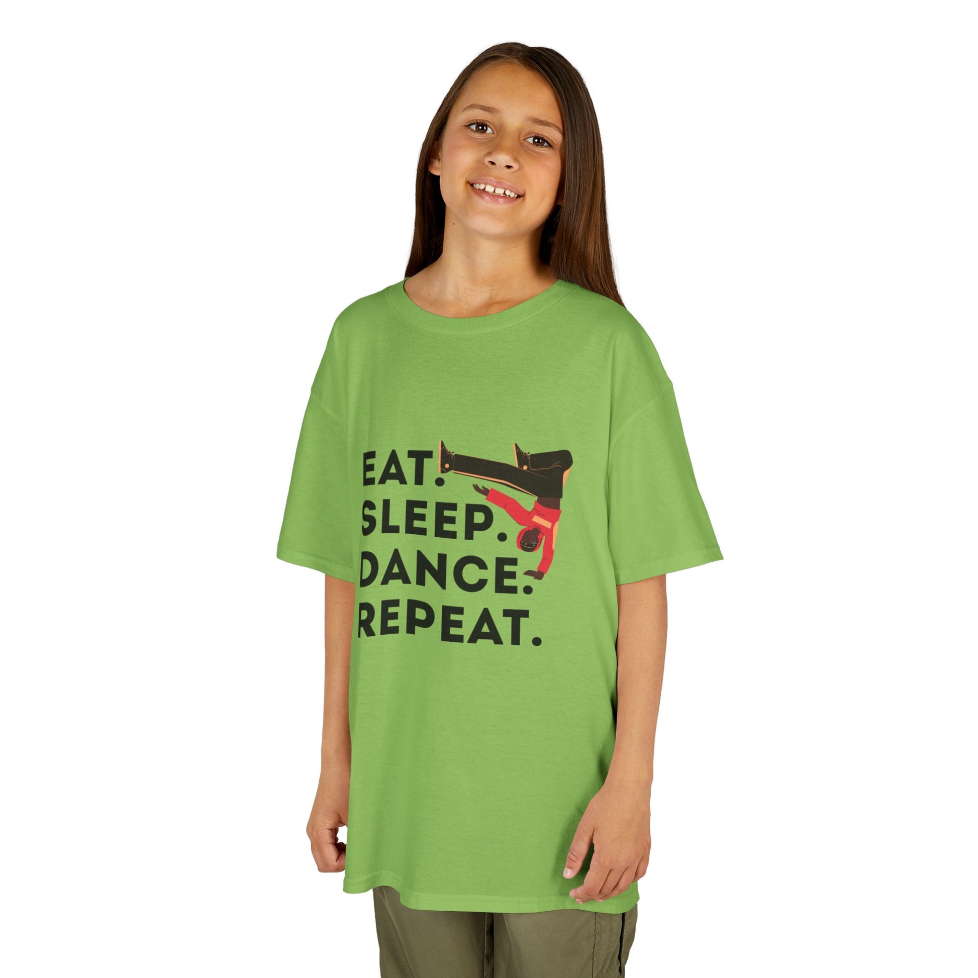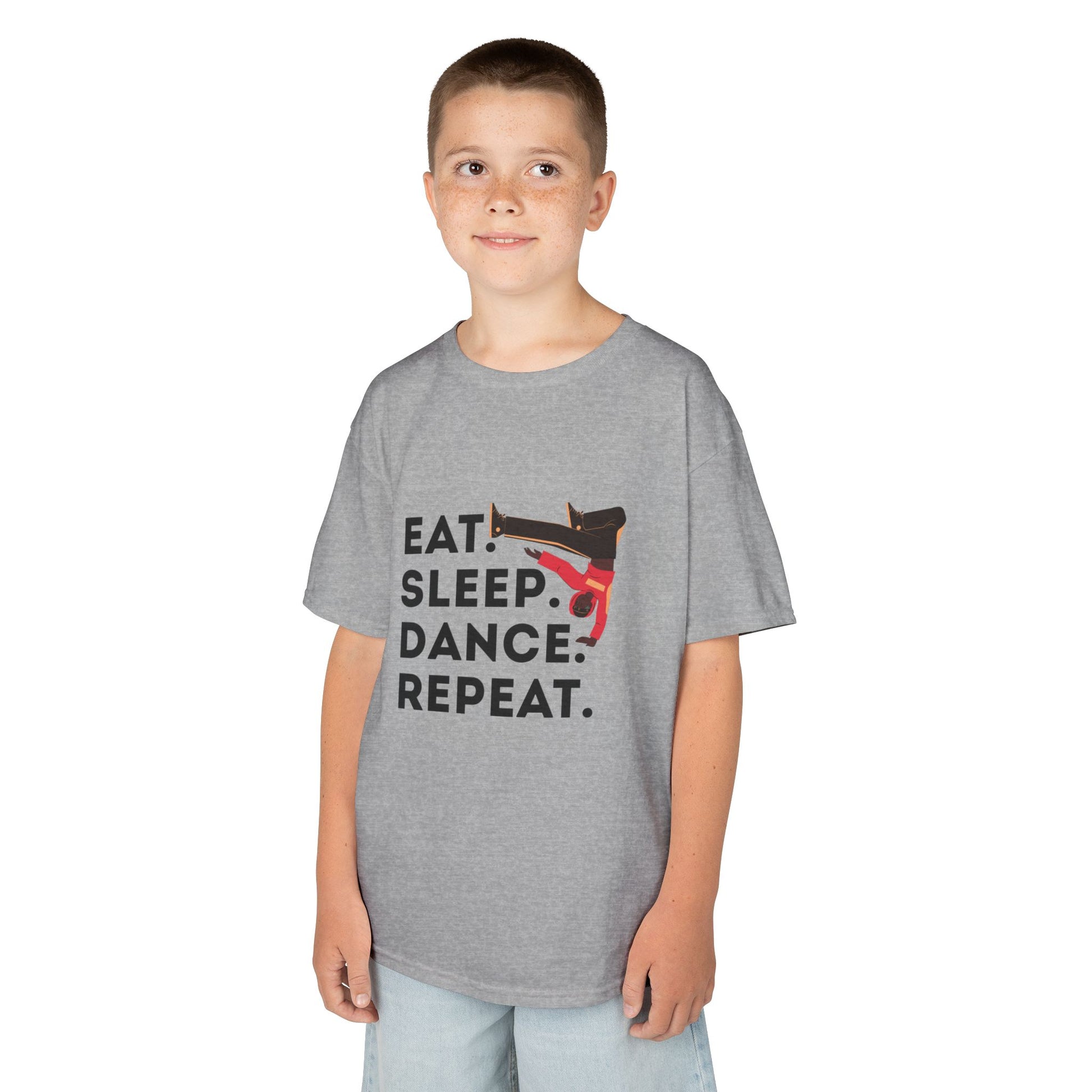 "Eat Sleep Dance Repeat" Youth Short Sleeve Tee – Bold B-Boy Graphic Hip-Hop Dance Shirt for Kids and Young Performers