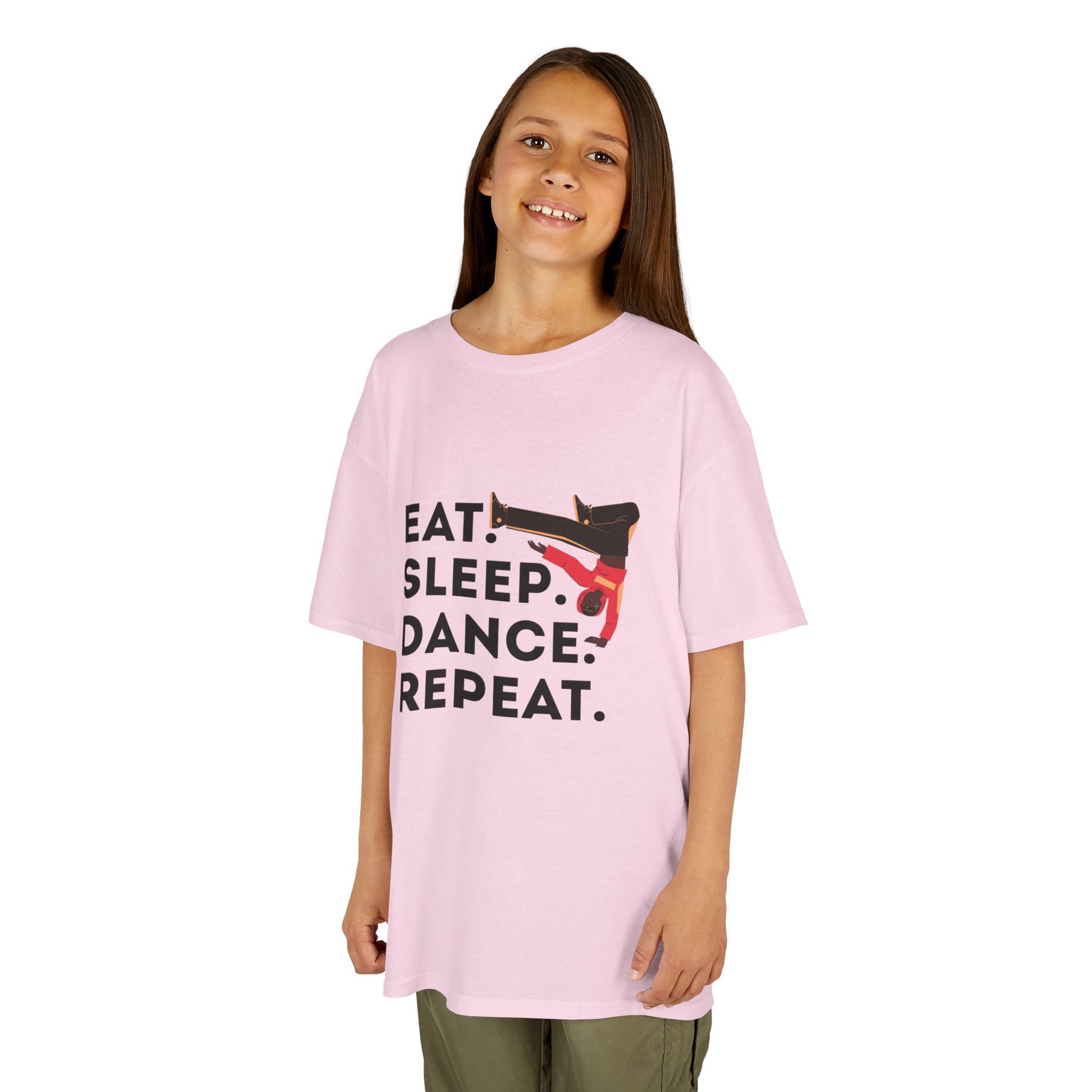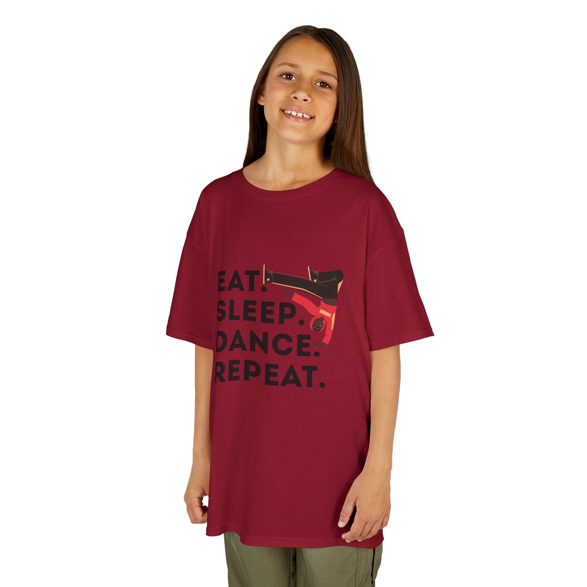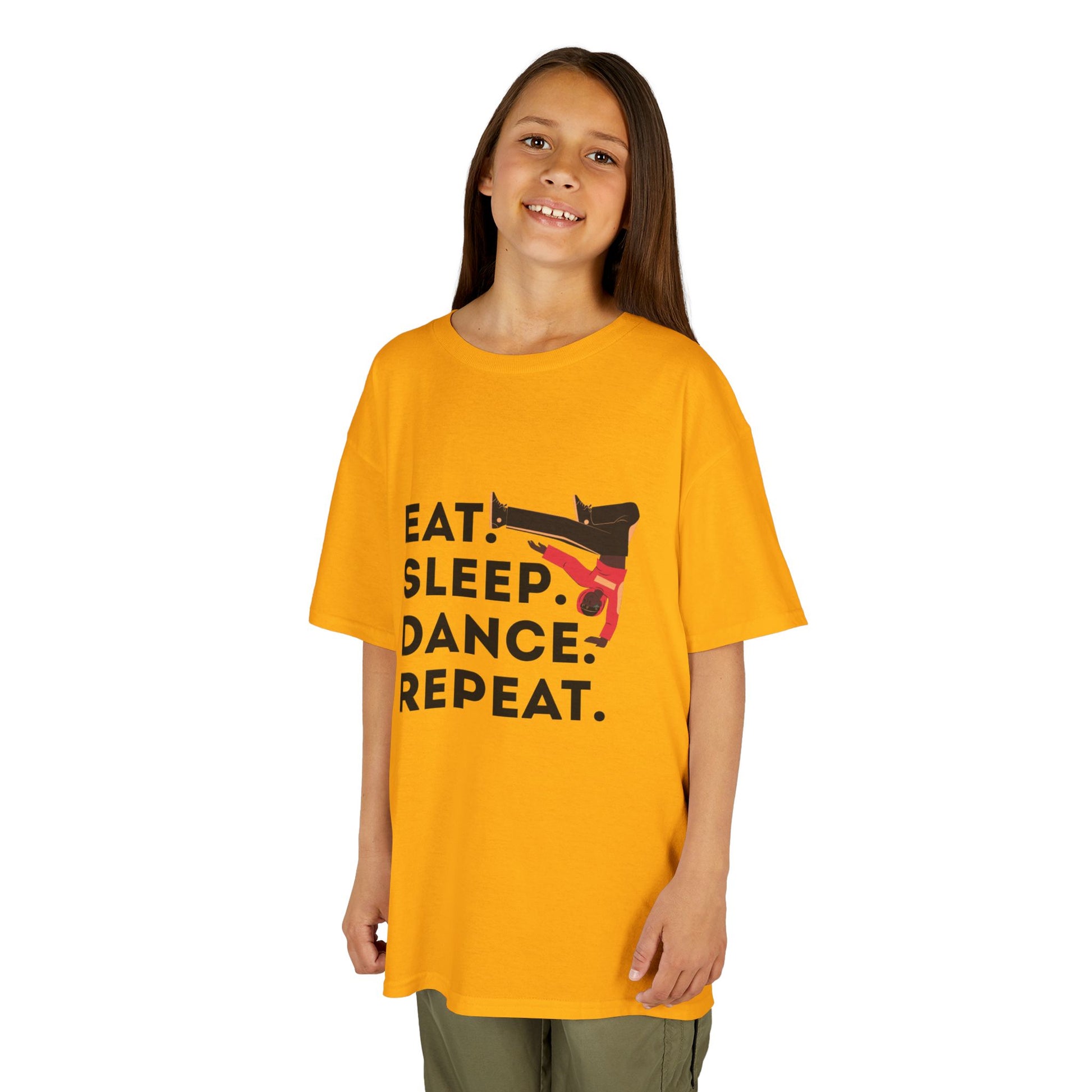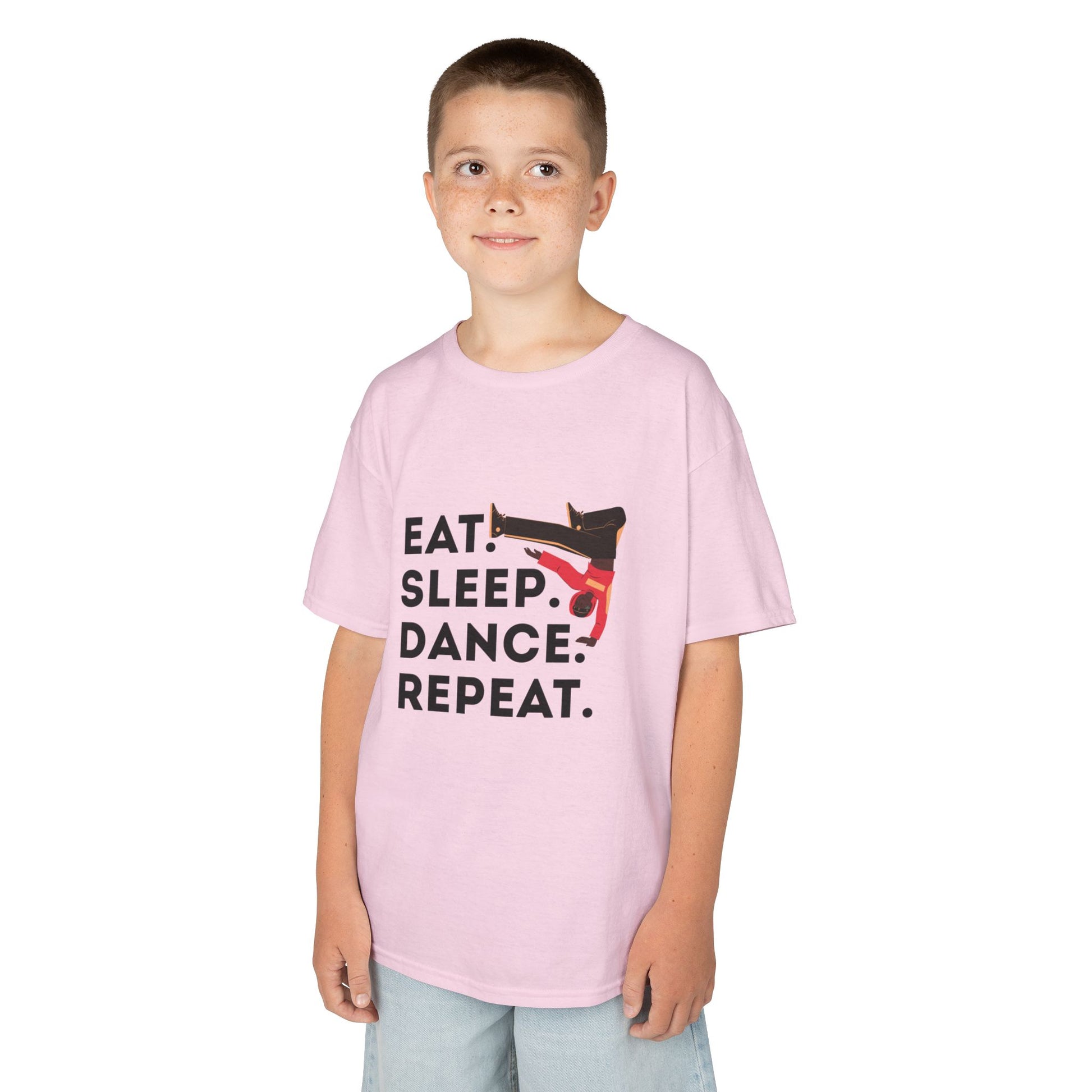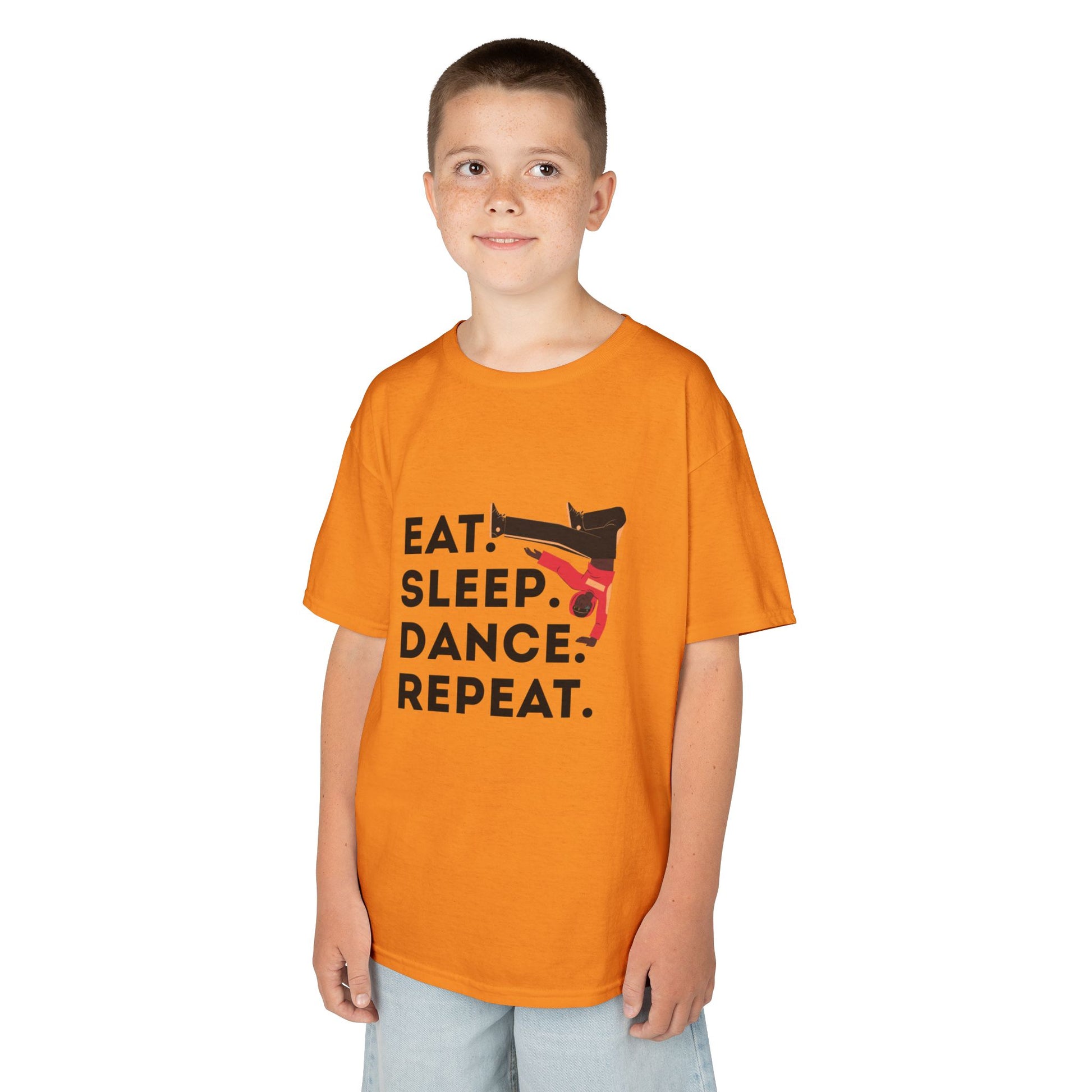 "Eat Sleep Dance Repeat" Youth Short Sleeve Tee – Bold B-Boy Graphic Hip-Hop Dance Shirt for Kids and Young Performers