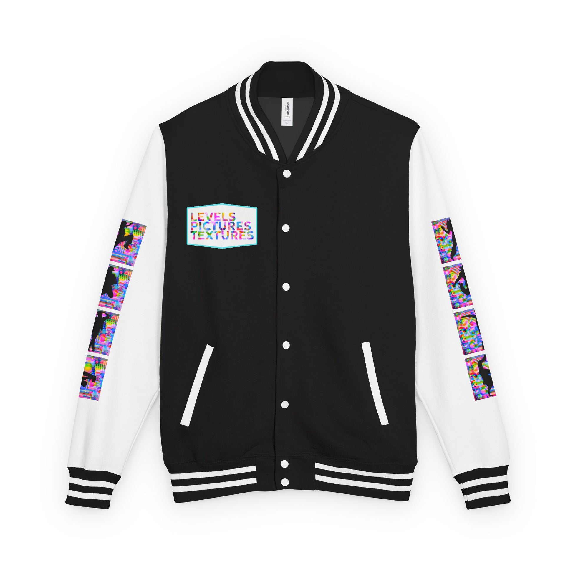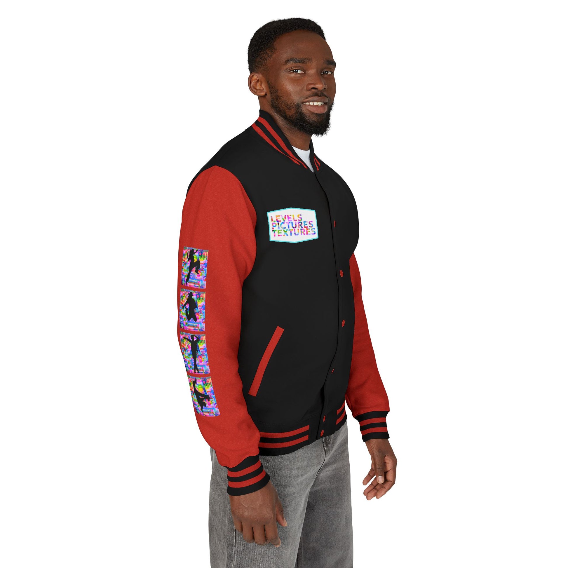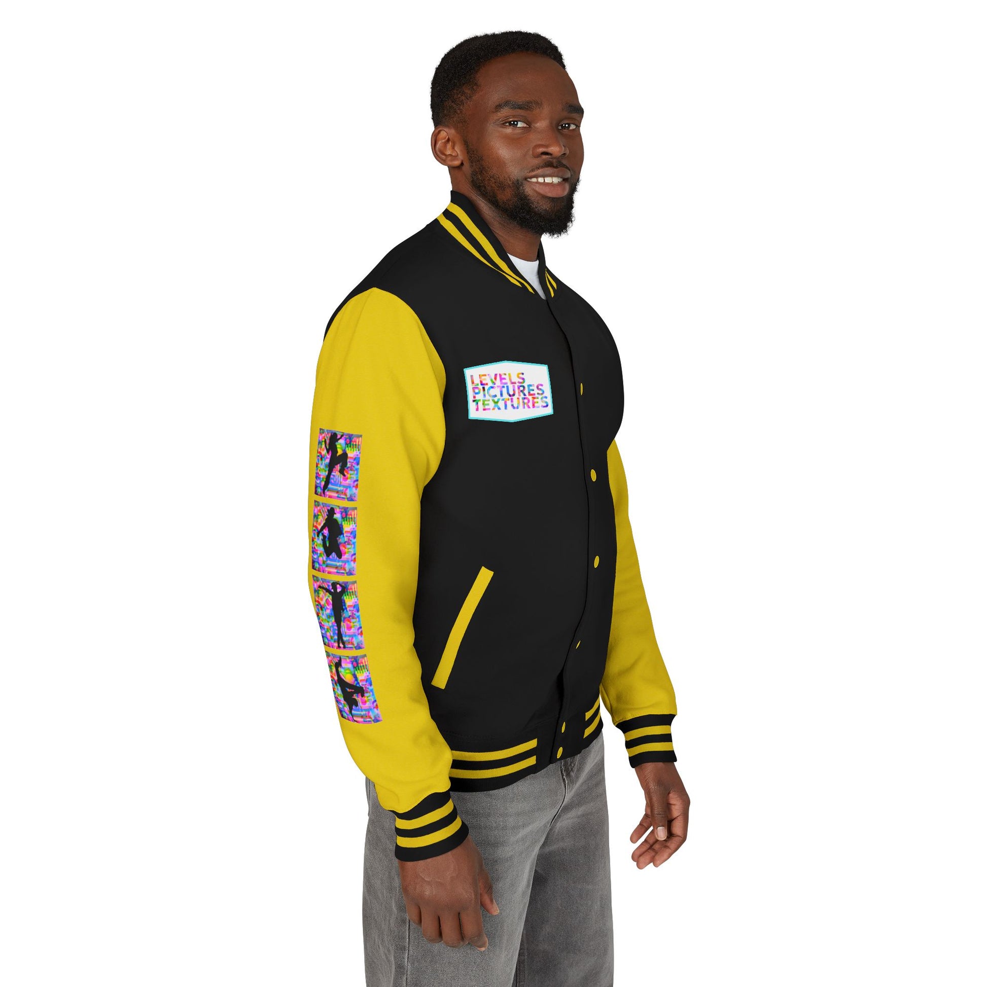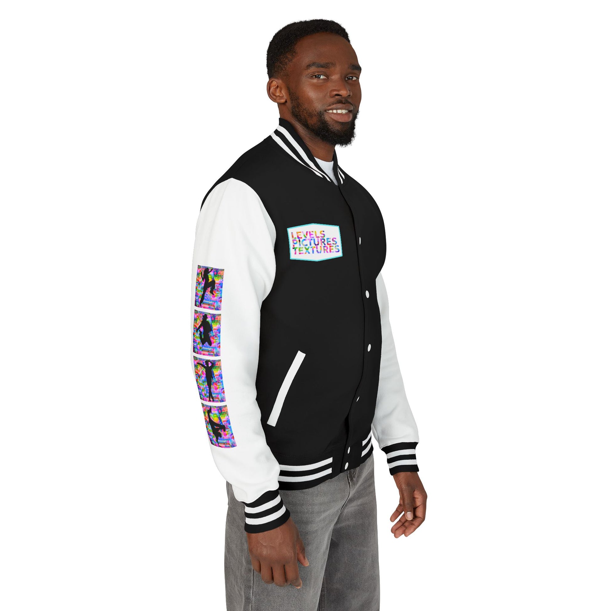 Levels Premium Collection Dance Letterman Jacket β Colorful Unisex Streetwear Varsity Jacket with "Levels Pictures Textures" Front and Dancer Silhouette Back Graphic