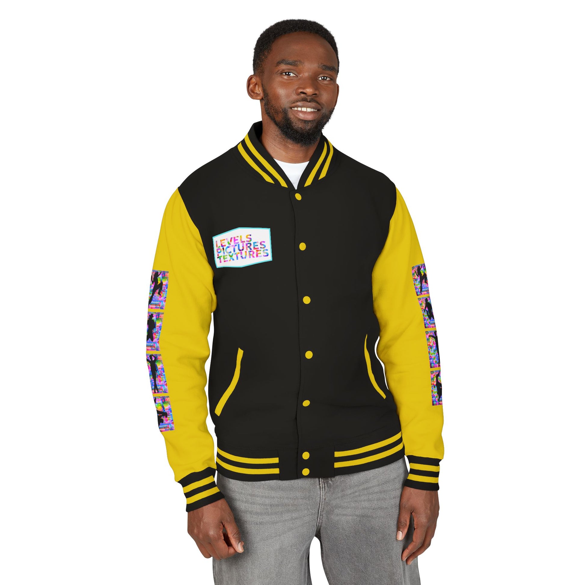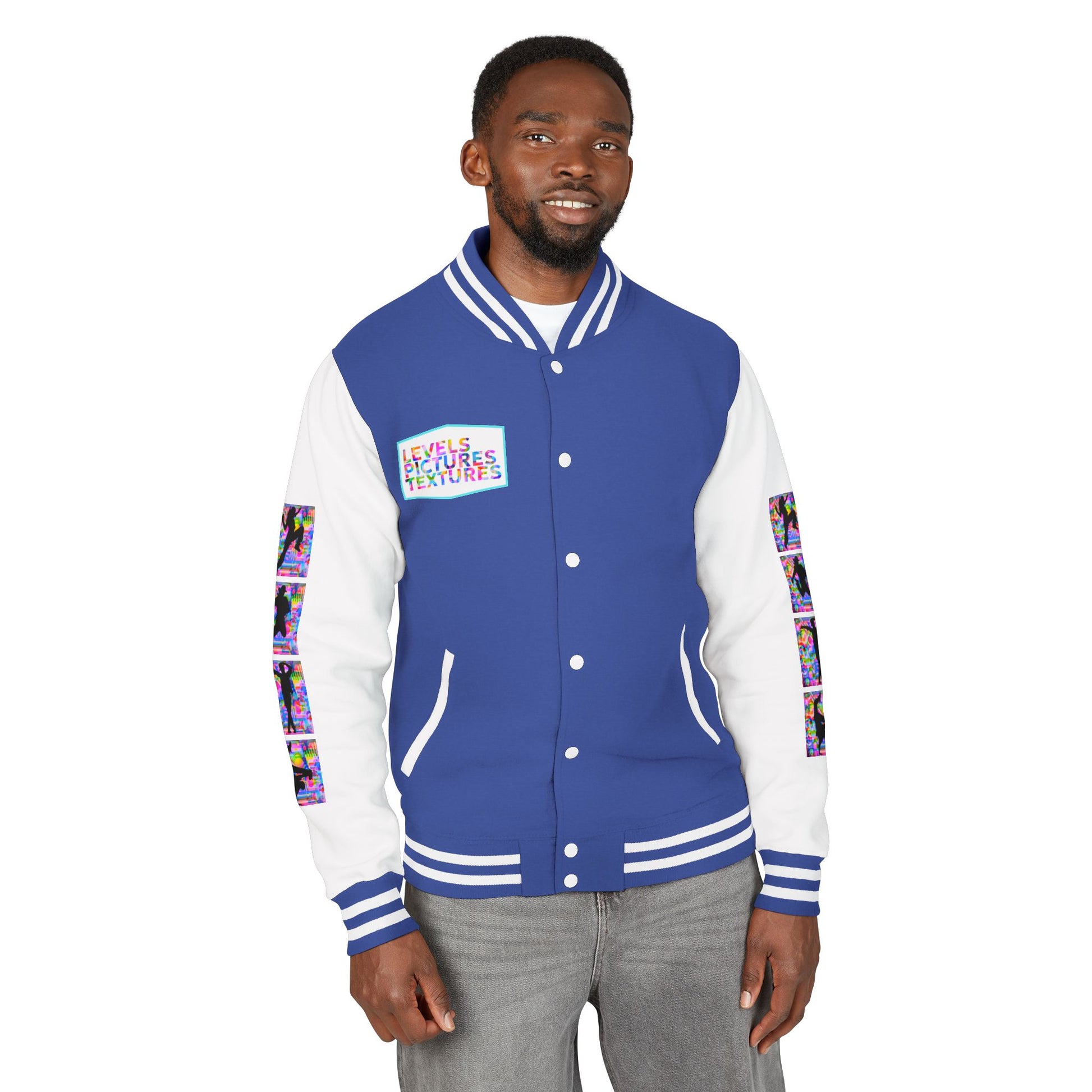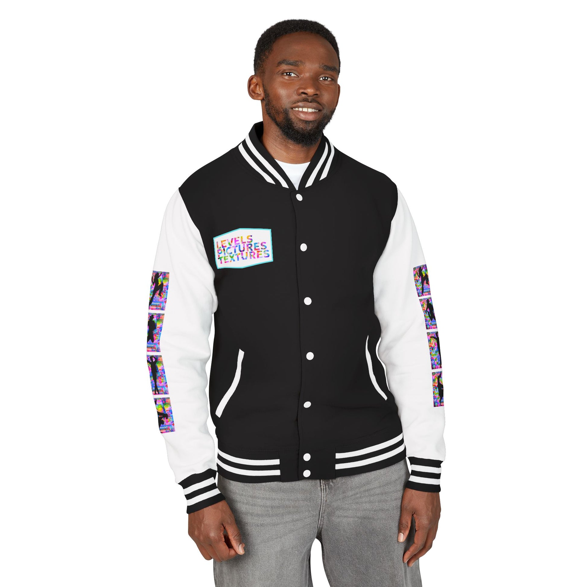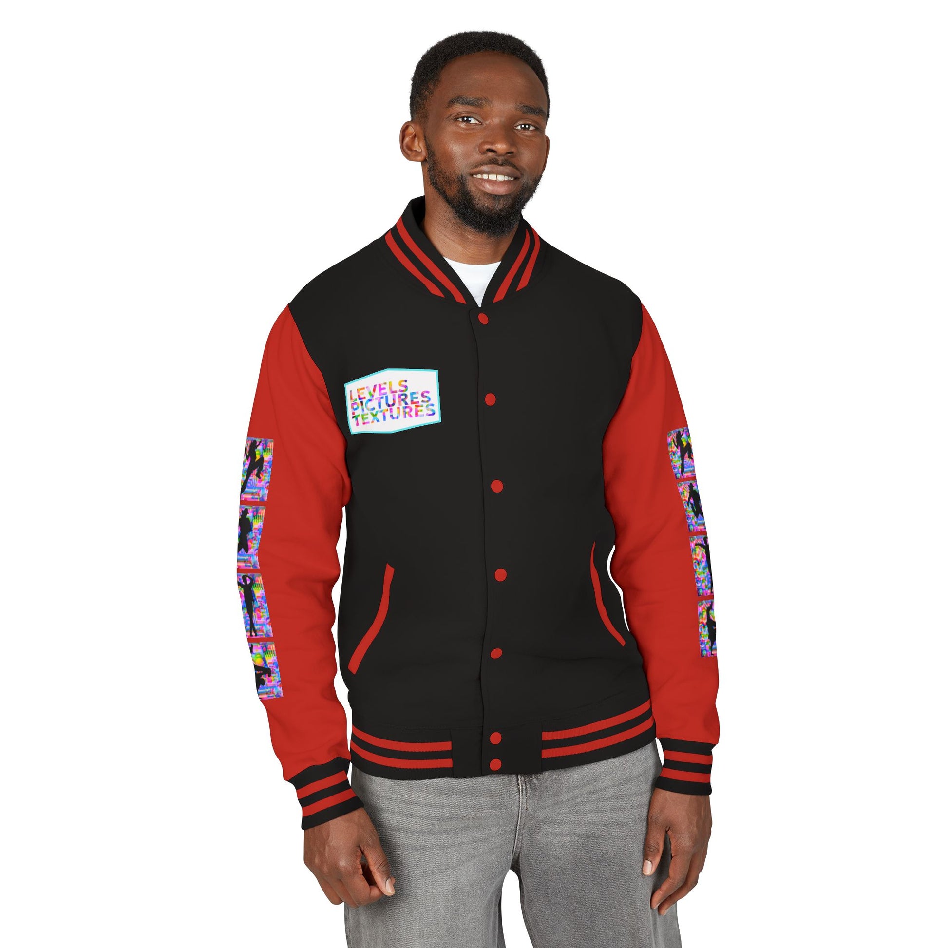 Levels Premium Collection Dance Letterman Jacket β Colorful Unisex Streetwear Varsity Jacket with "Levels Pictures Textures" Front and Dancer Silhouette Back Graphic