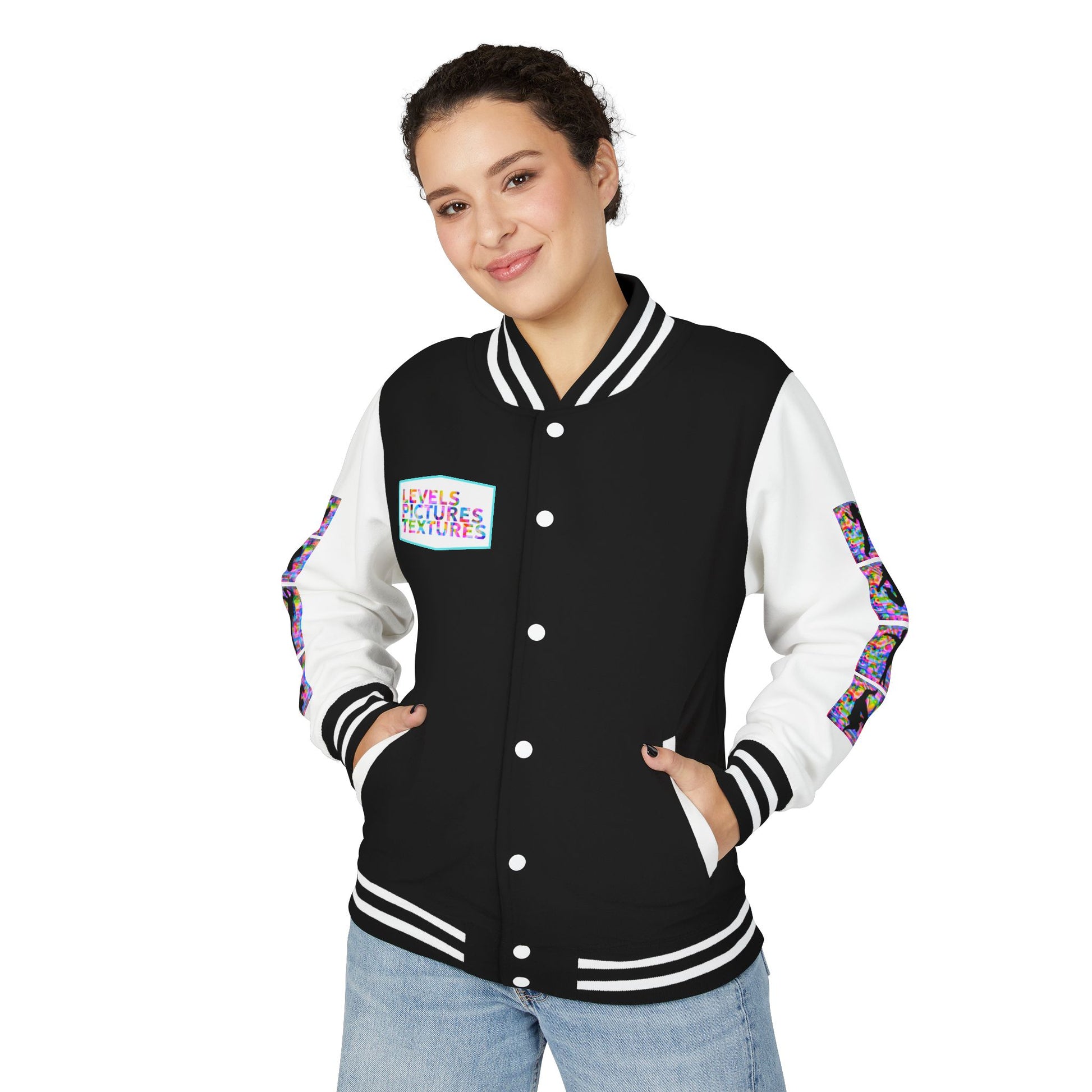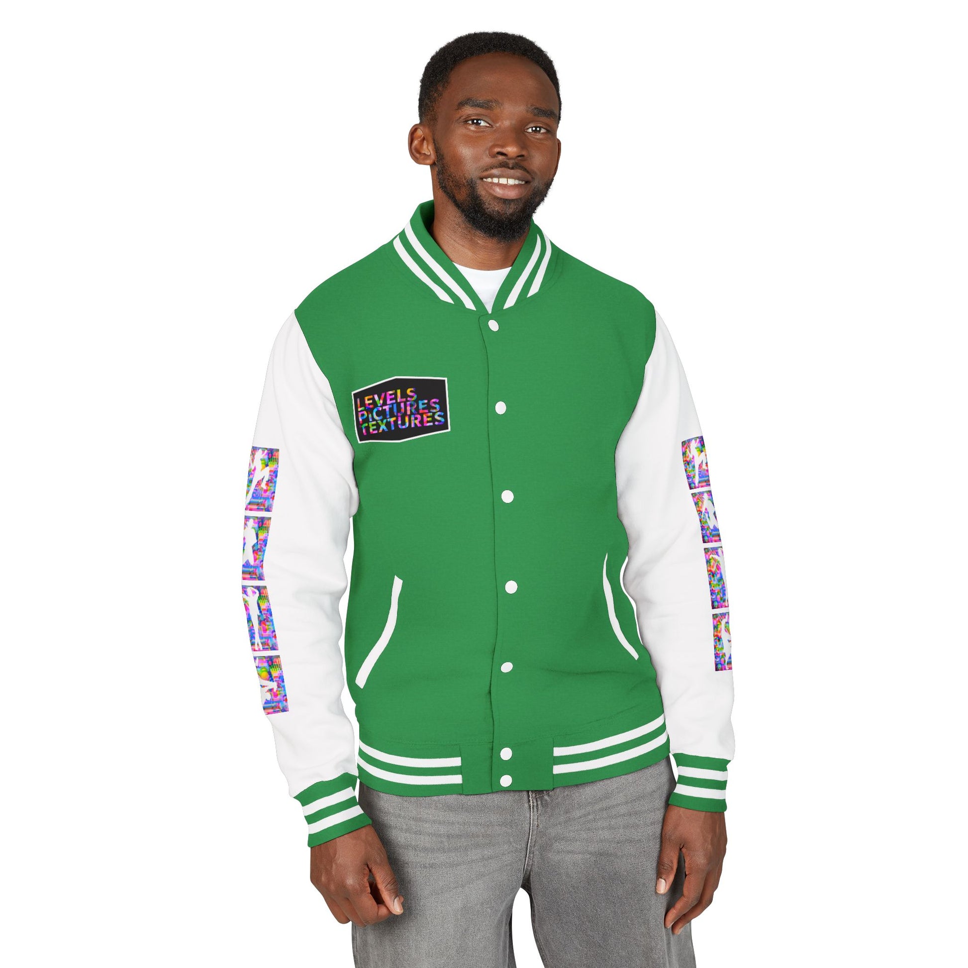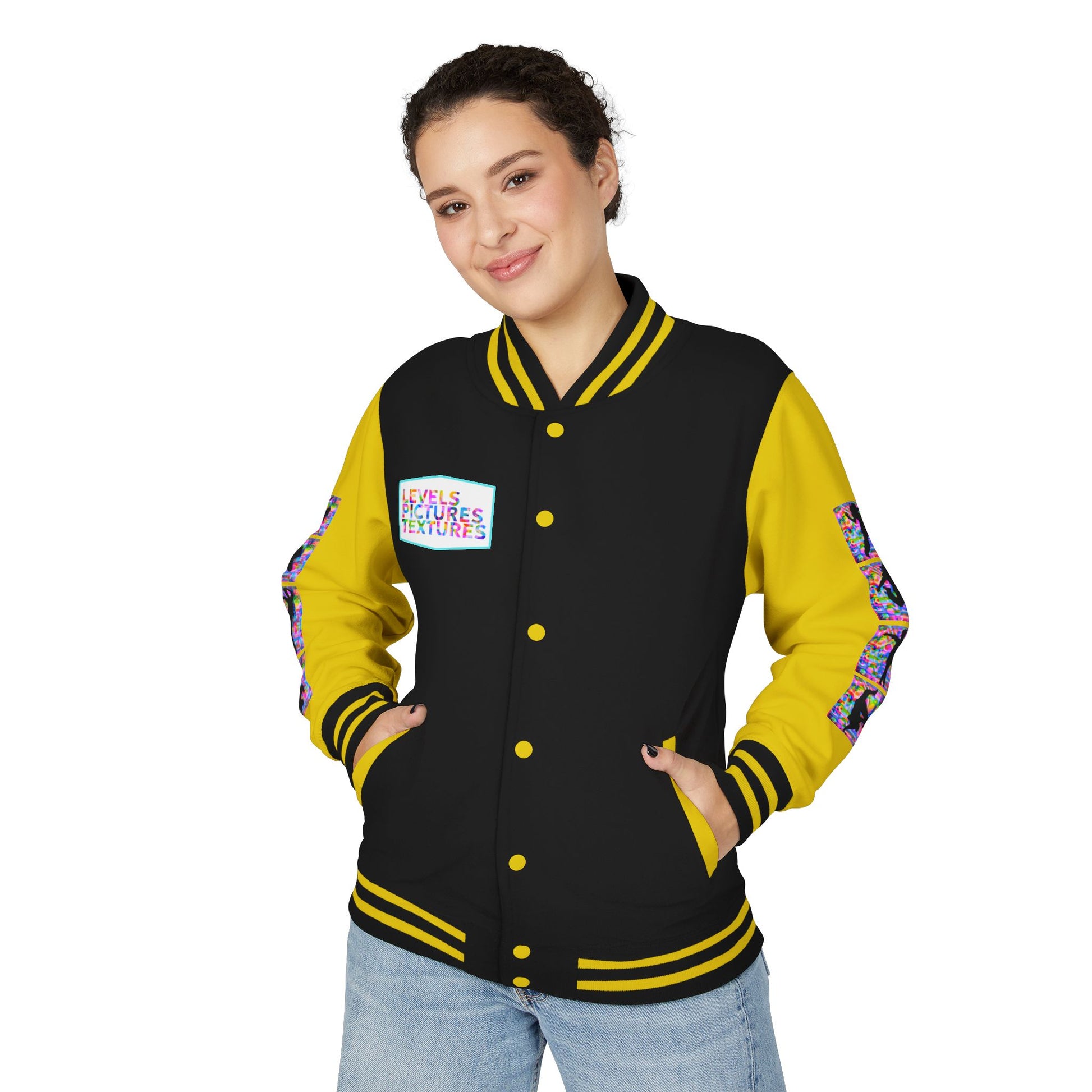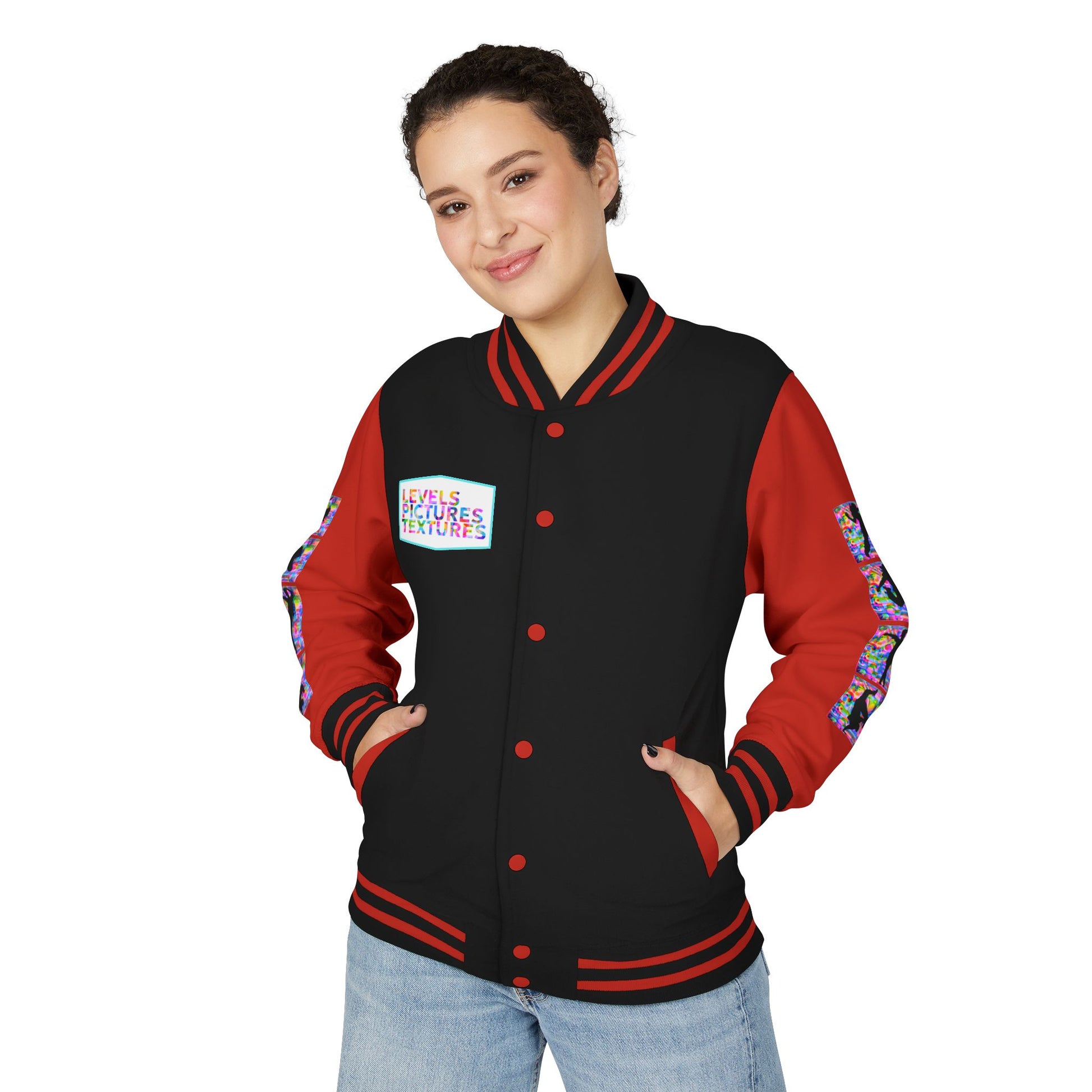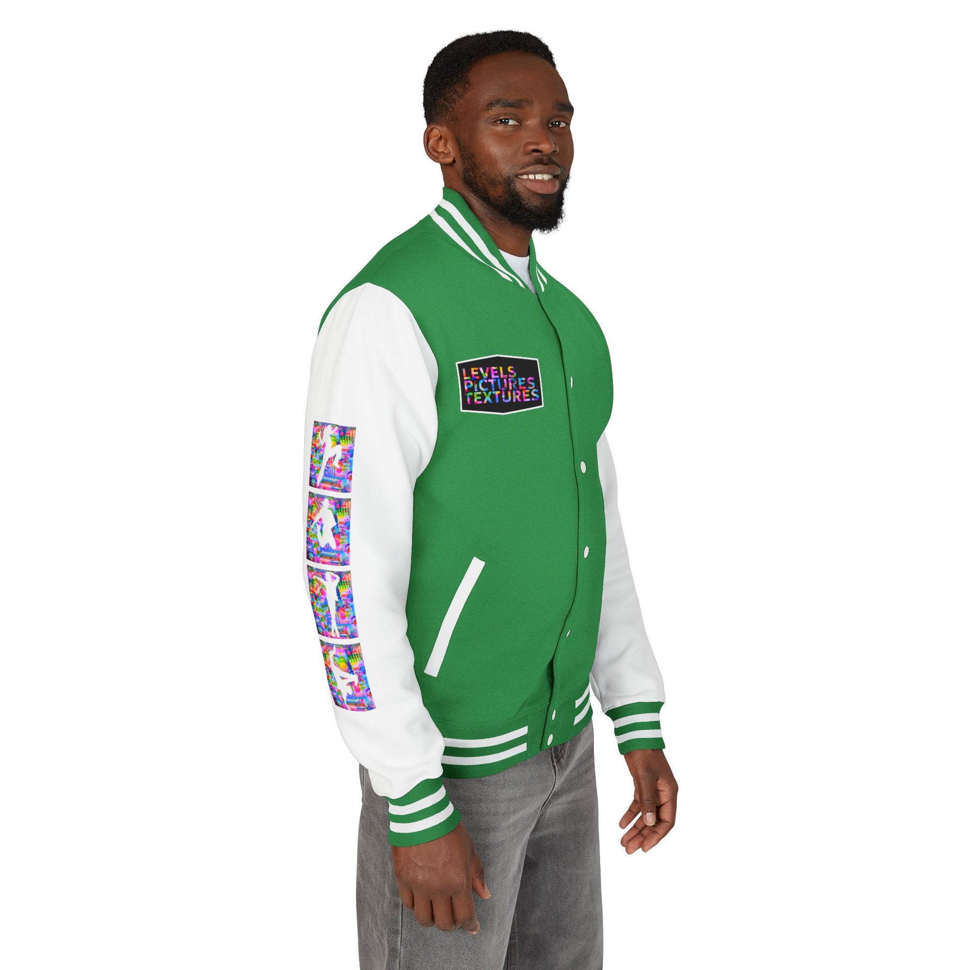 Levels Premium Collection Dance Letterman Jacket β Colorful Unisex Streetwear Varsity Jacket with "Levels Pictures Textures" Front and Dancer Silhouette Back Graphic