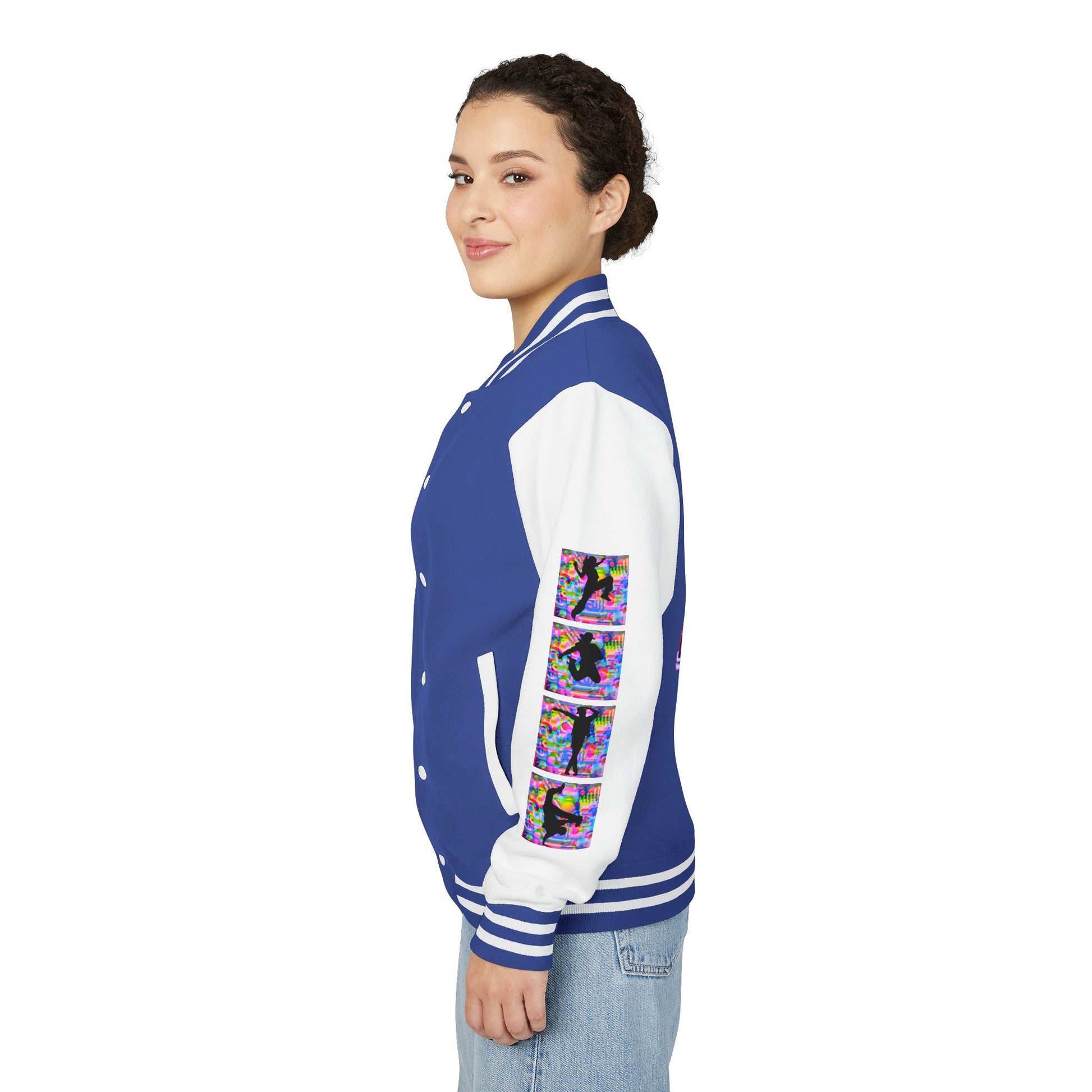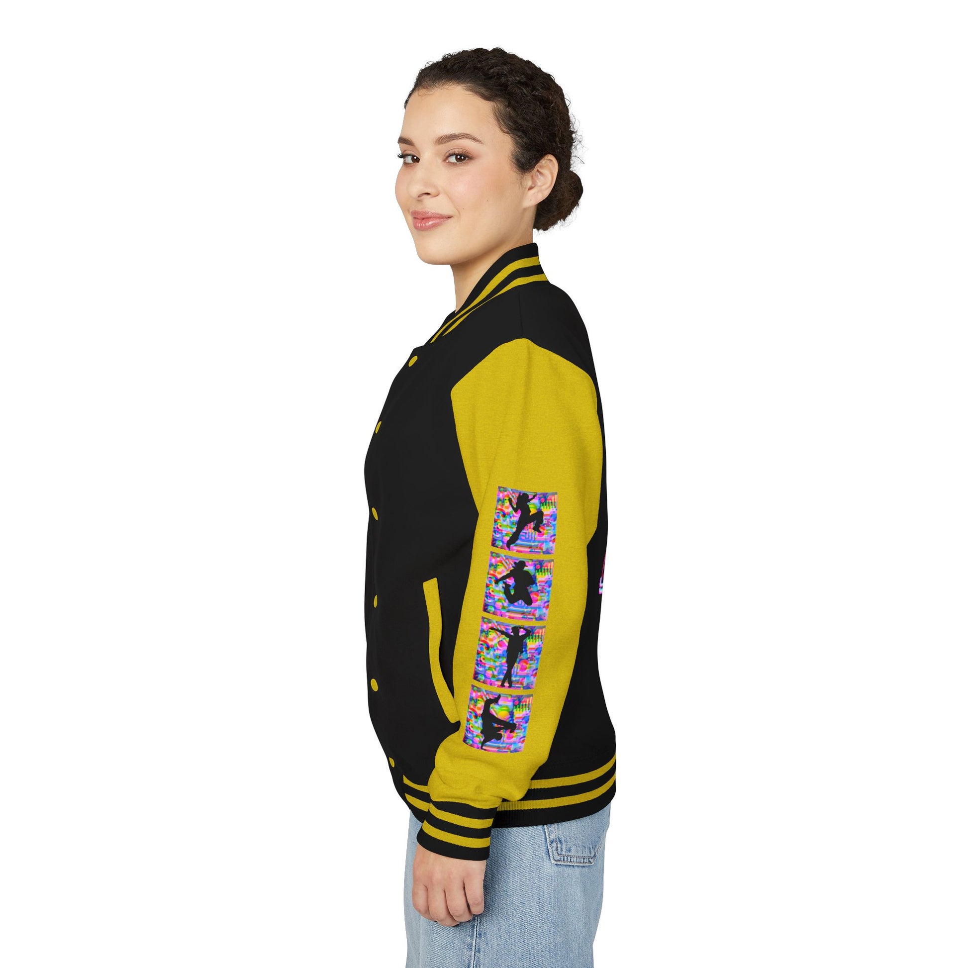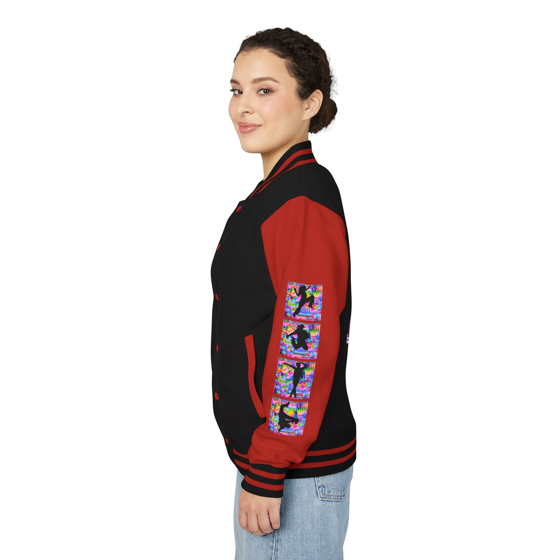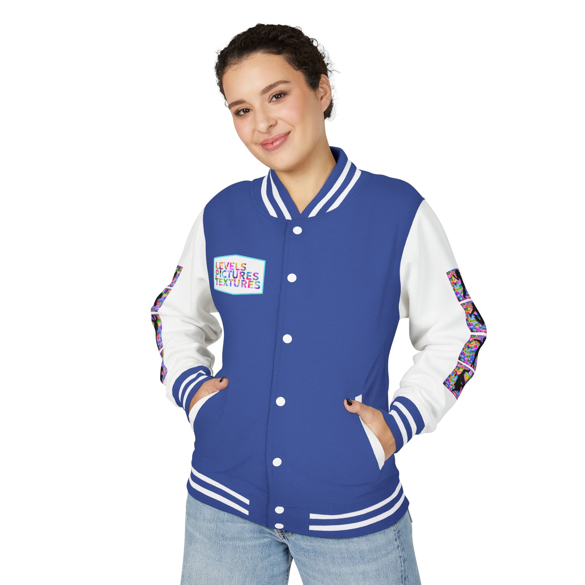 Levels Premium Collection Dance Letterman Jacket β Colorful Unisex Streetwear Varsity Jacket with "Levels Pictures Textures" Front and Dancer Silhouette Back Graphic