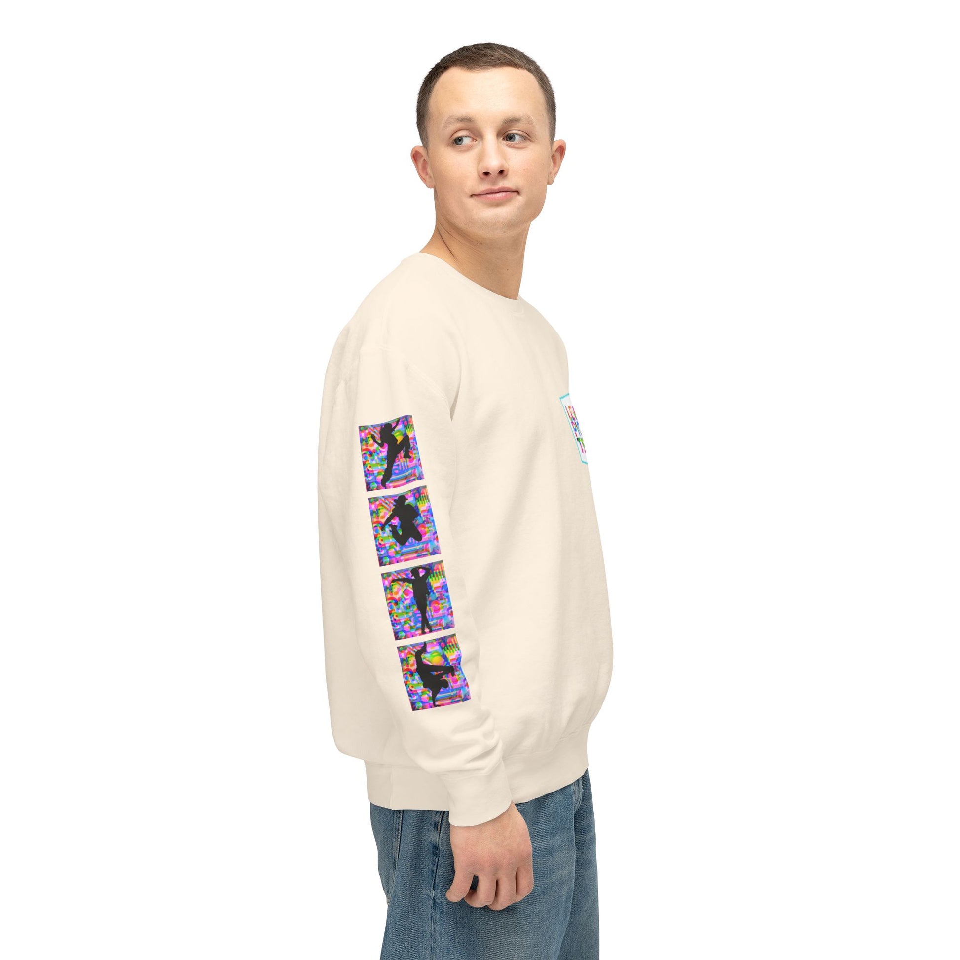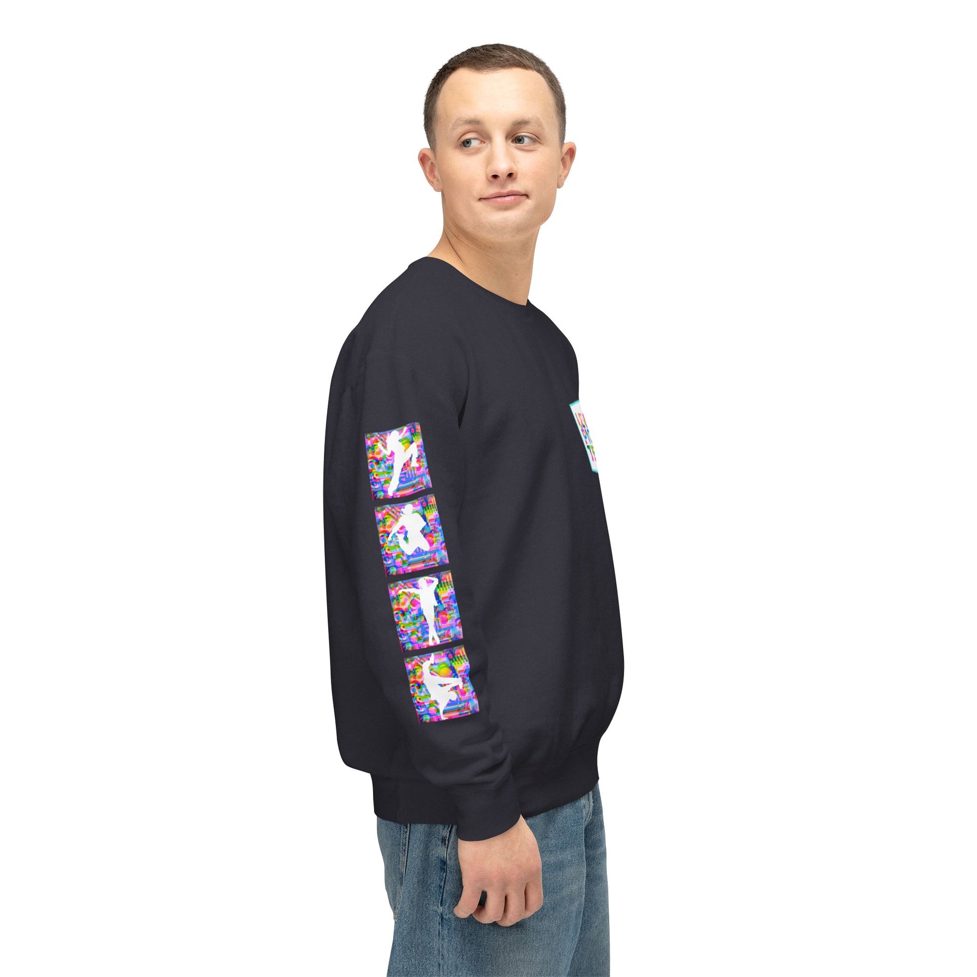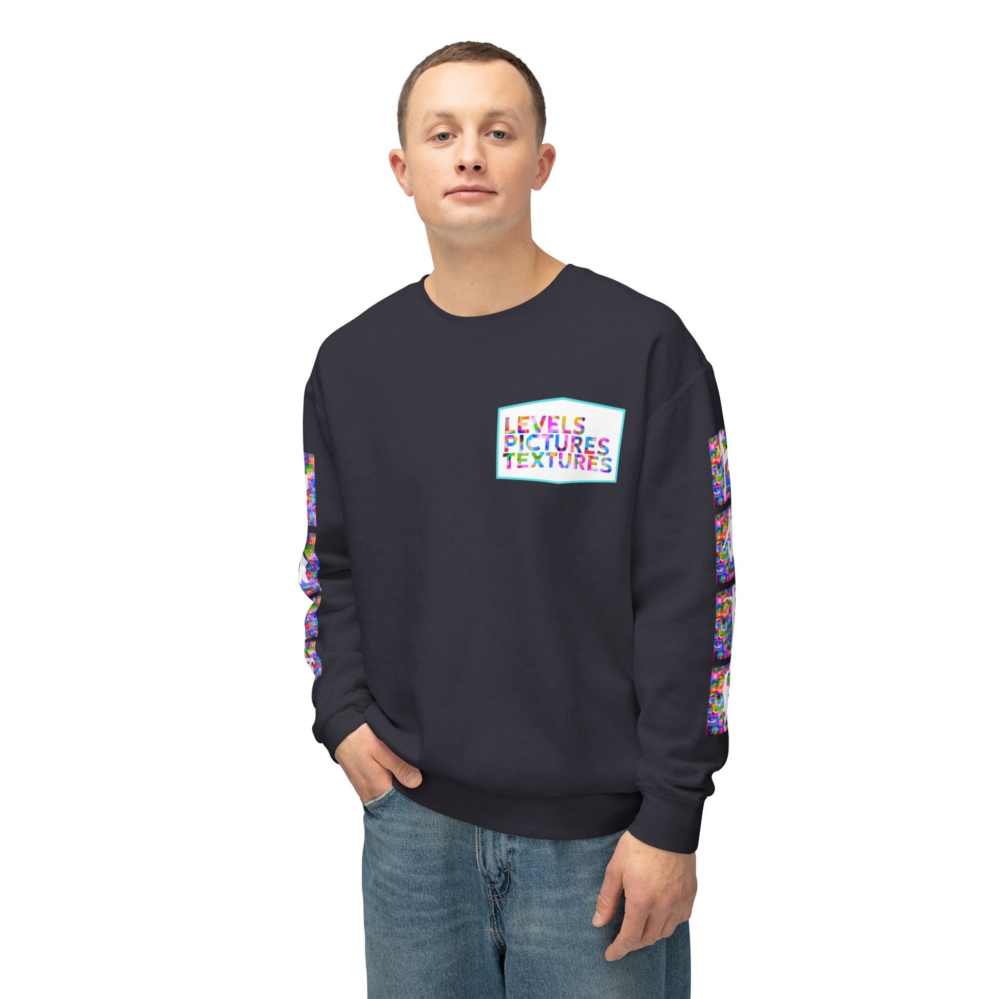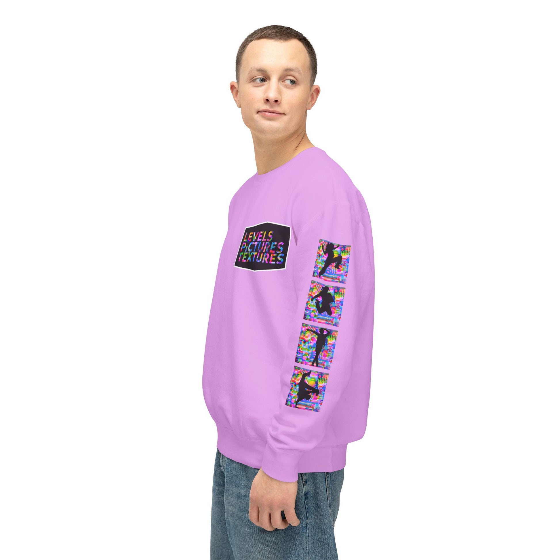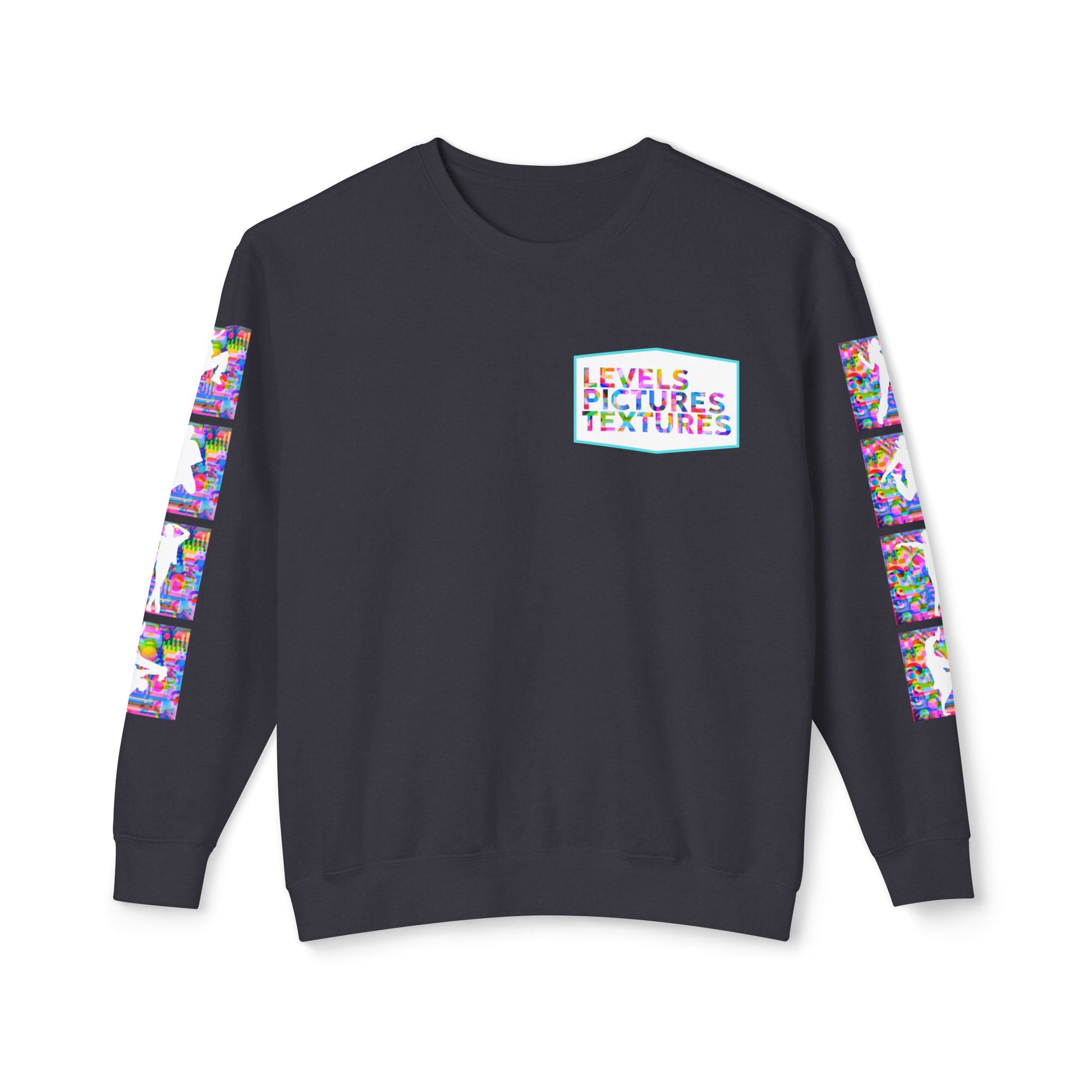 Levels Premium Collection Dance Crewneck Sweatshirt – Vibrant Unisex Streetwear Pullover with "Levels Pictures Textures" Front Text and Dancer Silhouettes on Sleeves