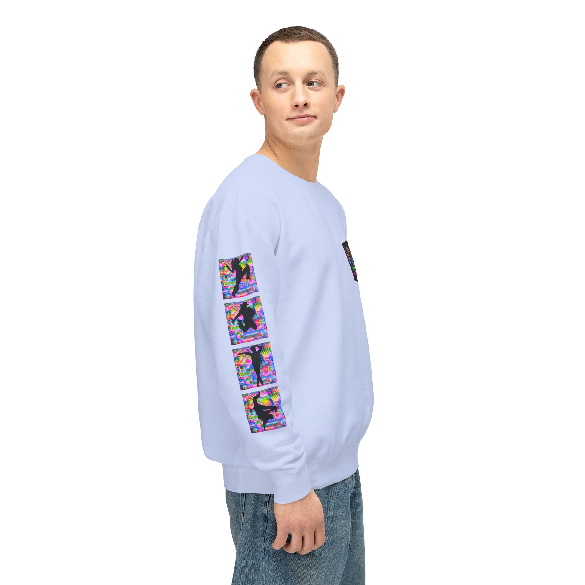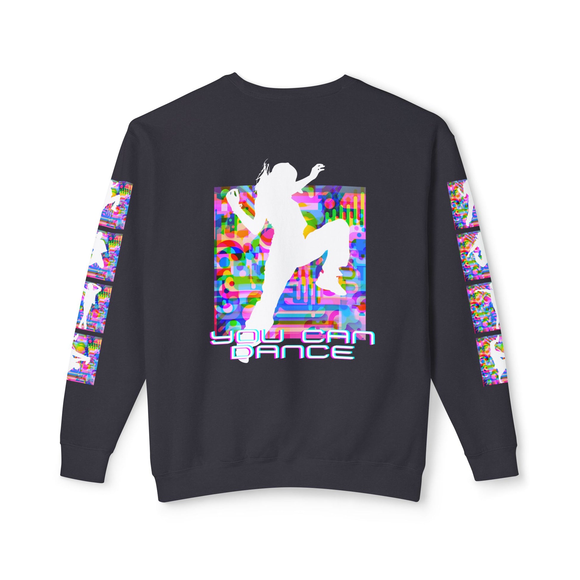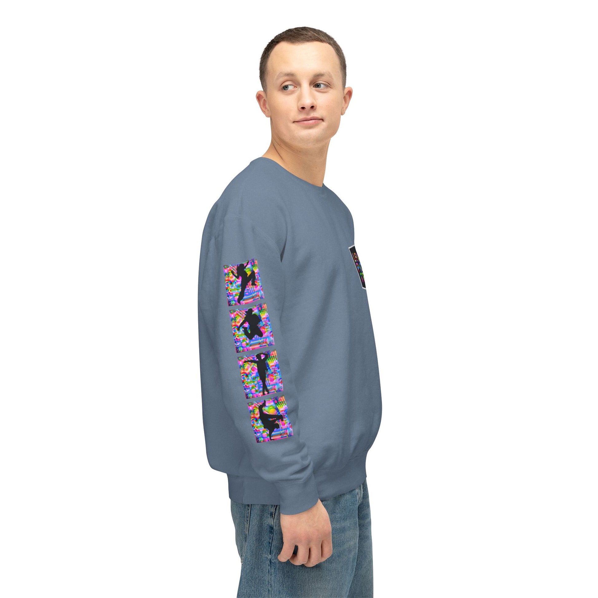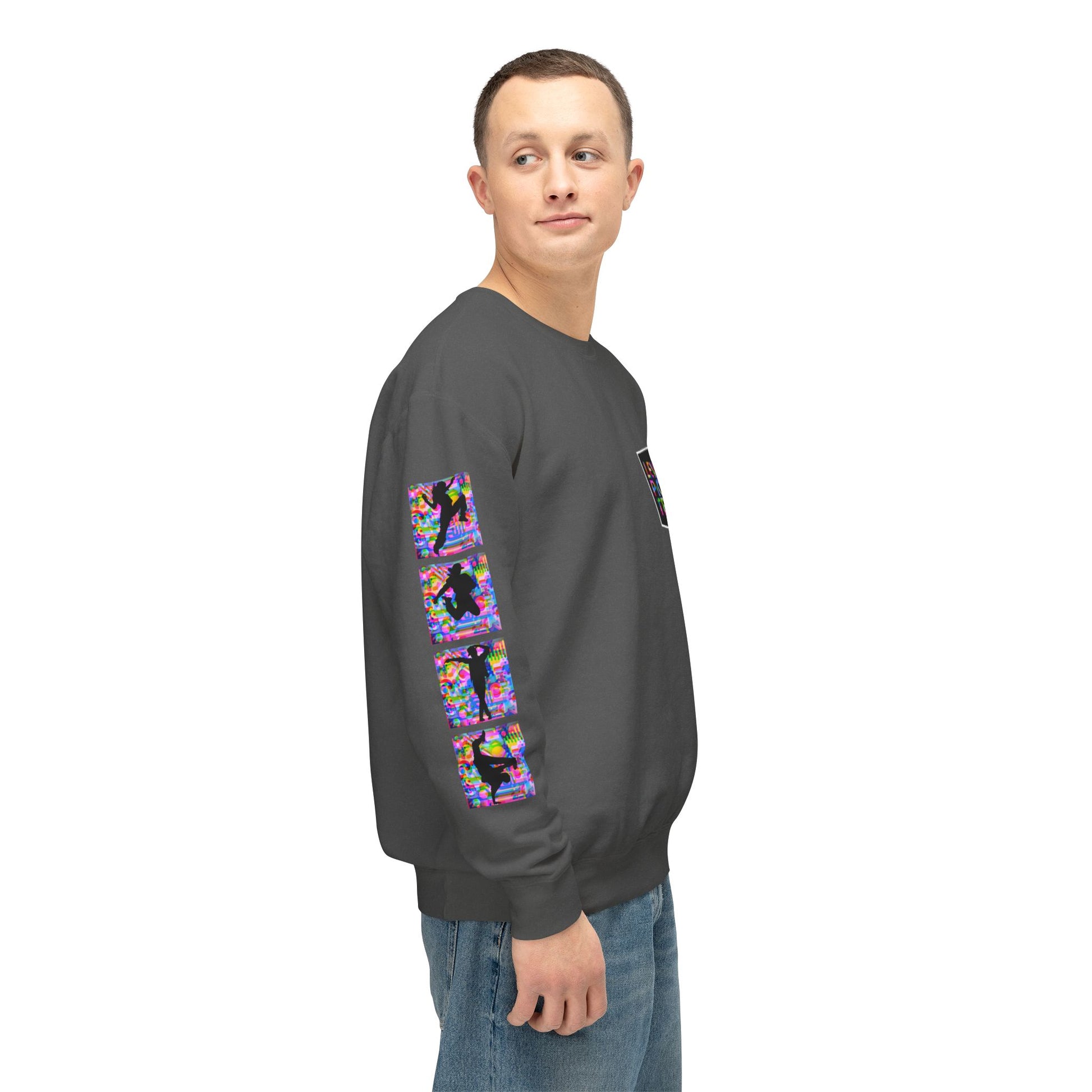 Levels Premium Collection Dance Crewneck Sweatshirt – Vibrant Unisex Streetwear Pullover with "Levels Pictures Textures" Front Text and Dancer Silhouettes on Sleeves