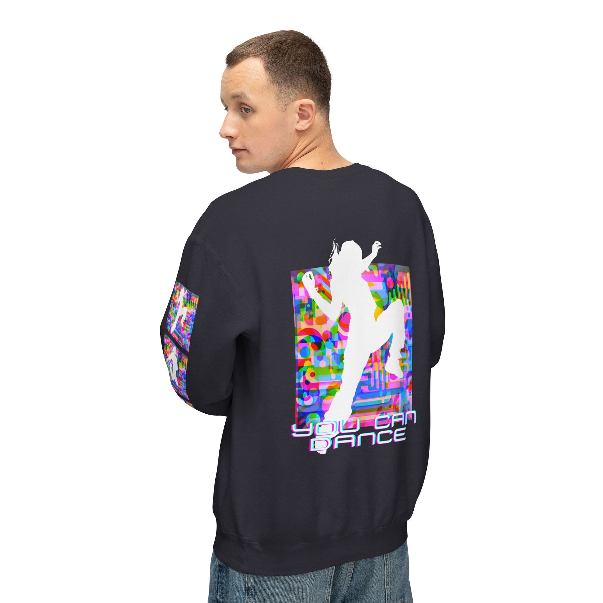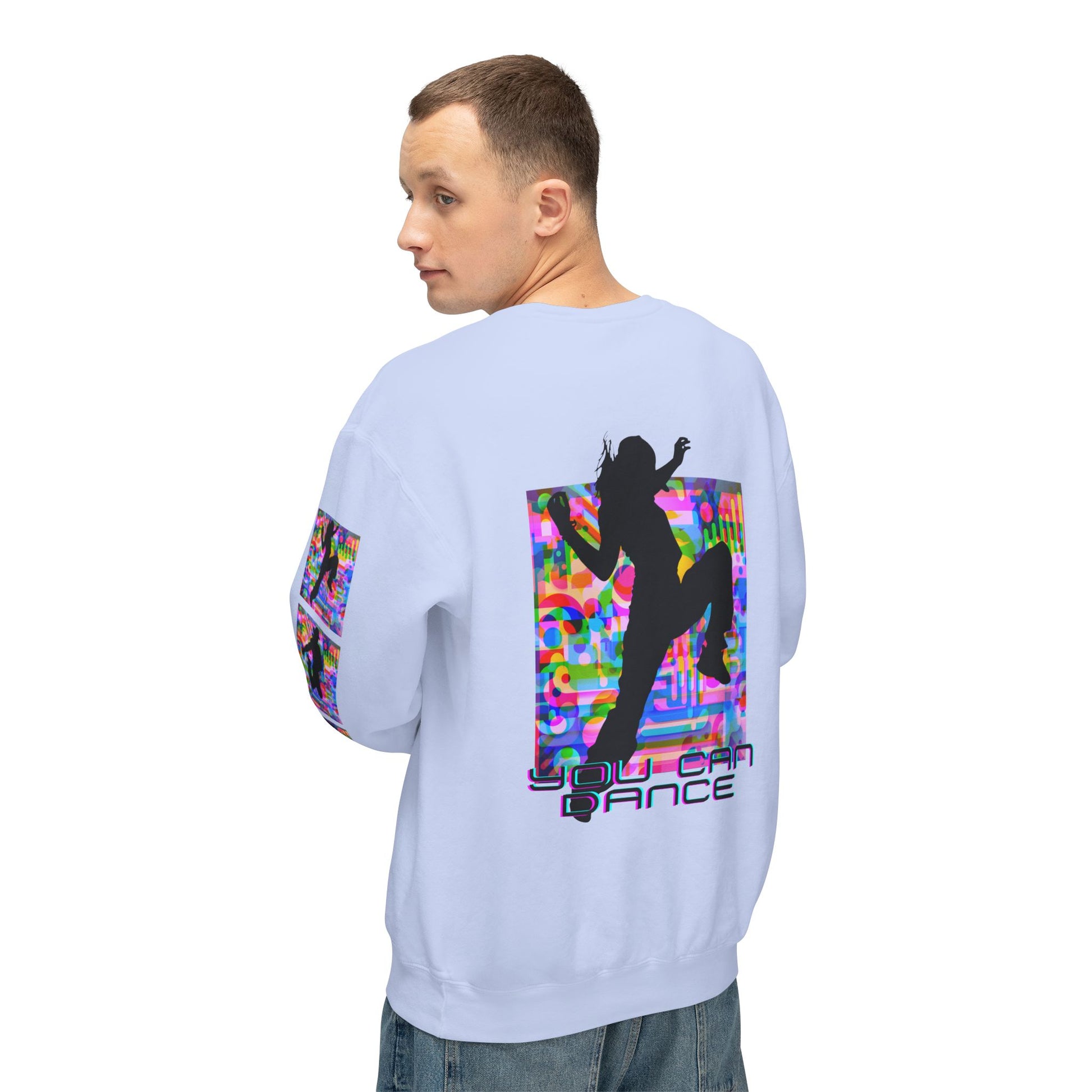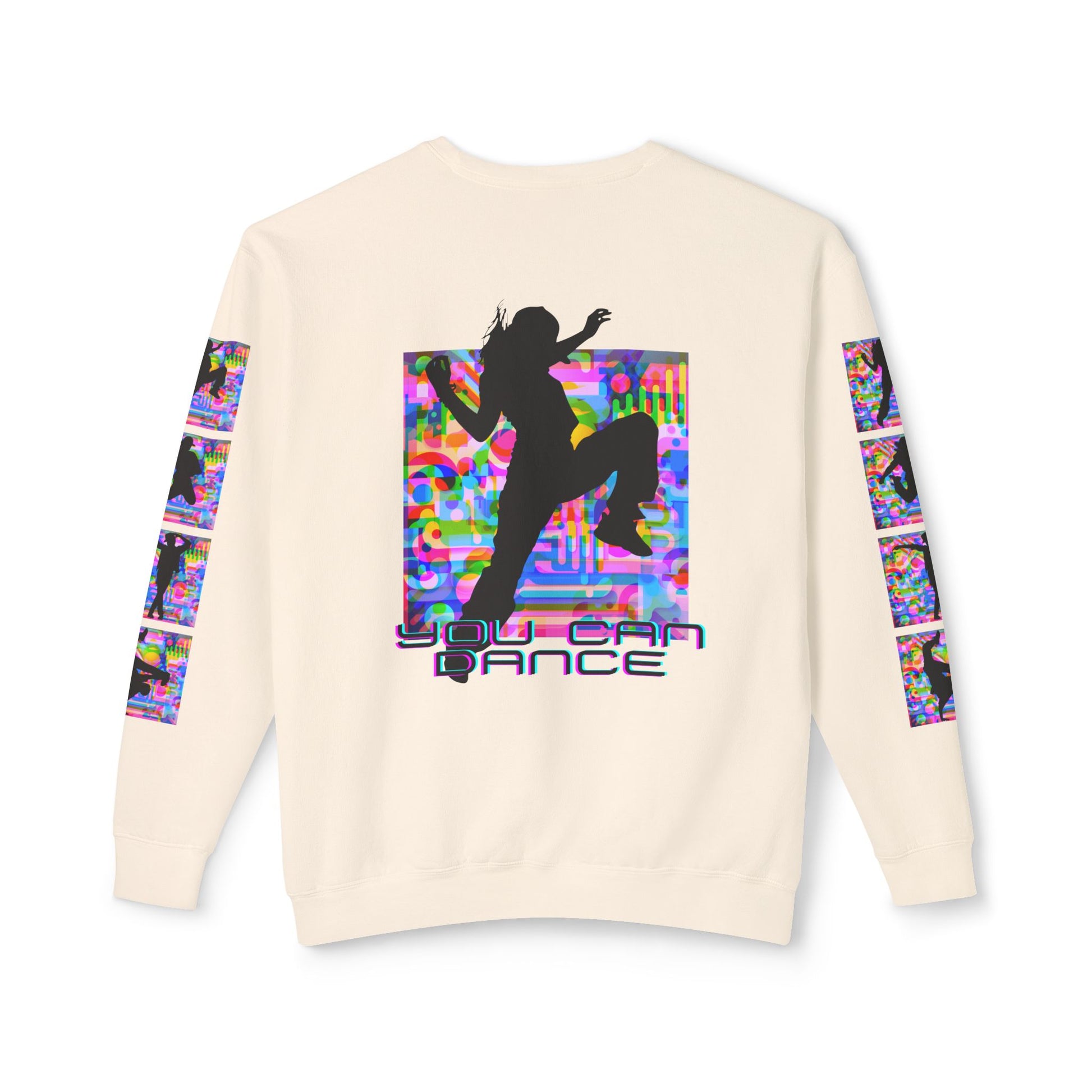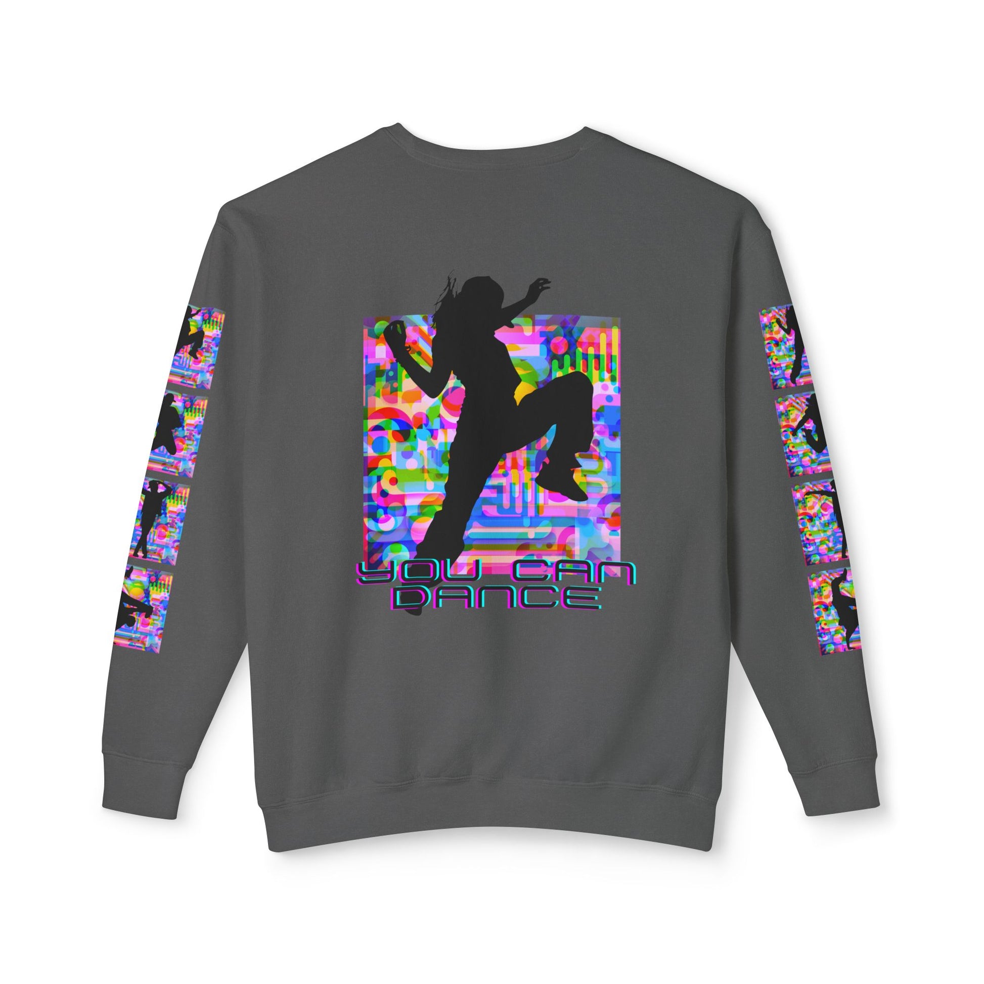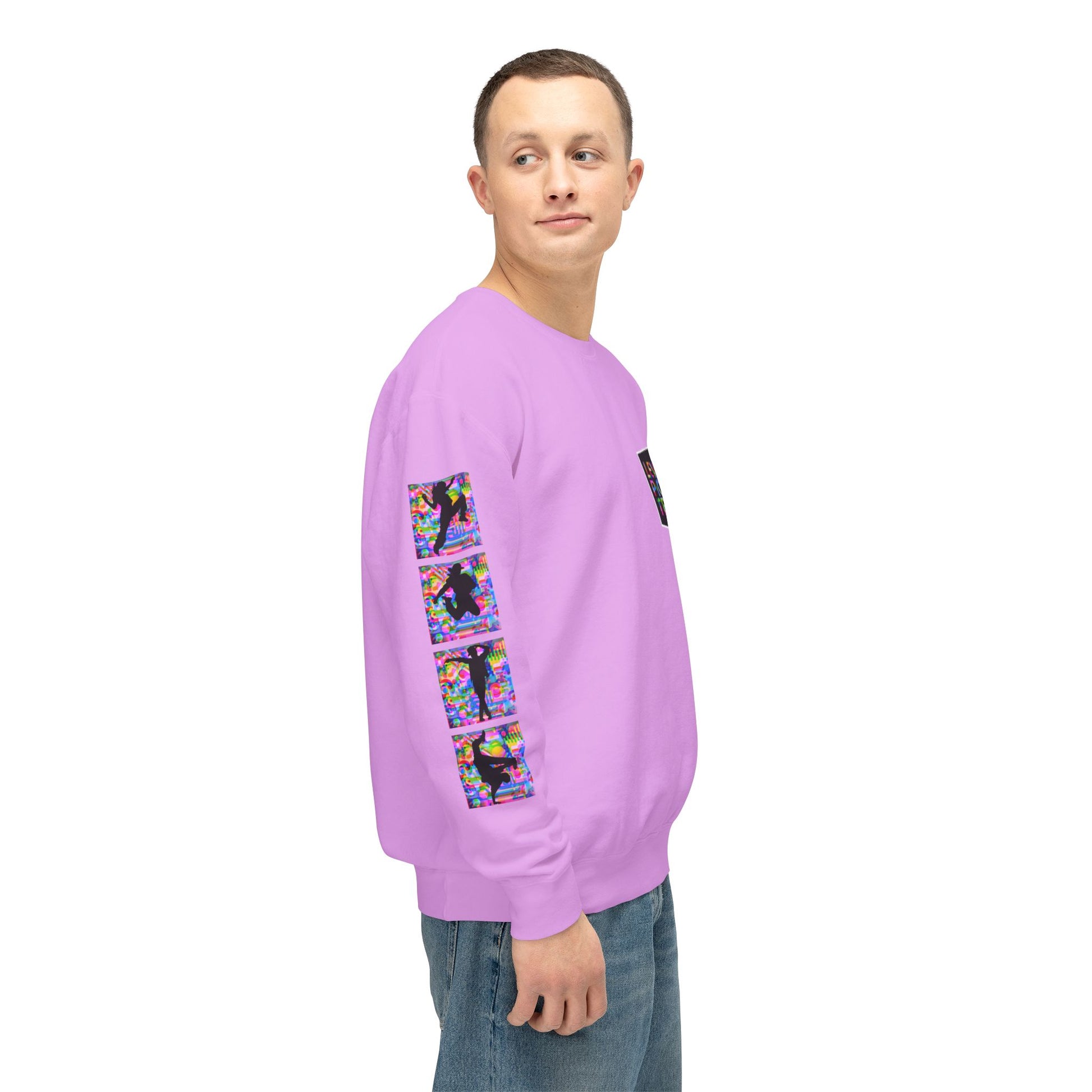 Levels Premium Collection Dance Crewneck Sweatshirt – Vibrant Unisex Streetwear Pullover with "Levels Pictures Textures" Front Text and Dancer Silhouettes on Sleeves