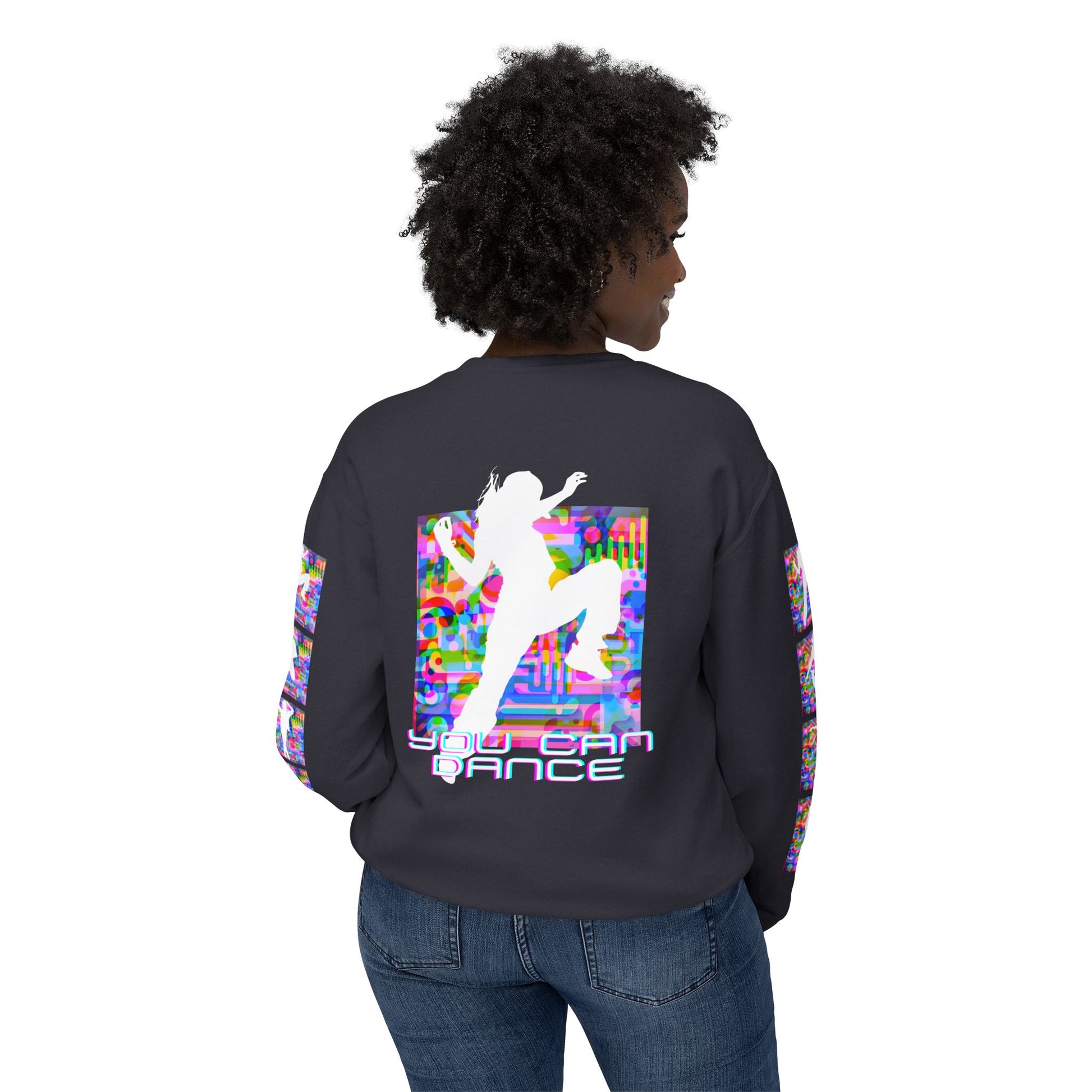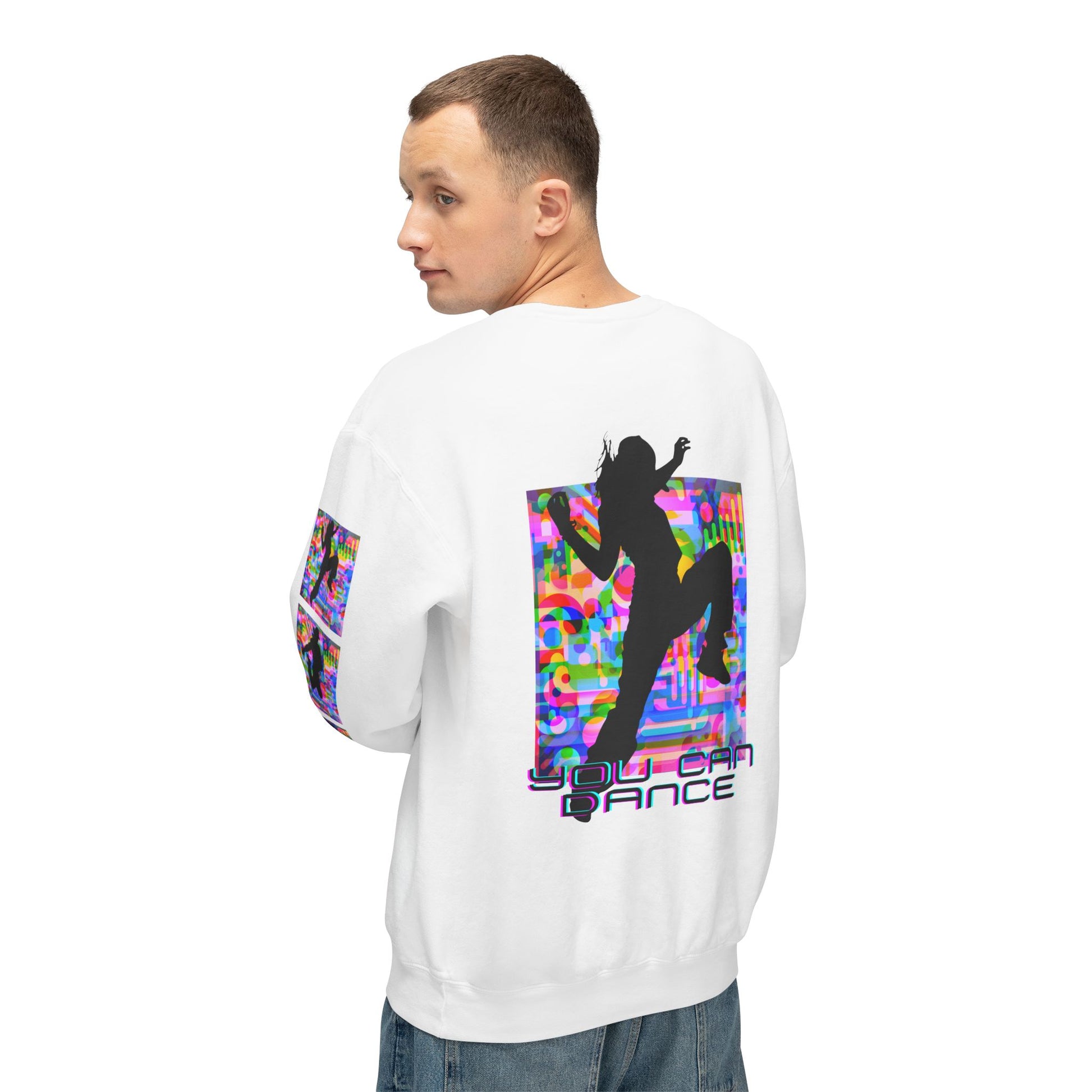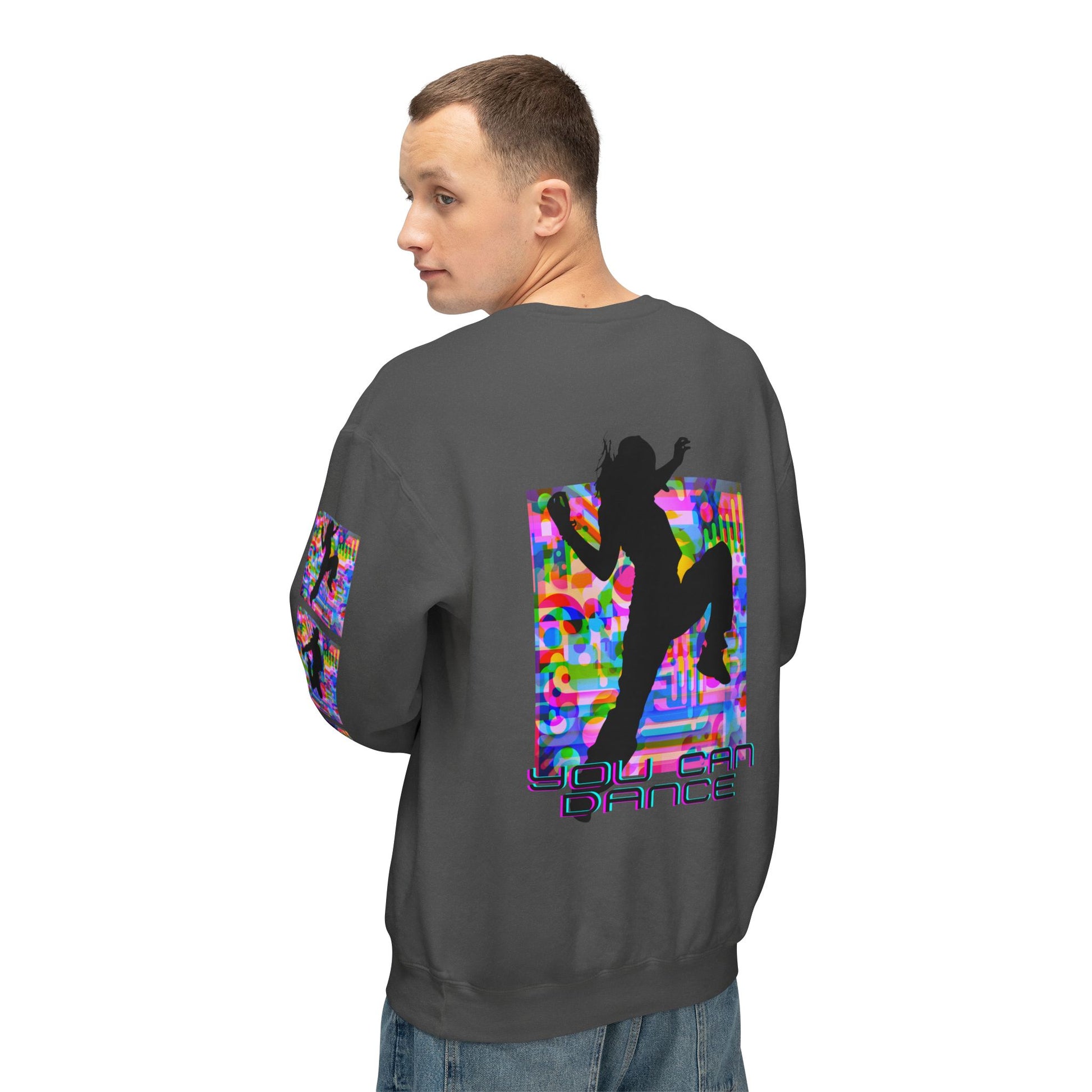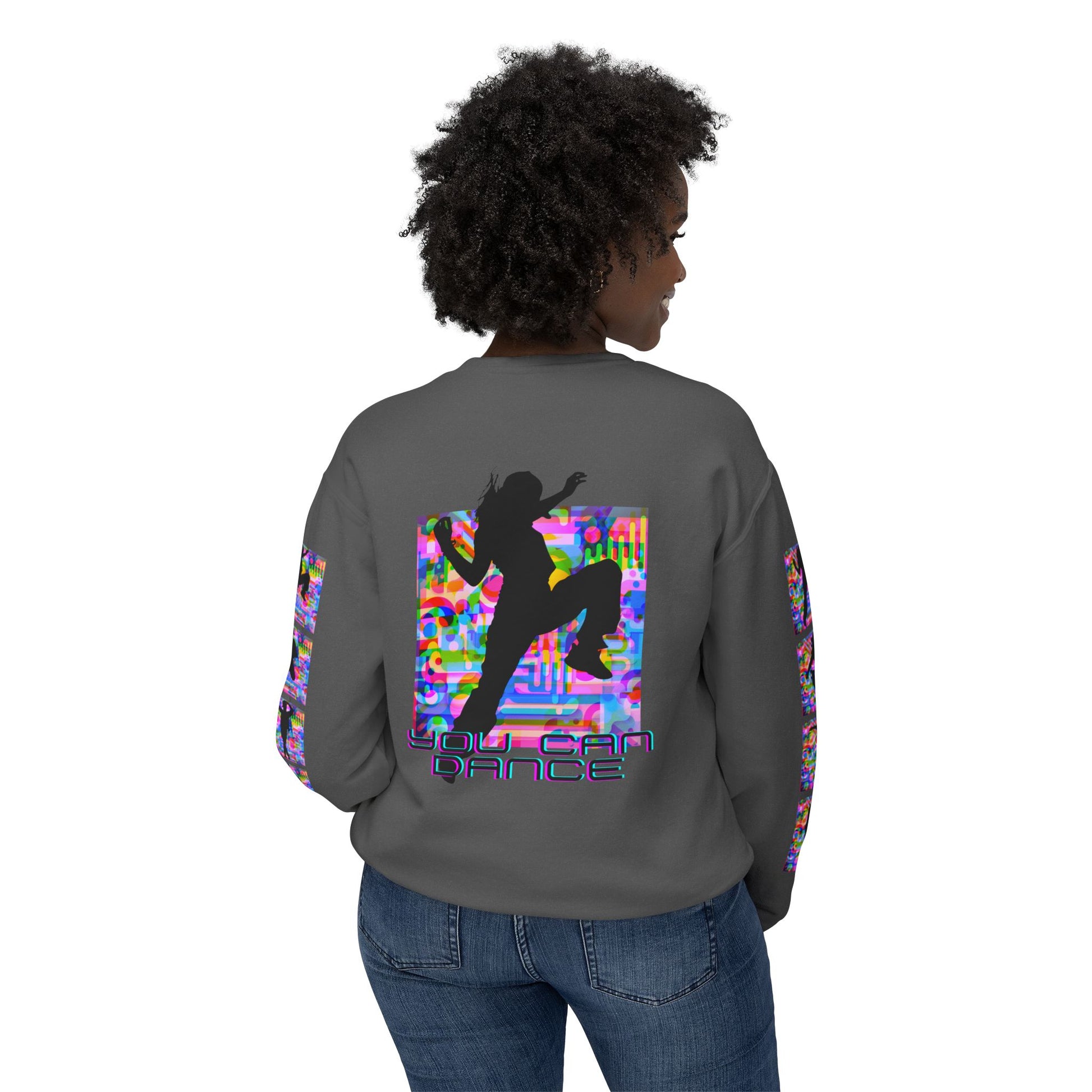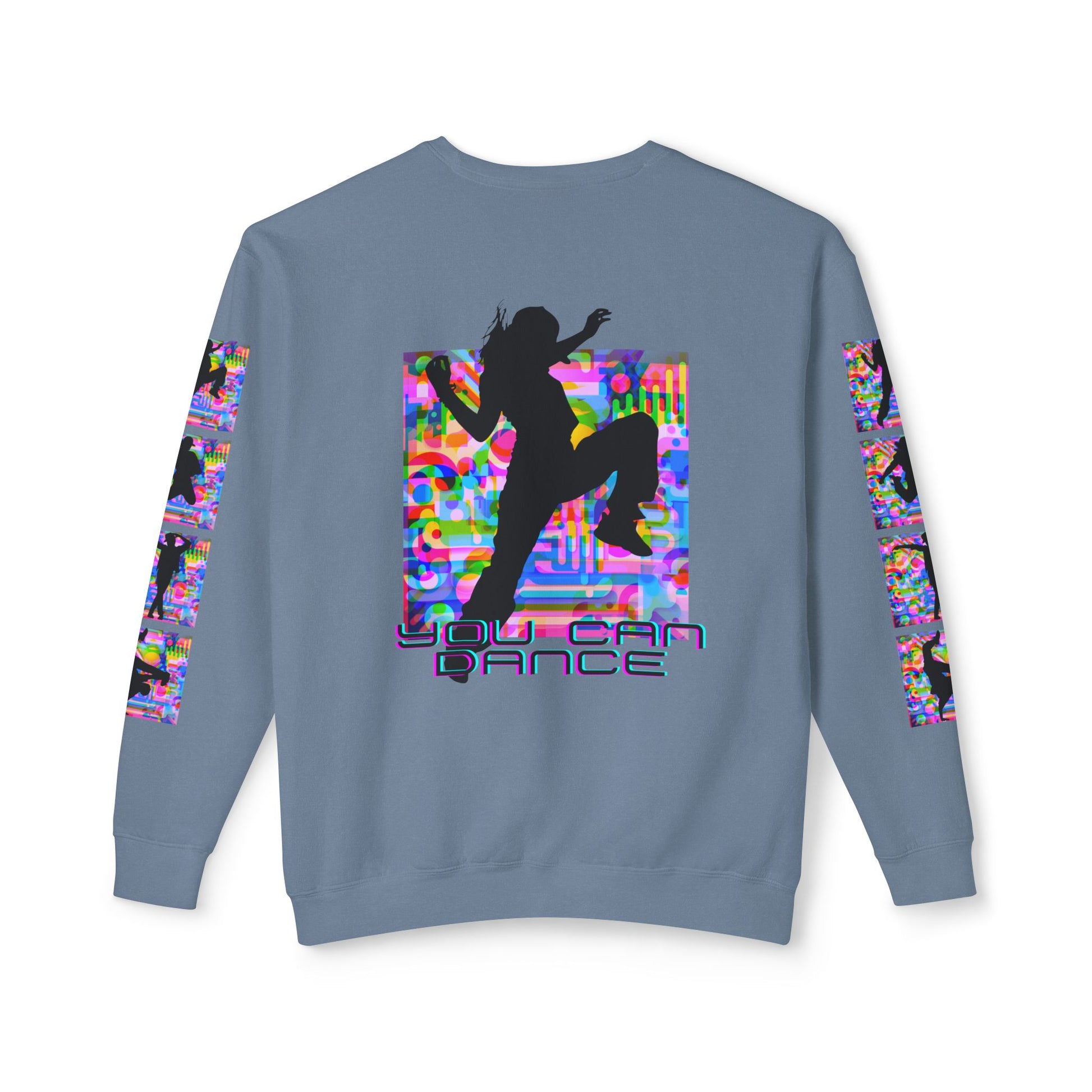Levels Premium Collection Dance Crewneck Sweatshirt – Vibrant Unisex Streetwear Pullover with "Levels Pictures Textures" Front Text and Dancer Silhouettes on Sleeves