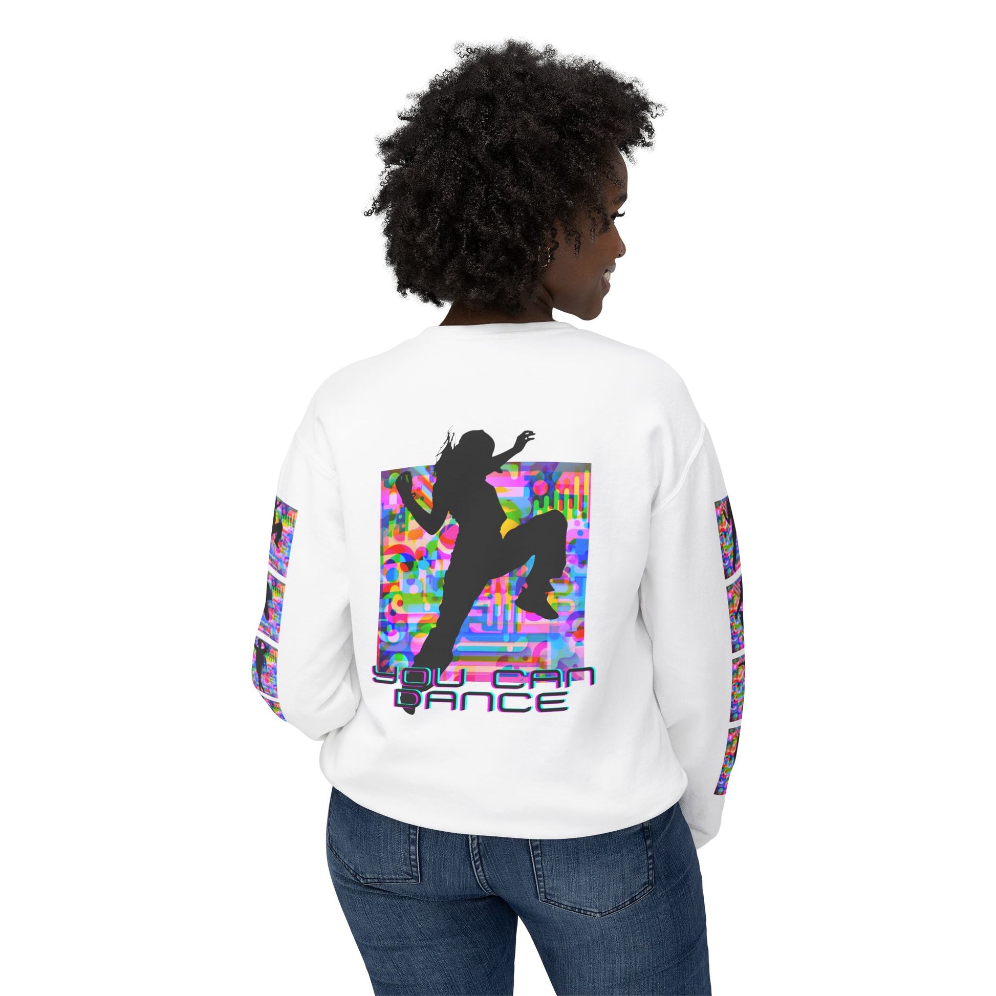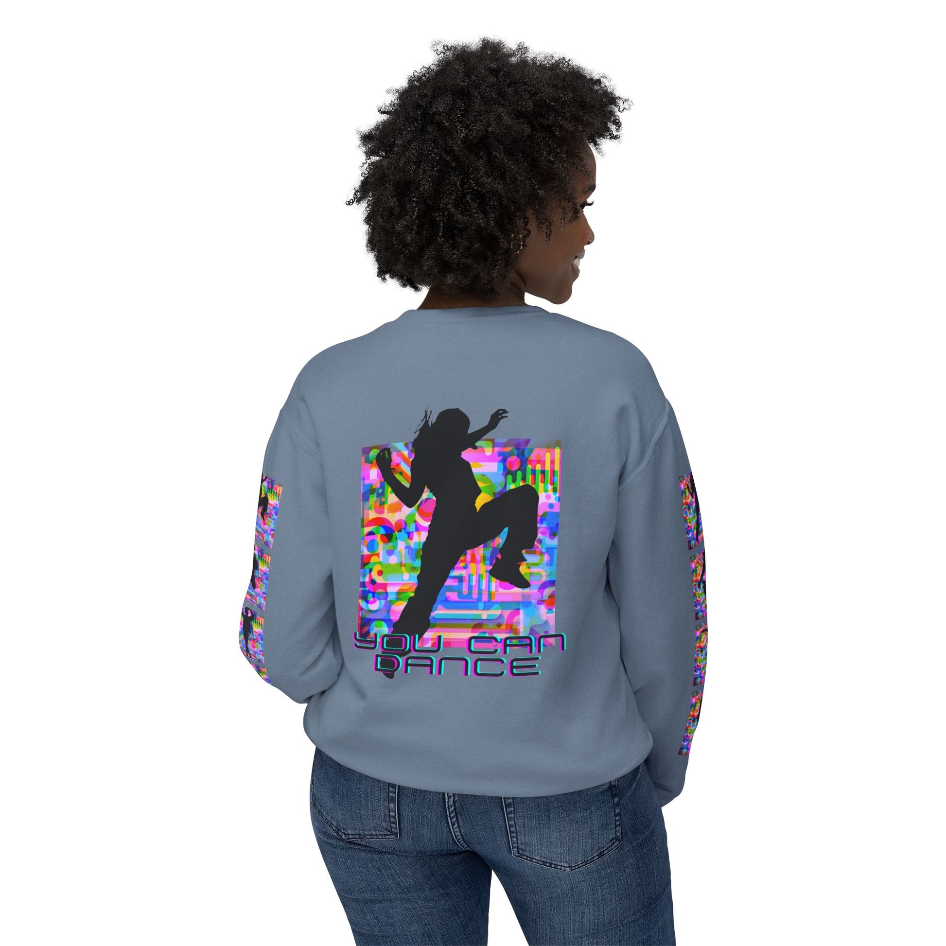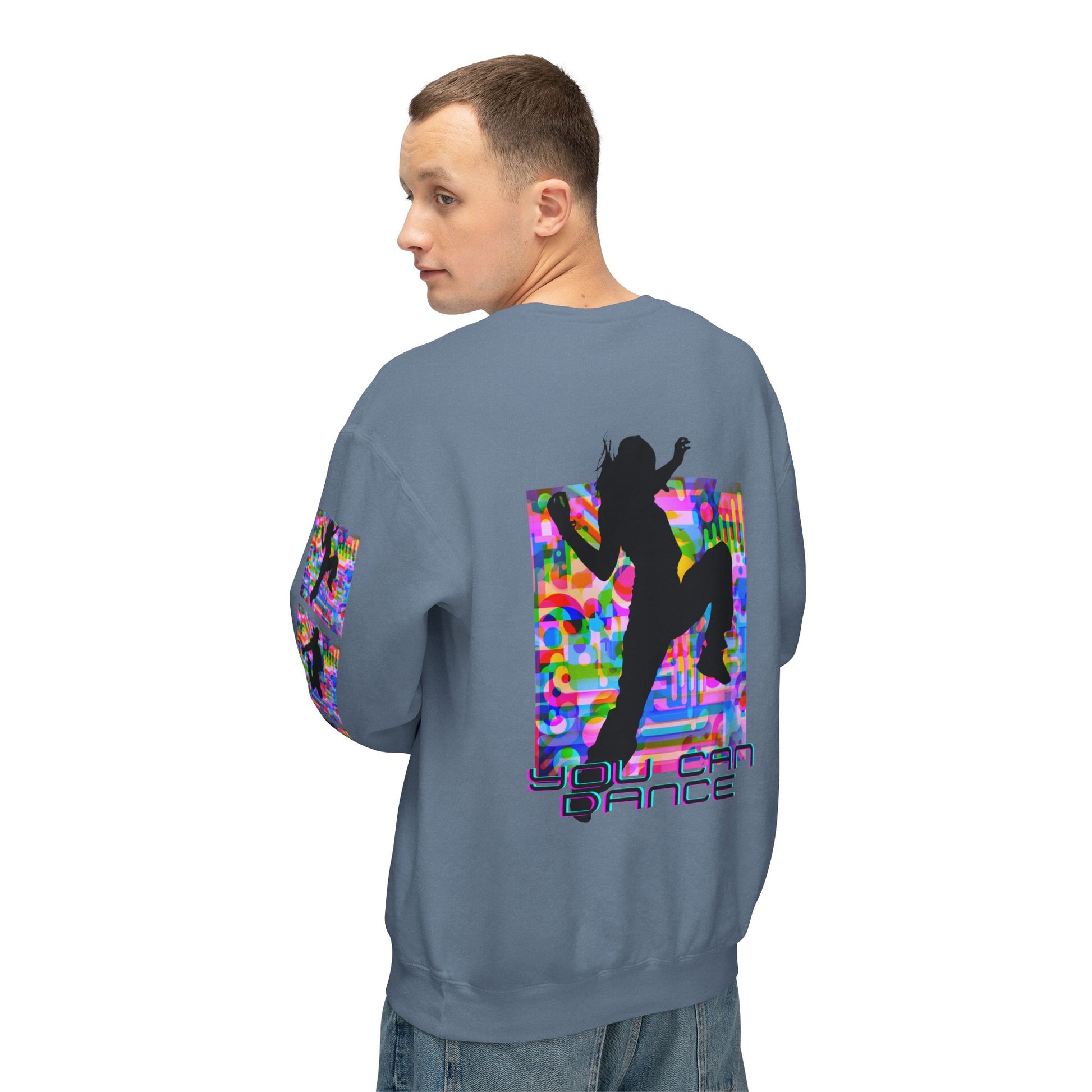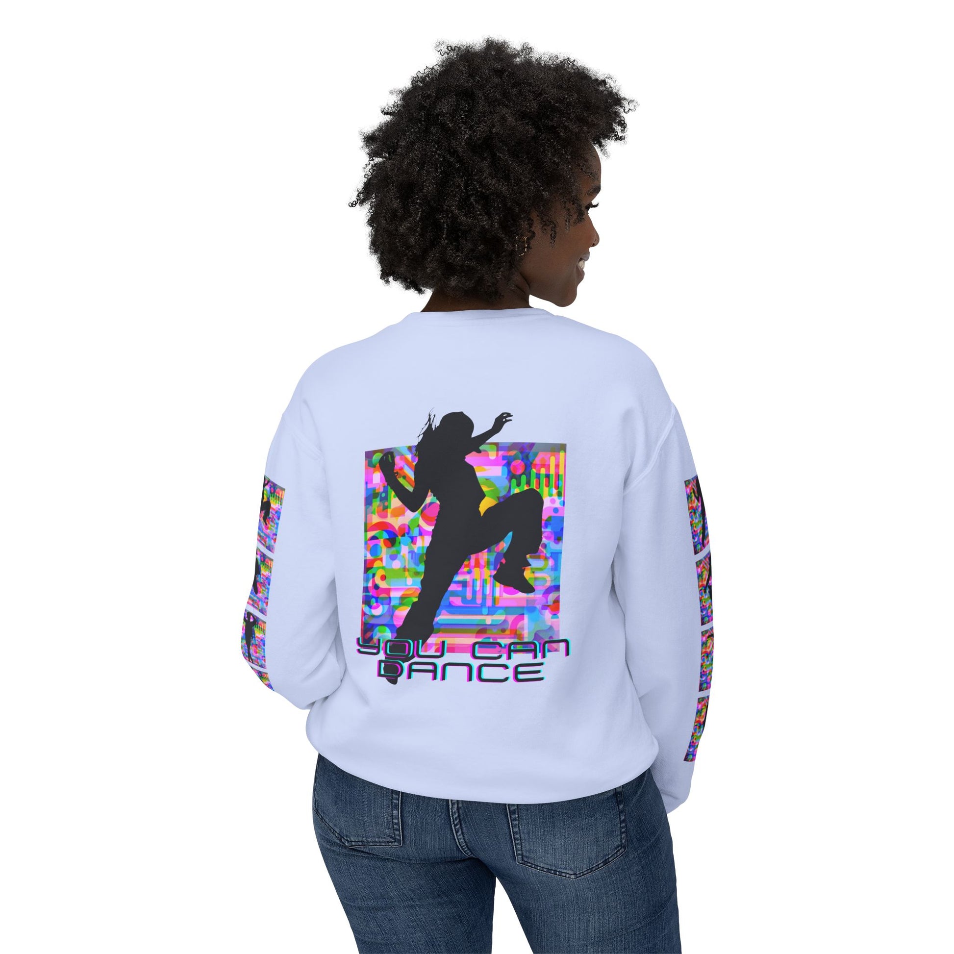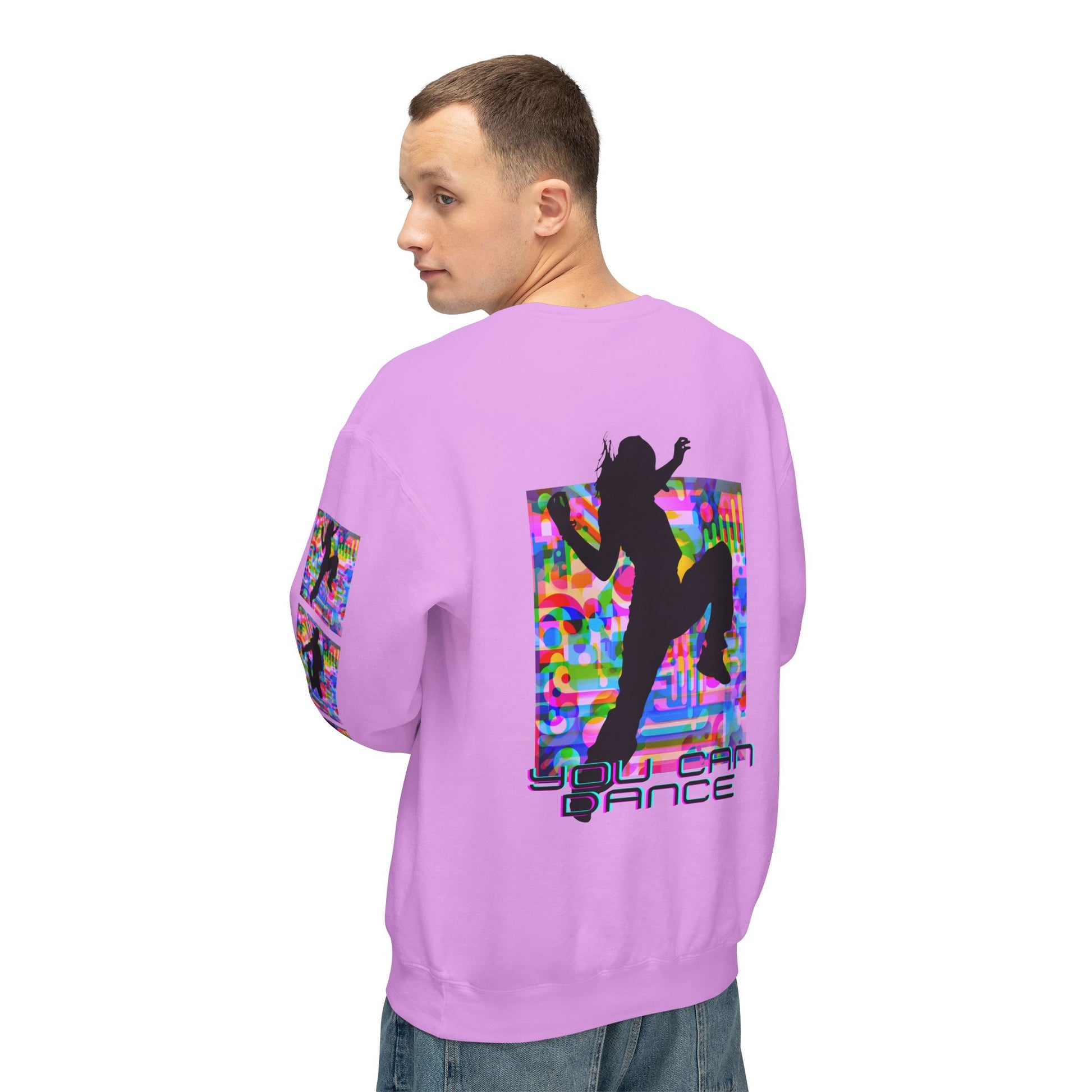 Levels Premium Collection Dance Crewneck Sweatshirt – Vibrant Unisex Streetwear Pullover with "Levels Pictures Textures" Front Text and Dancer Silhouettes on Sleeves