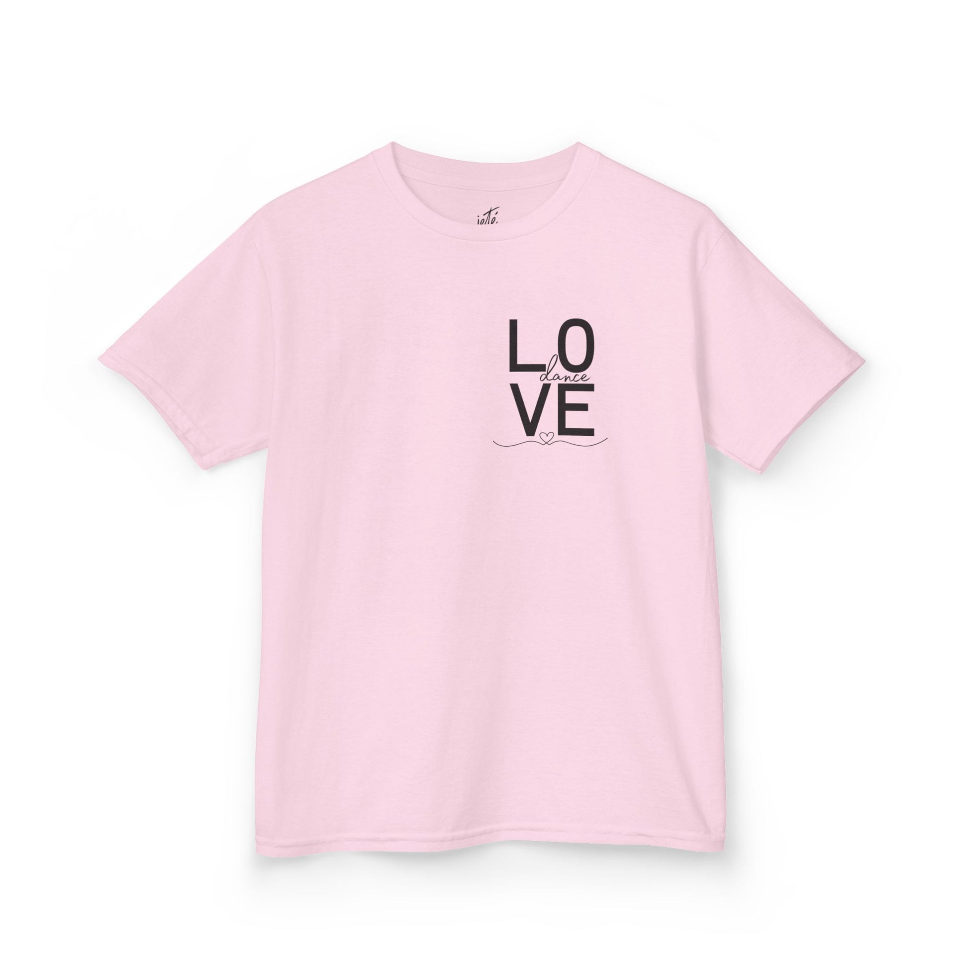 This kids tee features the letters L O V E paired with the word dance in flowing scripted letters, creating a playful design full of movement and joy. Soft, breathable, and comfy, it is made for turns in the living room, dance class smiles, and everyday adventures.