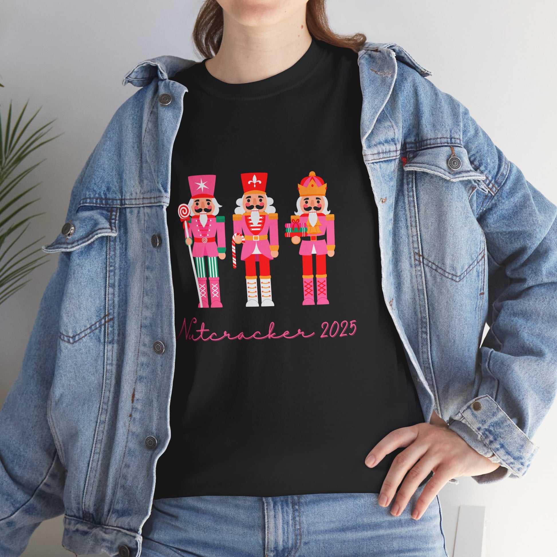 Celebrate the magic of Nutcracker season with a tee that’s equal parts playful, nostalgic, and effortlessly cozy. This Unisex Heavy Cotton Tee features three cheerful nutcrackers standing proudly across the chest in bright, candy-inspired colors instantly bringing holiday charm to your everyday wardrobe. Beneath them sits a sweet handwritten “Nutcracker 2025” caption, adding that sentimental, keepsake-like touch dancers adore.