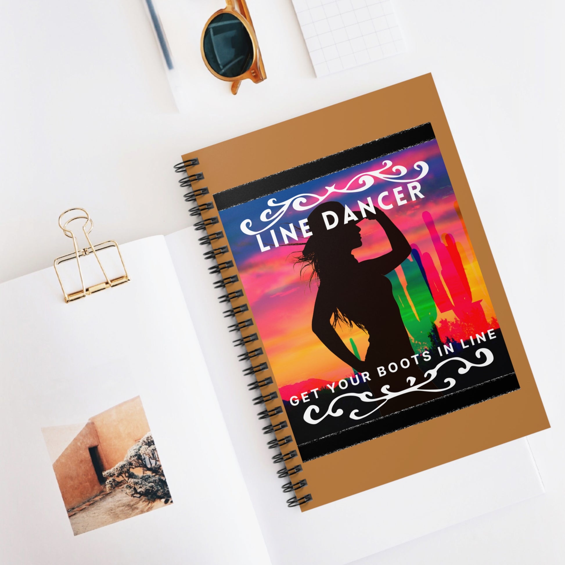 "Line Dancer, Get Your Boots in Line" Western-Inspired Design – Spiral Dance Notebook for Journaling, Class Notes & Choreo Planning