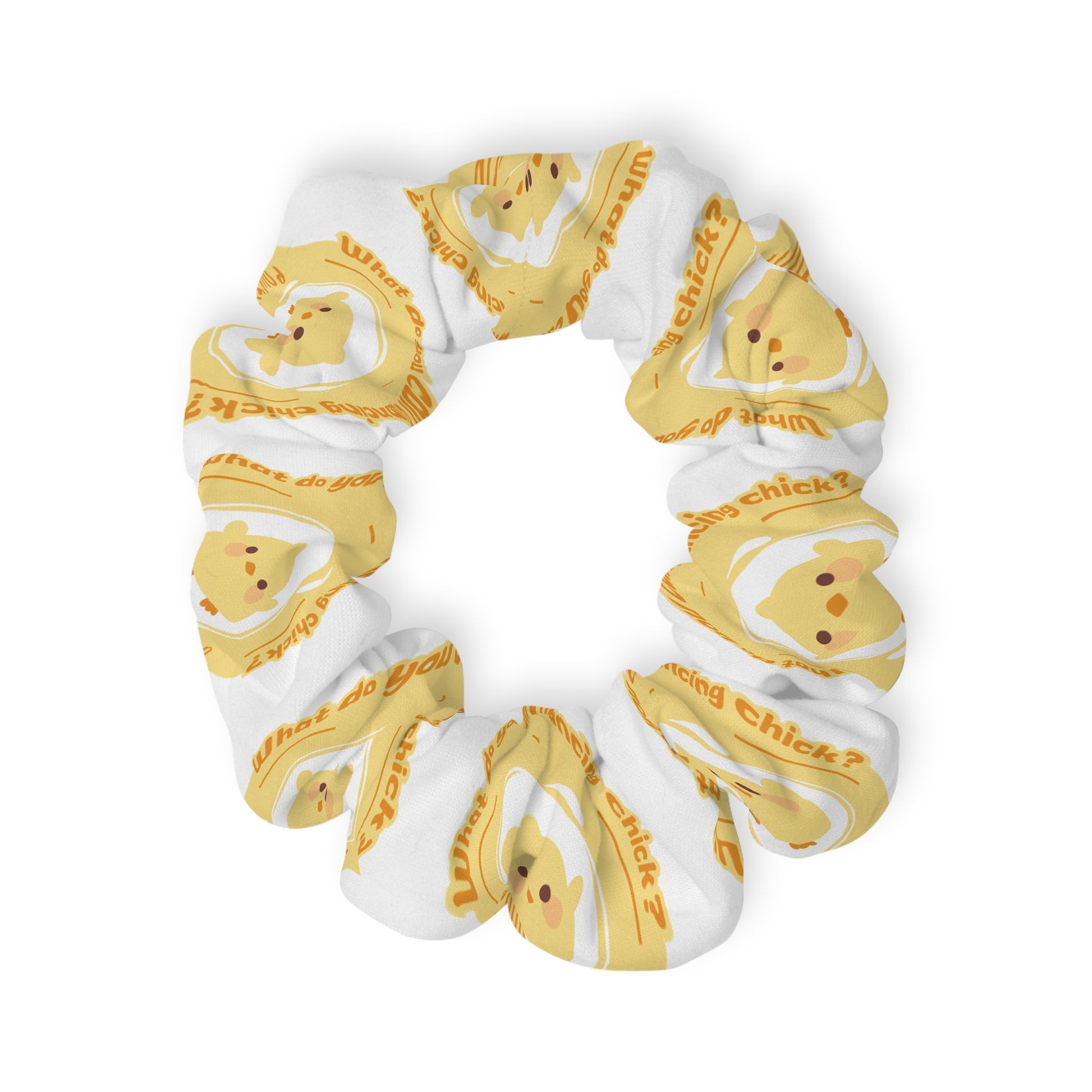 Poultry in Motion Scrunchie – Funny Dance Pun Hair Accessory with Cute Dancing Chick Graphic 🐥💃🎀
