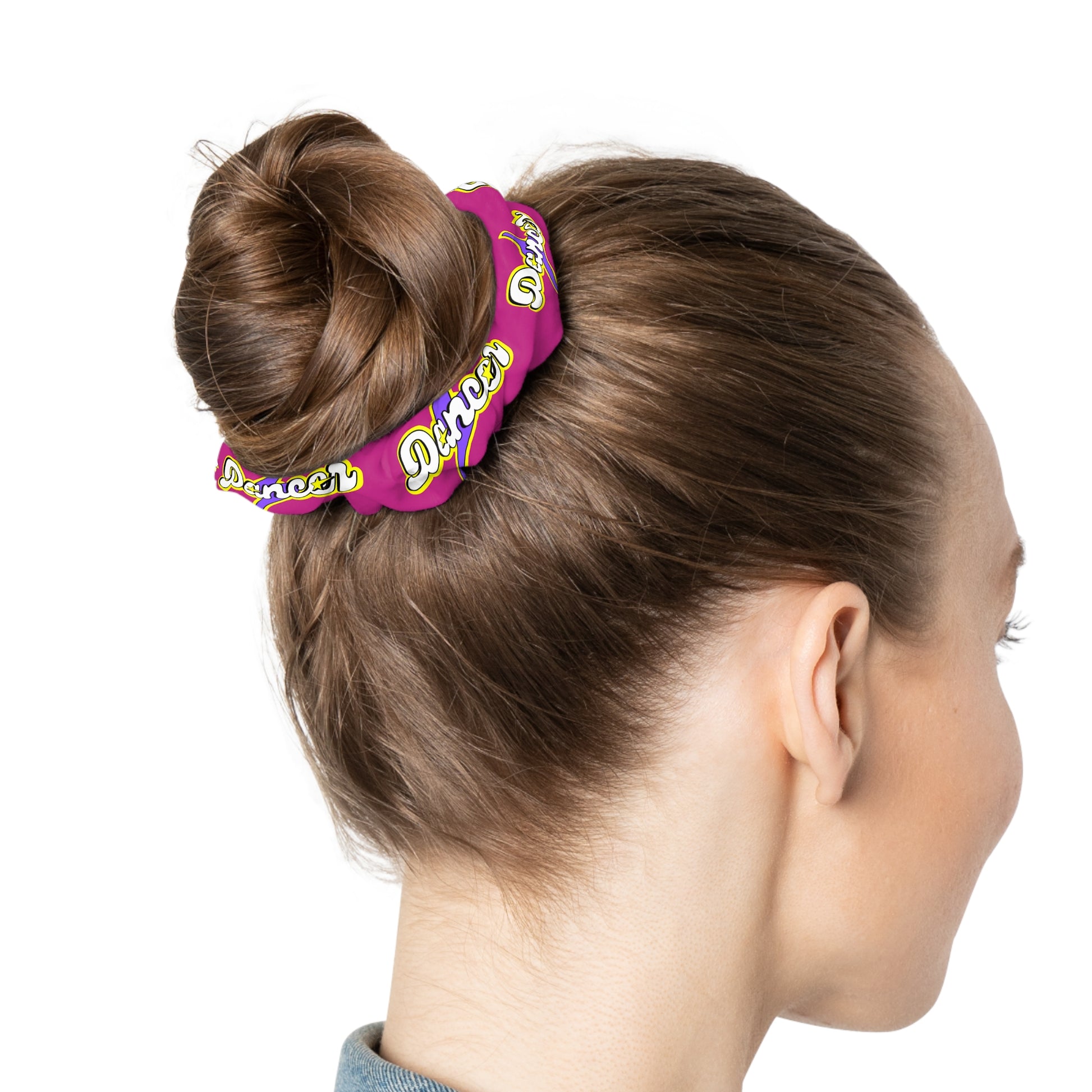 “Dancer” Scrunchie – Superhero-Inspired Dance Hair Accessory with Bold Graphic for Performers