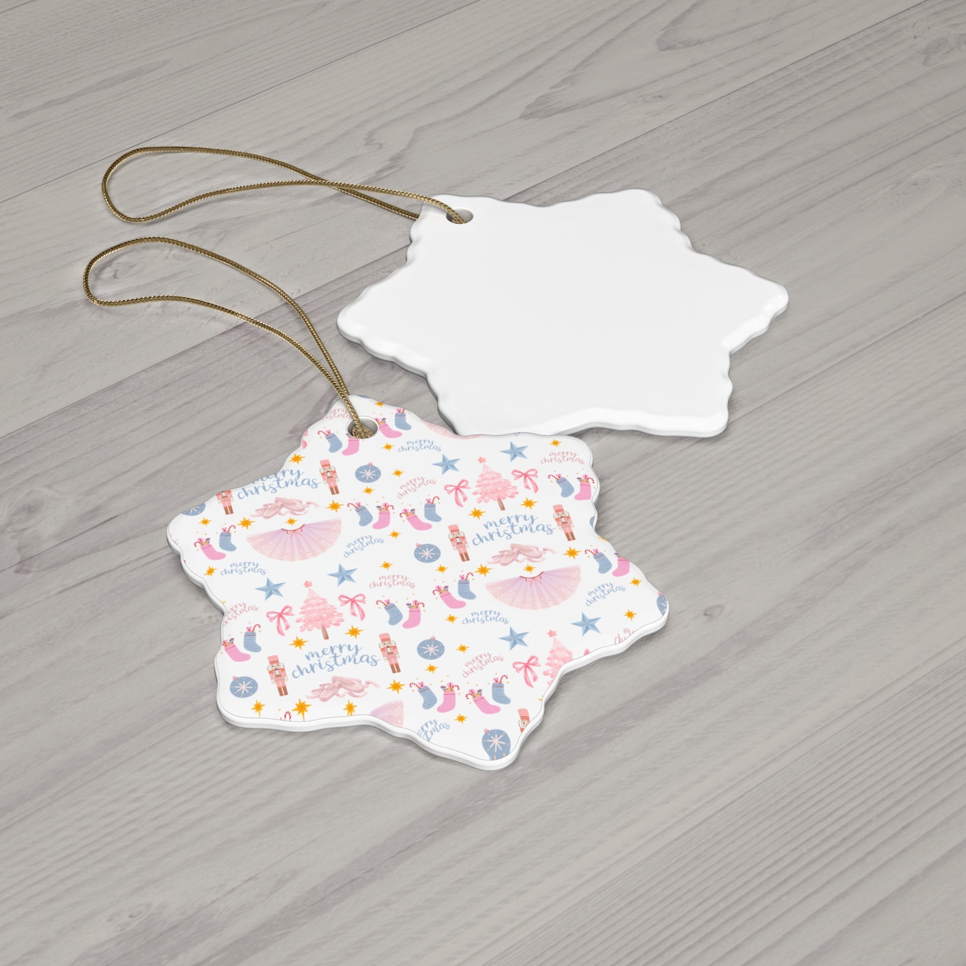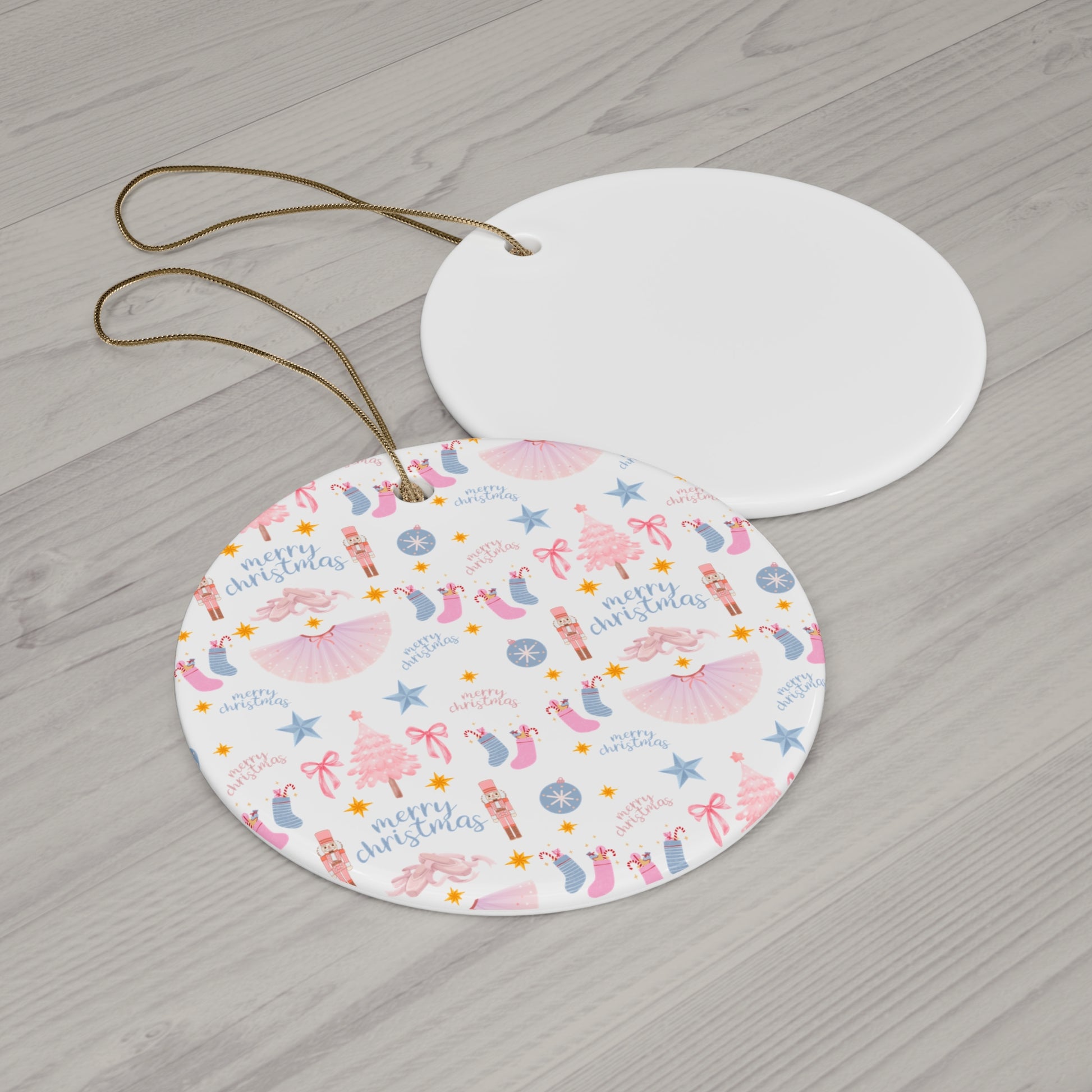 Soft "Nutcracker Ballet" Ceramic Ornament – Pastel Christmas Tree Decoration with Whimsical Holiday Ballet Design (Ceramic Keepsake for Dancers & Nutcracker Lovers)
