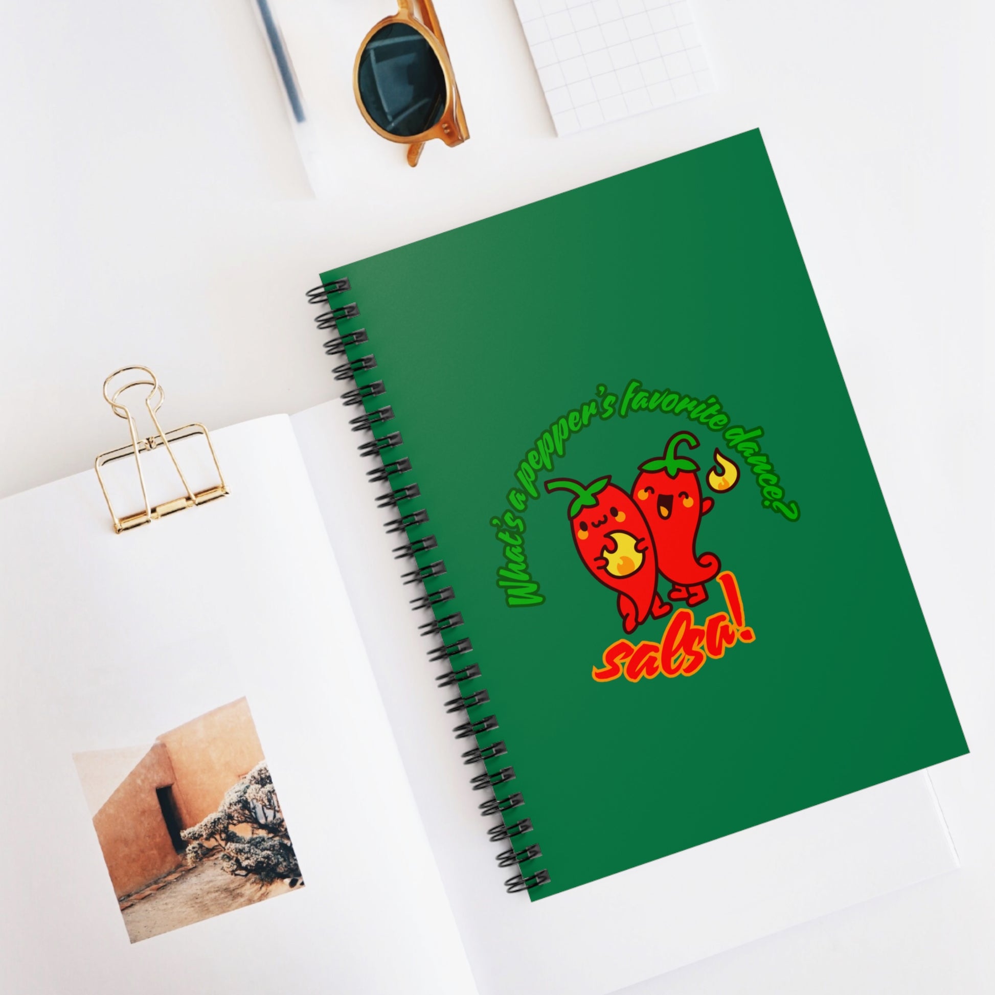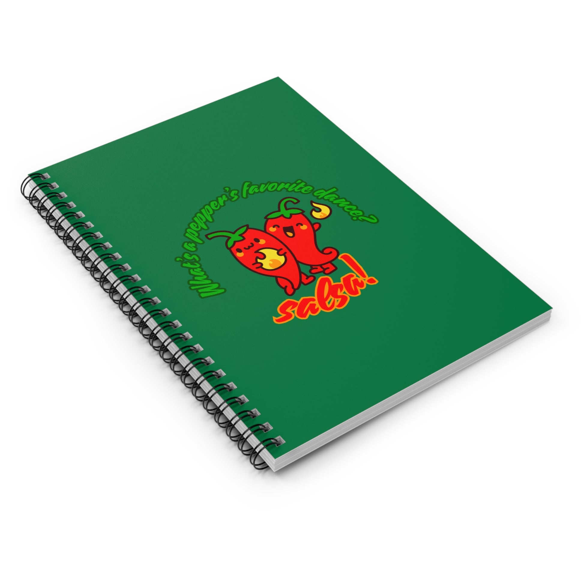 "What Is a Pepper’s Favorite Dance? Salsa!" Spiral Notebook – Funny Dance Pun Journal with Cute Pepper Graphic for Dancers & Foodie Pun Lovers