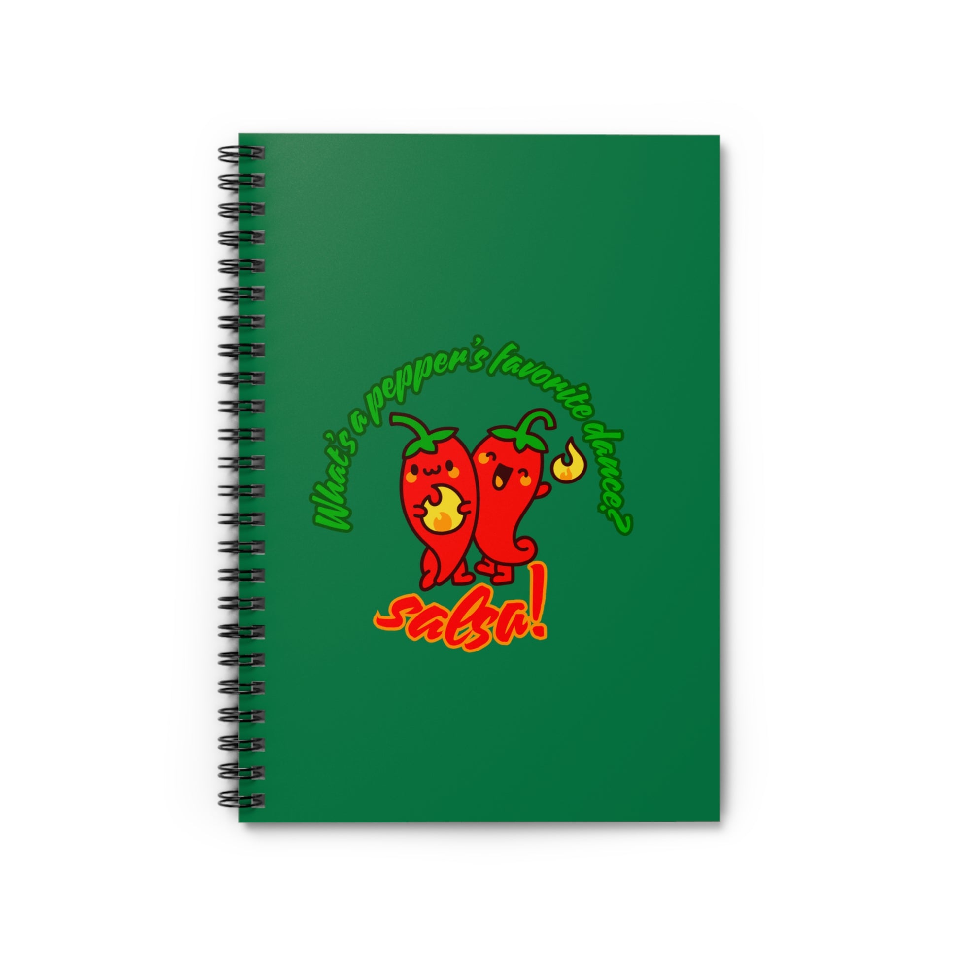 🌶️💃 What’s a pepper’s favorite dance? Salsa! Bring the heat to your note-taking routine with this spicy-cute Spiral Notebook that’s bursting with personality and punny charm! Featuring a cheerful pepper graphic and a giggle-worthy dance pun, this notebook is the perfect blend of fun and functional. 🌟✍️