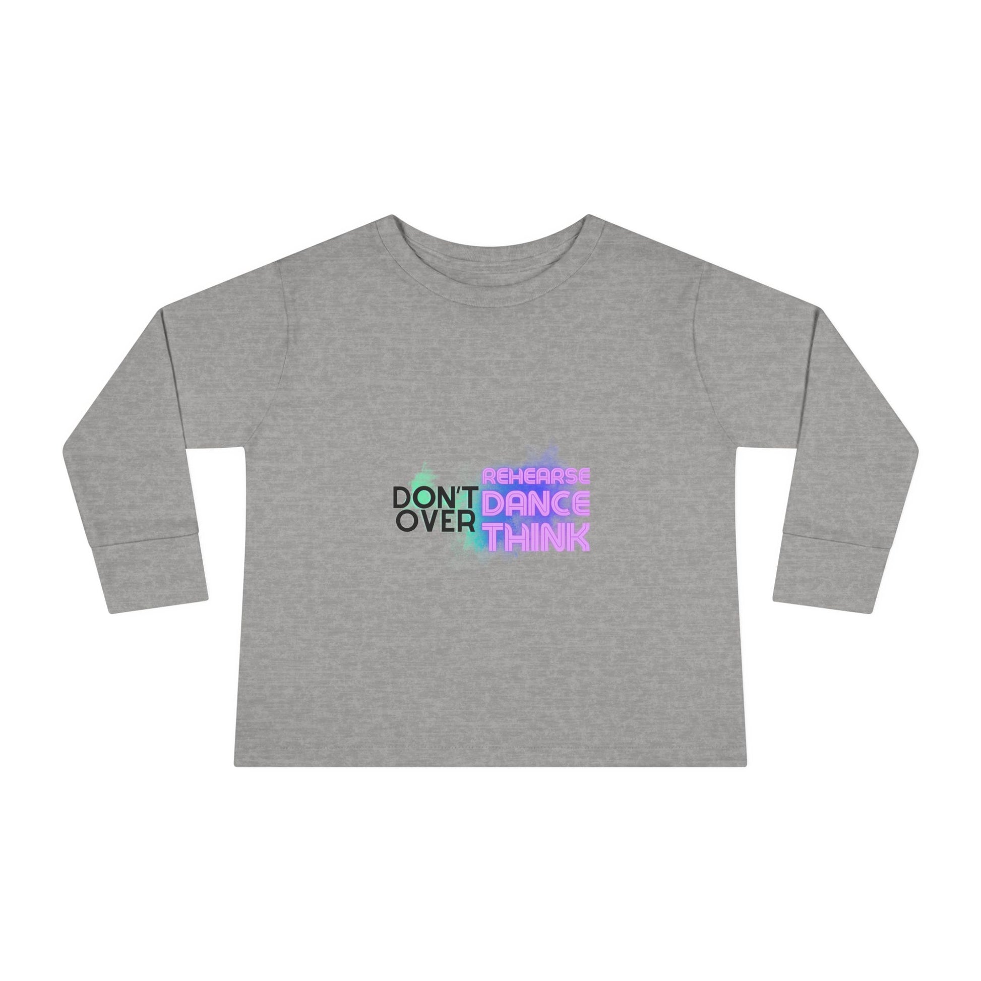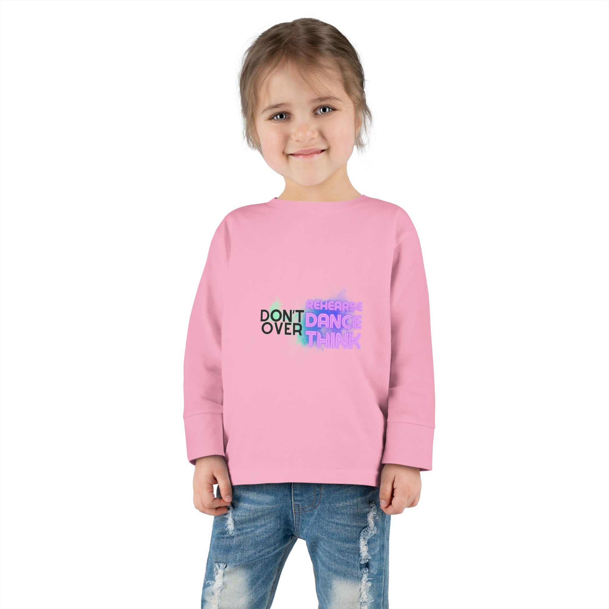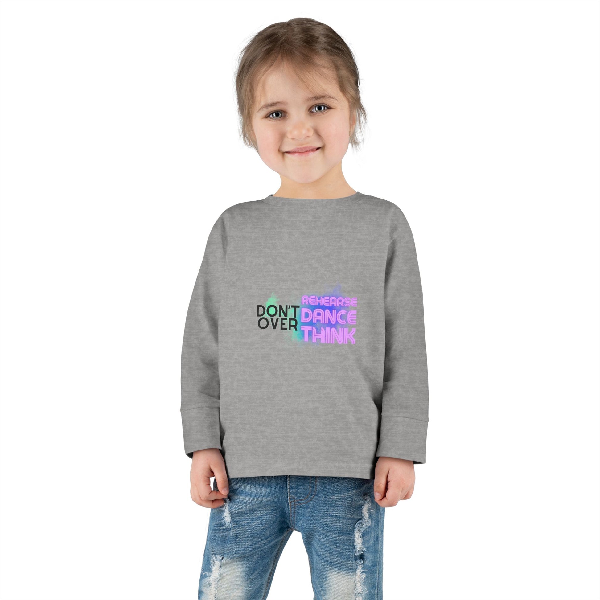 "Don't Over Rehearse Dance Think" Toddler Long Sleeve Dance Tee – Retro Graphic Shirt for Young Dancers