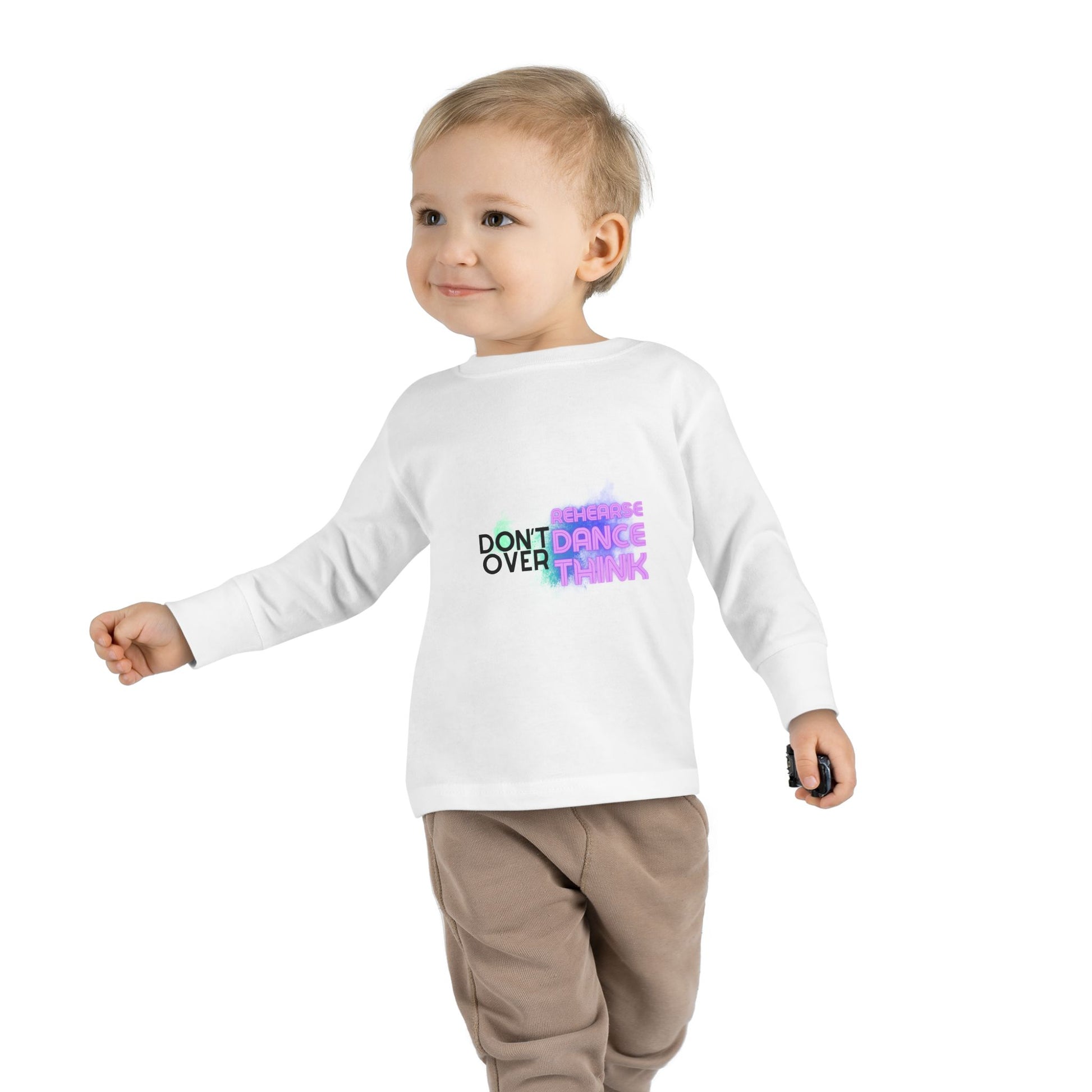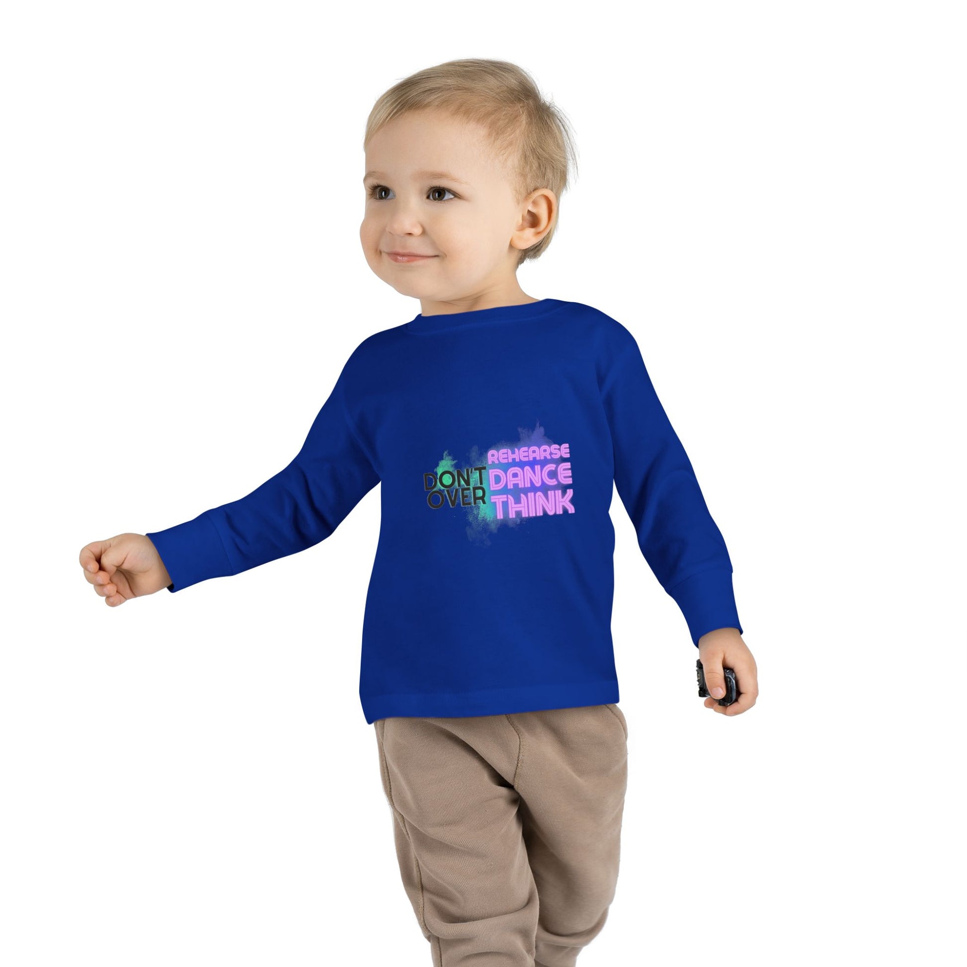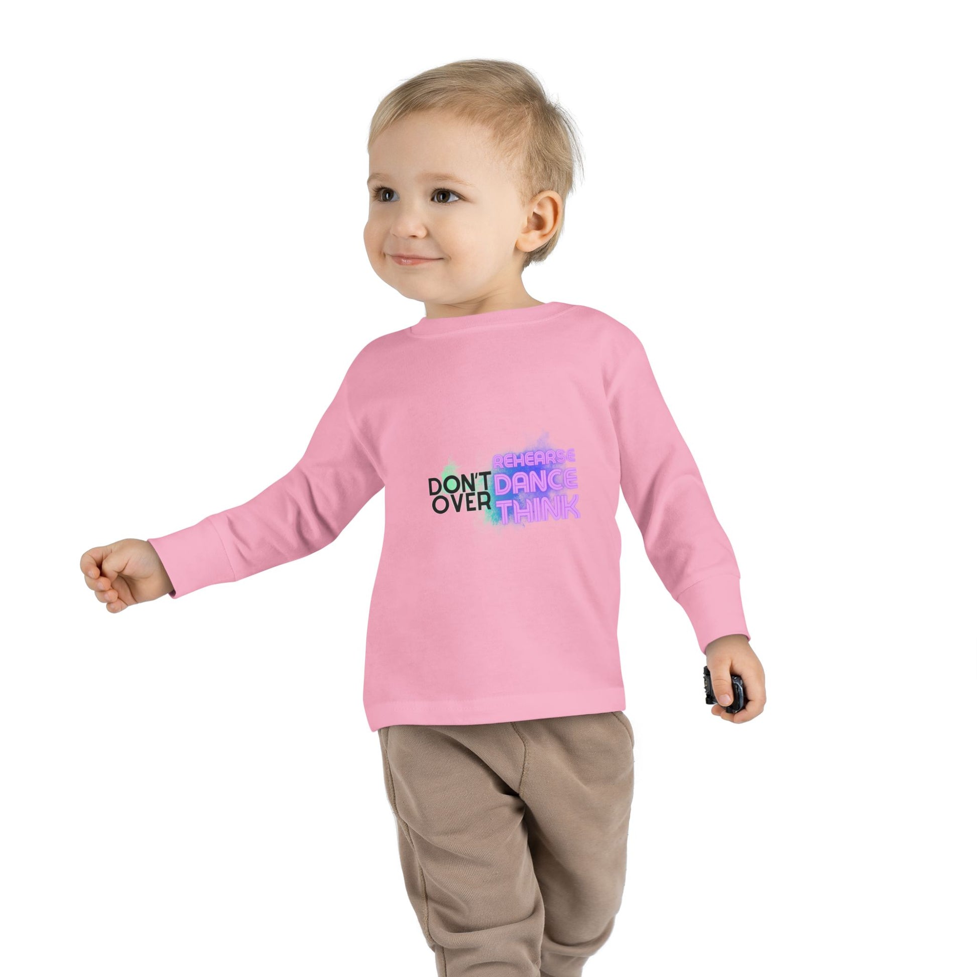 "Don't Over Rehearse Dance Think" Toddler Long Sleeve Dance Tee – Retro Graphic Shirt for Young Dancers