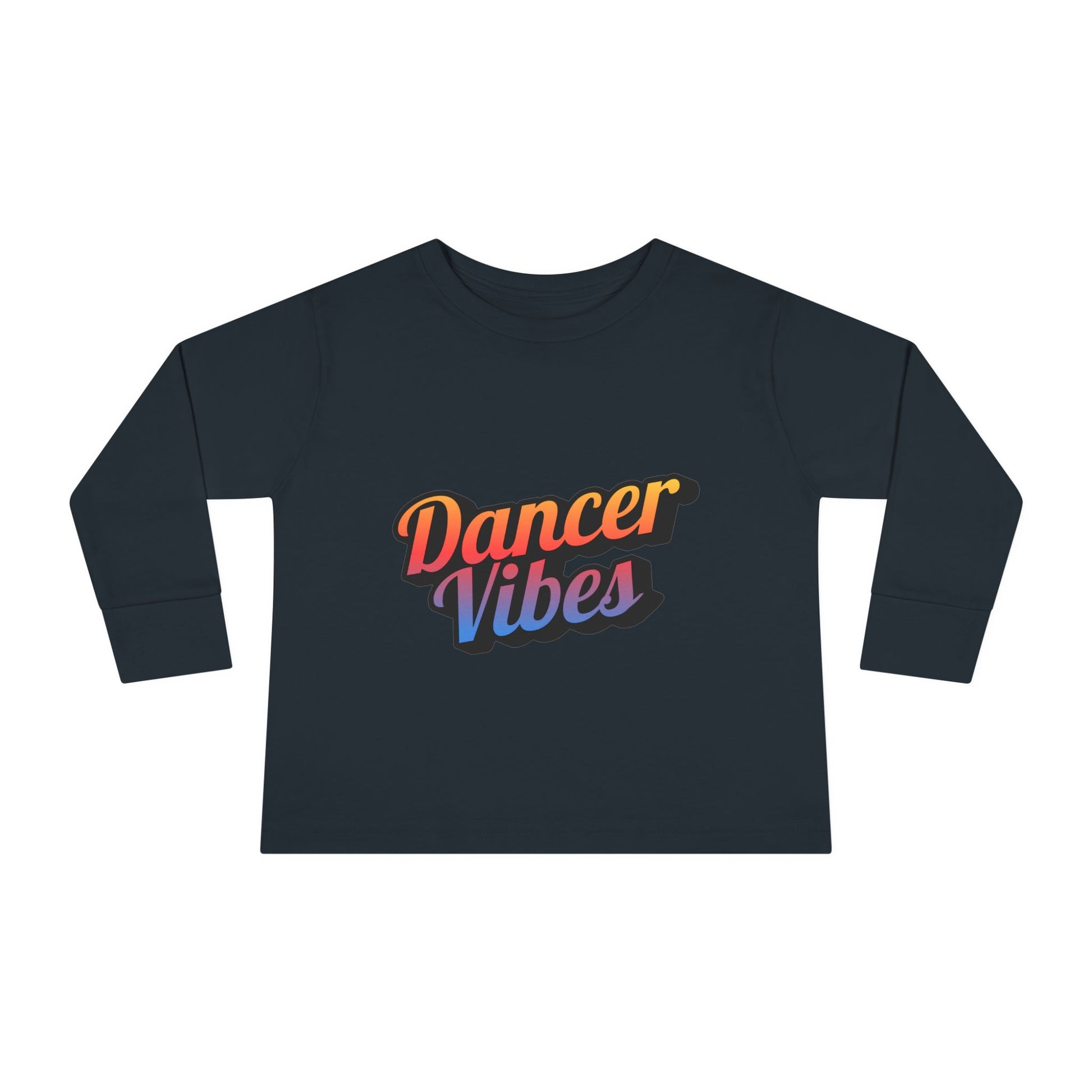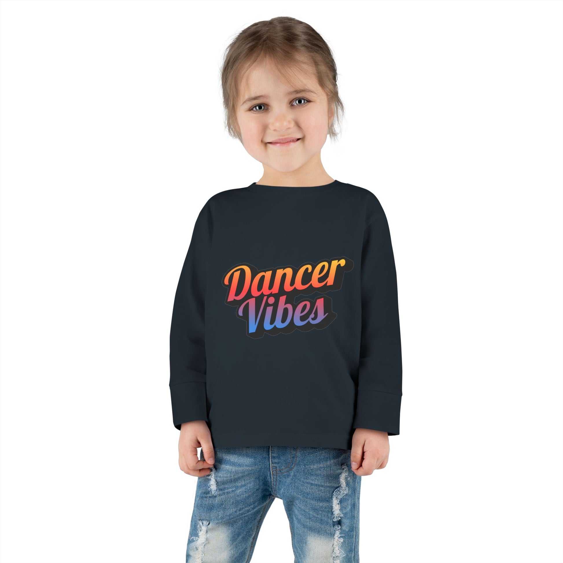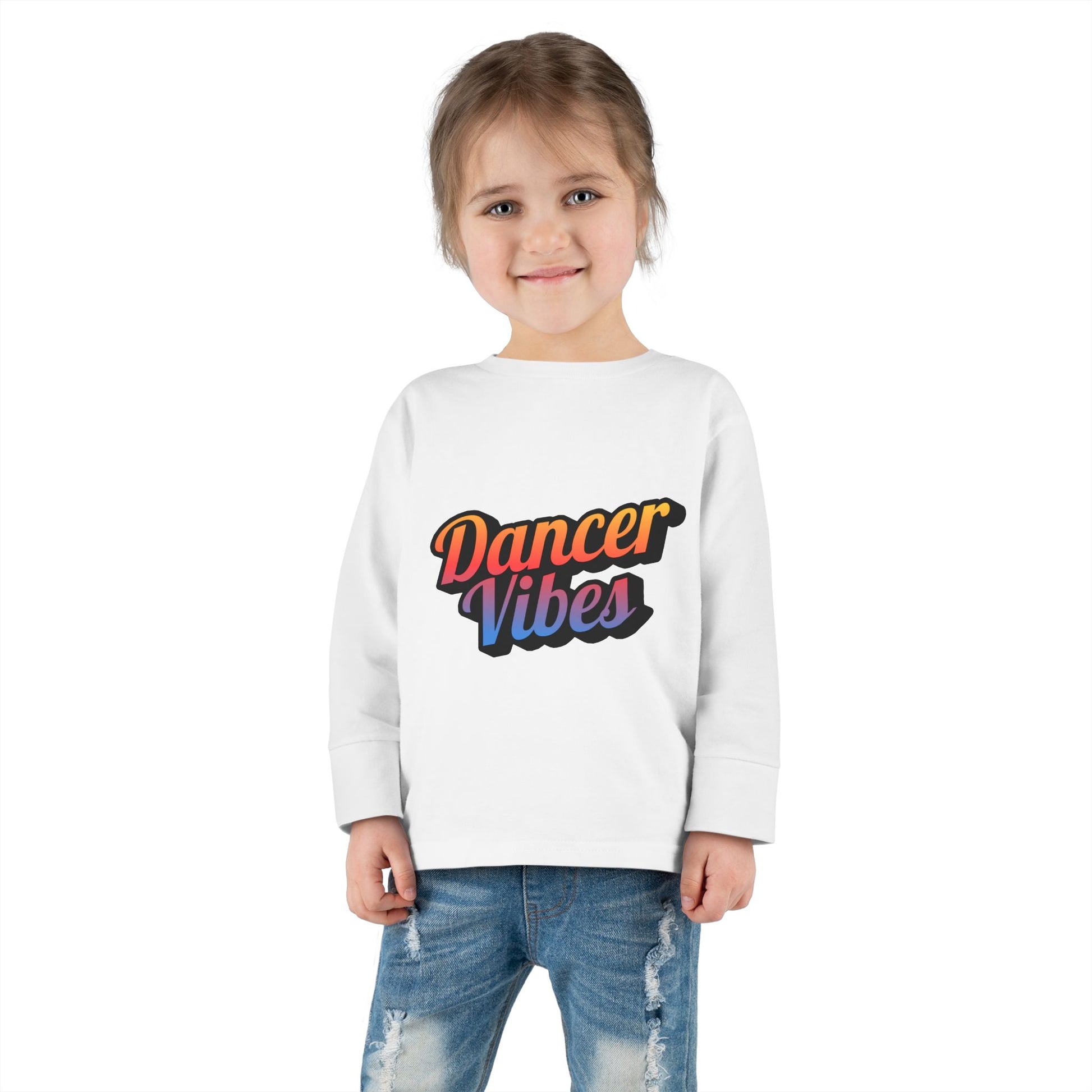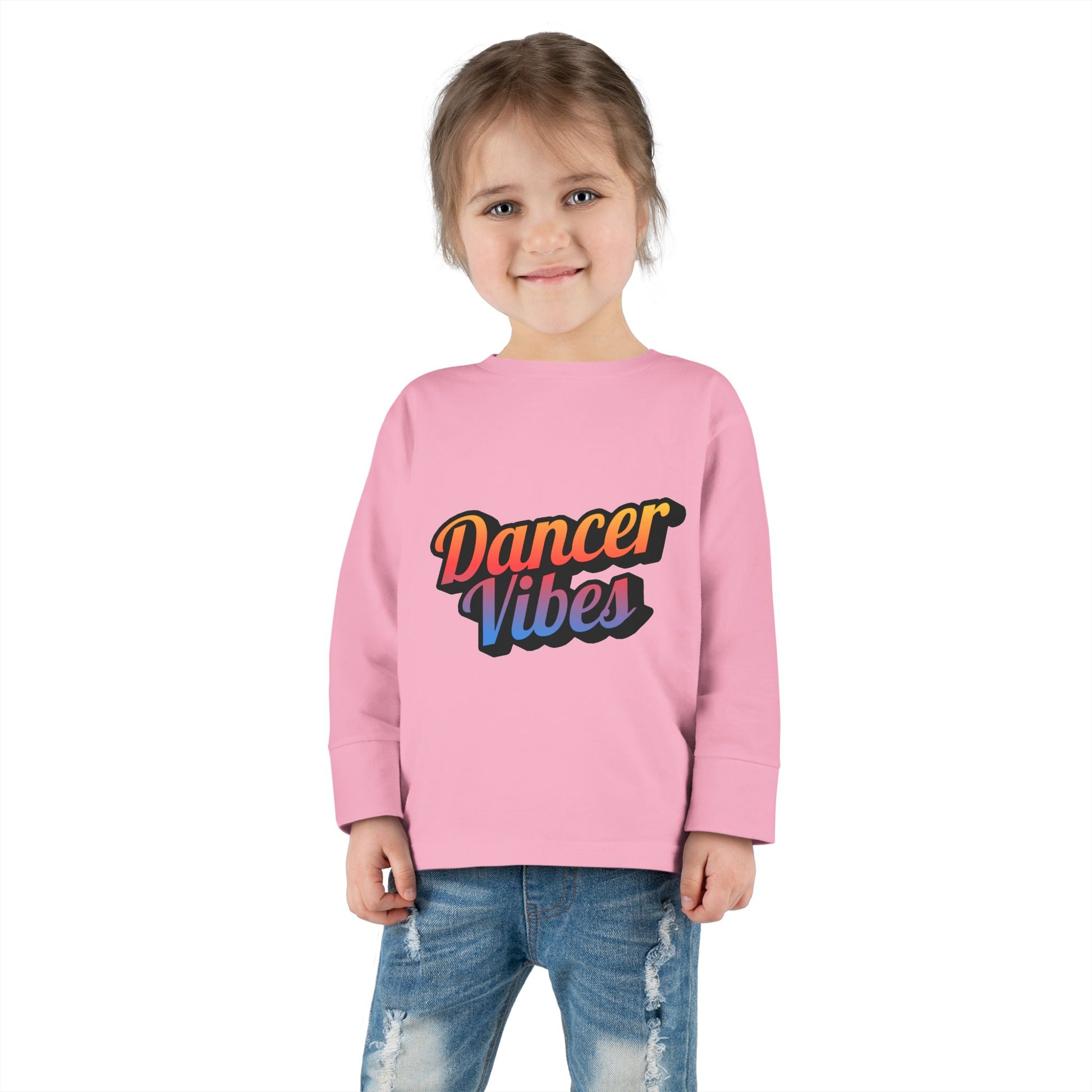 "Dancer Vibes" Toddler Dance T-Shirt – Colorful Text Graphic Long Sleeve Tee for Kids