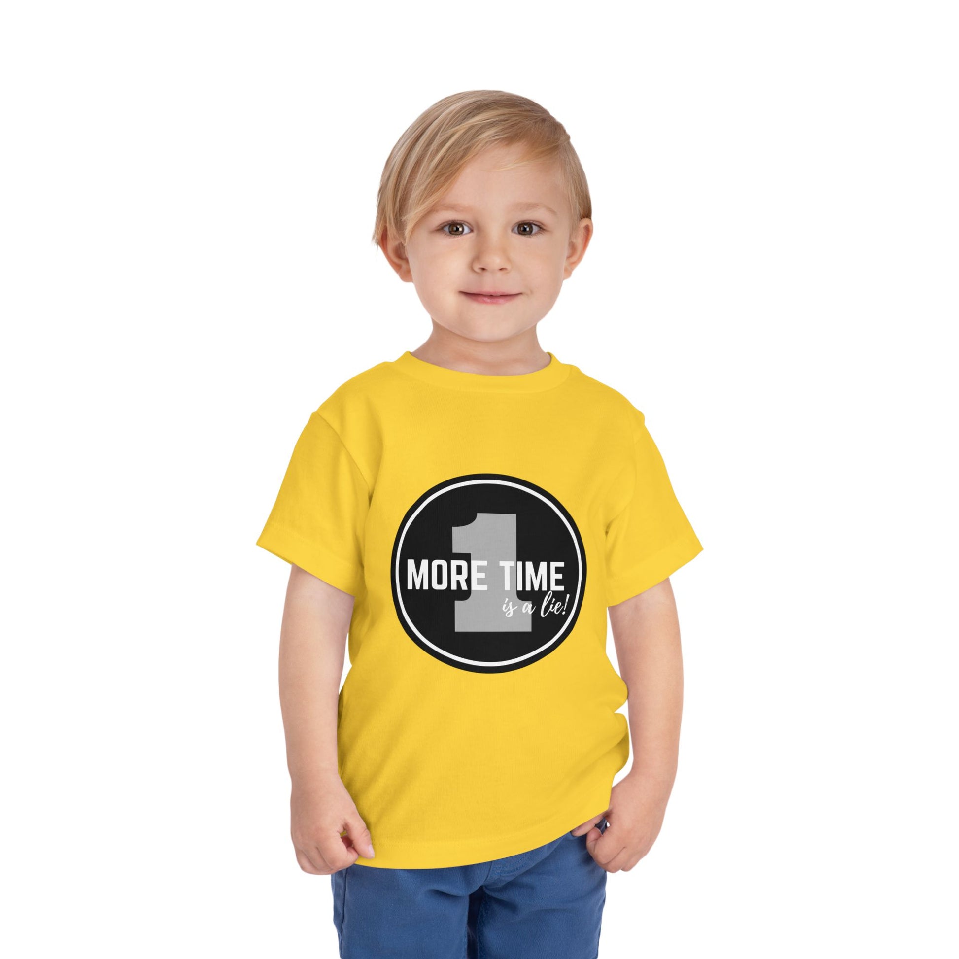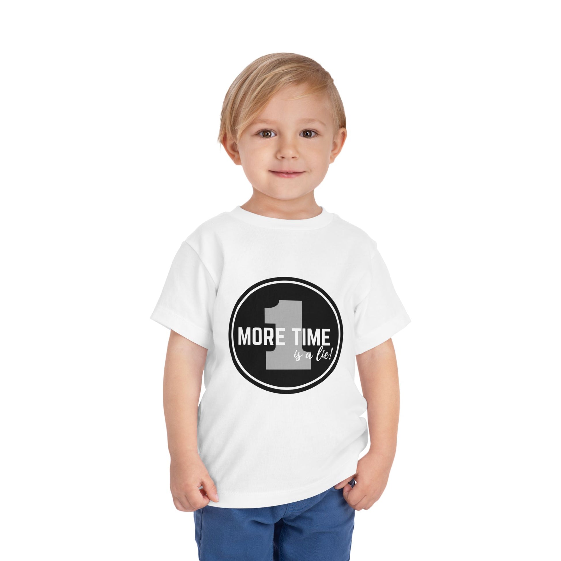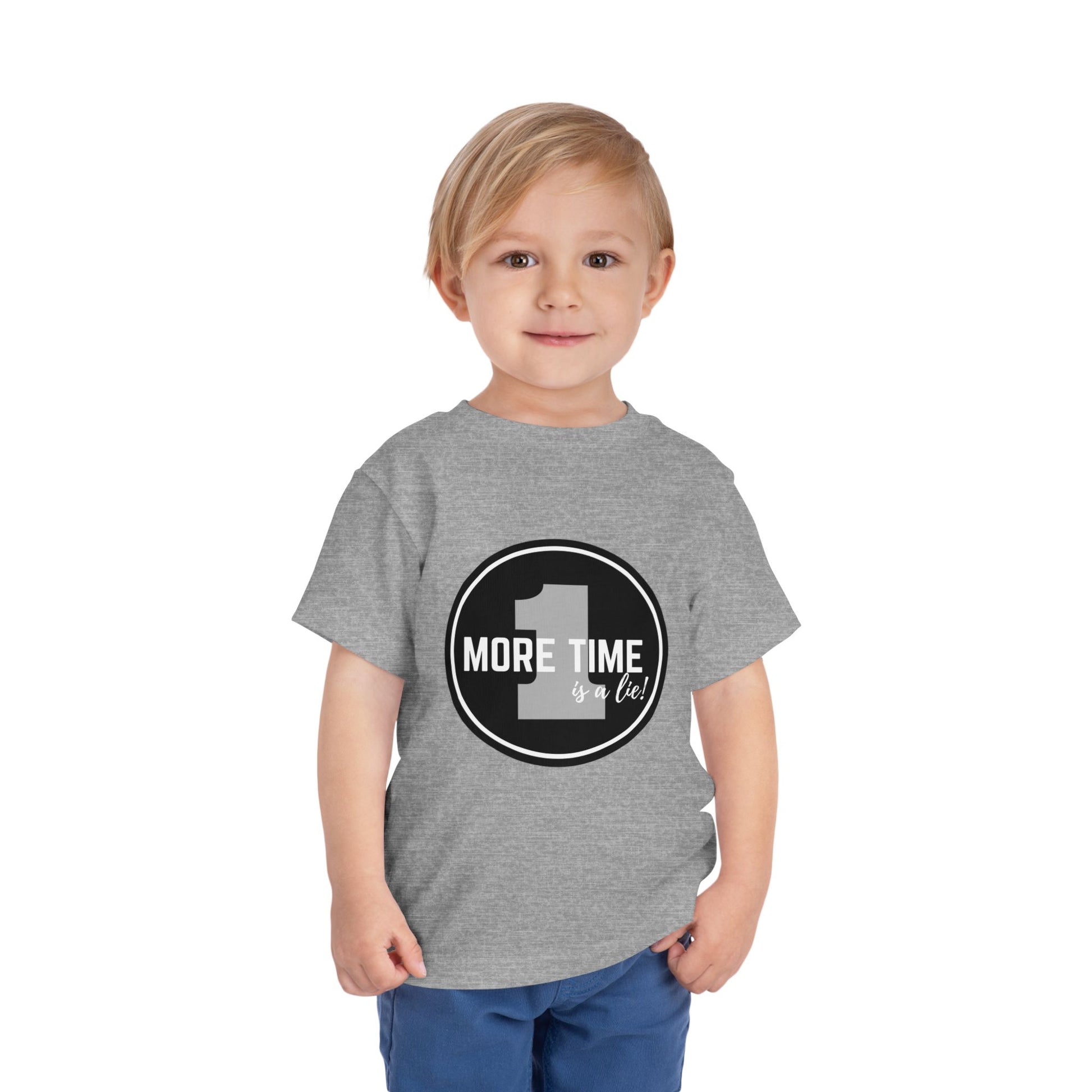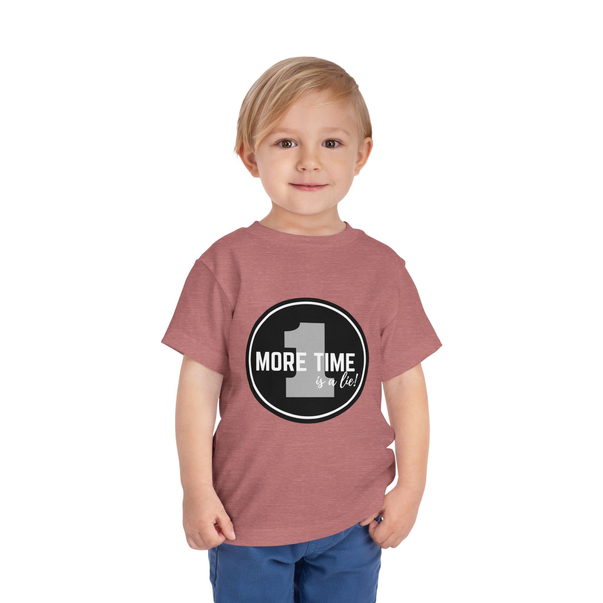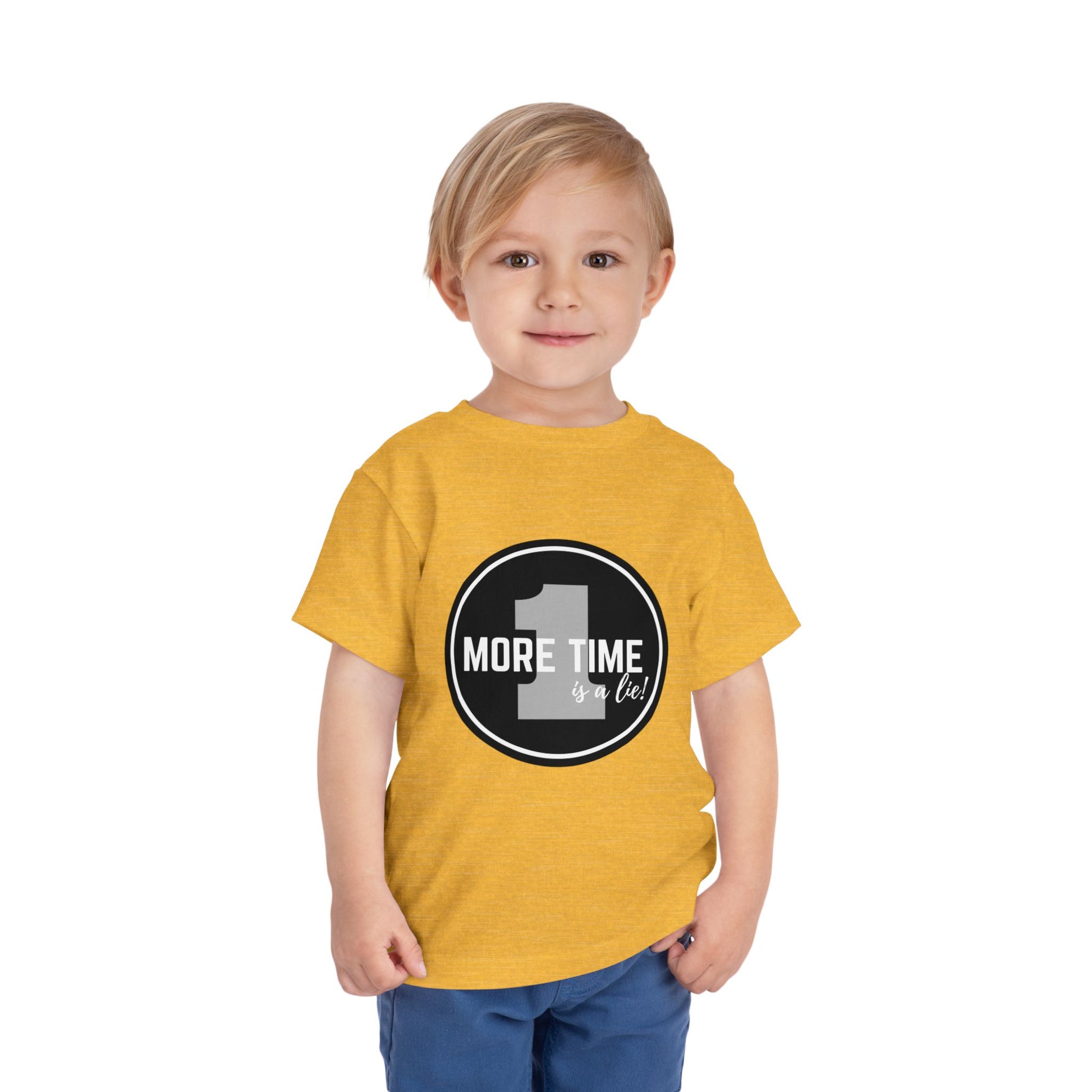 "One More Time Is a Lie" Toddler Dance T-Shirt – Bold Emblem Graphic Short Sleeve Tee for Kids