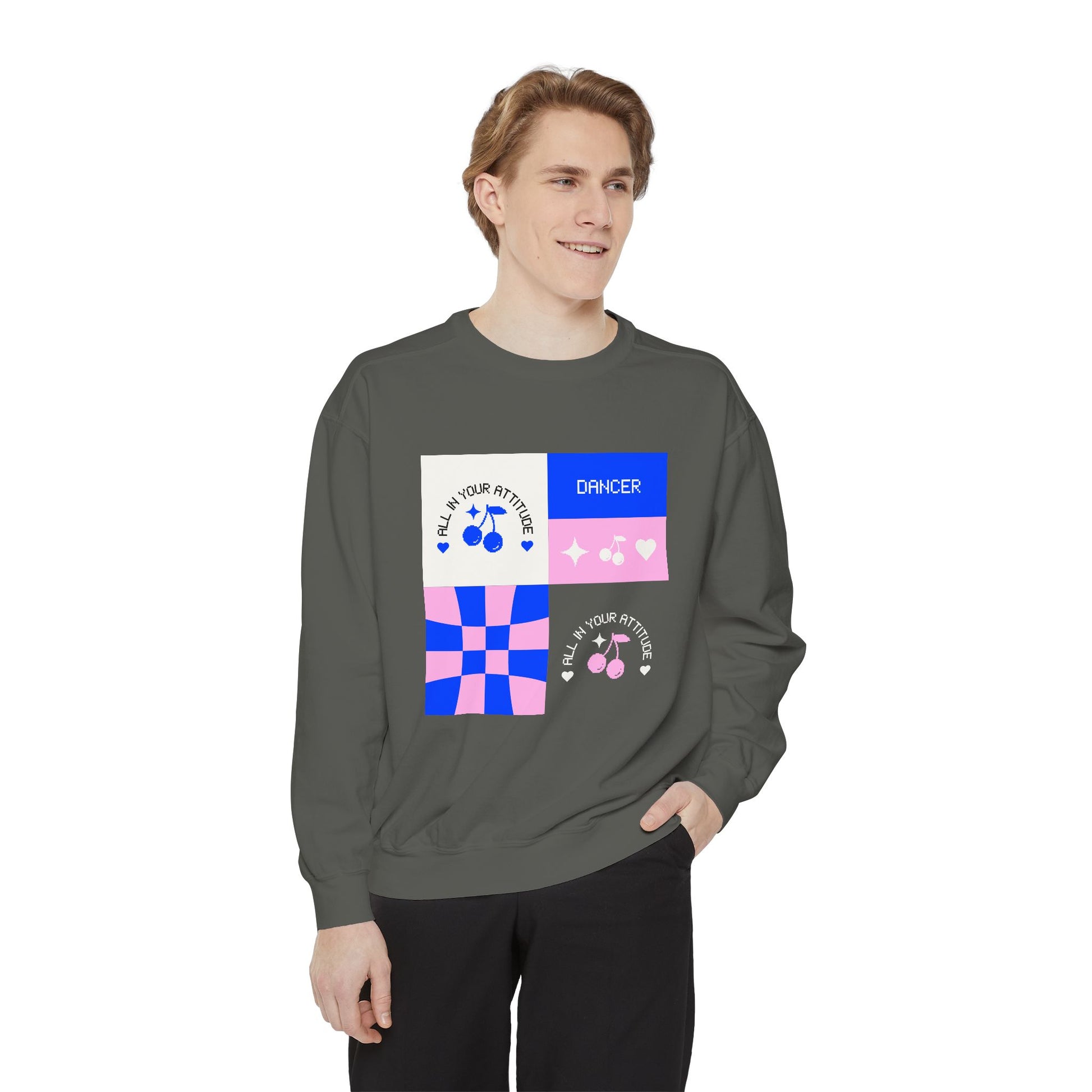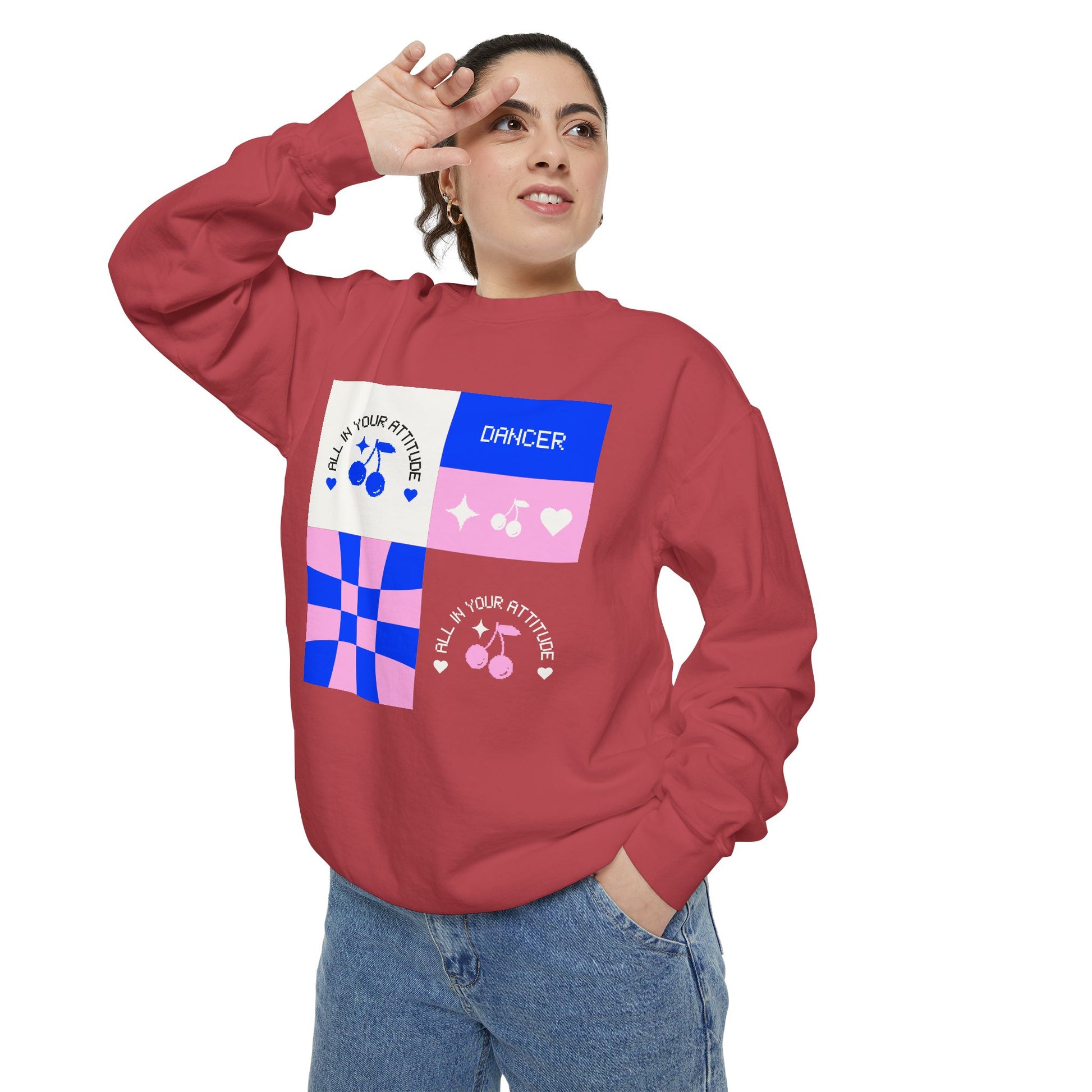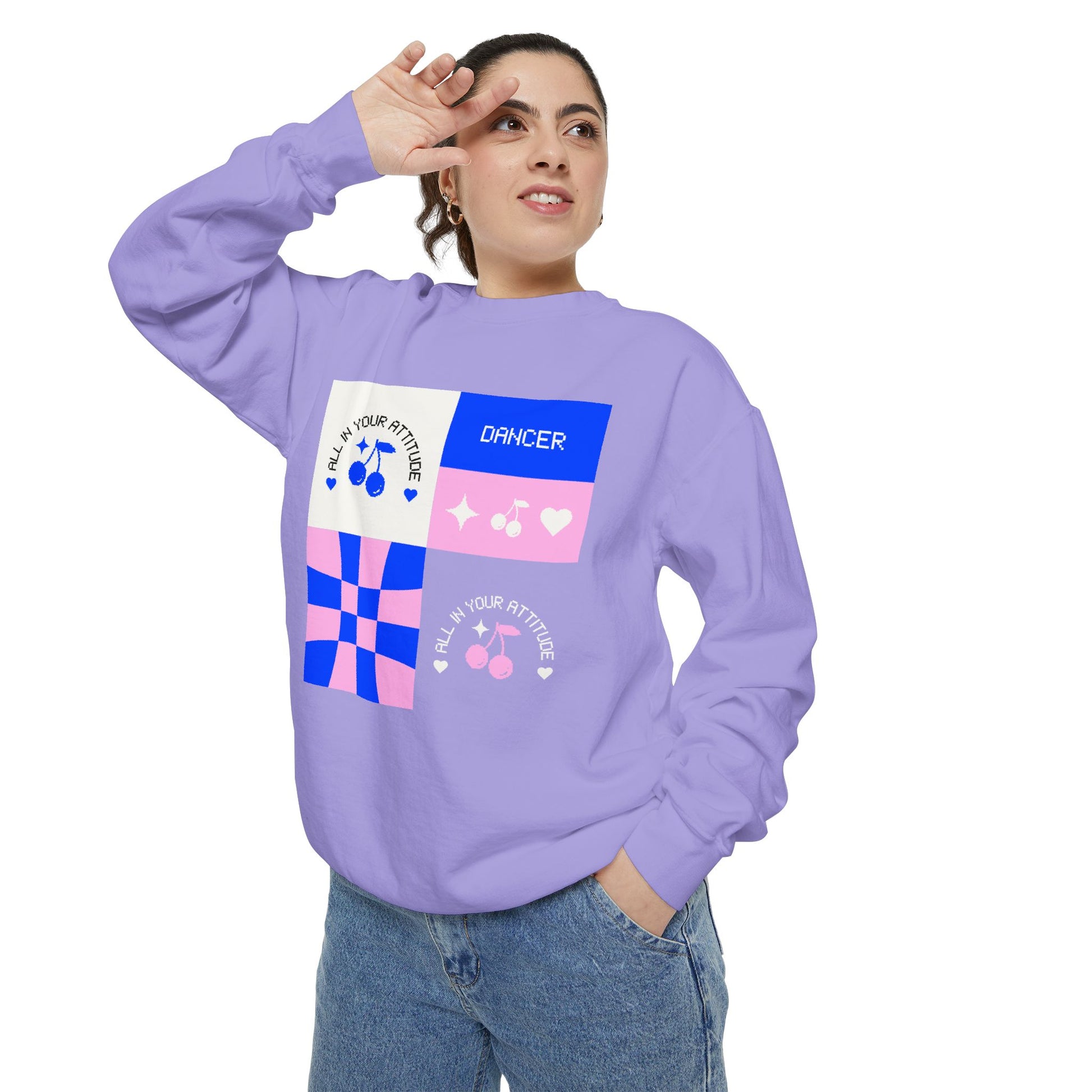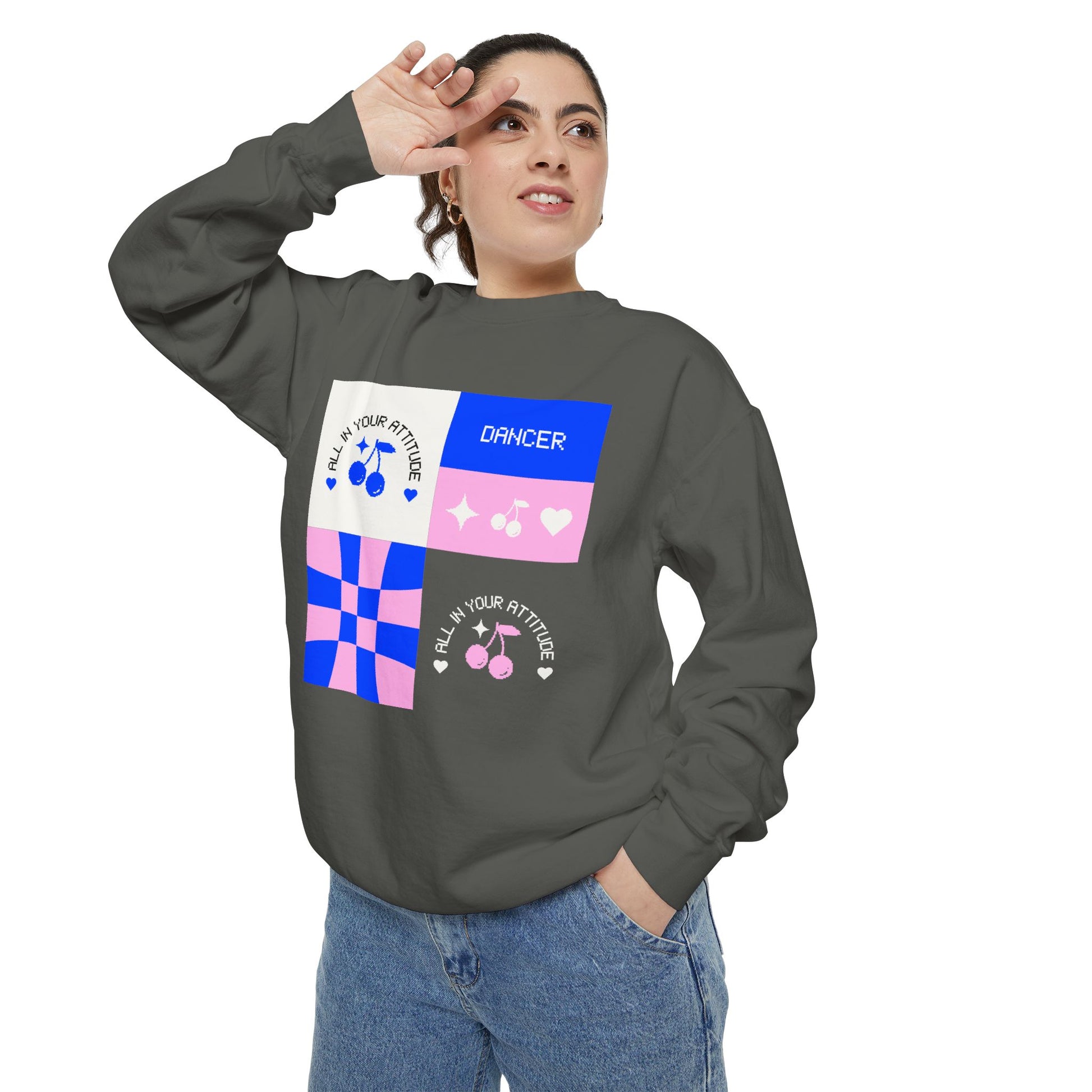 "Dancer – All in Your Attitude" Unisex Lightweight Crewneck Sweatshirt – Retro-Inspired Dance Graphic Pullover for Confident Movers & Performers