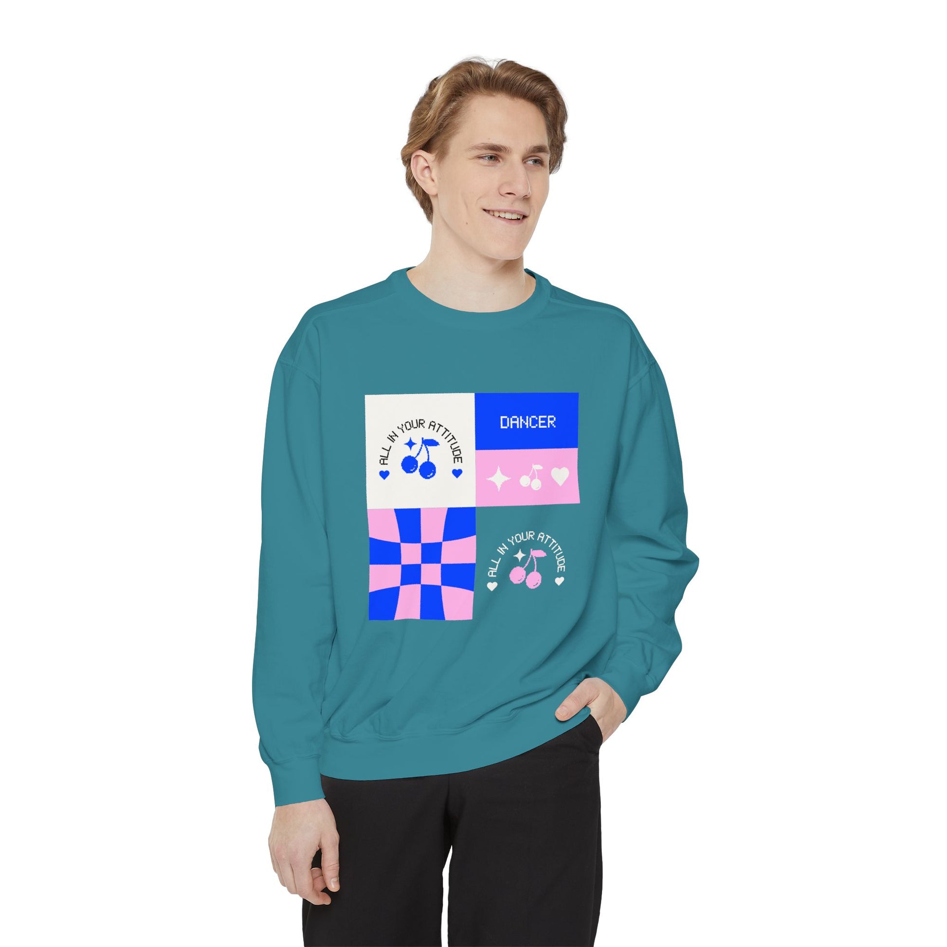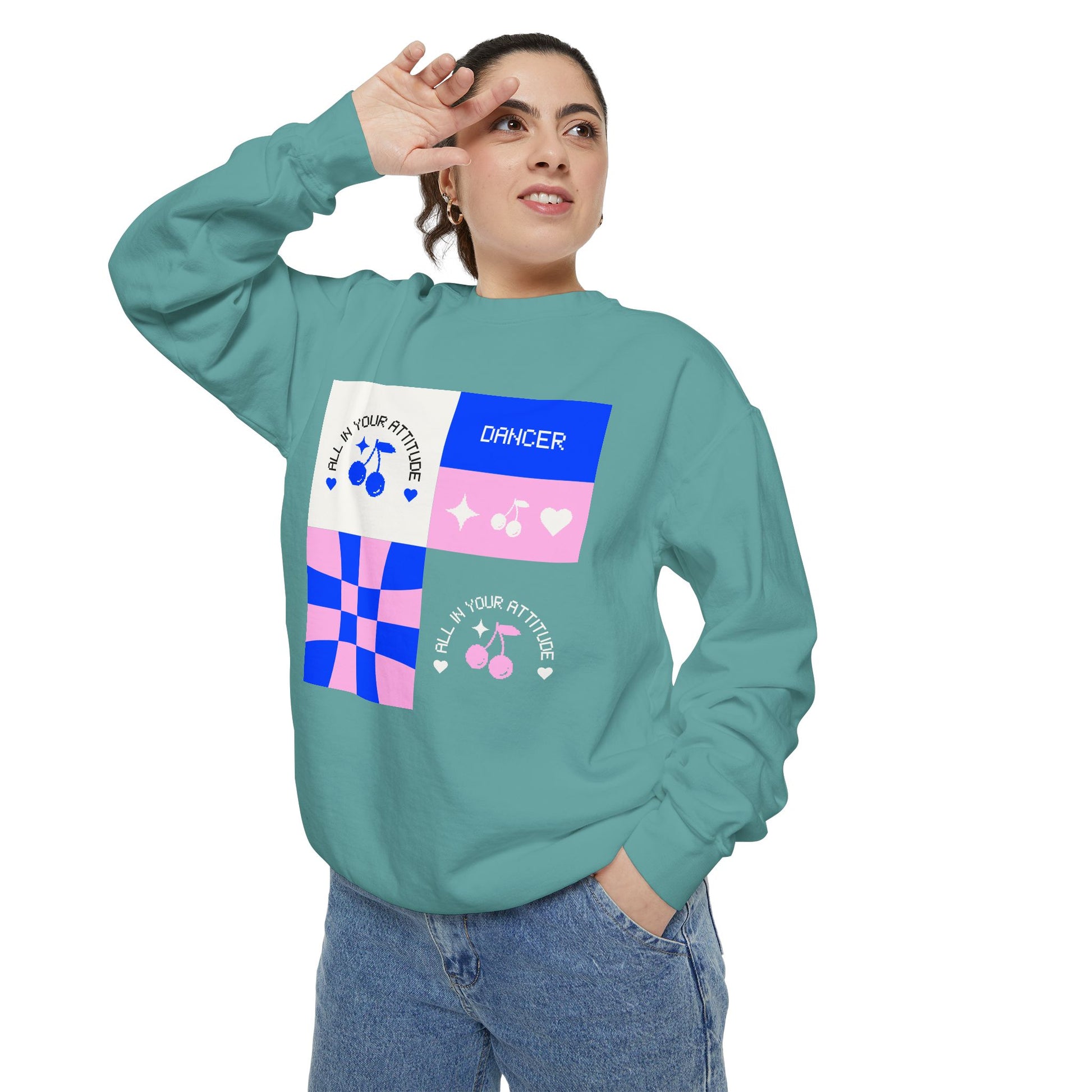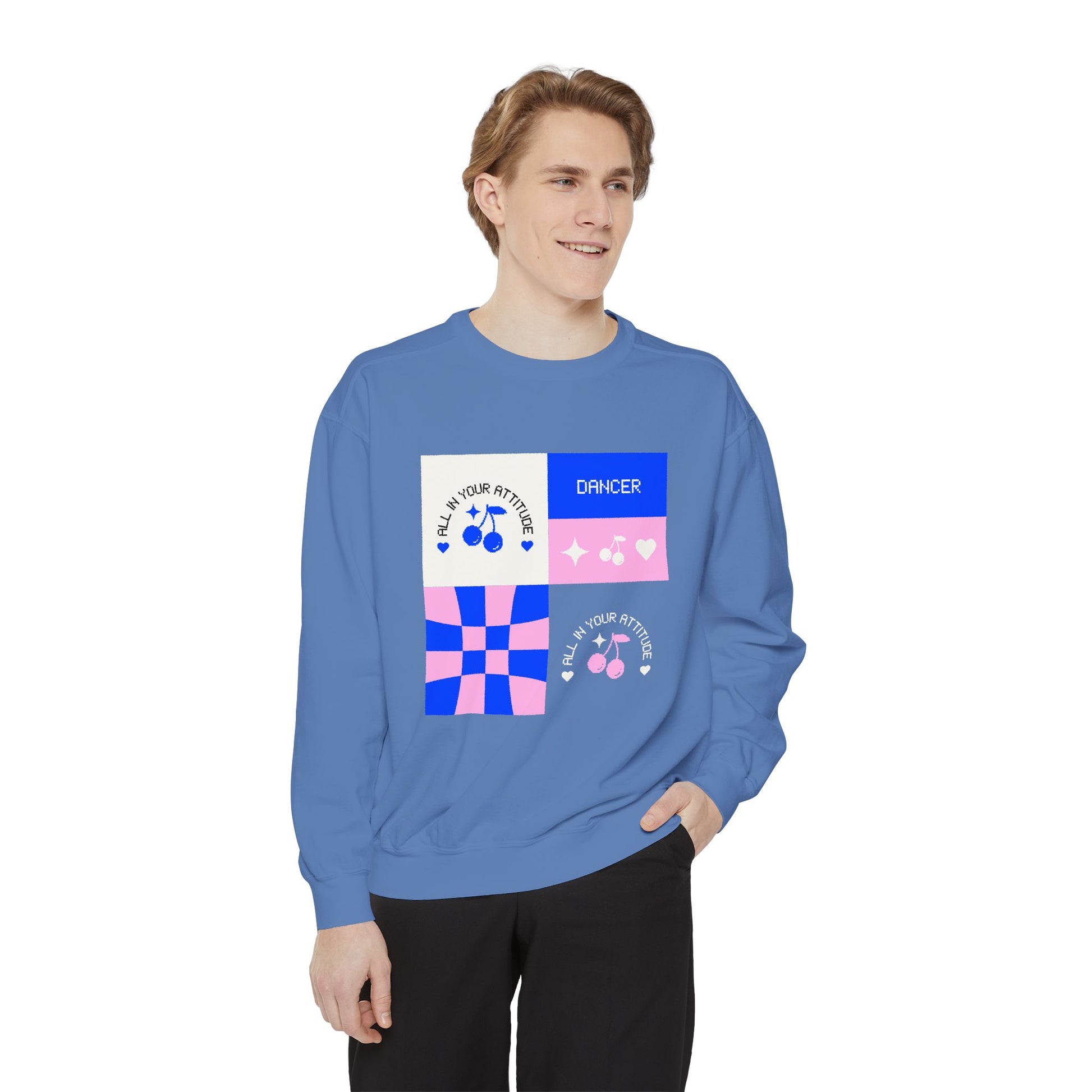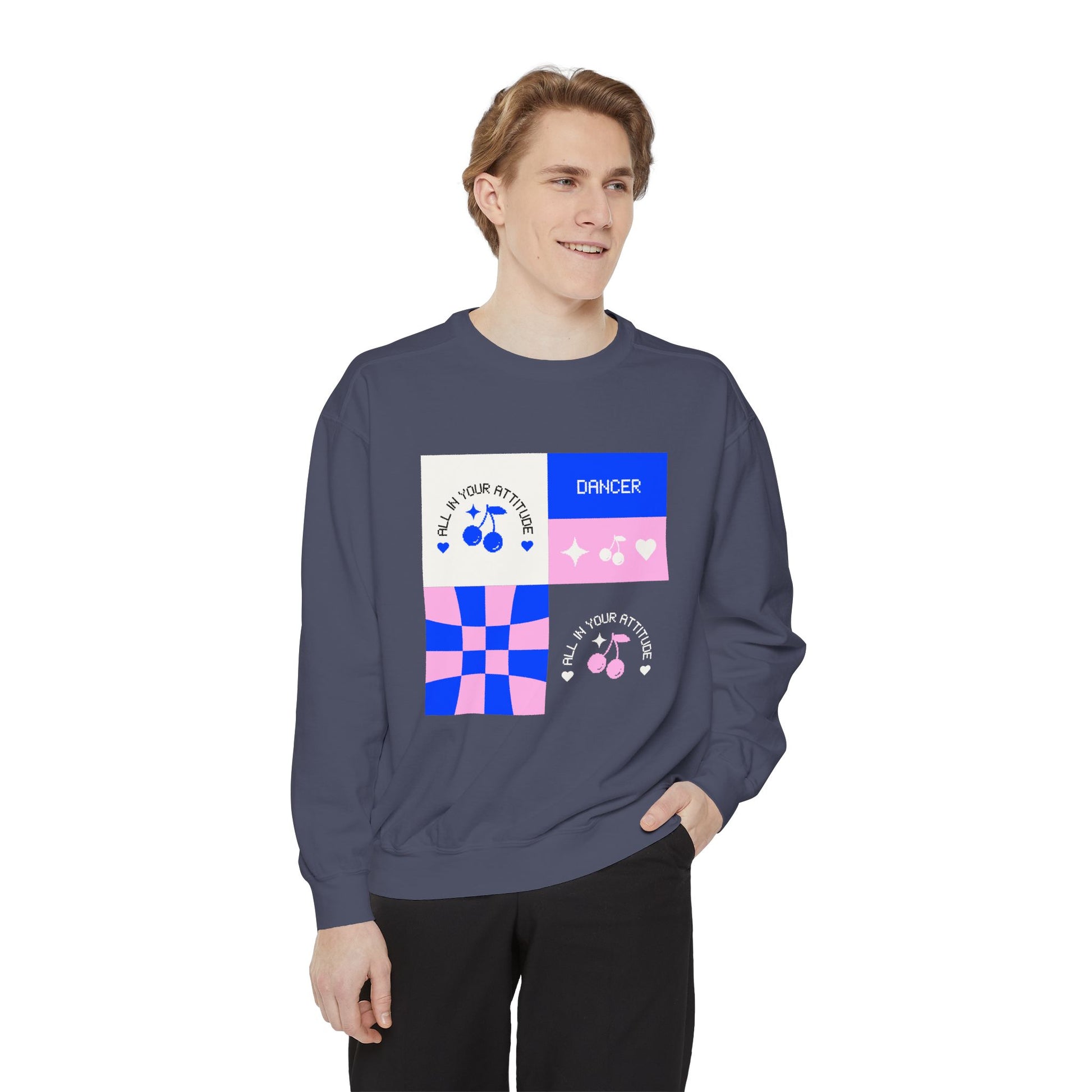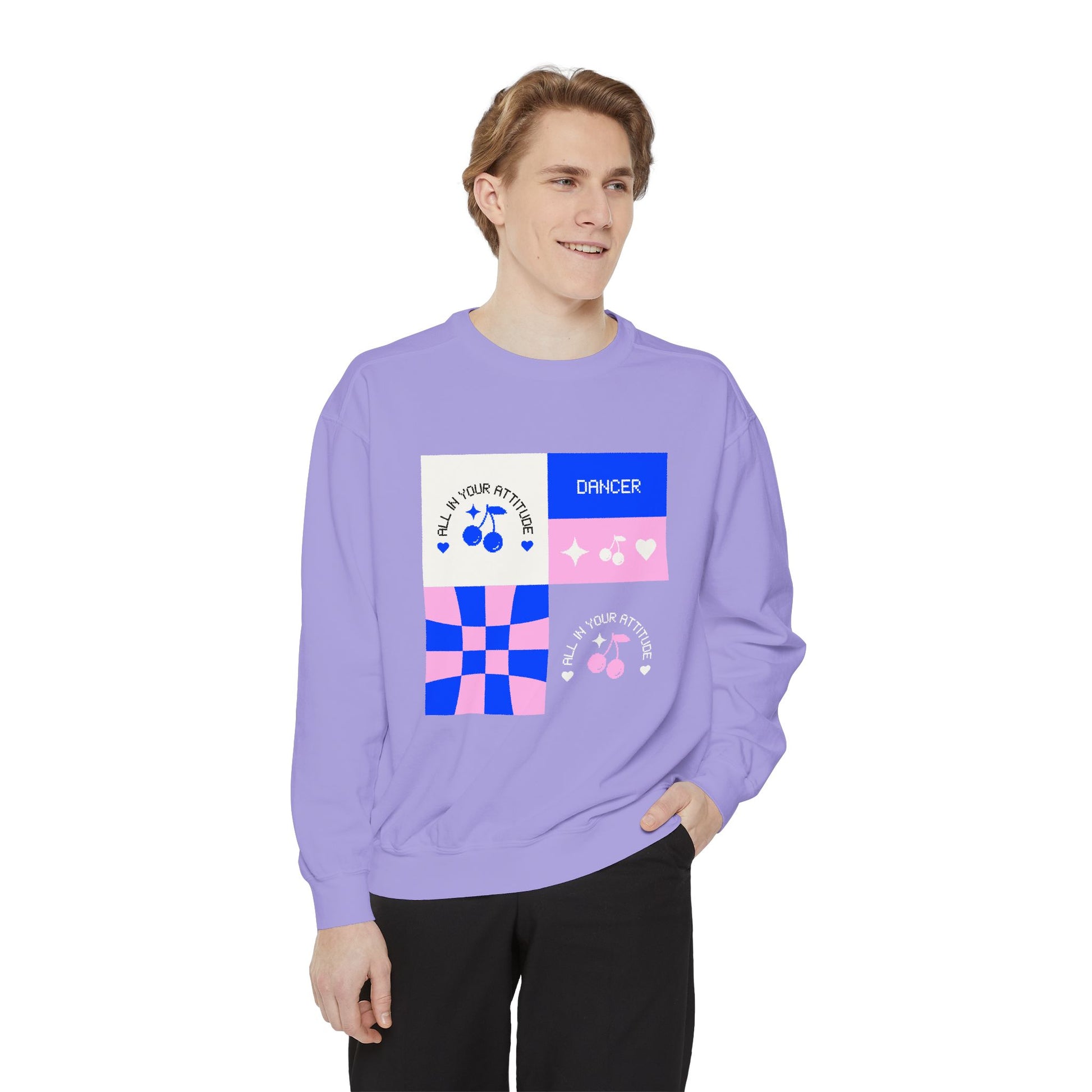 "Dancer – All in Your Attitude" Unisex Lightweight Crewneck Sweatshirt – Retro-Inspired Dance Graphic Pullover for Confident Movers & Performers