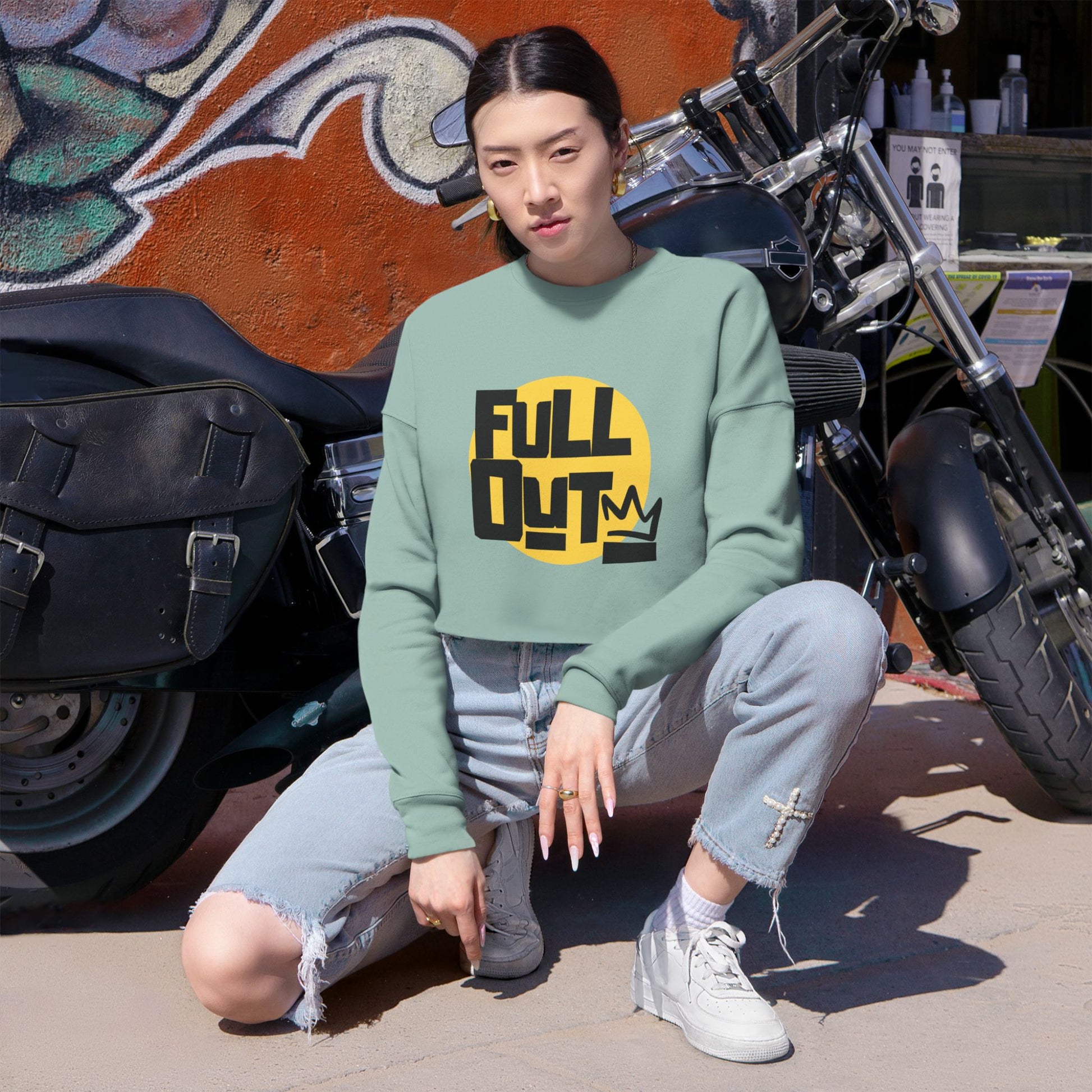 "Full Out" Women’s Cropped Dance Sweatshirt – Streetwear-Inspired Graphic | Bold Urban Style for Dancers & Performers