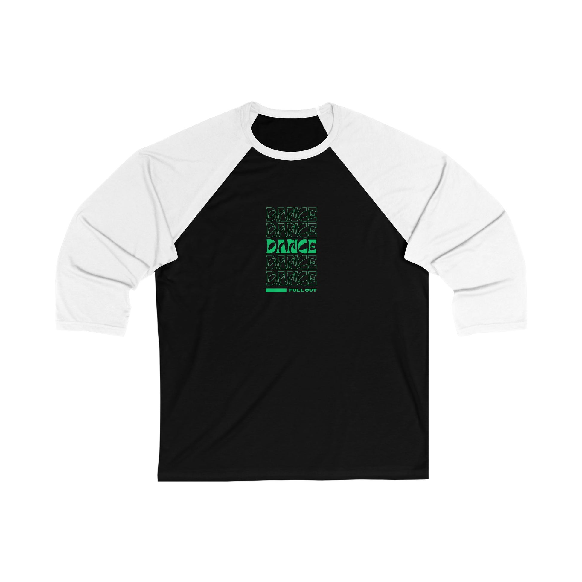 "Dance – Full Out" Unisex 3/4 Sleeve Baseball Tee – Bold Text-Based Graphic Dance Shirt for Performers and Rehearsals