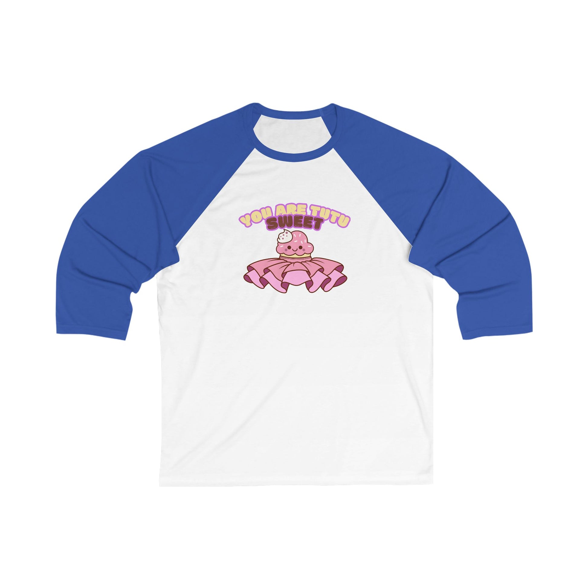 "You Are Tutu Sweet" Unisex 3/4 Sleeve Baseball Tee – Cute Dance Shirt with Kawaii Cupcake in Tutu Graphic for Dancers