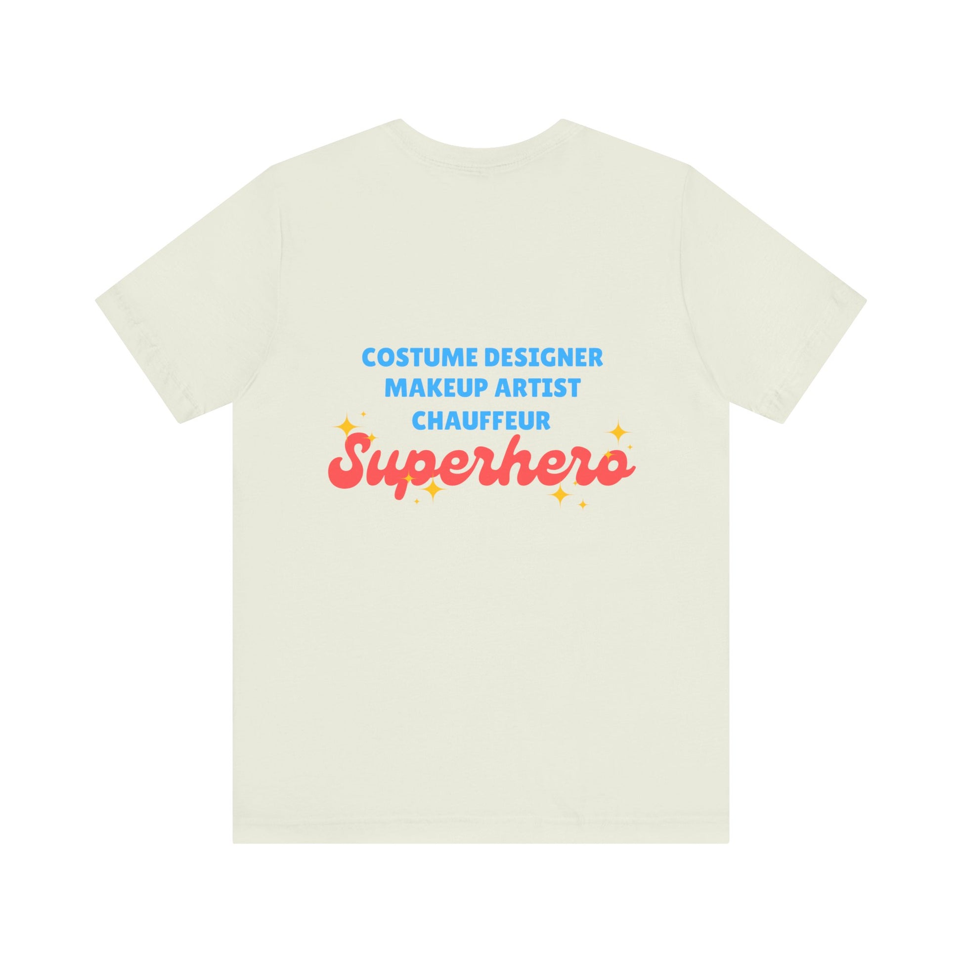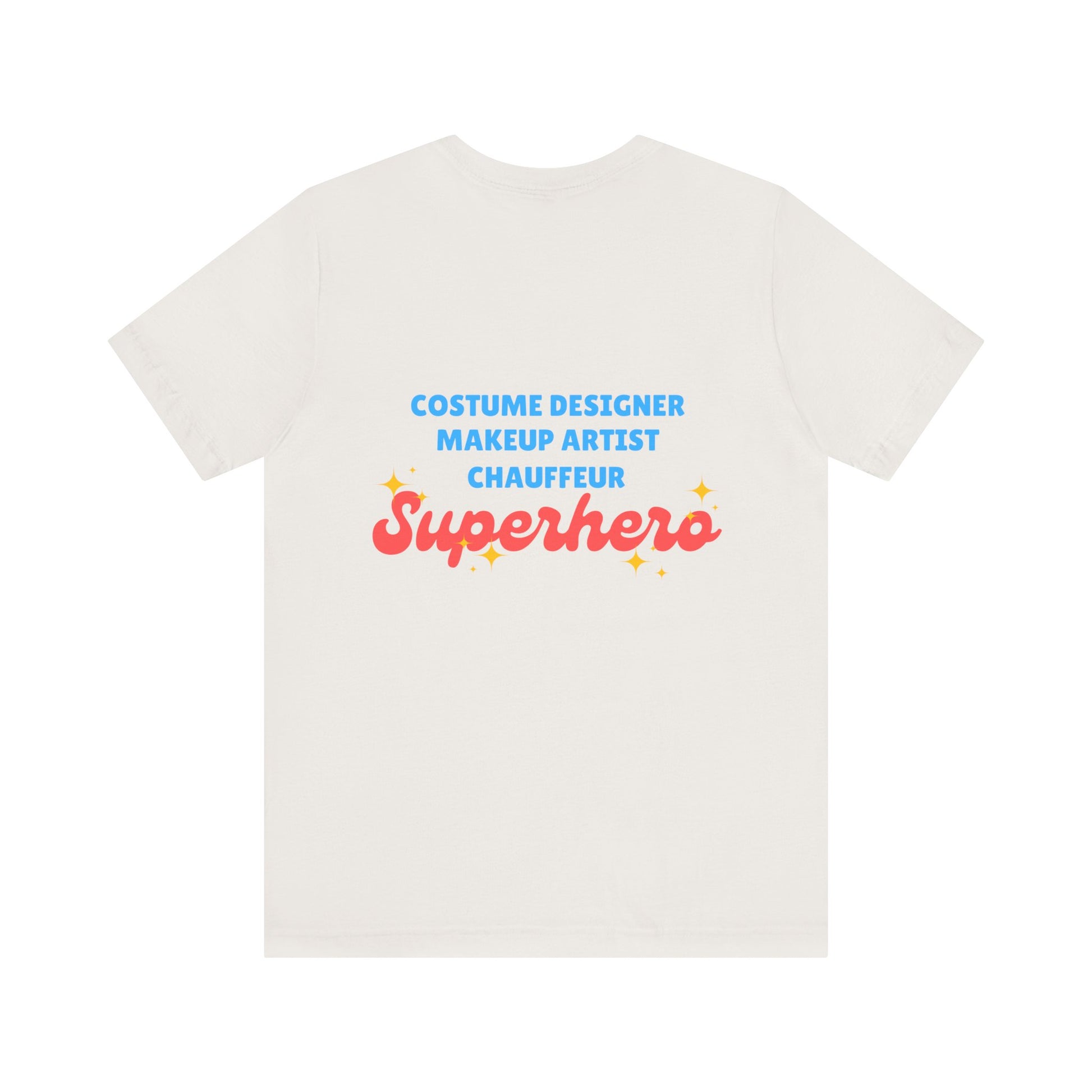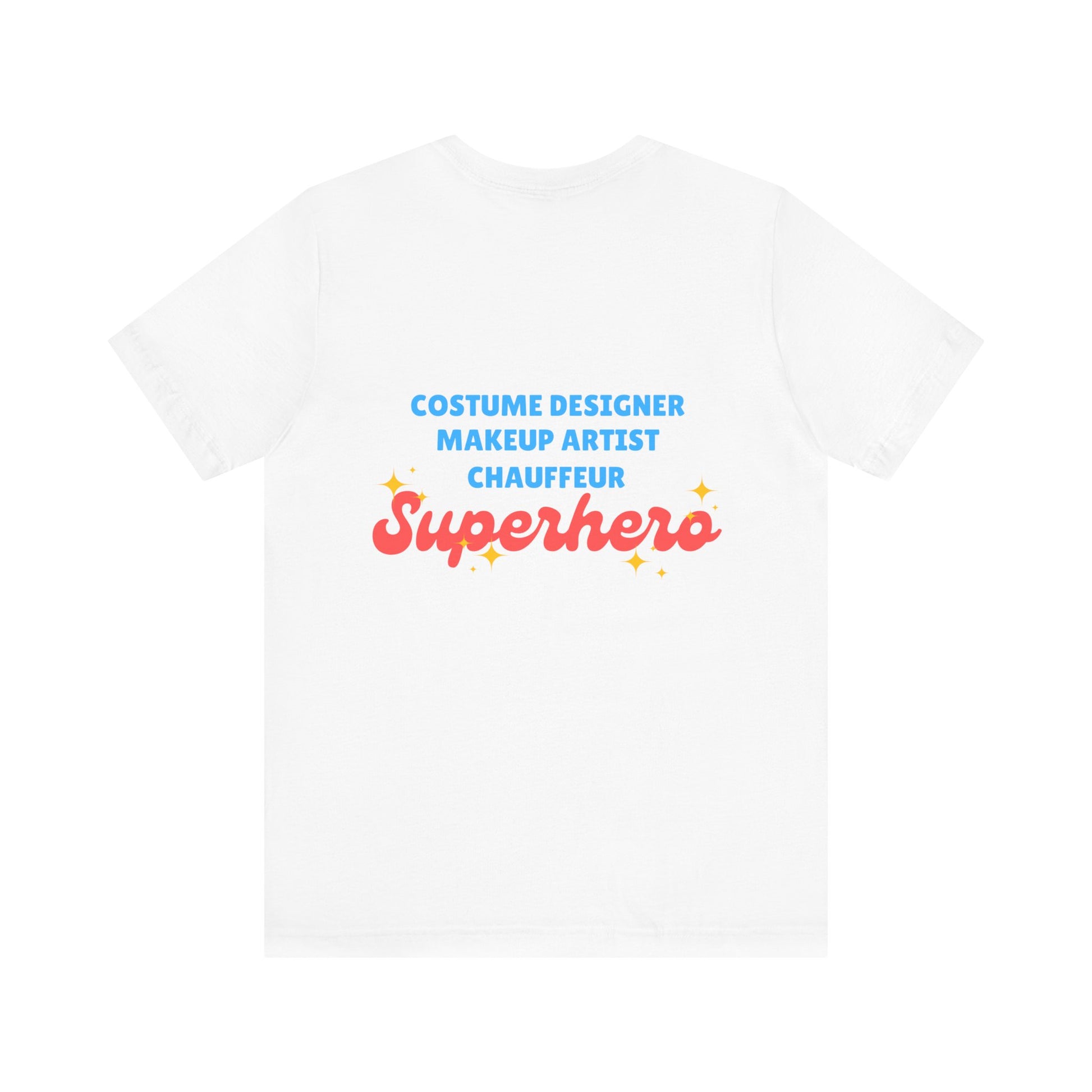 “Costume Designer, Makeup Artist, Chauffeur – Superhero”—this tee is more than just cute… it’s truth.