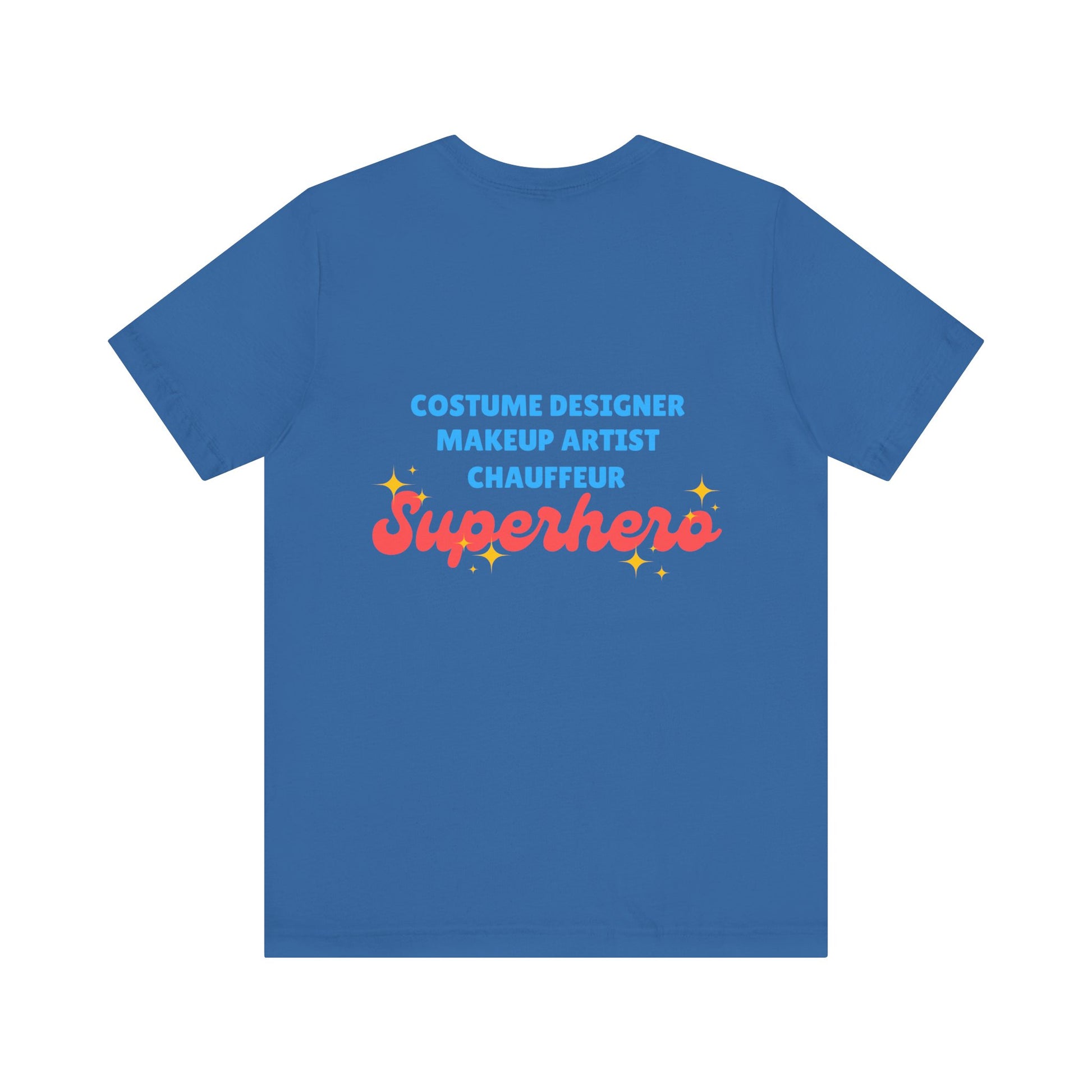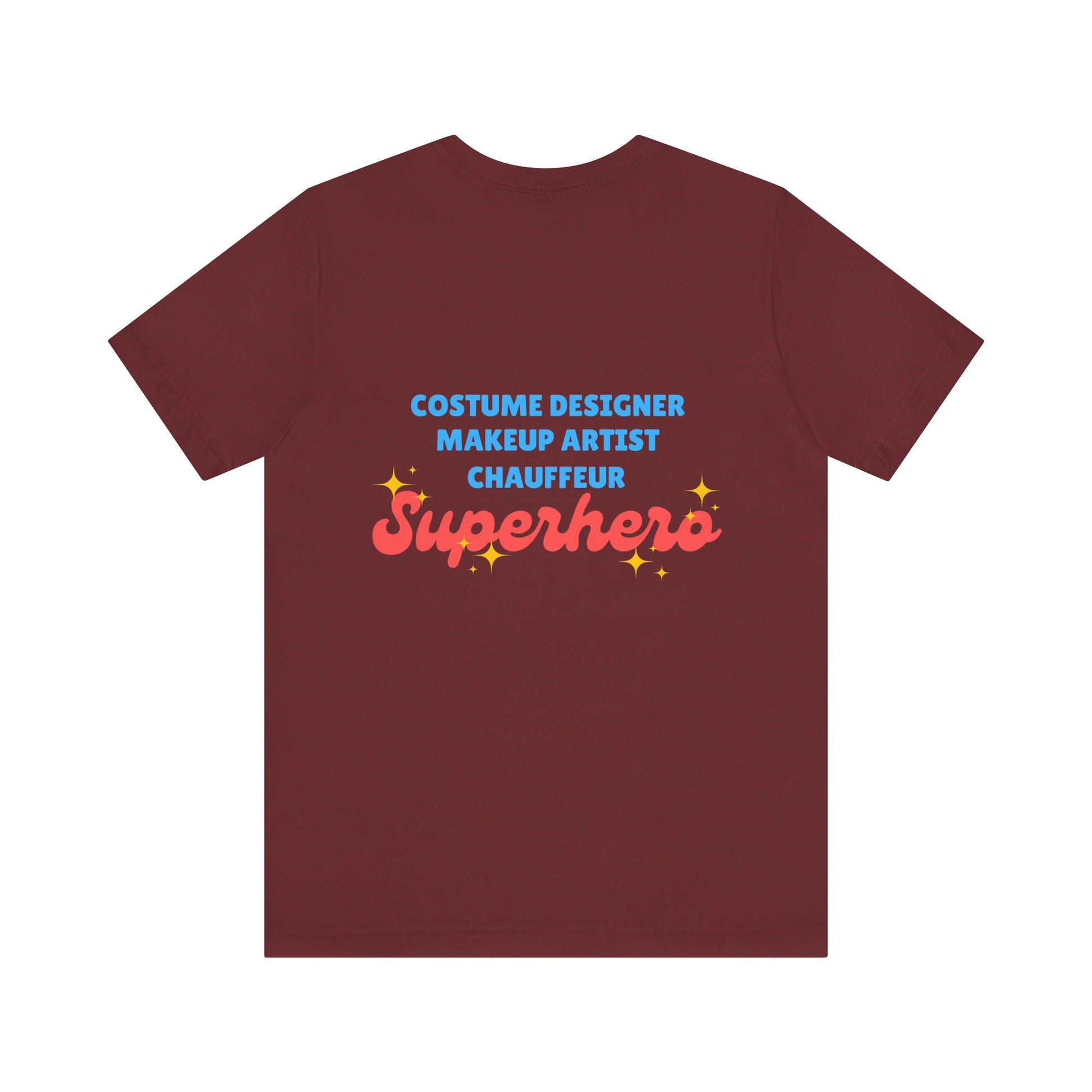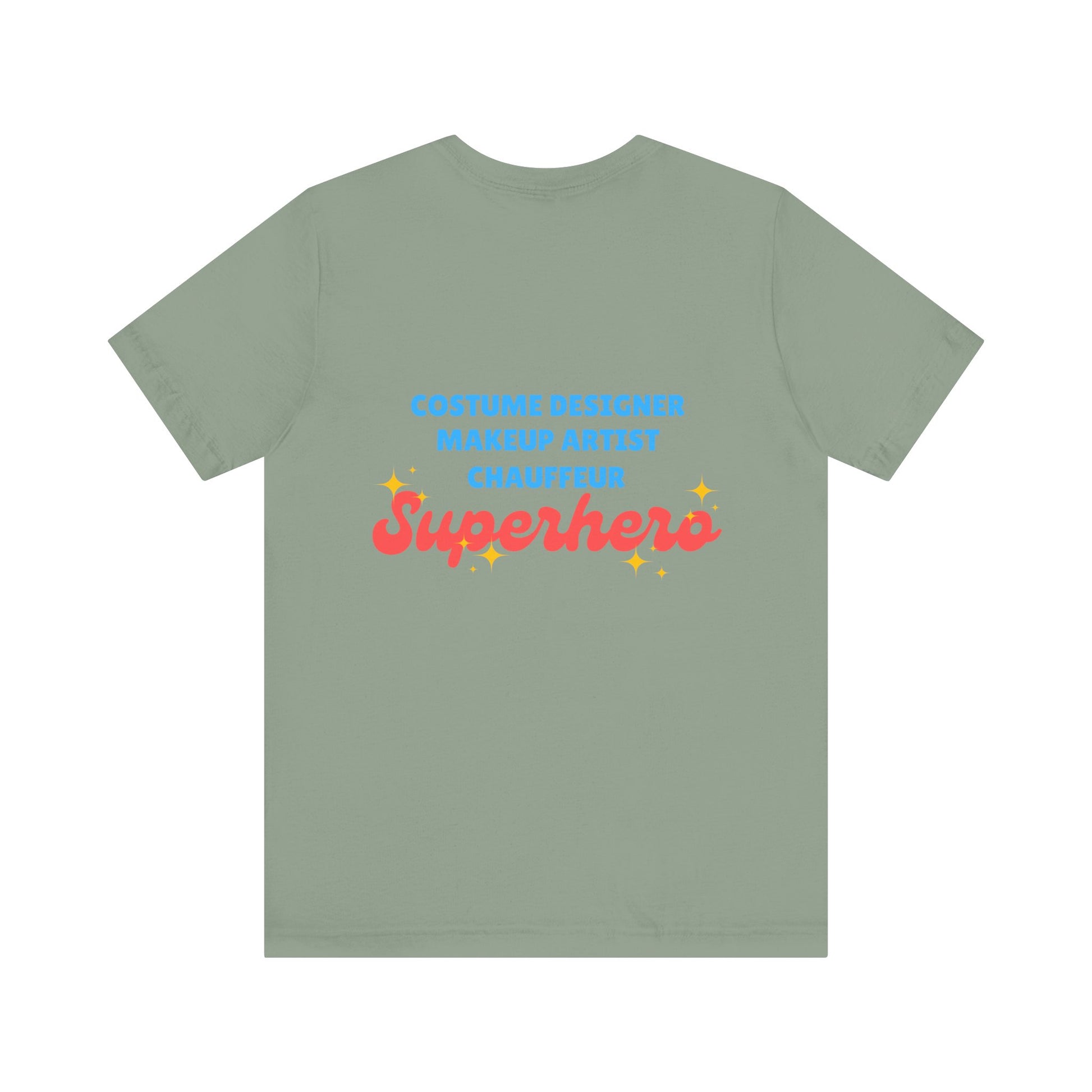 “Costume Designer, Makeup Artist, Chauffeur – Superhero”—this tee is more than just cute… it’s truth.