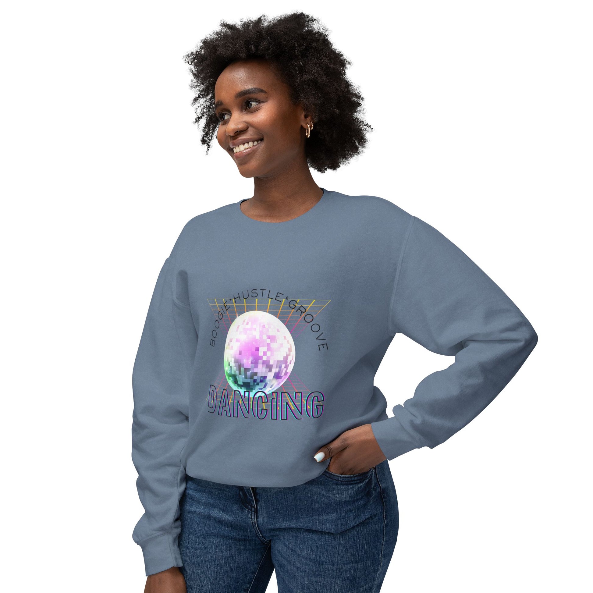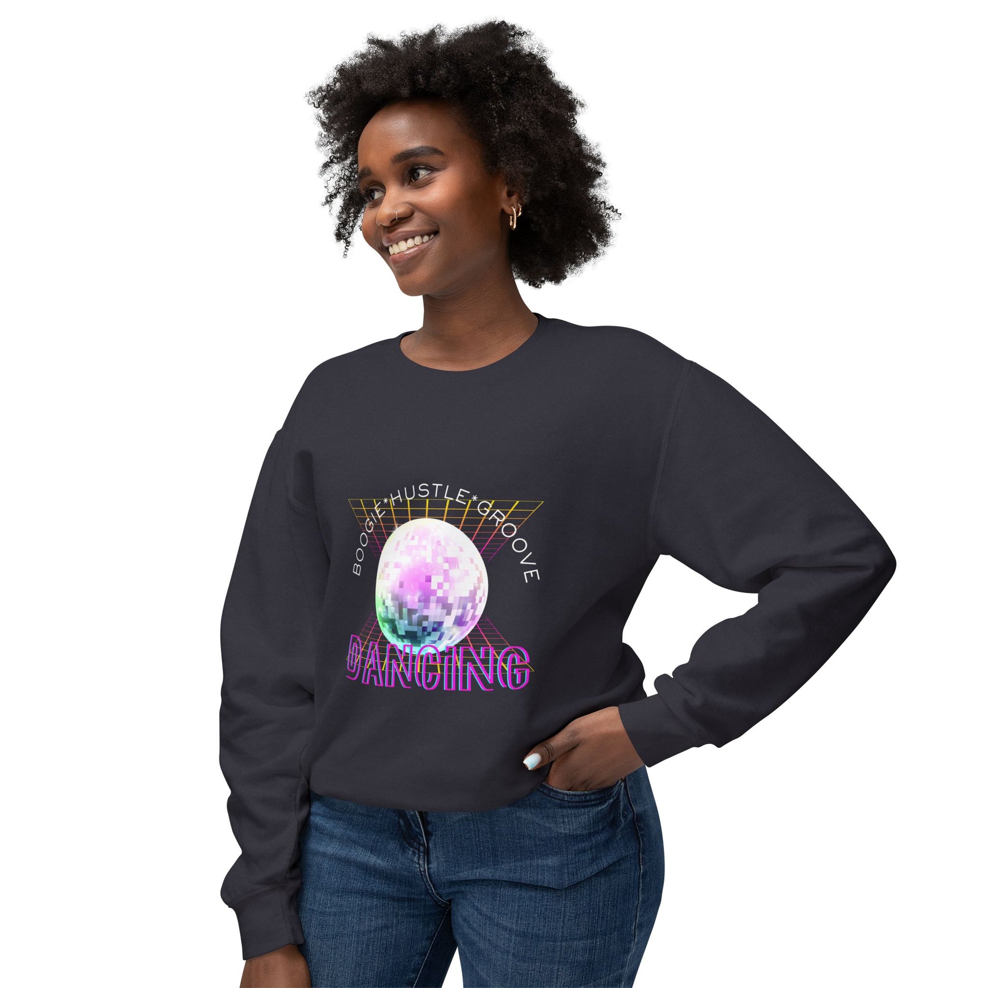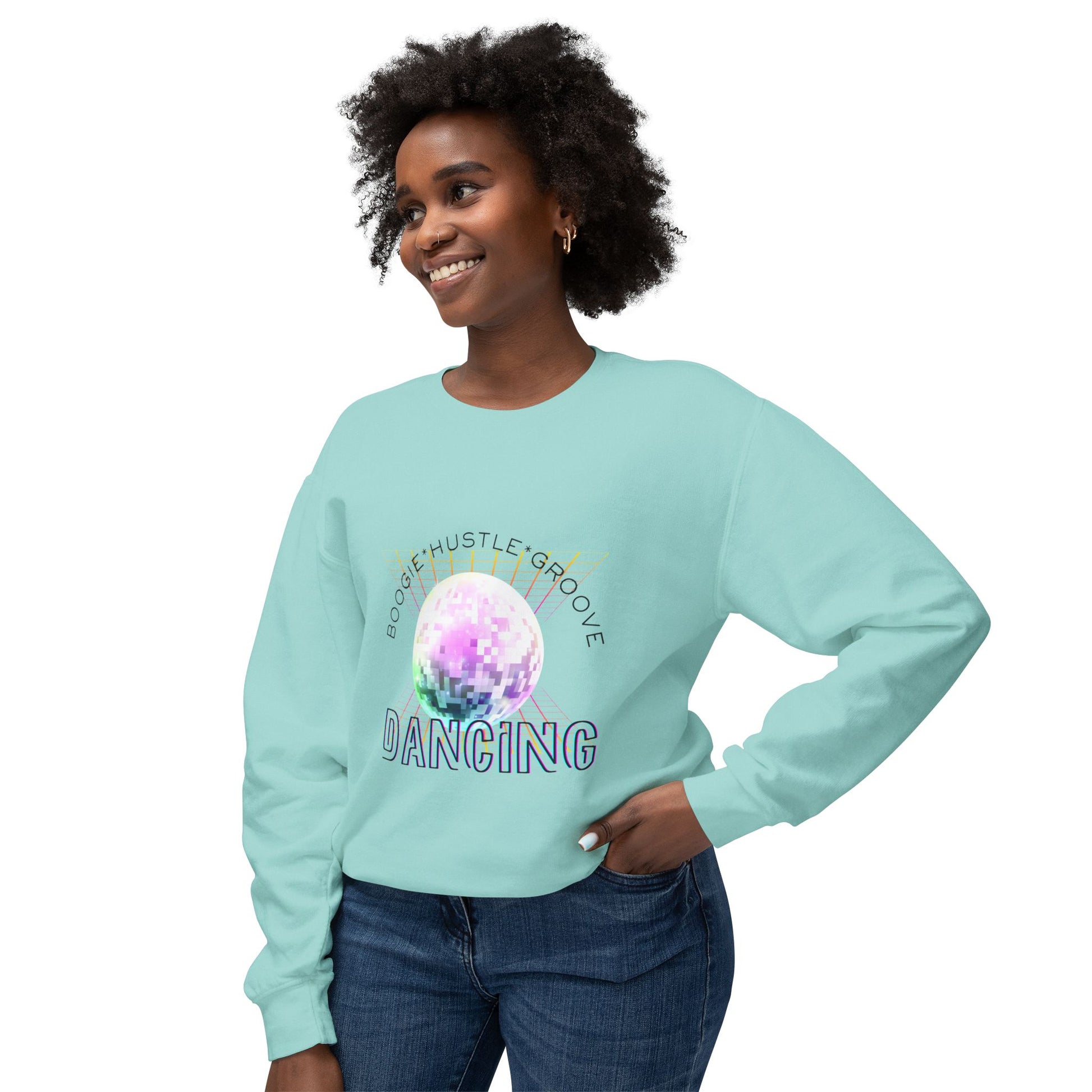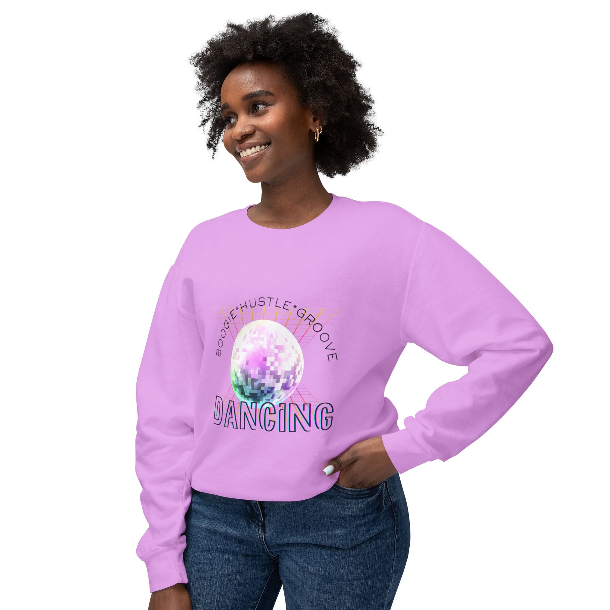 "Boogie, Hustle, Groove - Dancing" Streetwear Dance Graphic – Unisex Lightweight Crewneck Sweatshirt