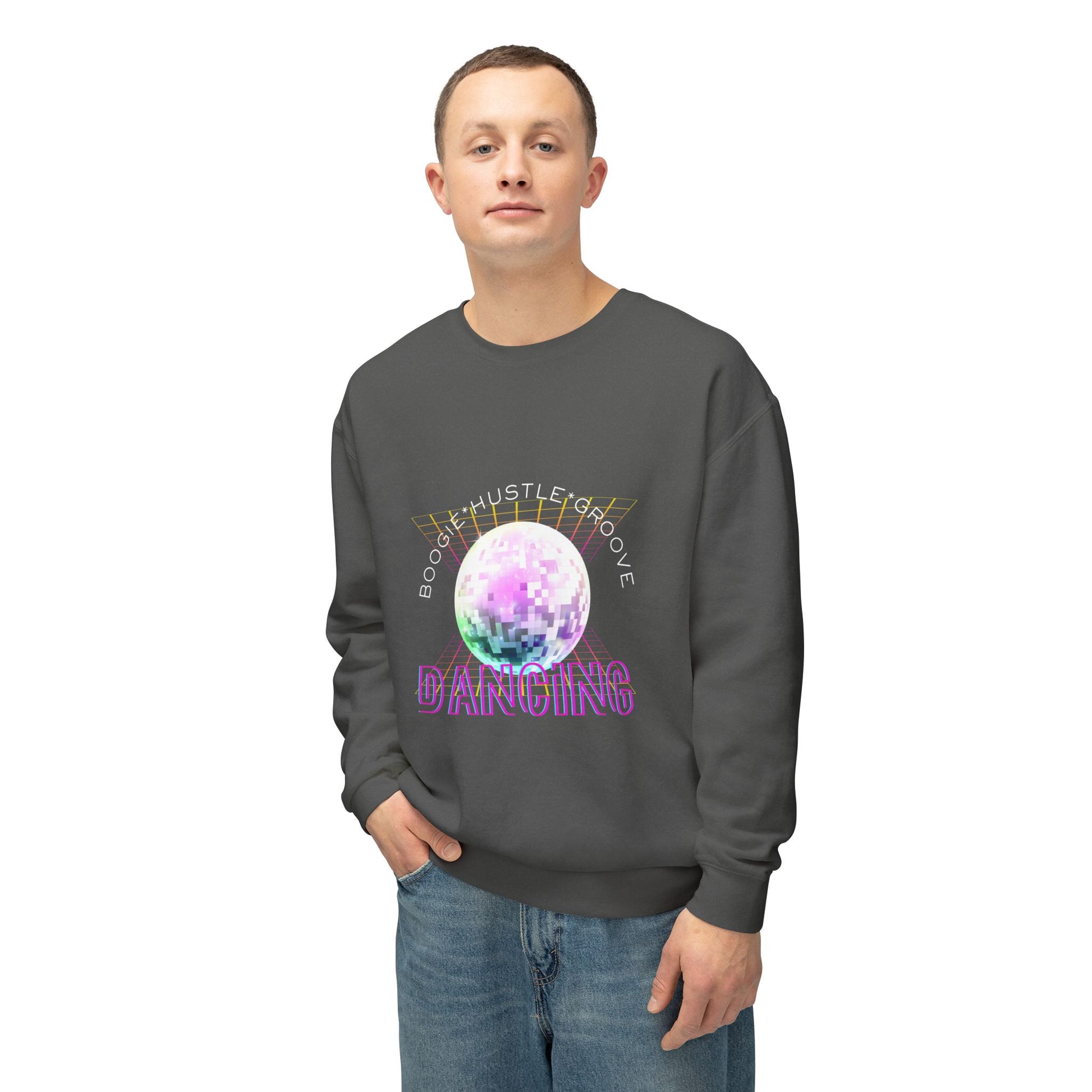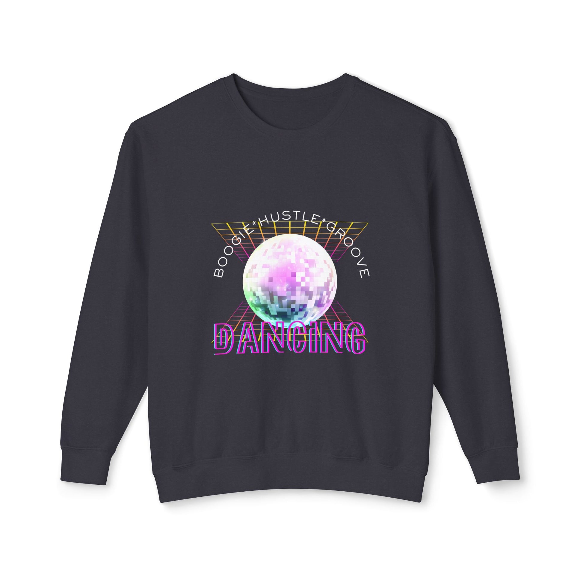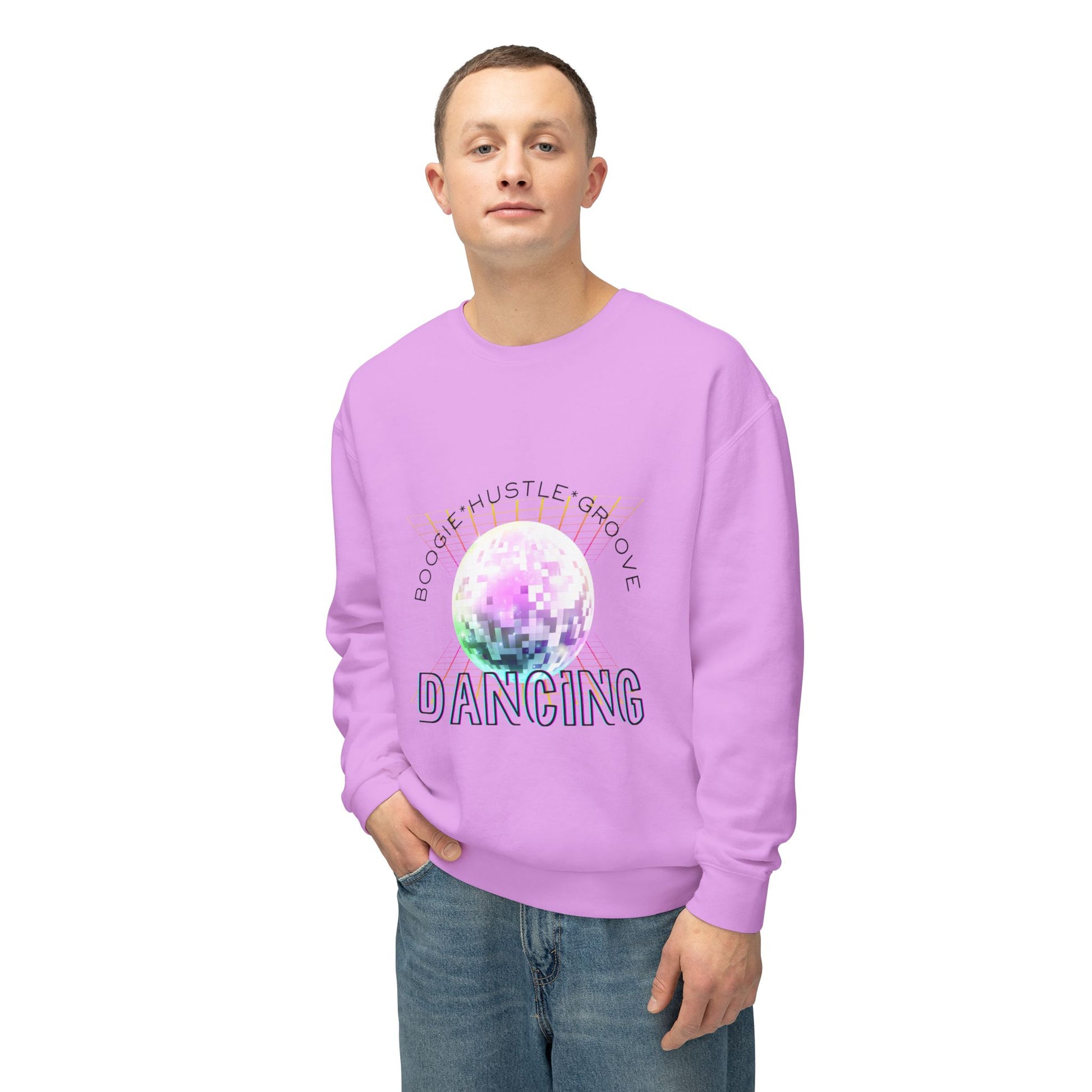 "Boogie, Hustle, Groove - Dancing" Streetwear Dance Graphic – Unisex Lightweight Crewneck Sweatshirt