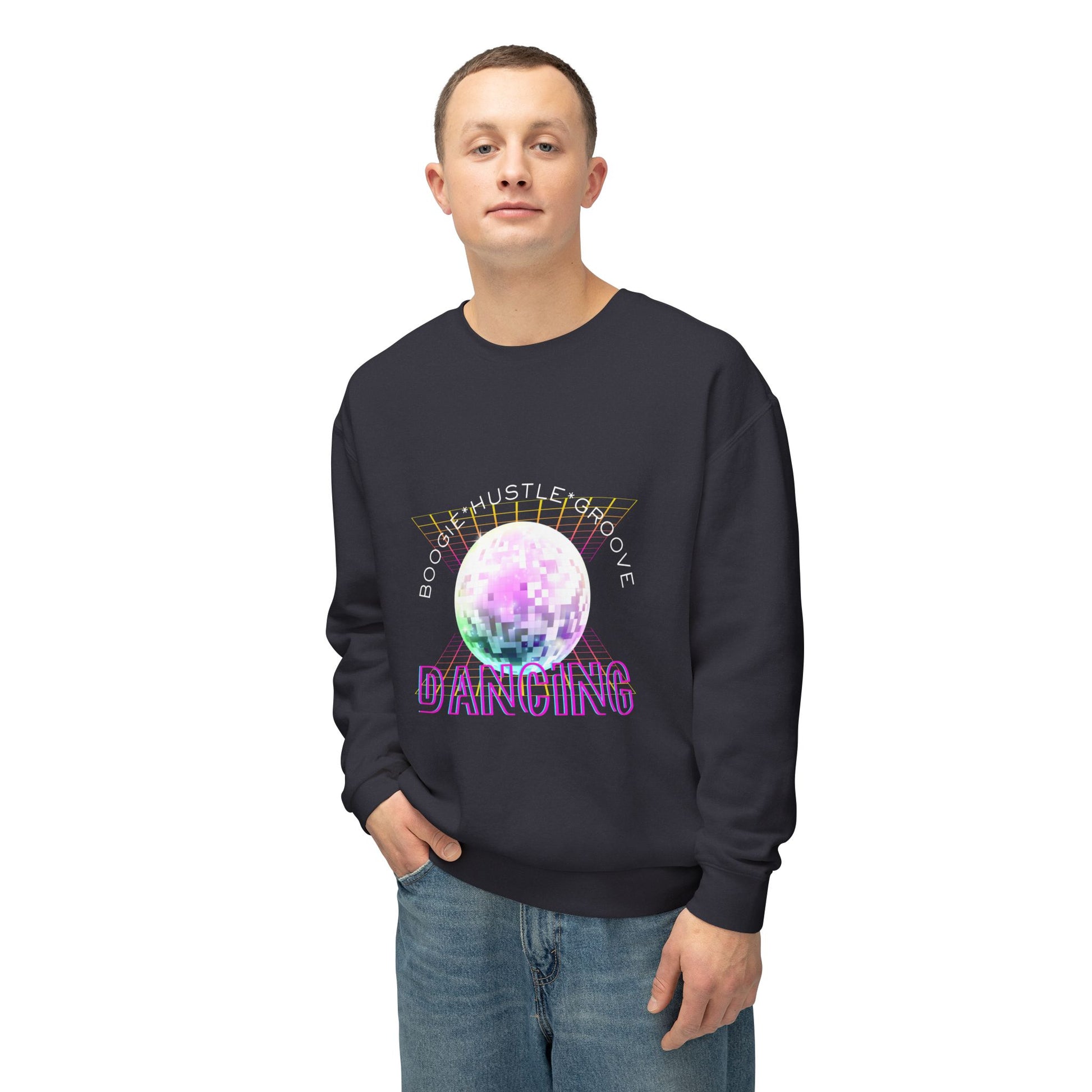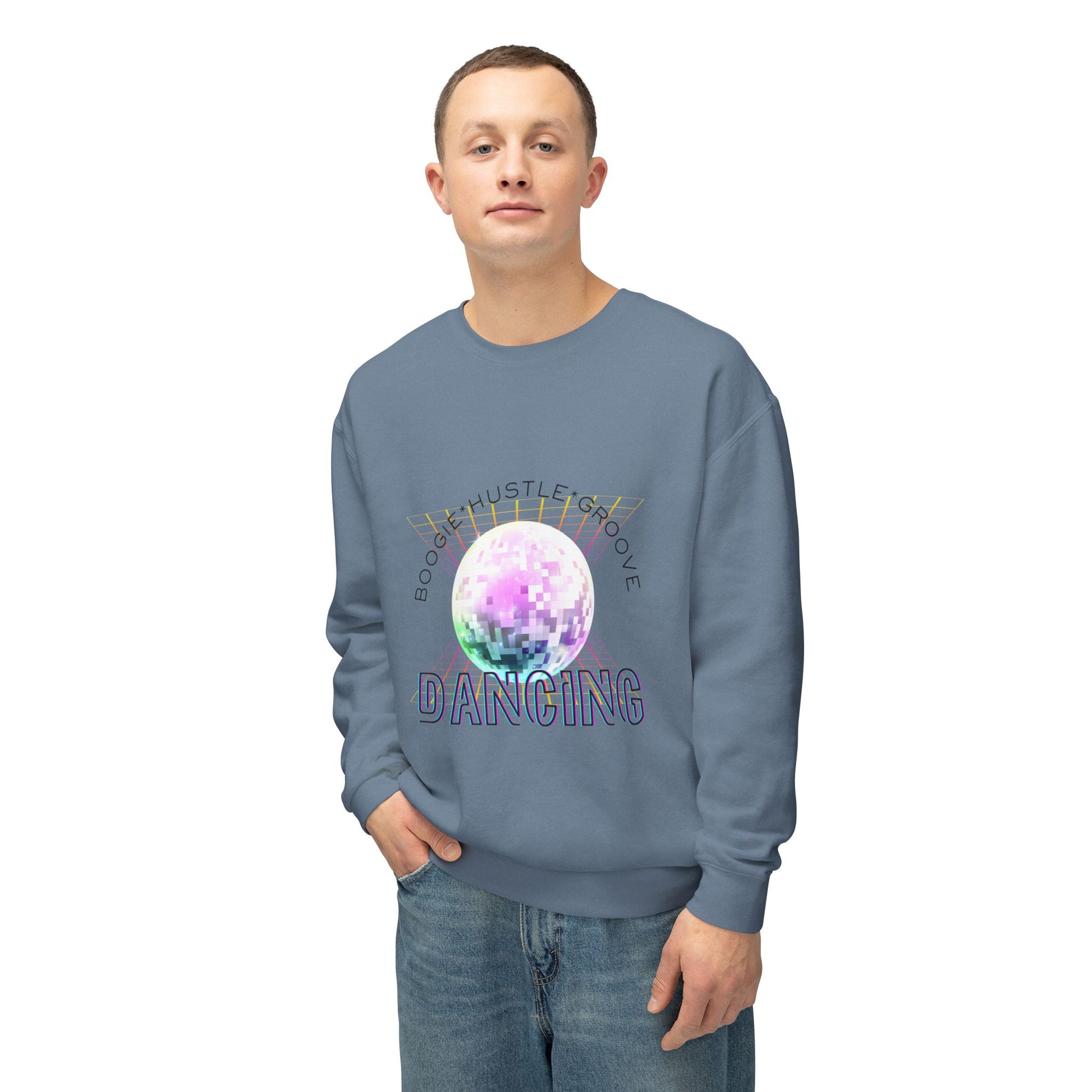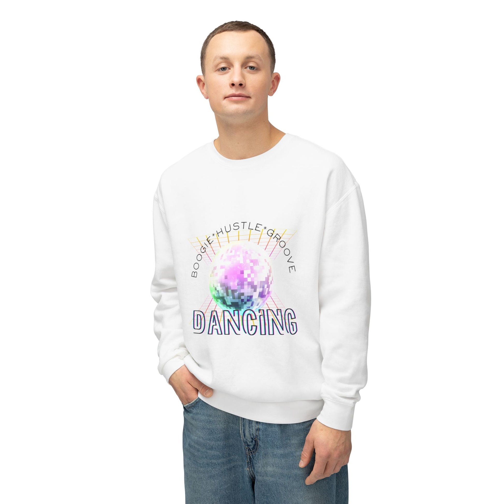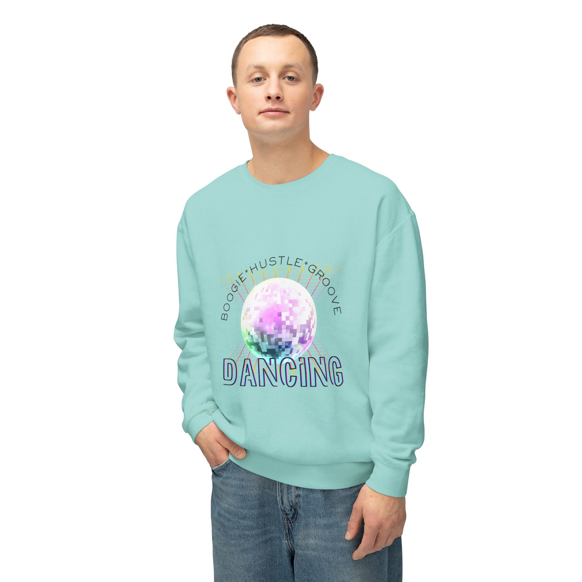 "Boogie, Hustle, Groove - Dancing" Streetwear Dance Graphic – Unisex Lightweight Crewneck Sweatshirt