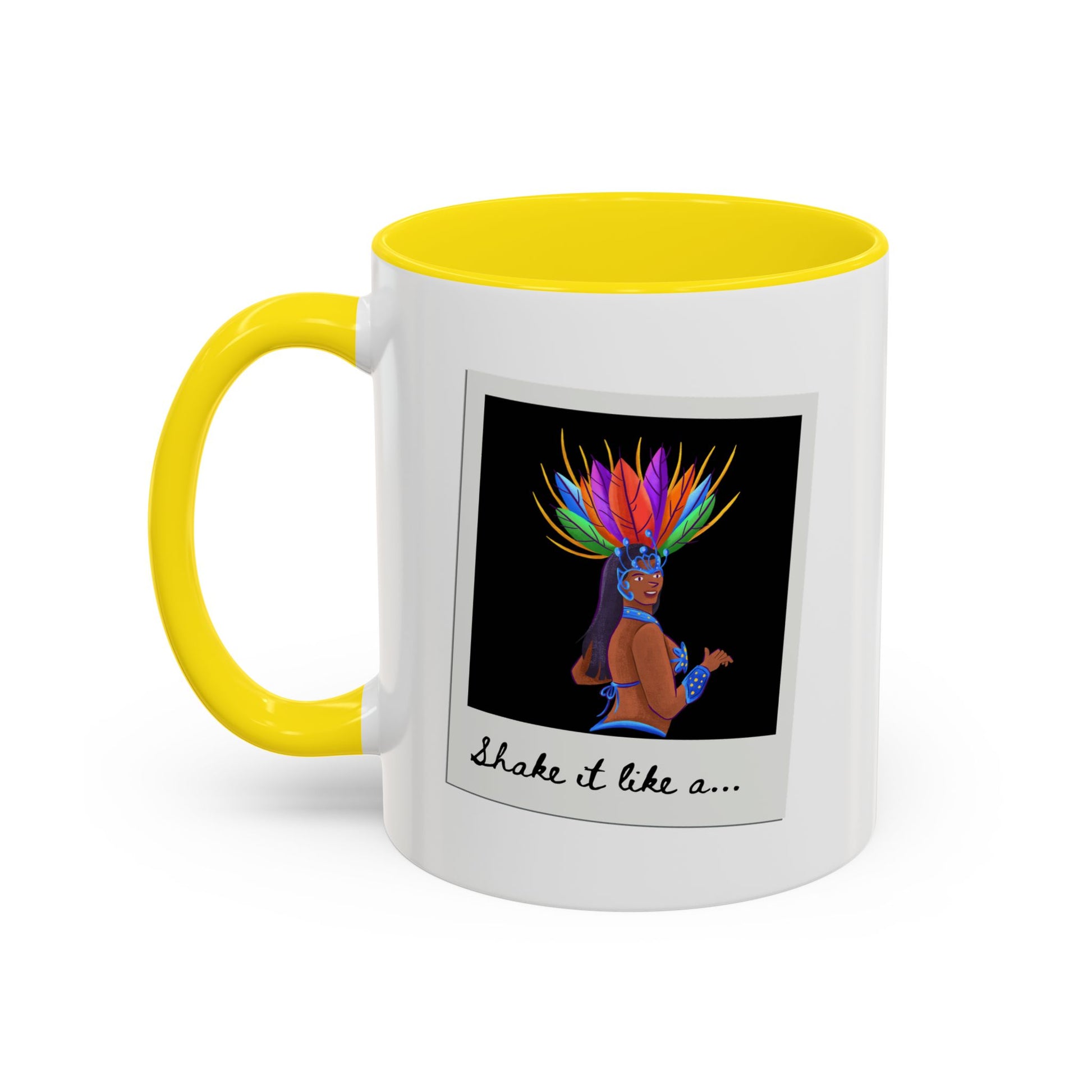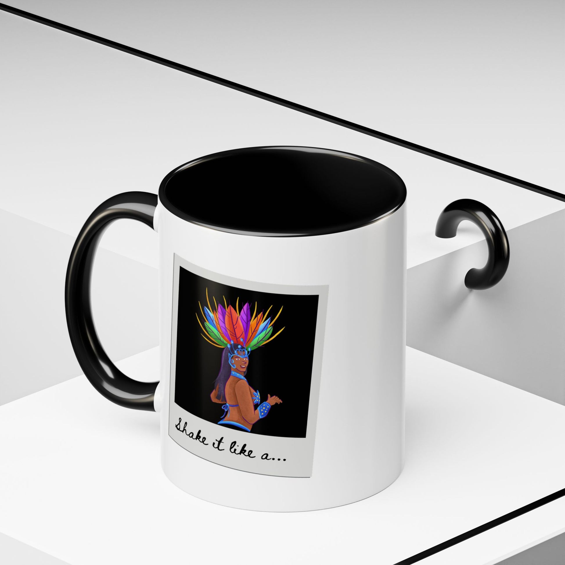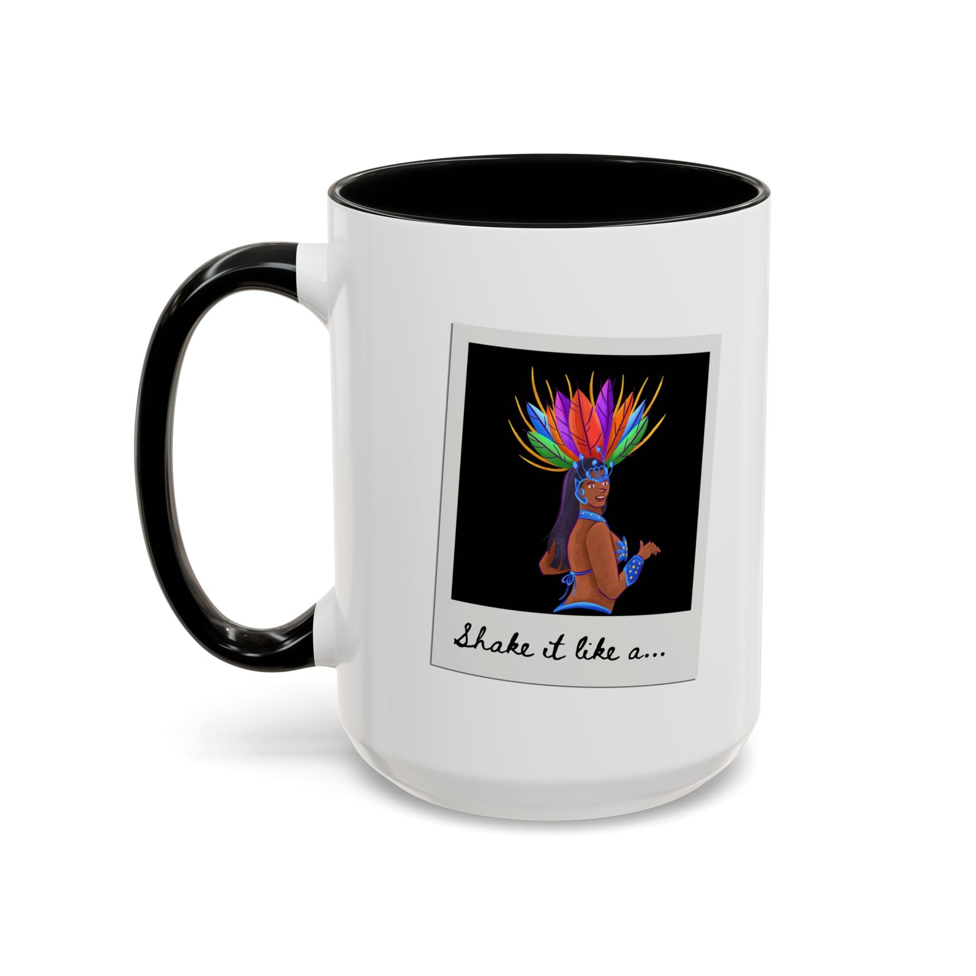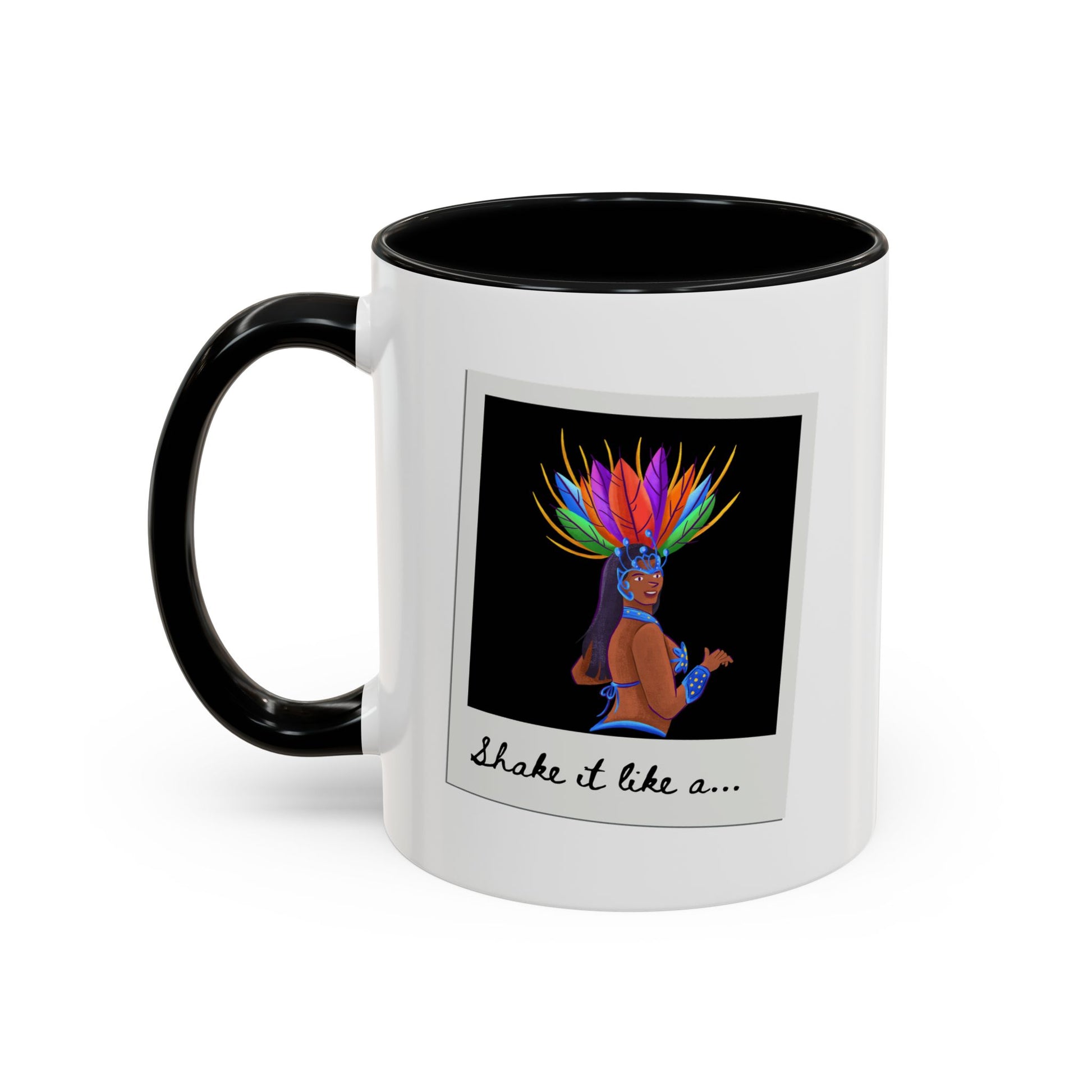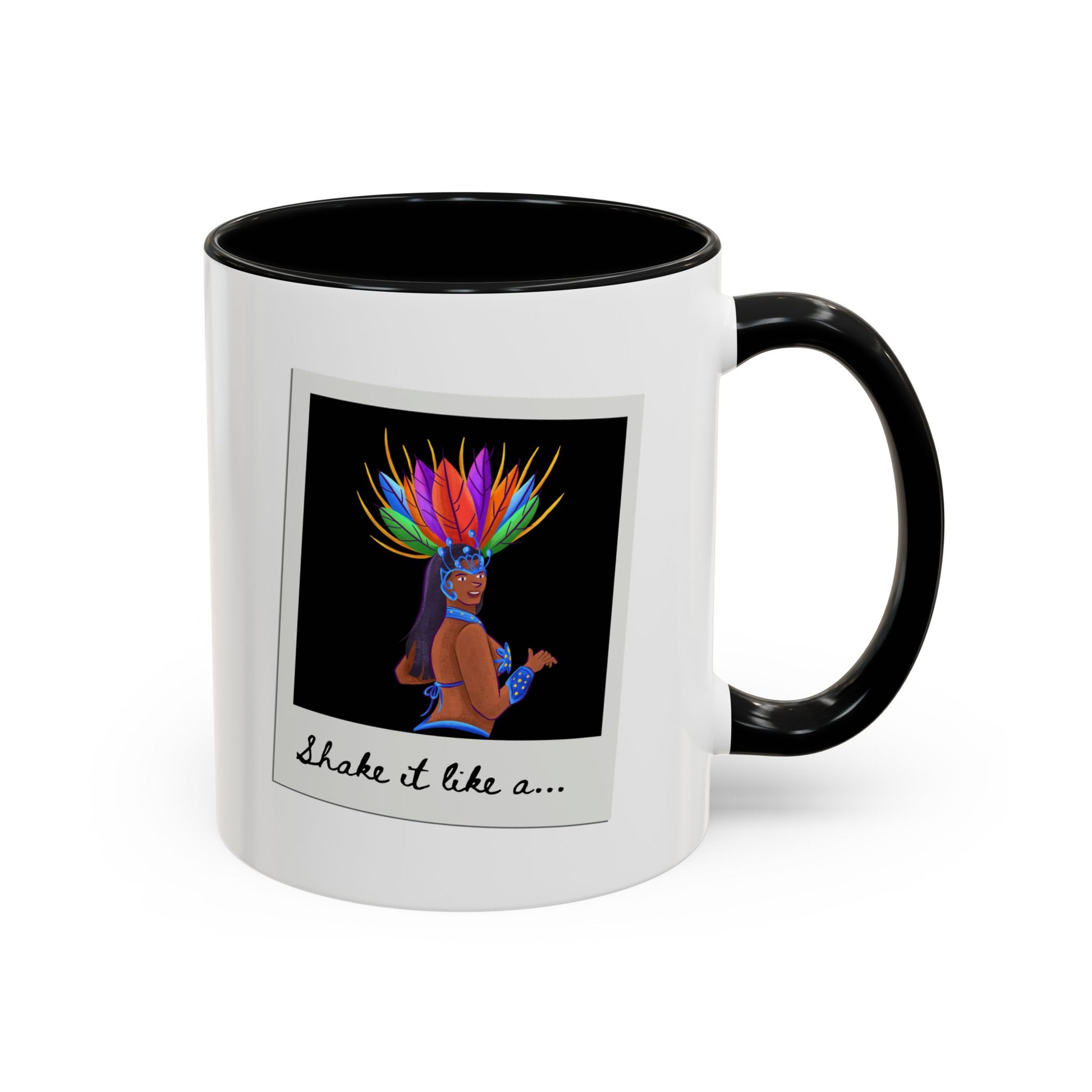 🎉 "Shake It Like a..." Accent Coffee Mug – Featuring a Carnival-Inspired Samba Dancer Graphic ☕💃