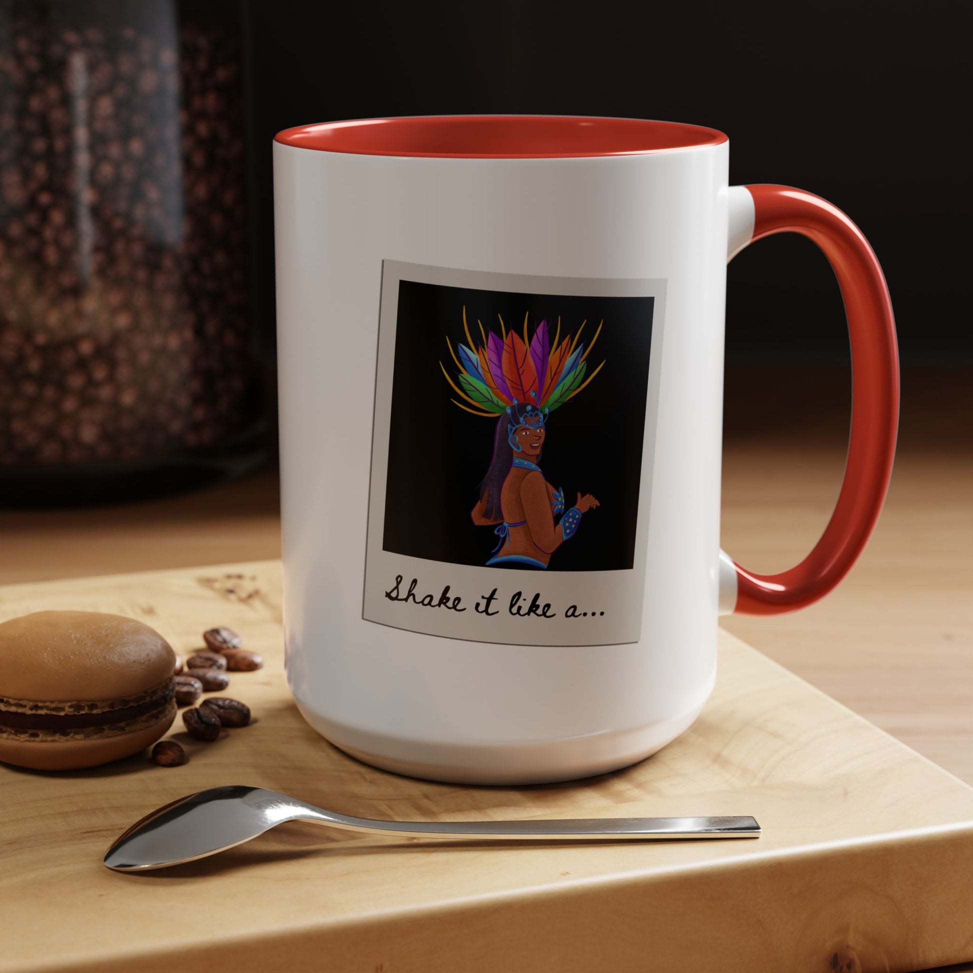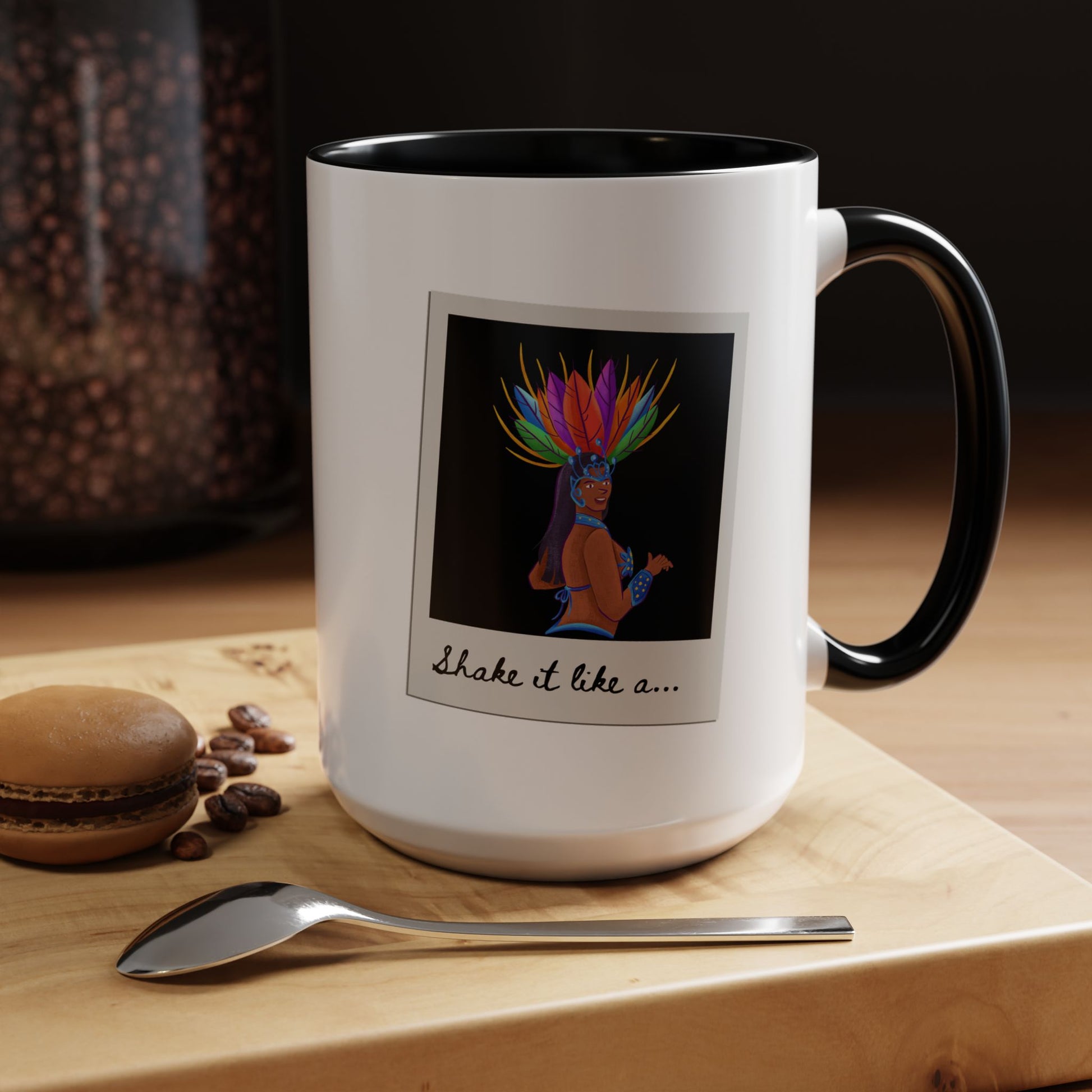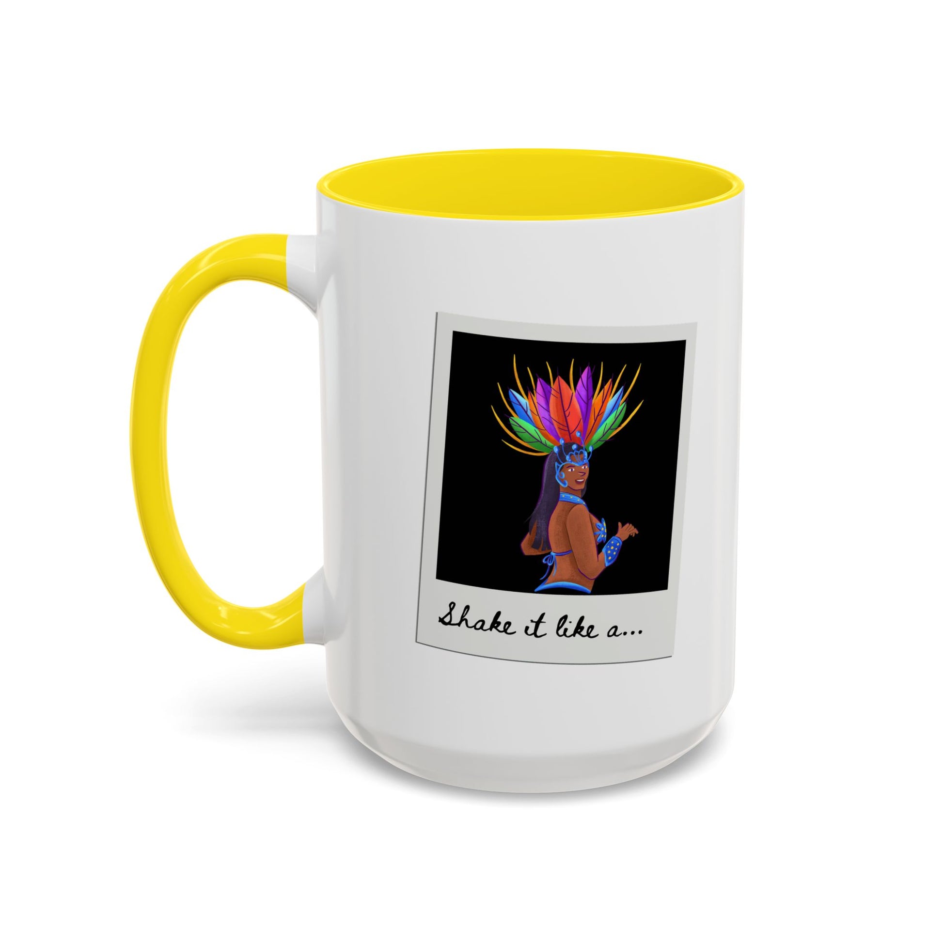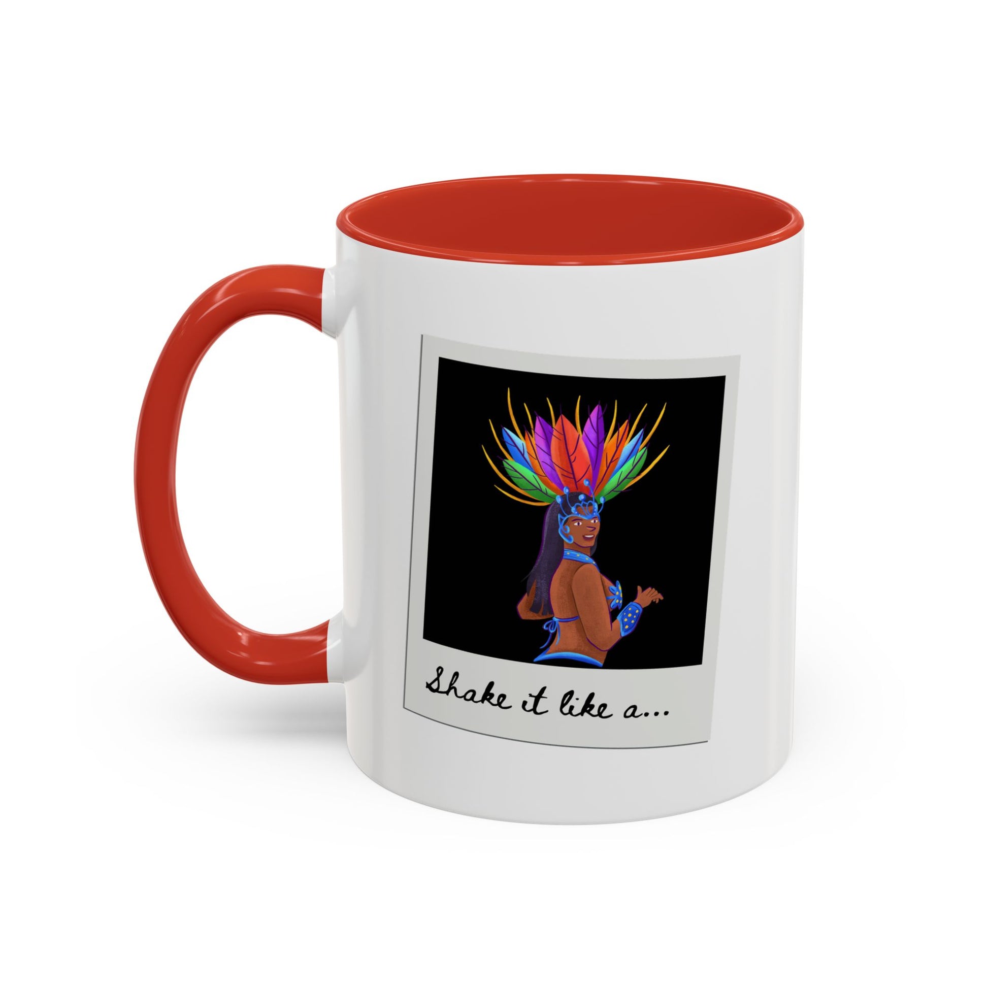 🎉 "Shake It Like a..." Accent Coffee Mug – Featuring a Carnival-Inspired Samba Dancer Graphic ☕💃