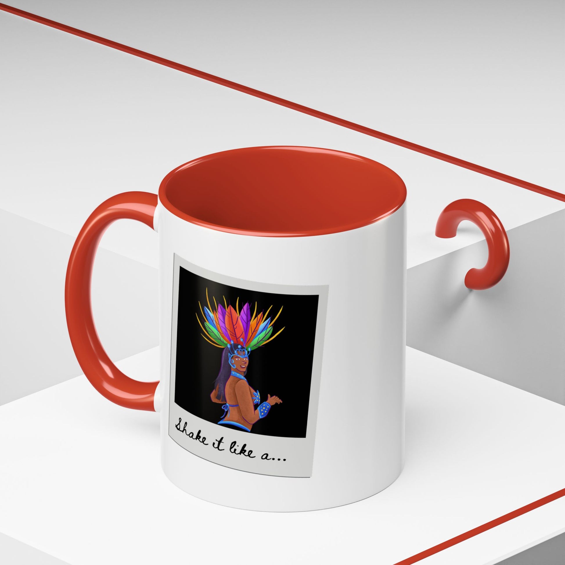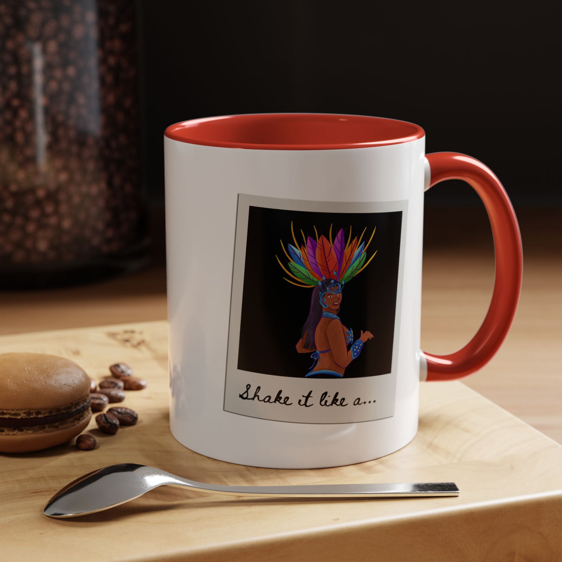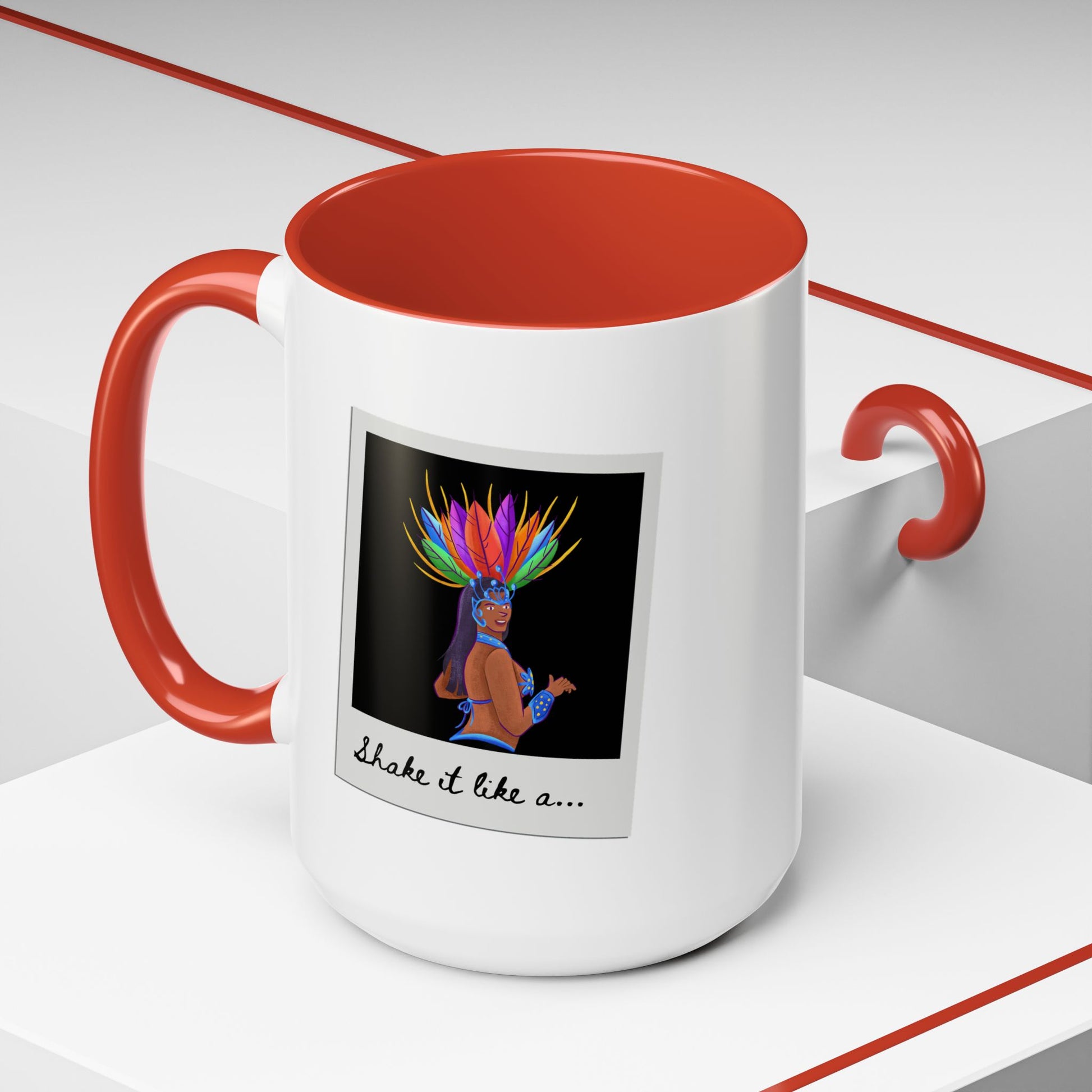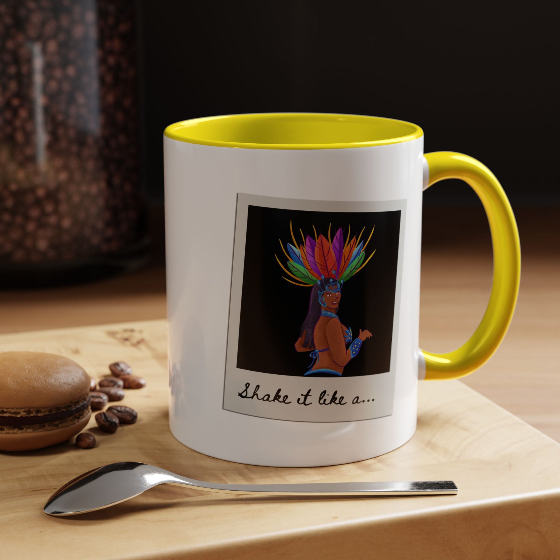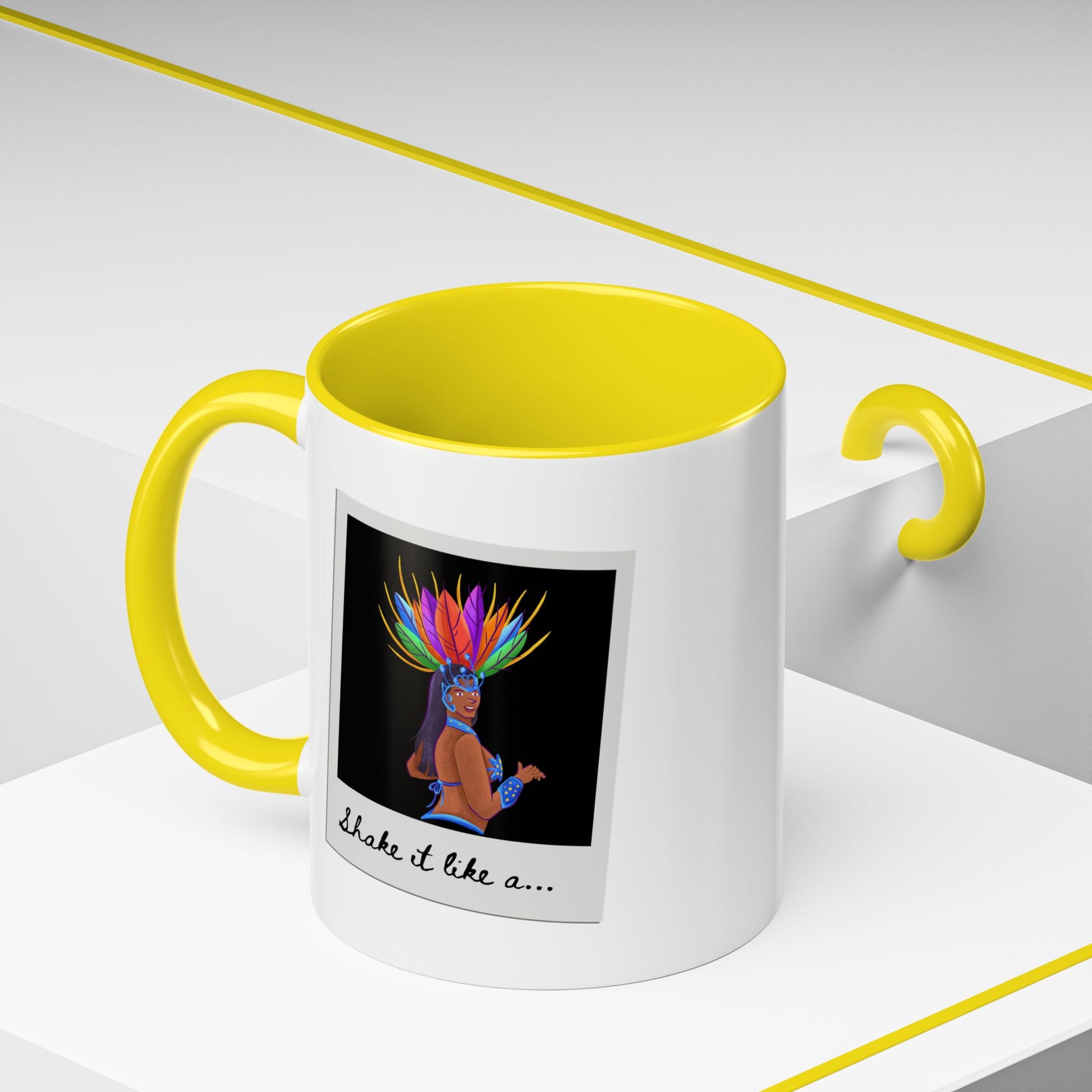 🎉 "Shake It Like a..." Accent Coffee Mug – Featuring a Carnival-Inspired Samba Dancer Graphic ☕💃