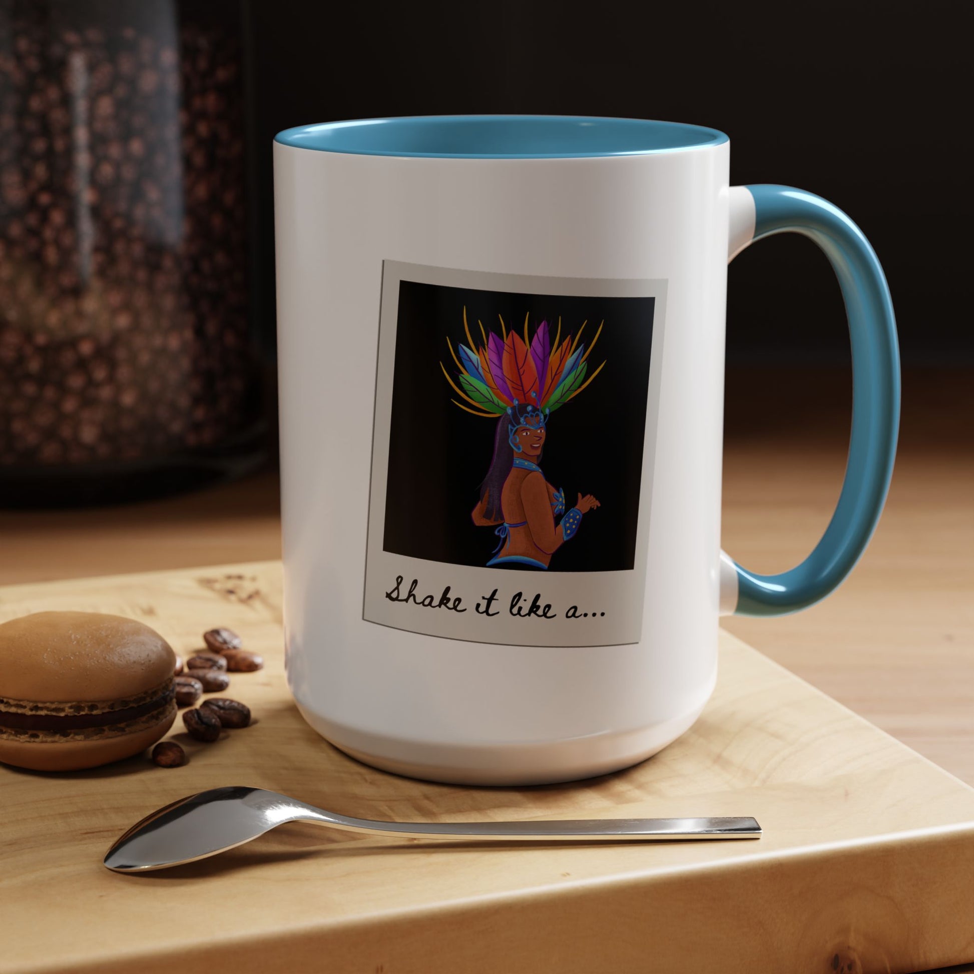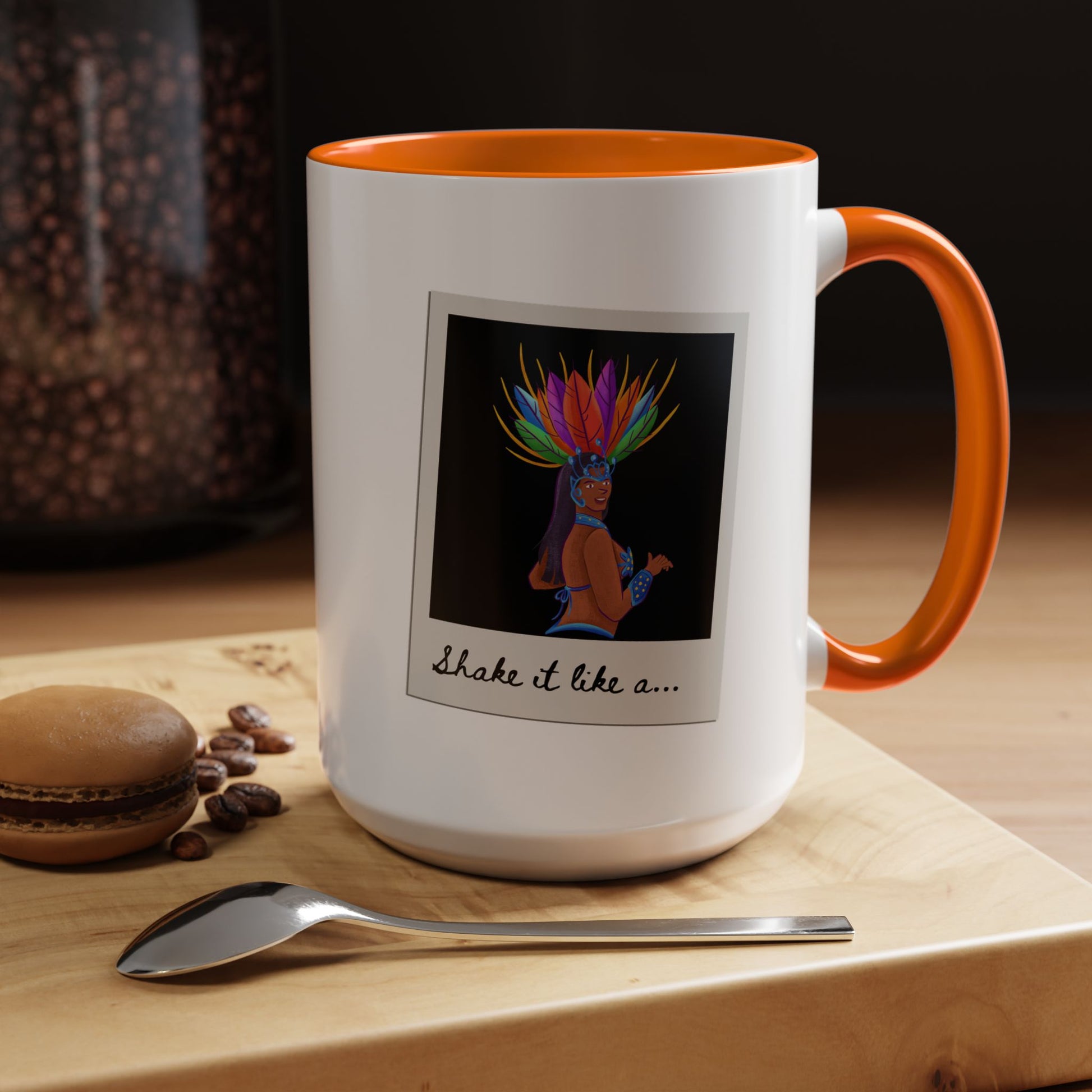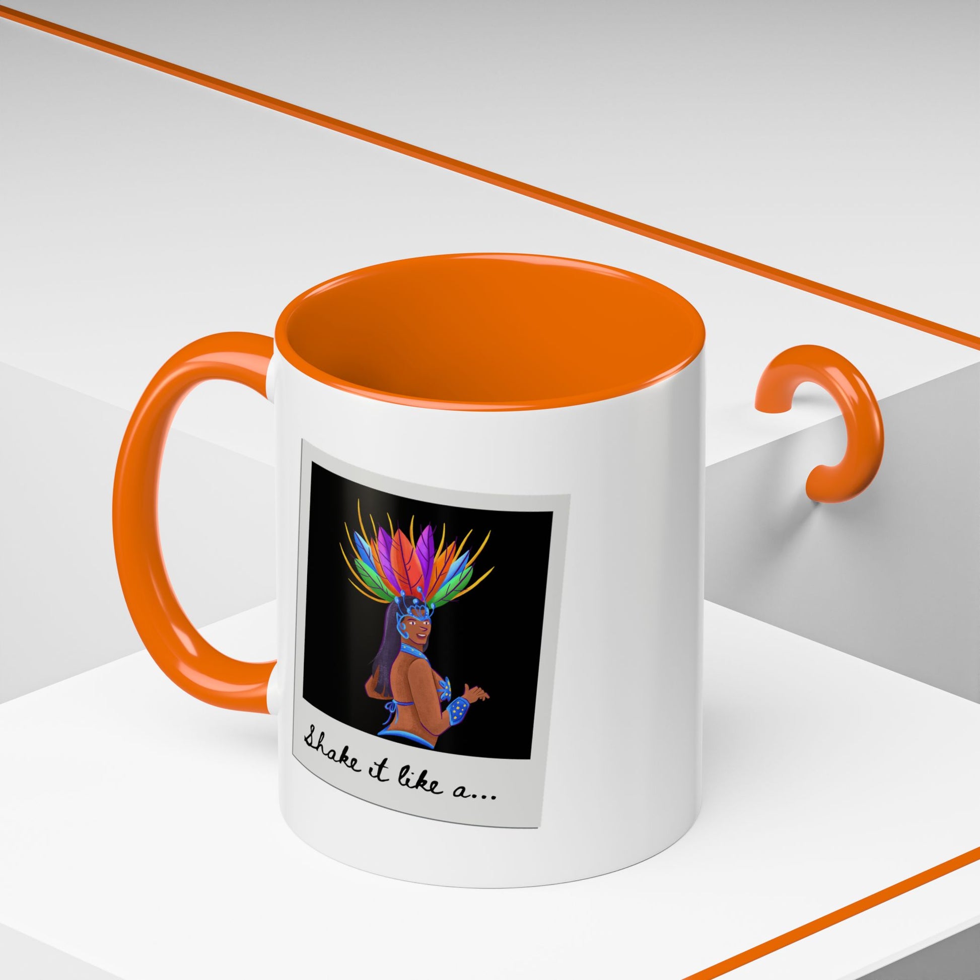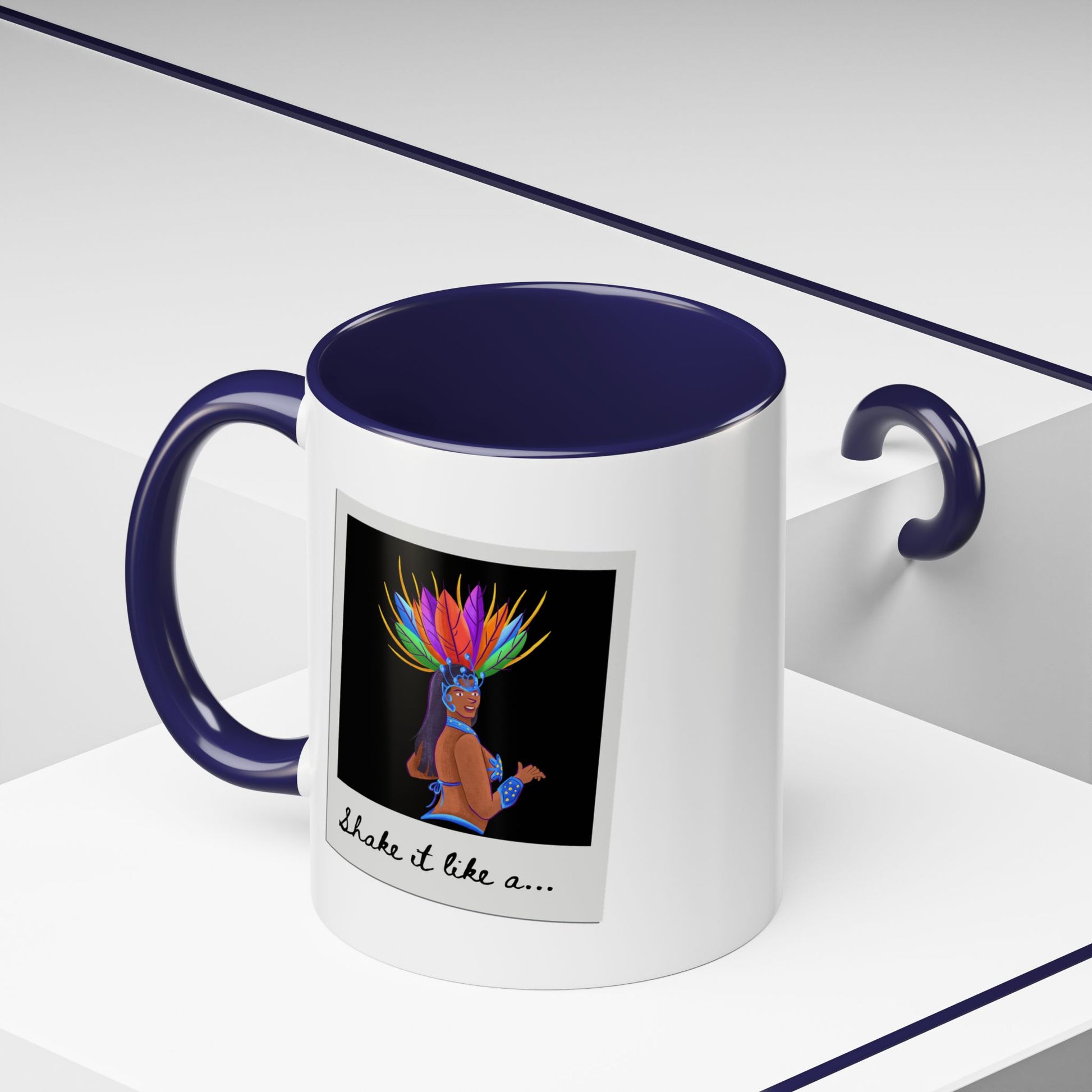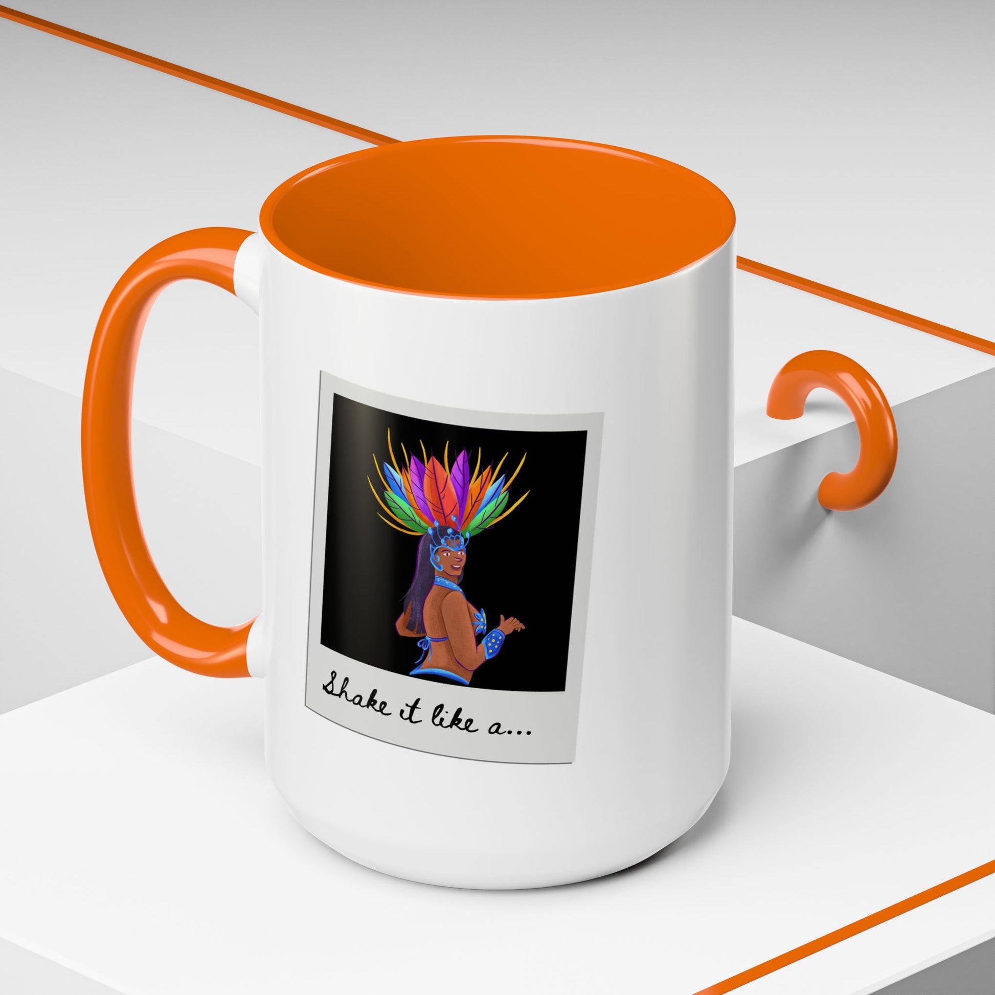 🎉 "Shake It Like a..." Accent Coffee Mug – Featuring a Carnival-Inspired Samba Dancer Graphic ☕💃