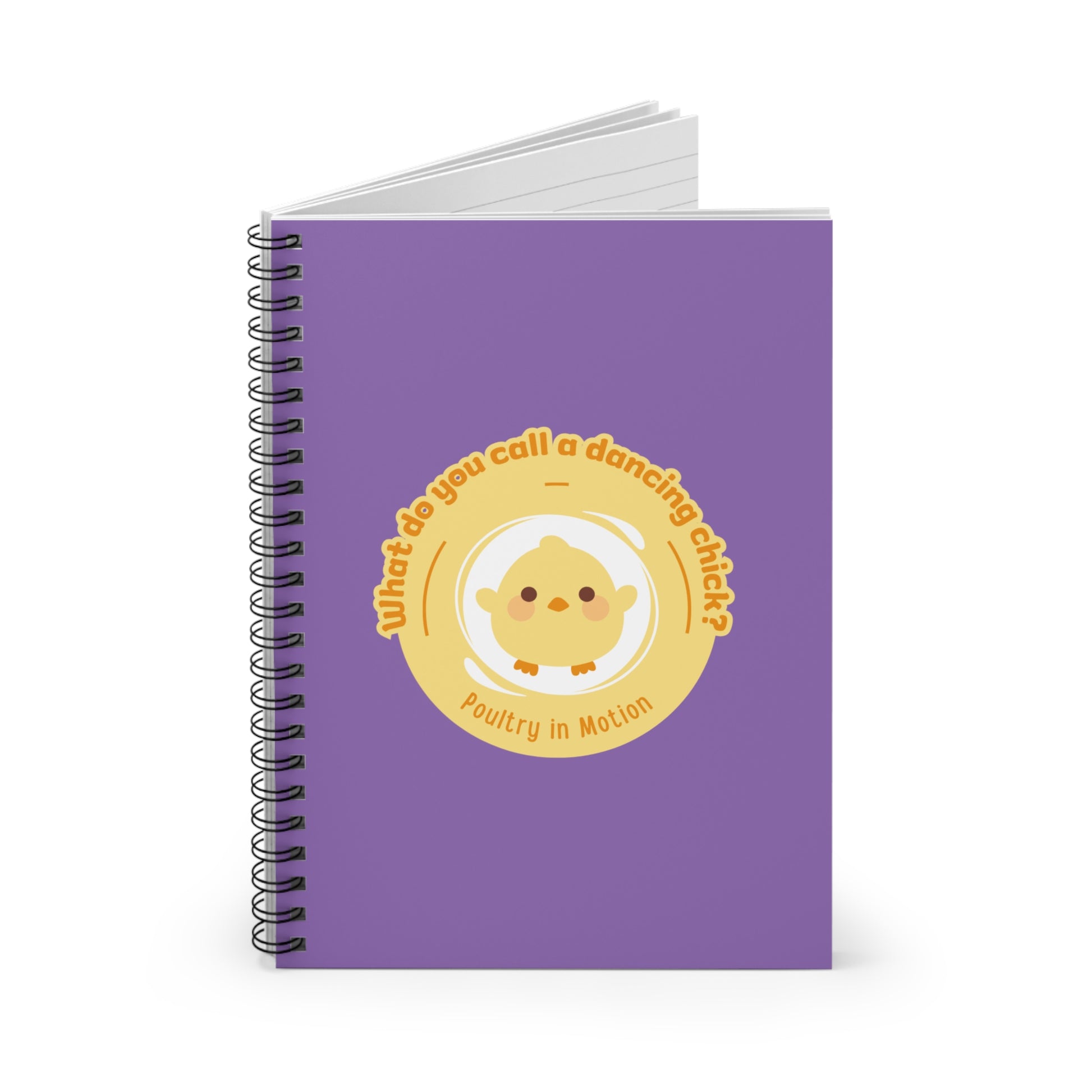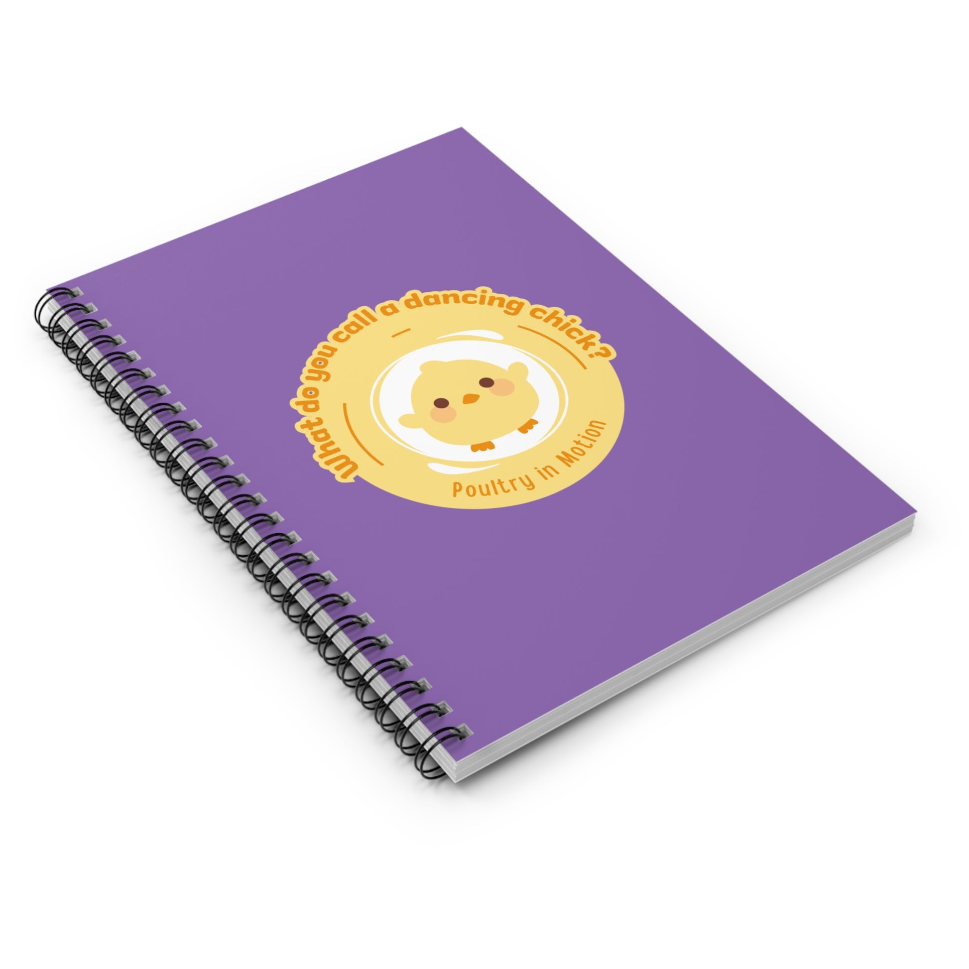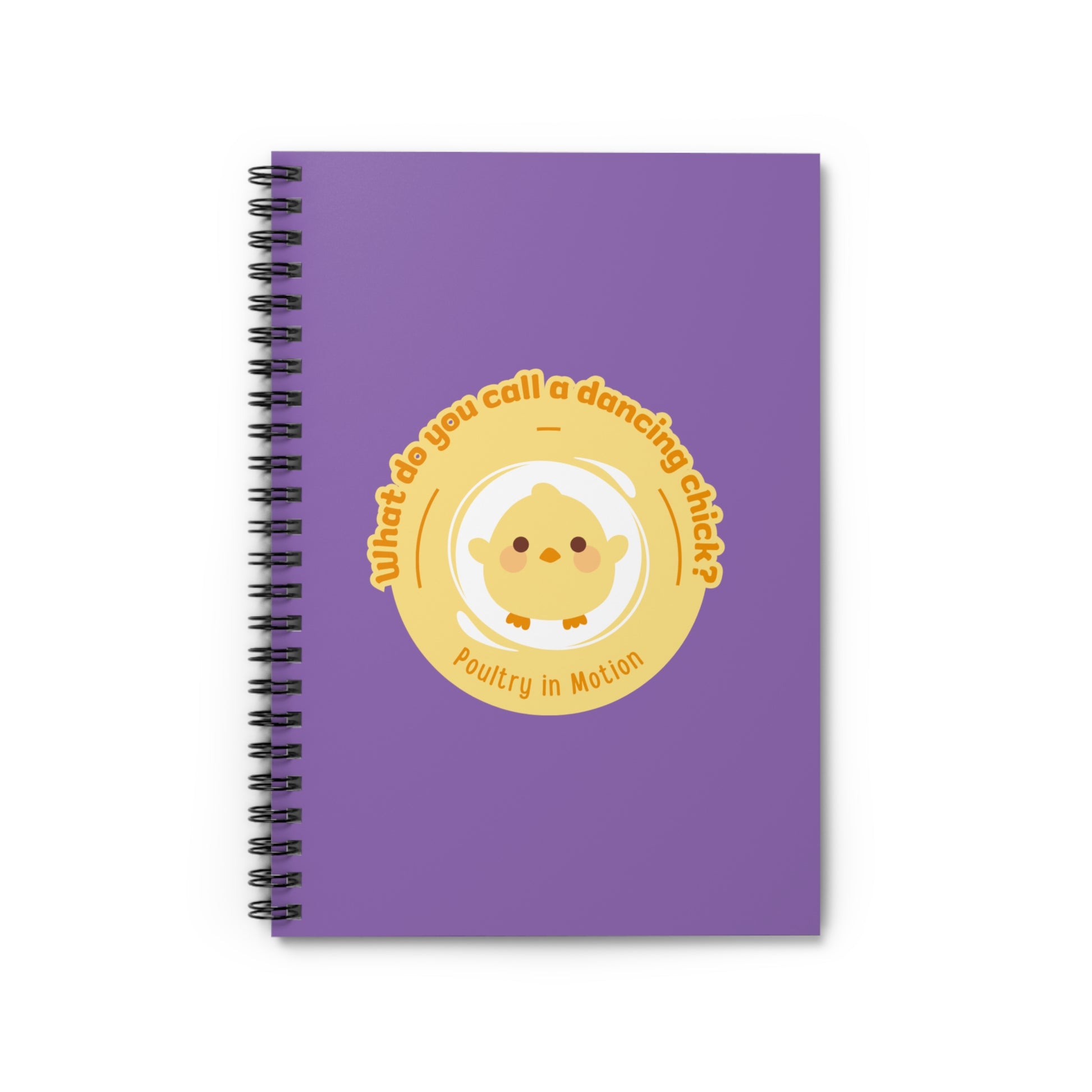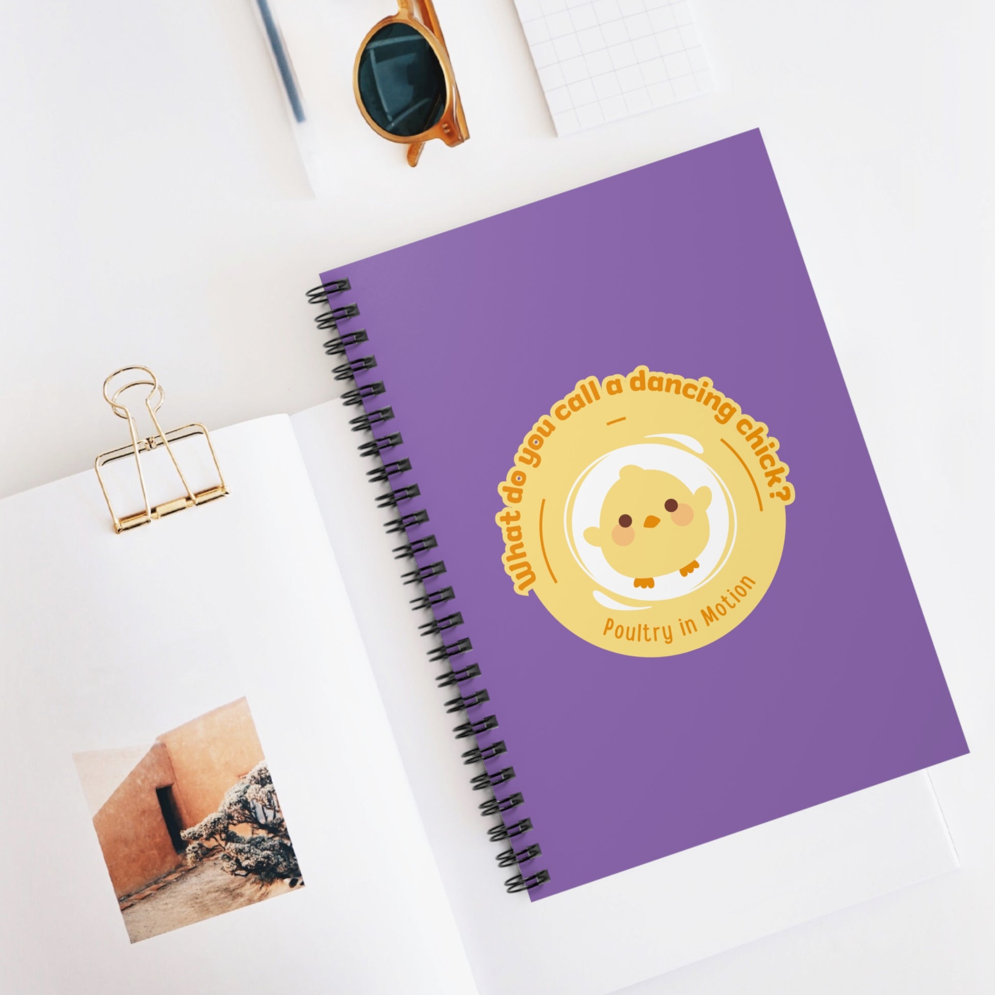"Poultry in Motion" Spiral Notebook – Funny Dance Pun Journal with Cute Chicken Graphic for Dancers, Writers & Pun Lovers