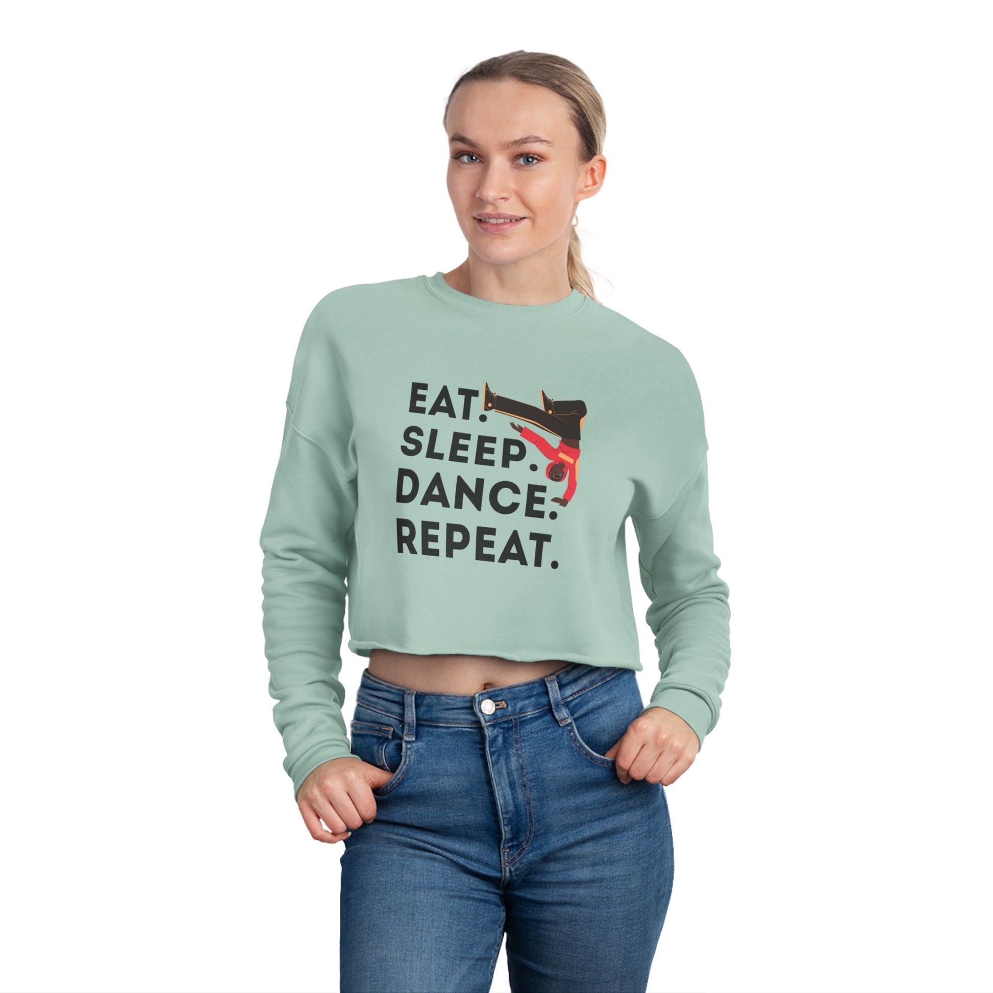 "Eat, Sleep, Dance, Repeat" Women’s Cropped Dance Sweatshirt – Bold B-Boy Graphic | Street Style Dance Apparel for Breakdancers & Hip-Hop Lovers