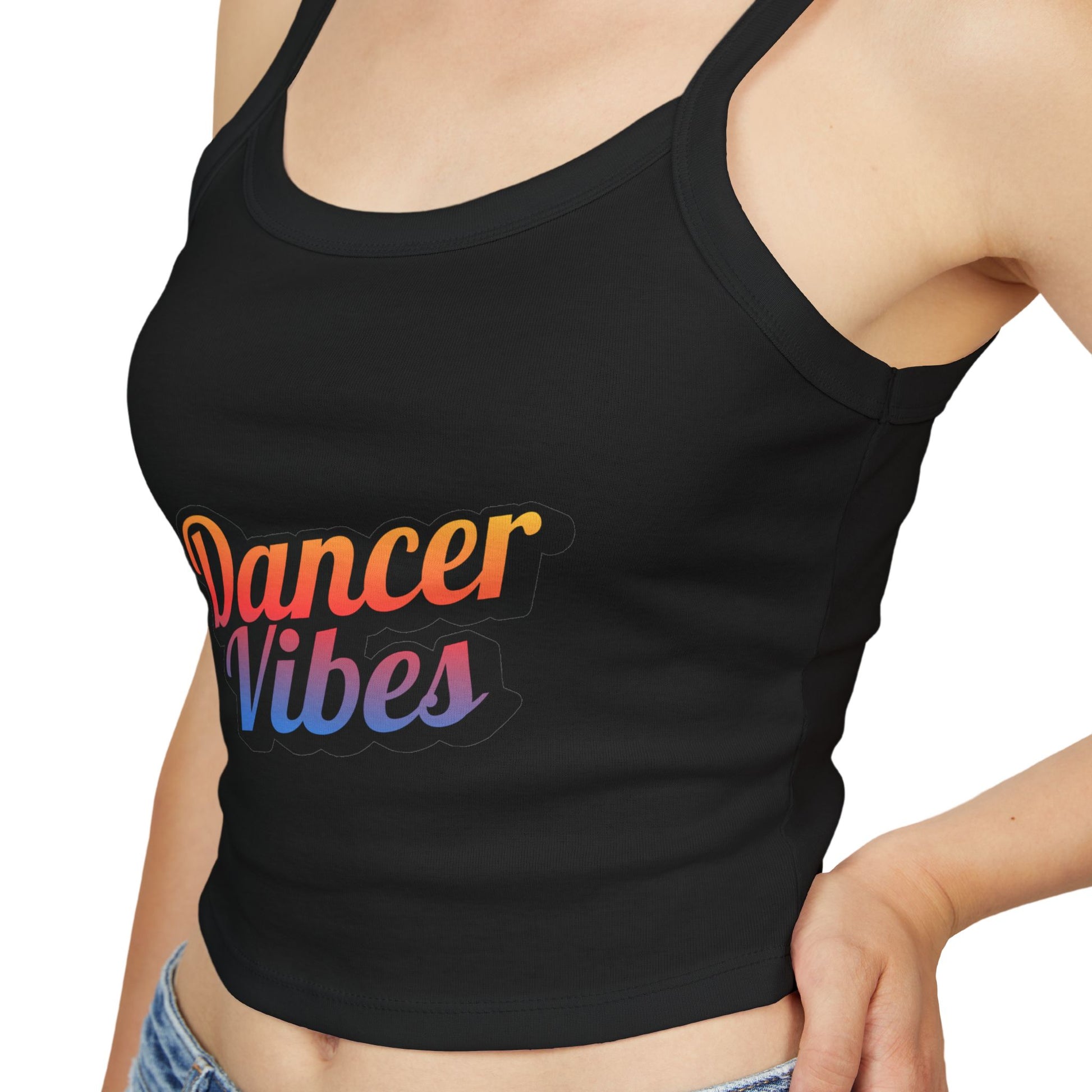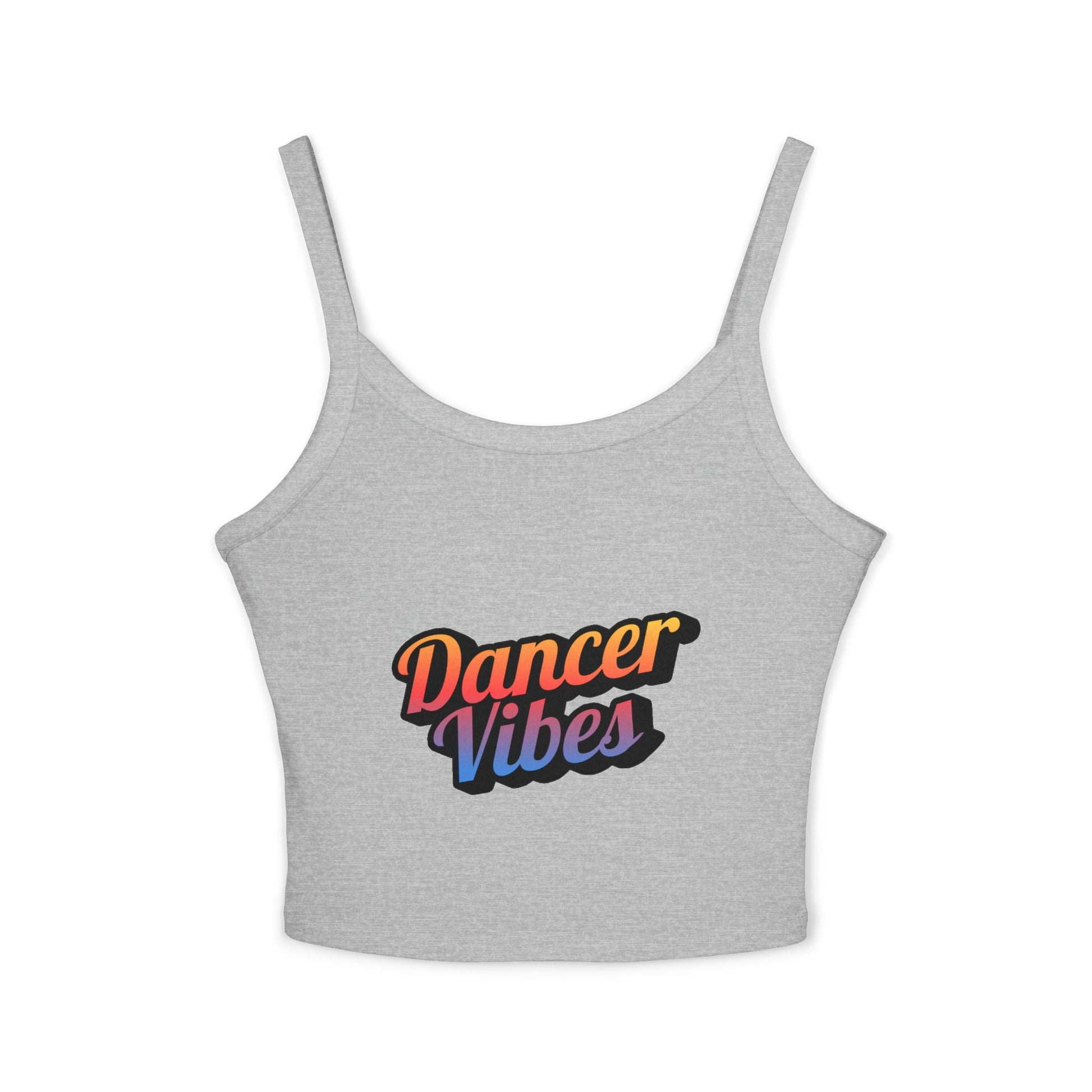 "Dancer Vibes" Women’s Spaghetti Strap Tank Top – Colorful Text Graphic | Fun Dance Lifestyle Shirt for Studio, Festivals & Everyday Style