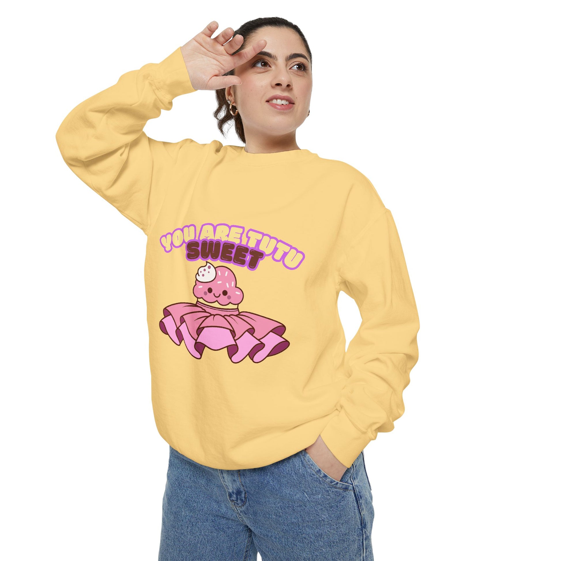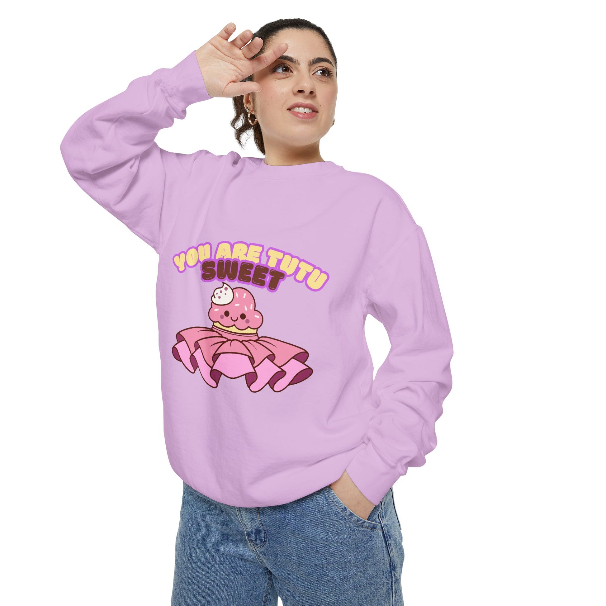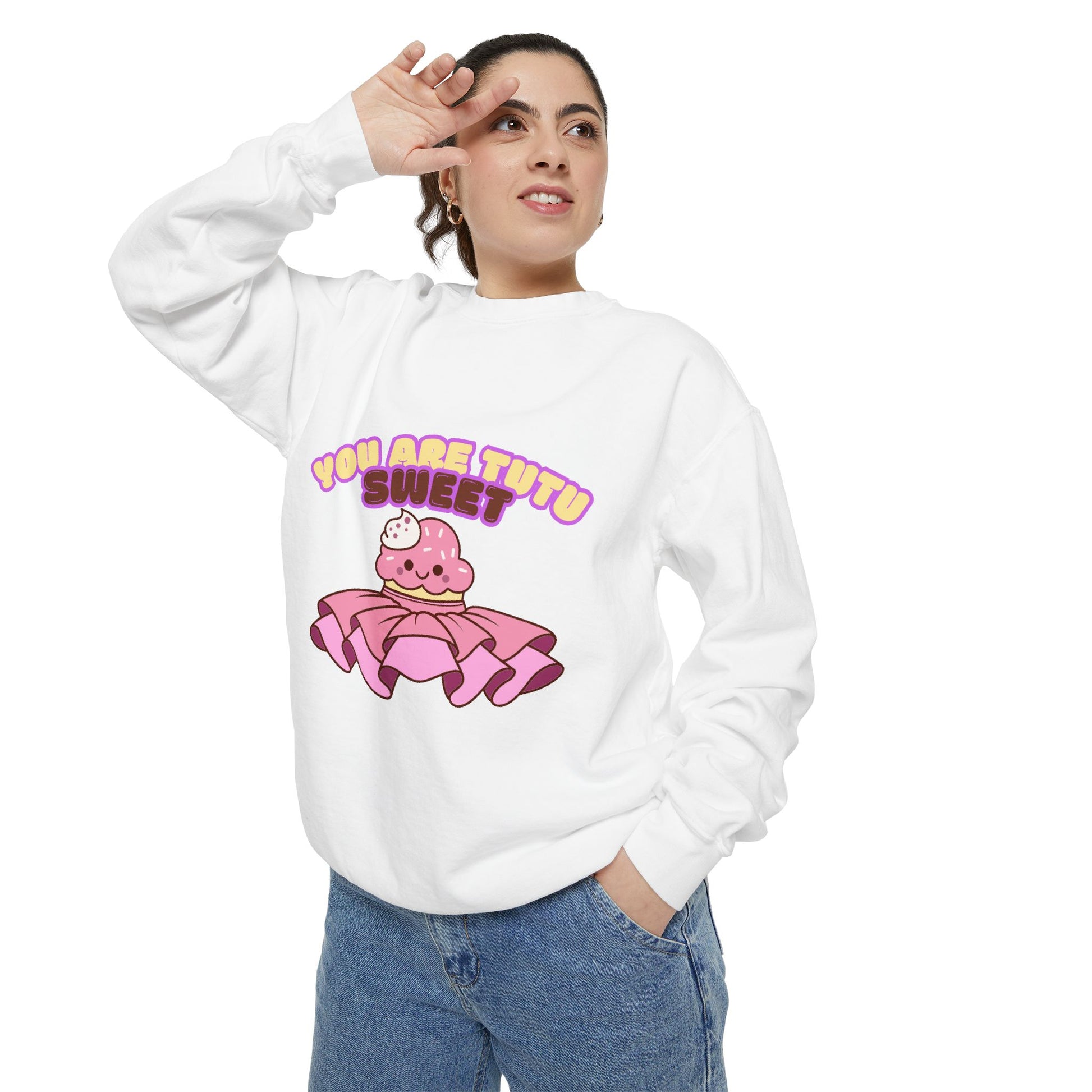"You Are Tutu Sweet" Unisex Lightweight Crewneck Sweatshirt – Kawaii Cupcake in a Tutu Graphic Pullover for Ballet & Dance Lovers