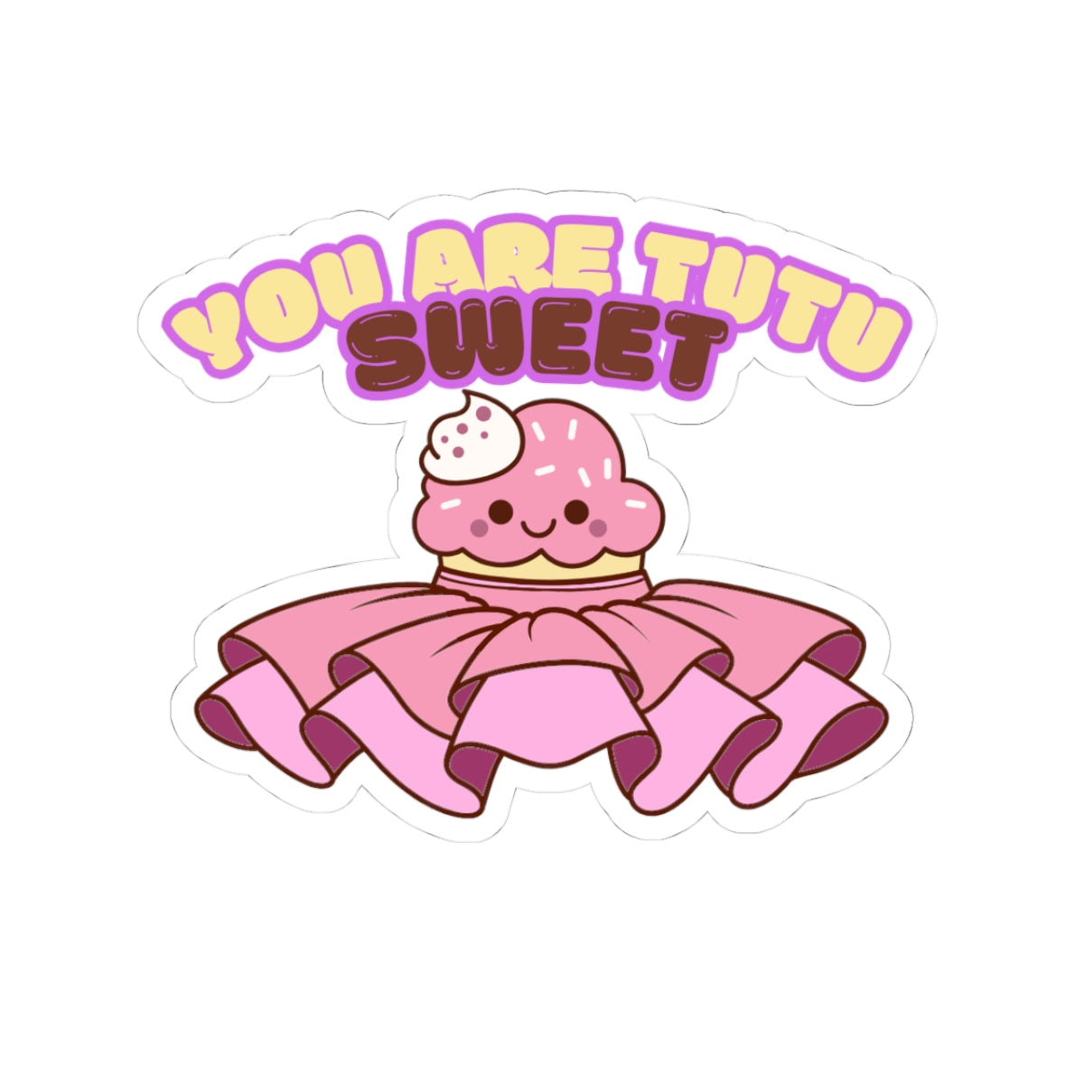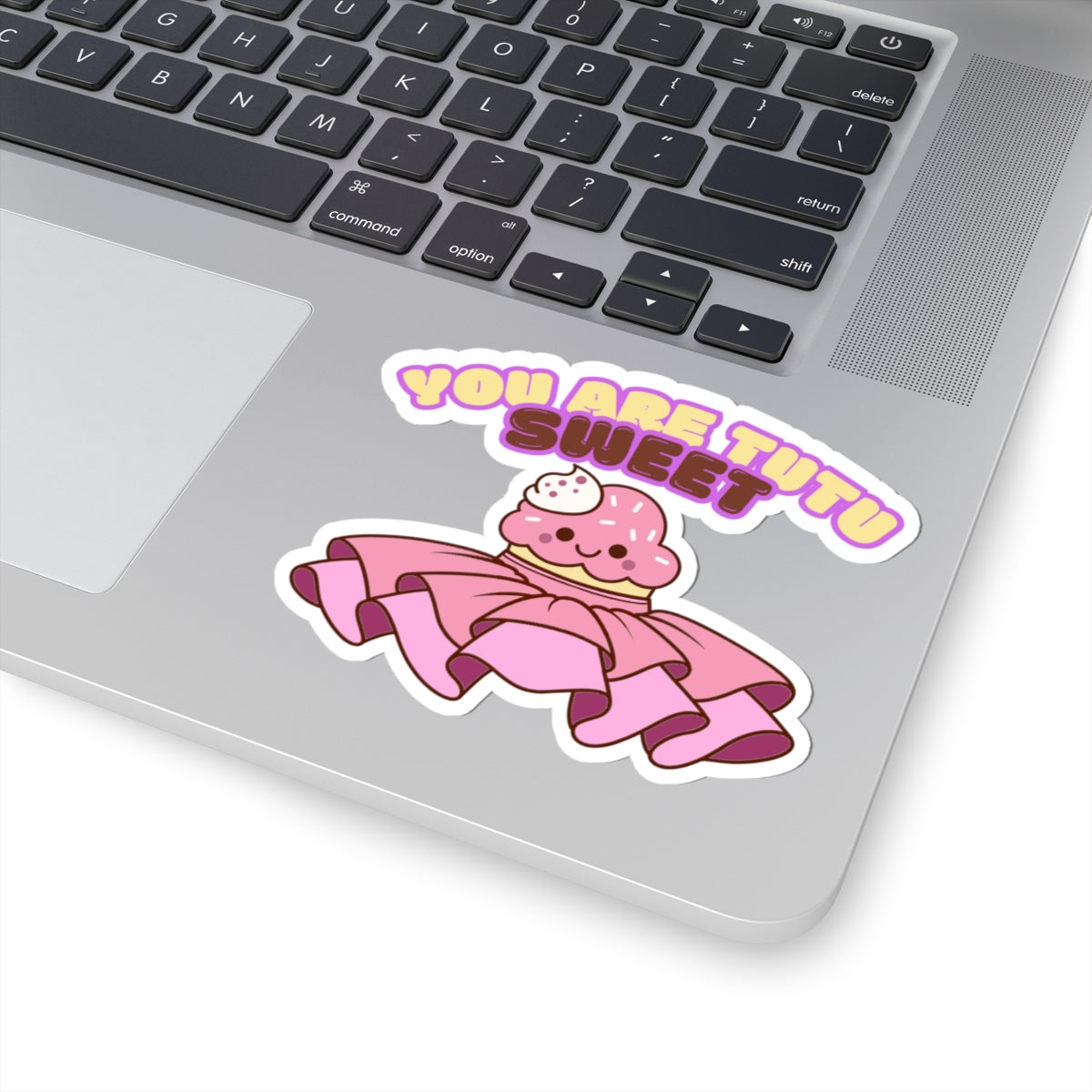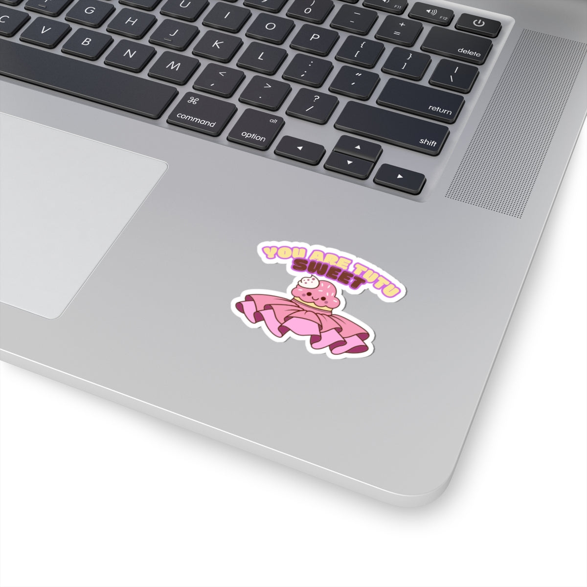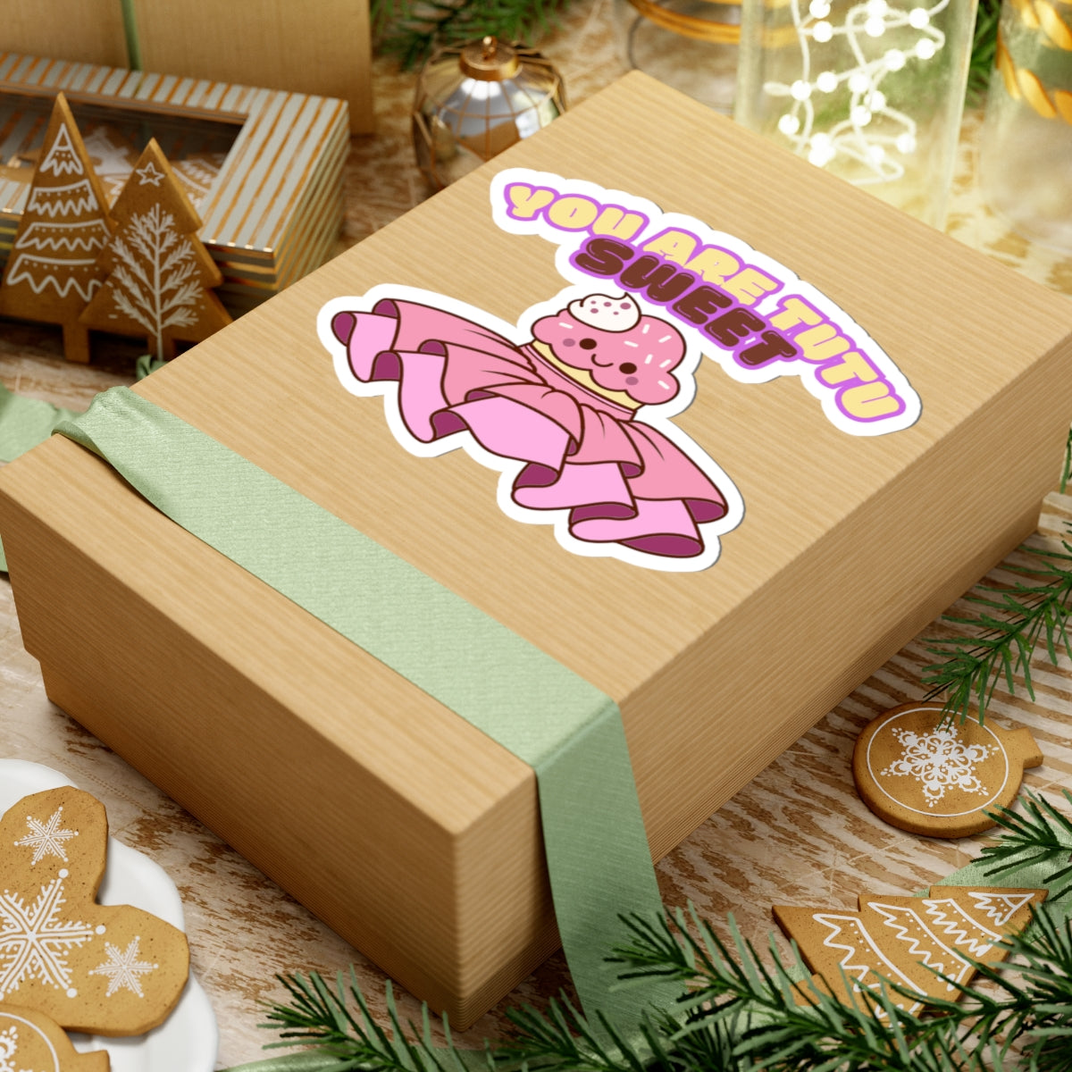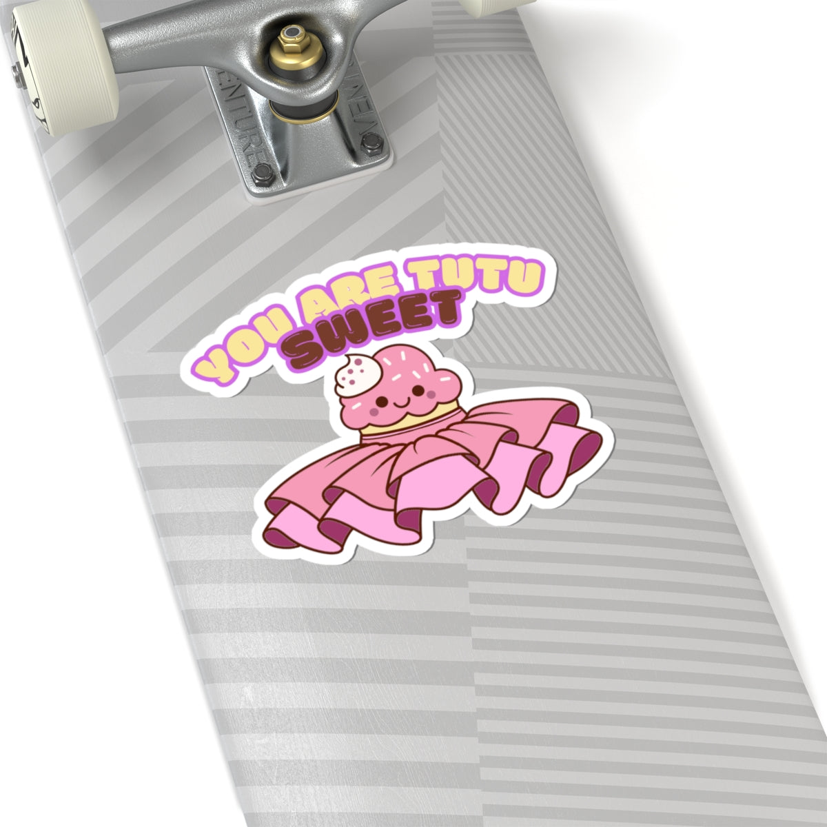 "You Are Tutu Sweet" Kiss-Cut Sticker – Kawaii Cupcake in a Tutu Graphic – Cute Dance-Themed Vinyl Sticker for Laptops, Journals & Water Bottles
