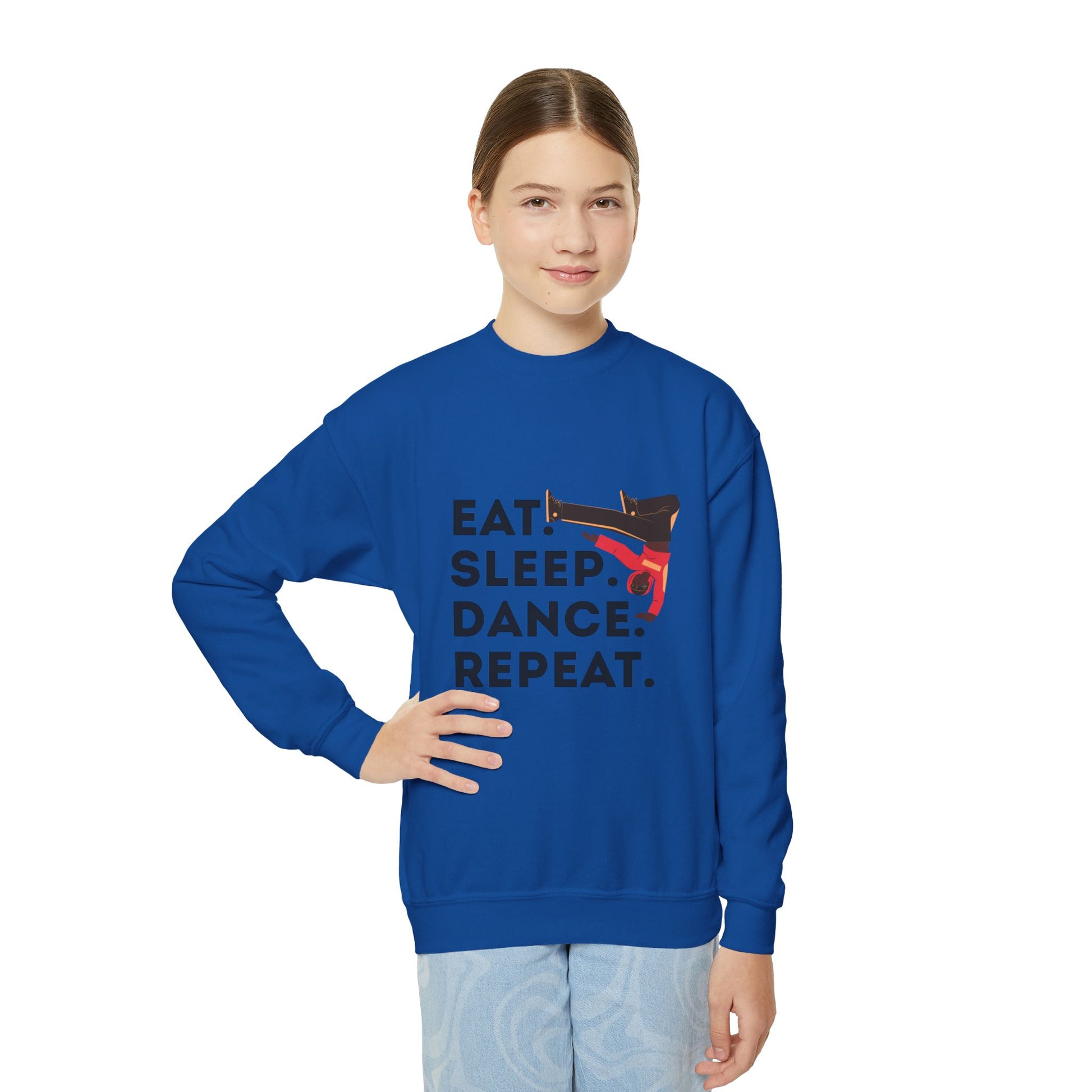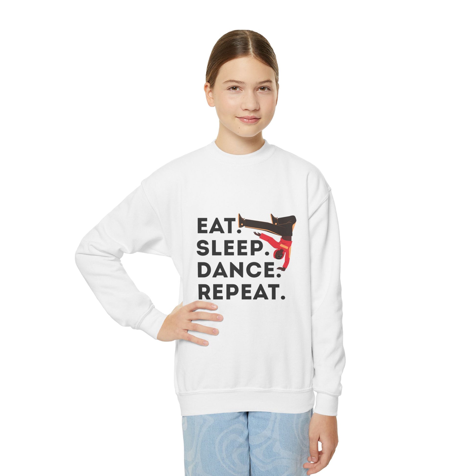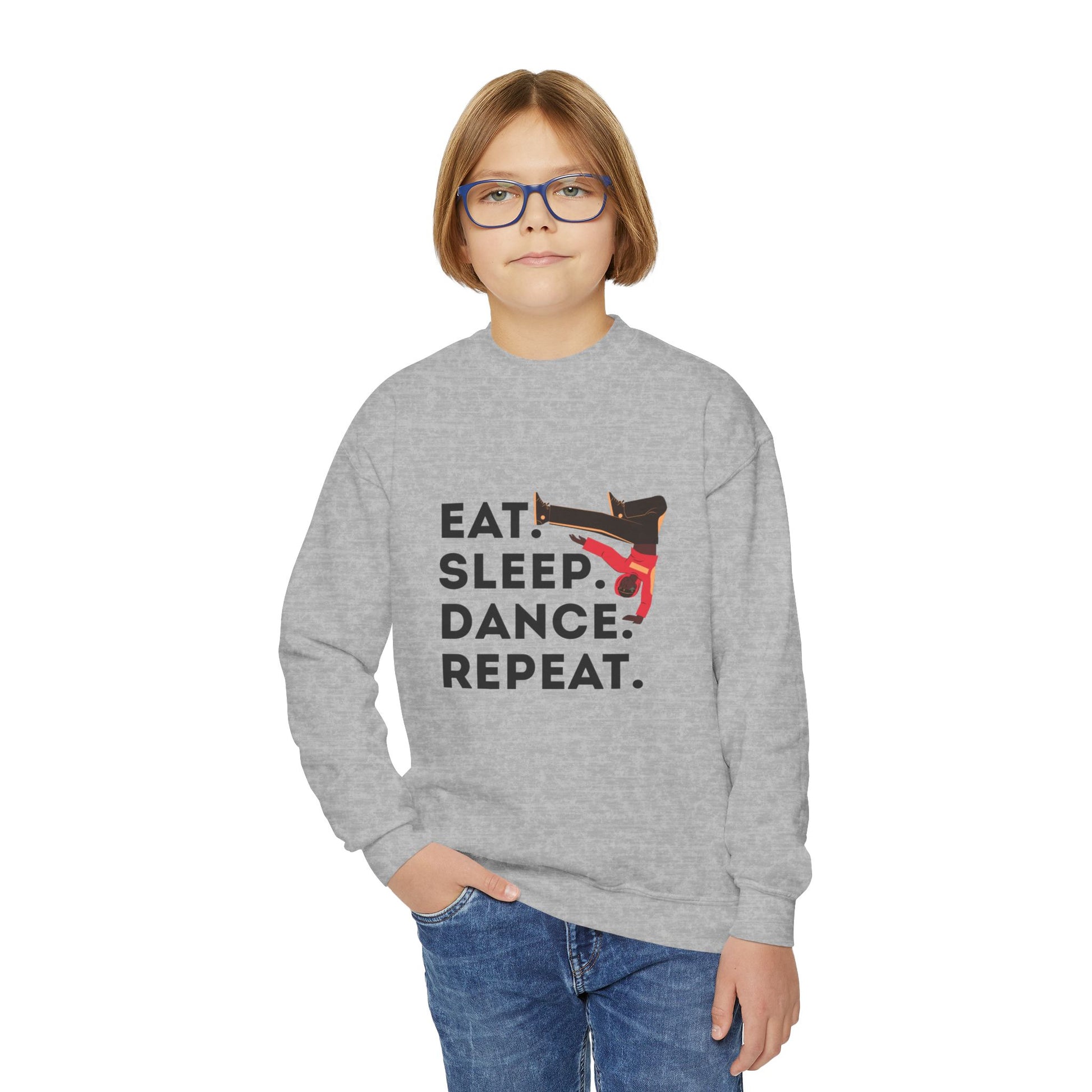 "Eat Sleep Dance Repeat" – Bold B-Boy Graphic Youth Crewneck Sweatshirt | Hip Hop Dance Kids Pullover