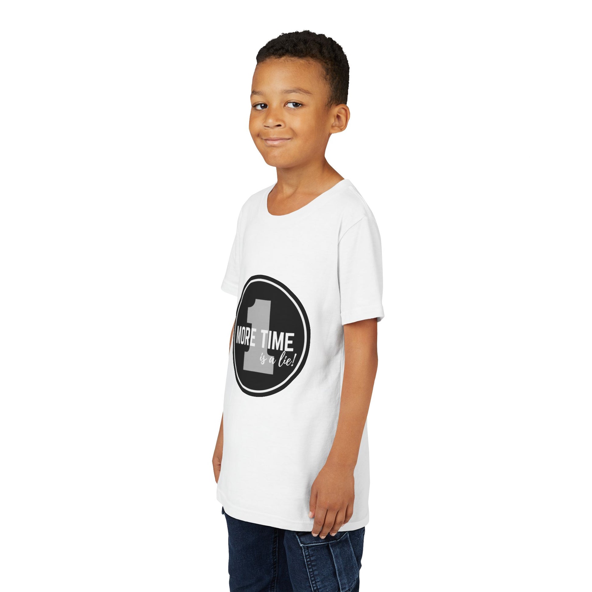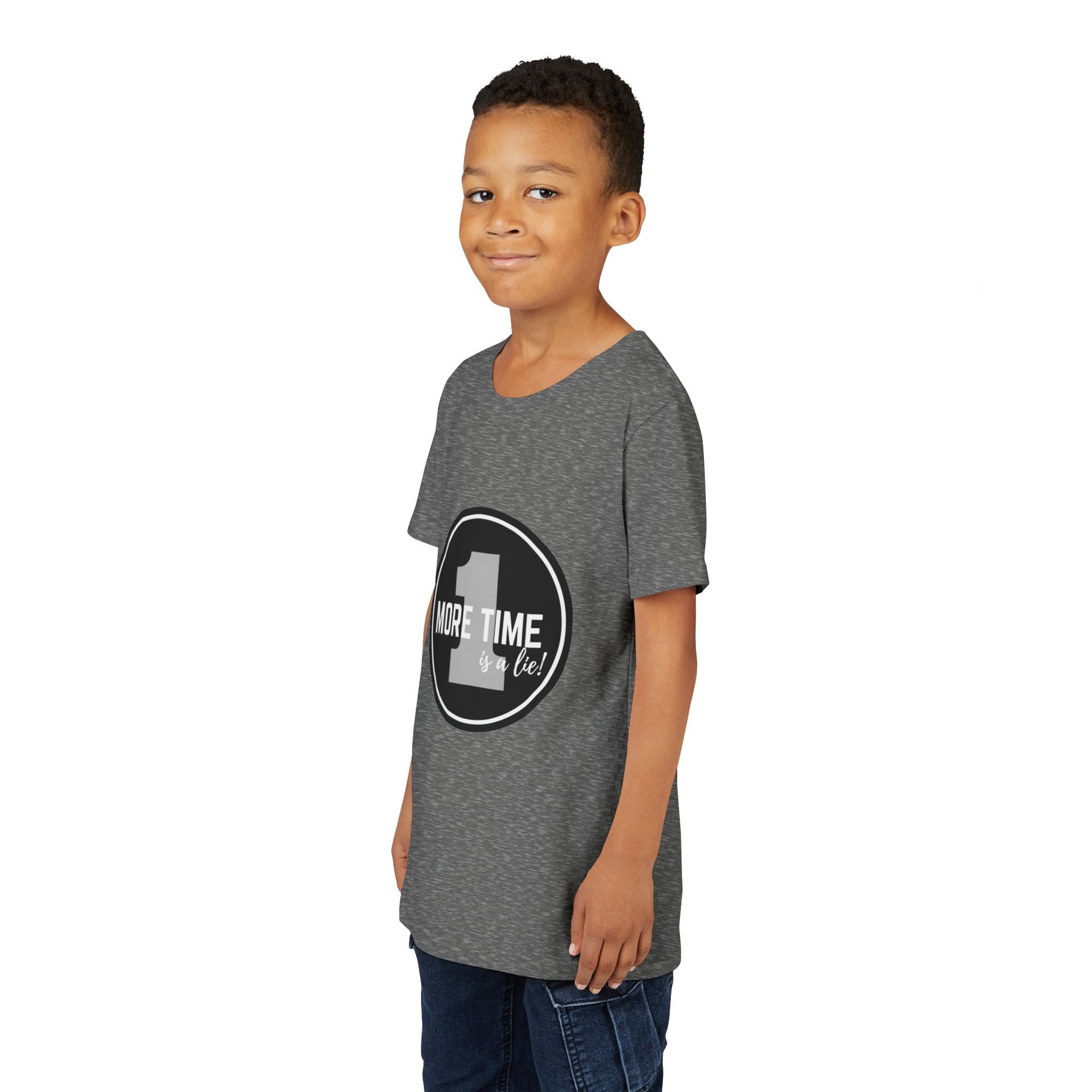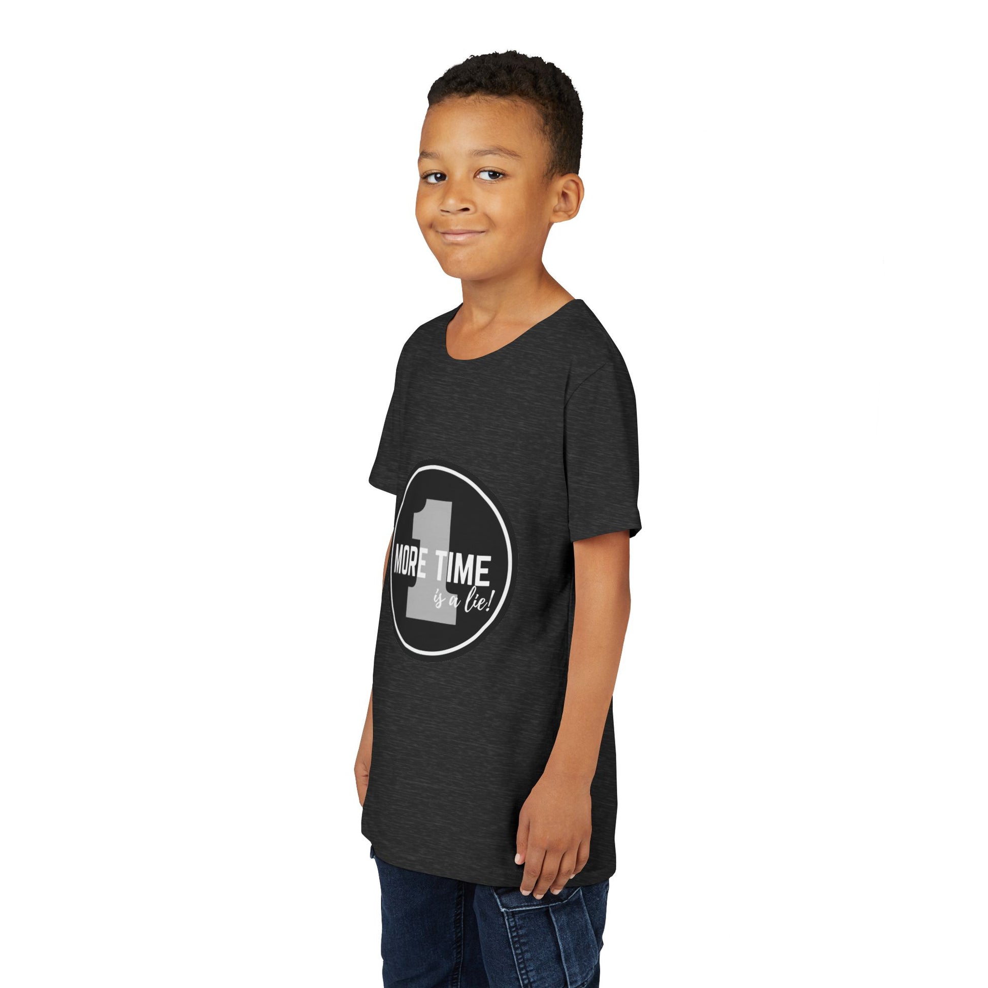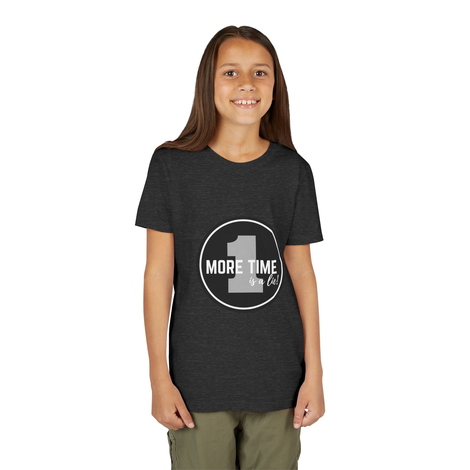 “One More Time is a Lie” Bold Emblem Dancer Graphic T-Shirt for Kids – Funny Dance Rehearsal Shirt - Youth Dance Tee