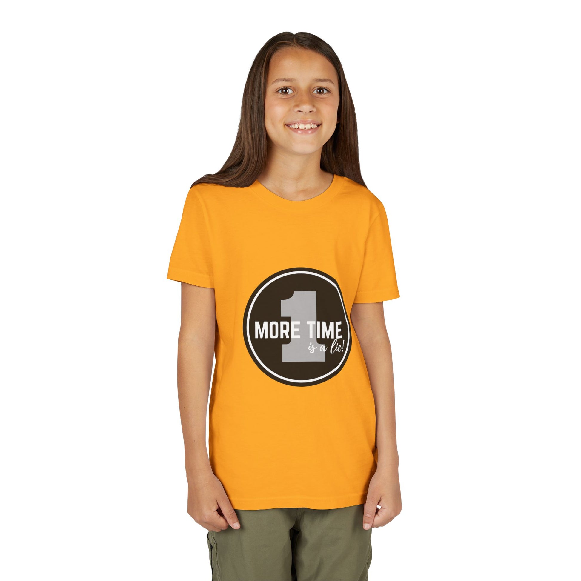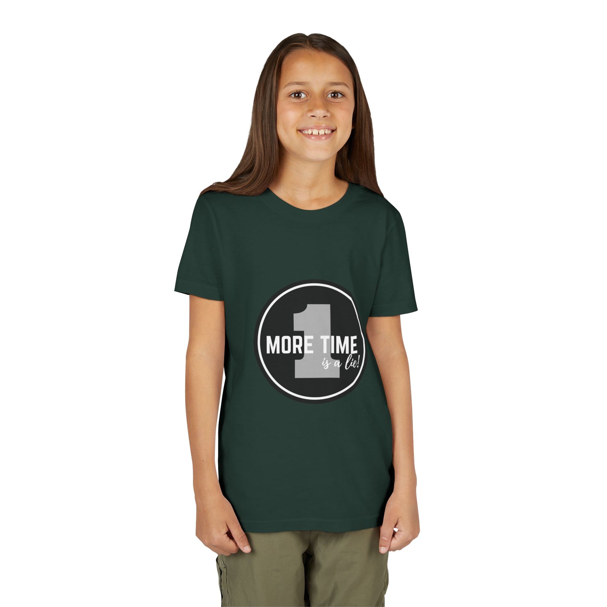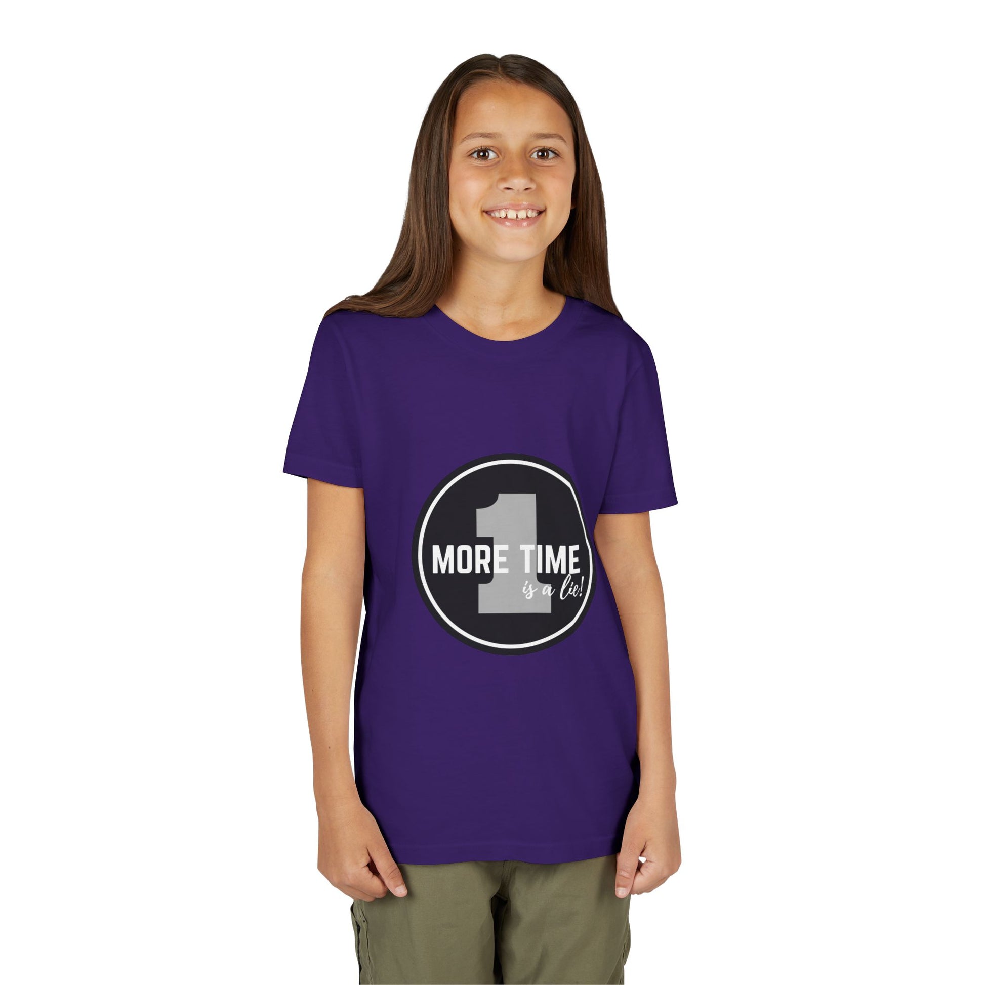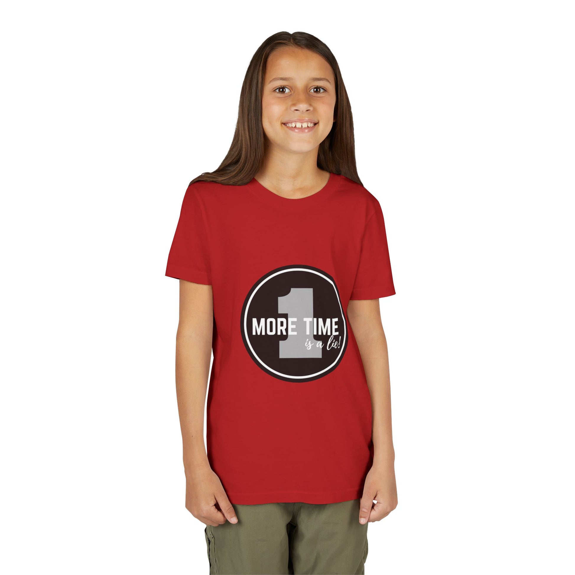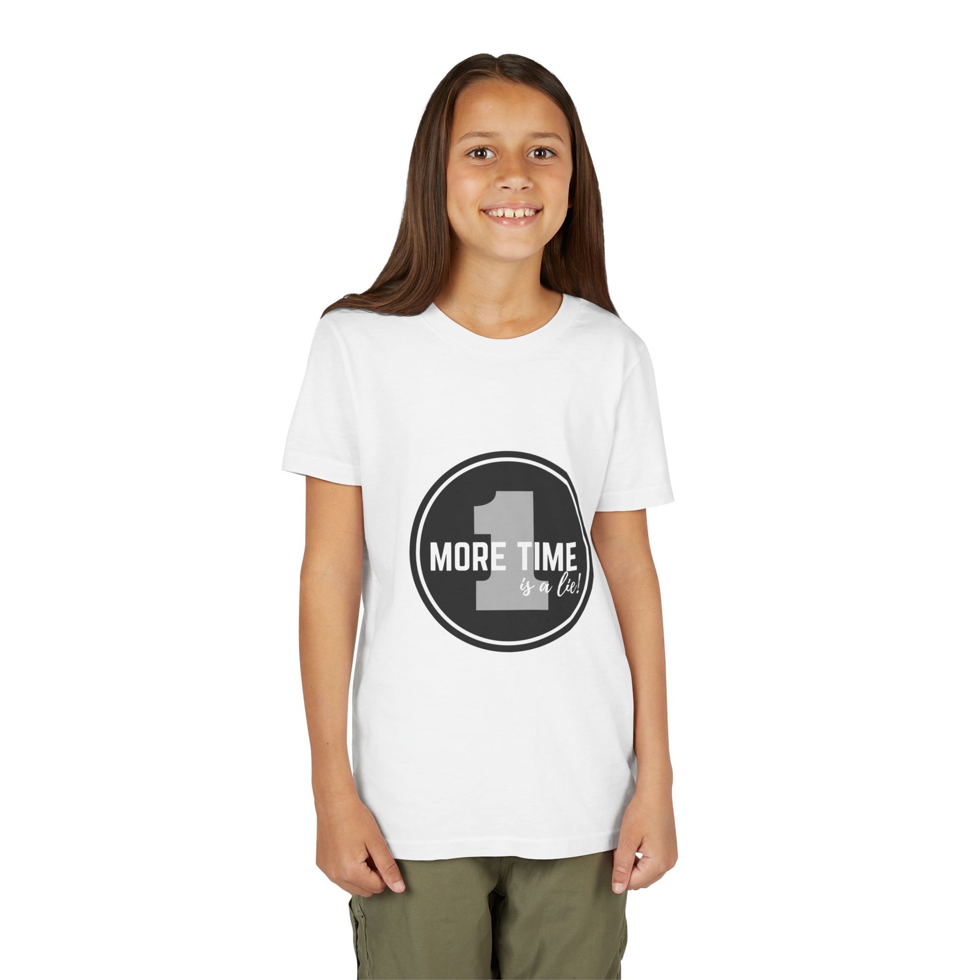 “One More Time is a Lie” Bold Emblem Dancer Graphic T-Shirt for Kids – Funny Dance Rehearsal Shirt - Youth Dance Tee